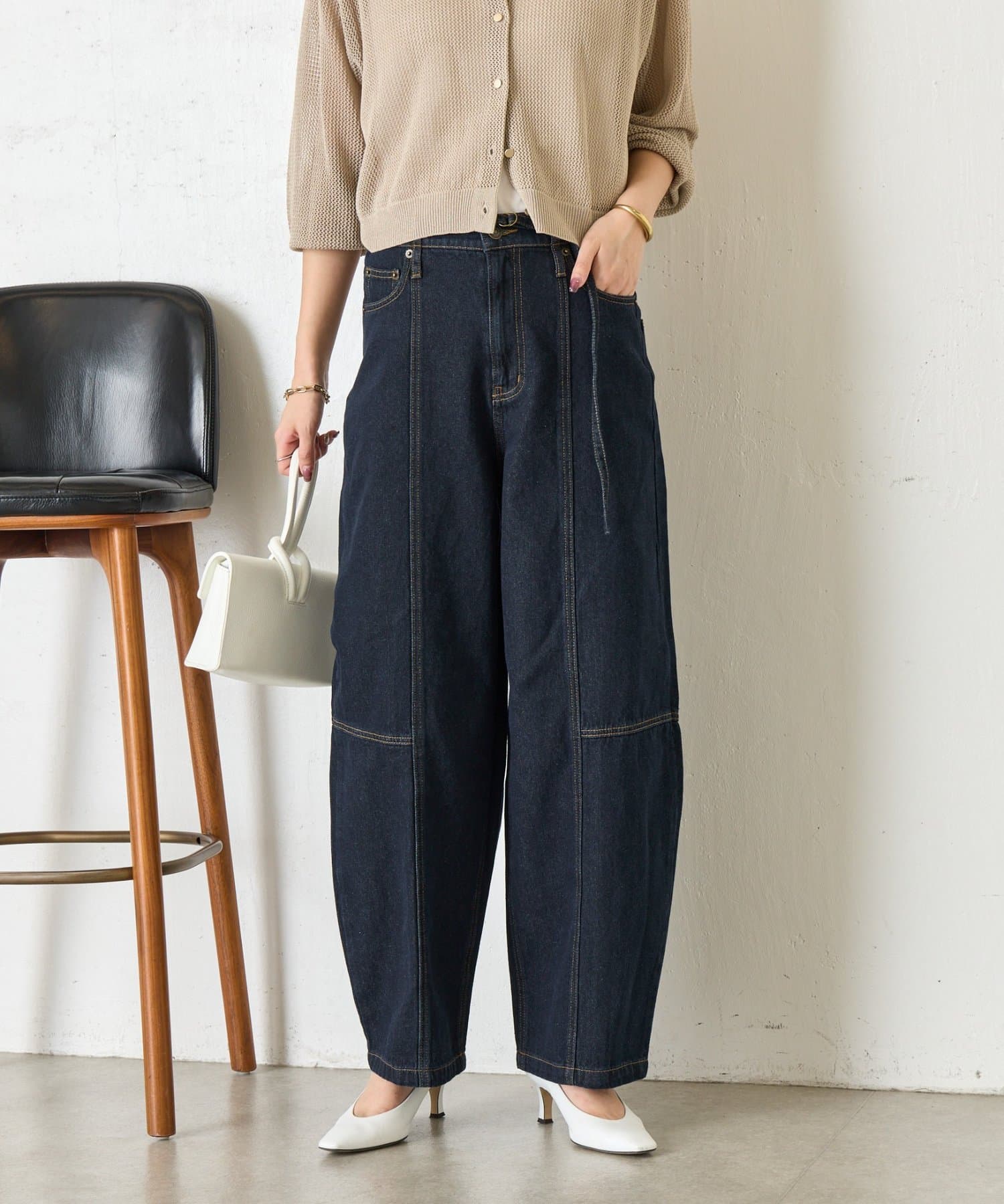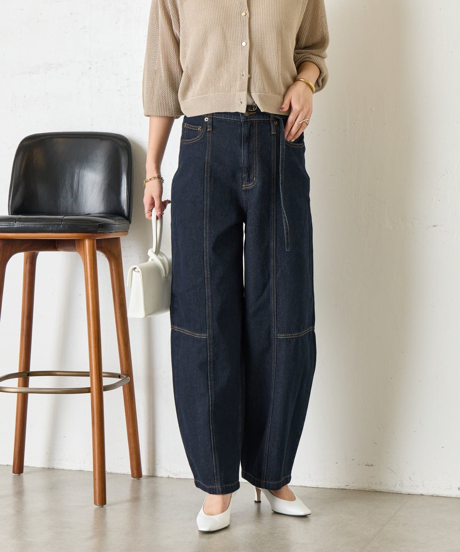 • Jena espace merveilleux(ジェナ エスパスメルヴェイユ) 【曲線シルエット】細ベルトカーブデニムパンツ