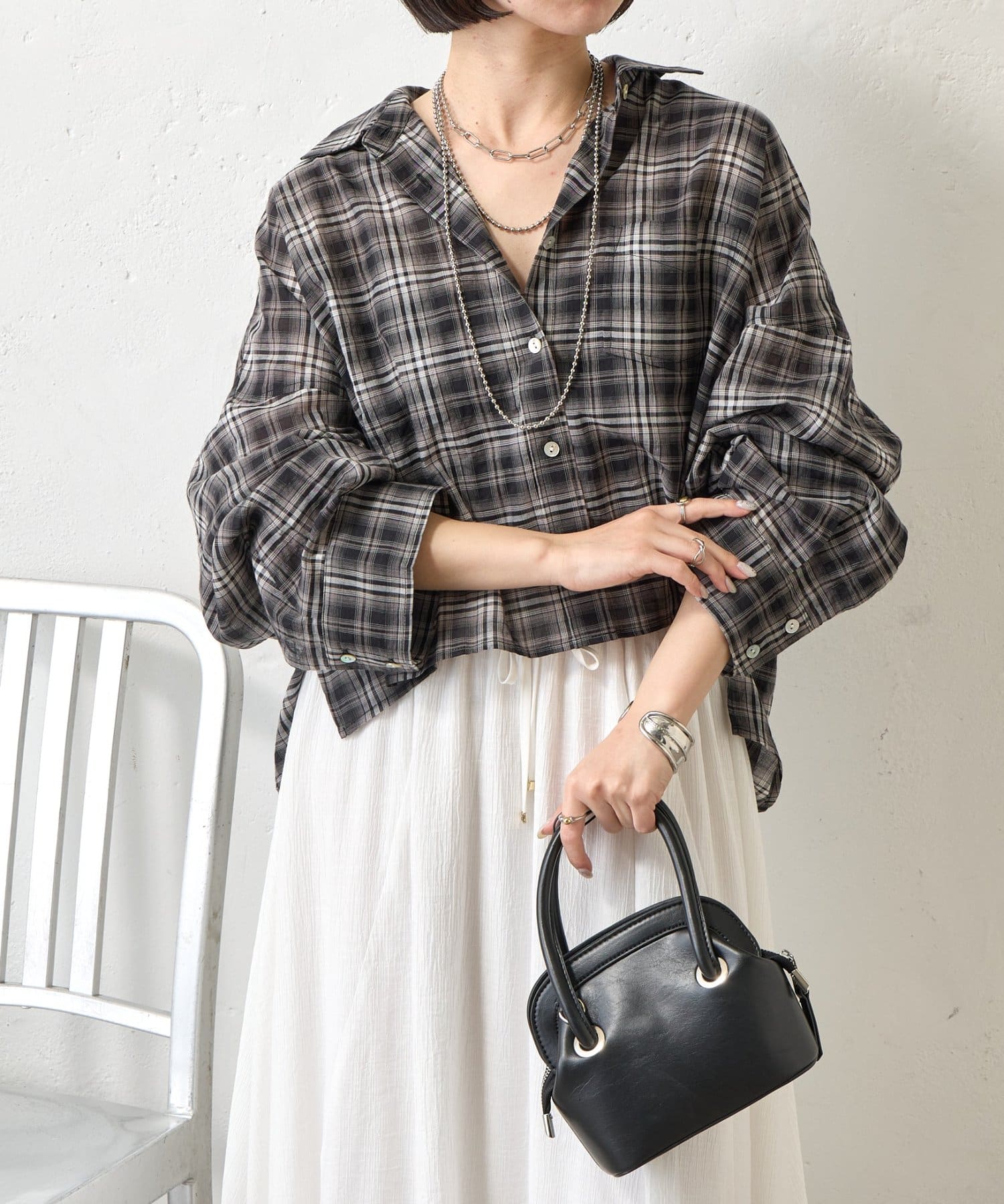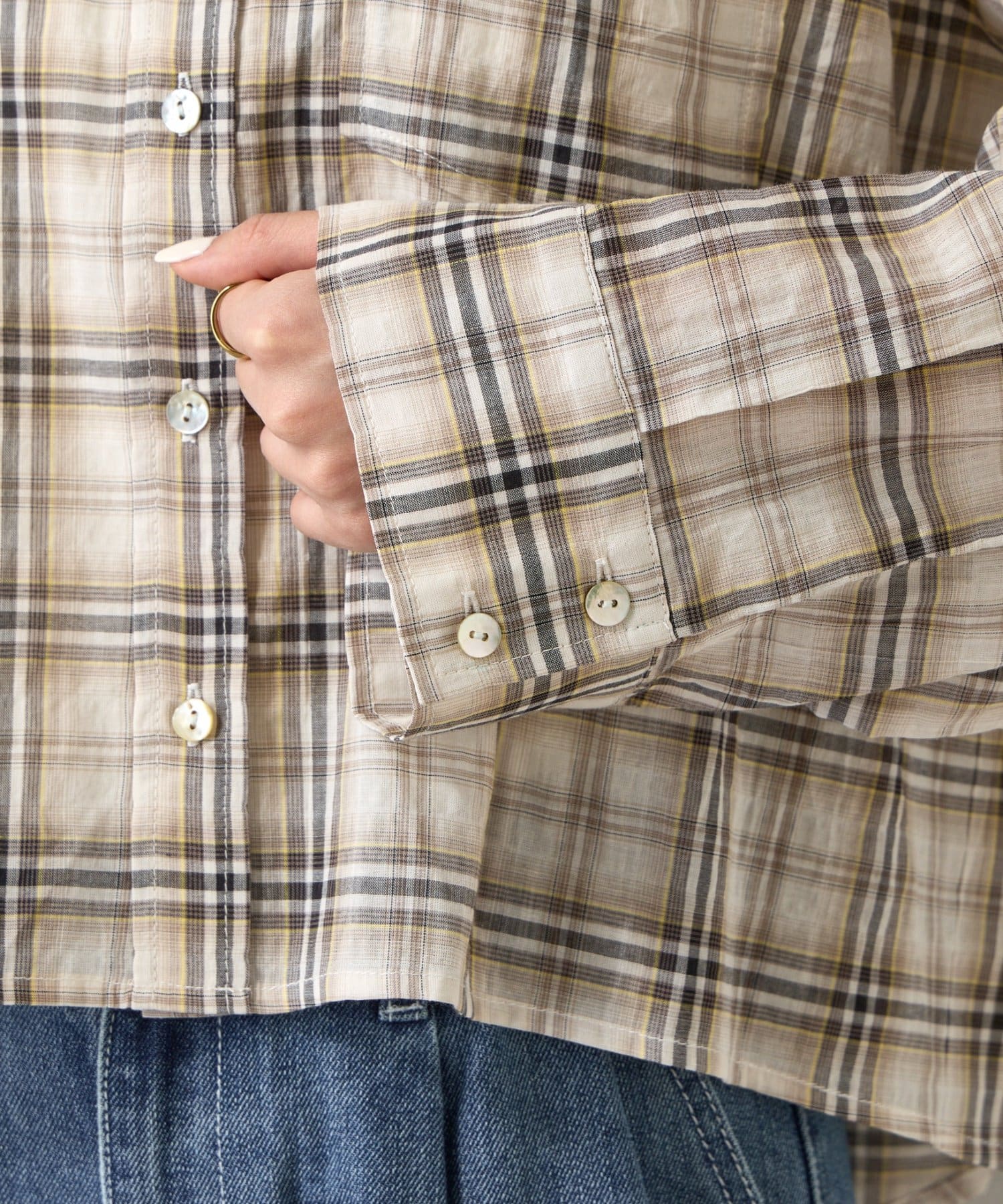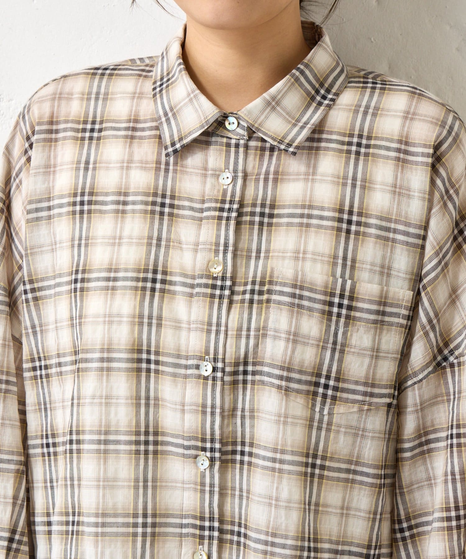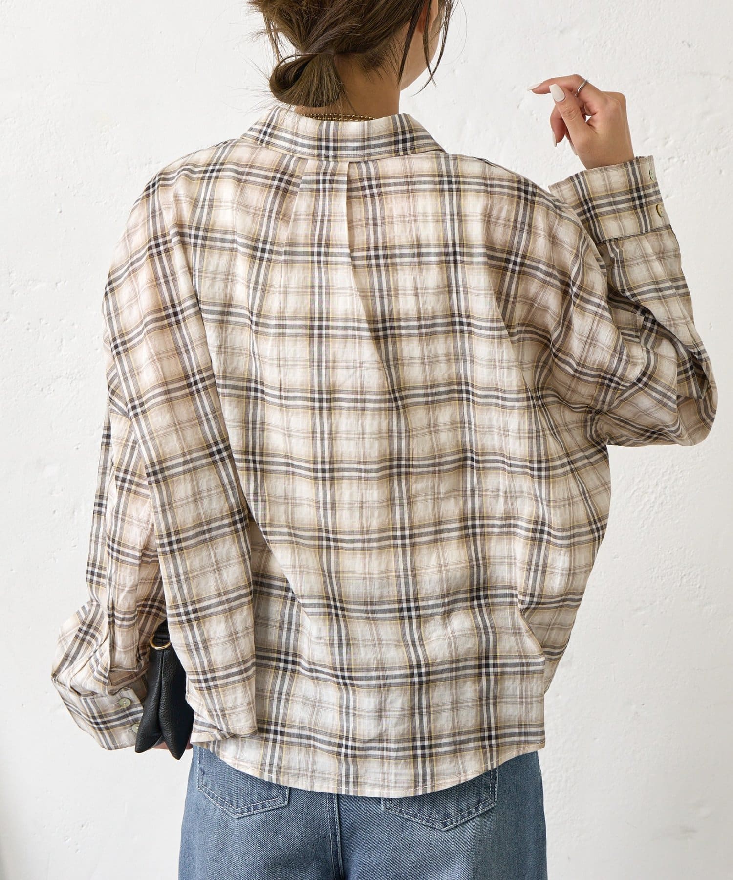 ・程よい透け感が春らしい、シアーチェックシャツ。