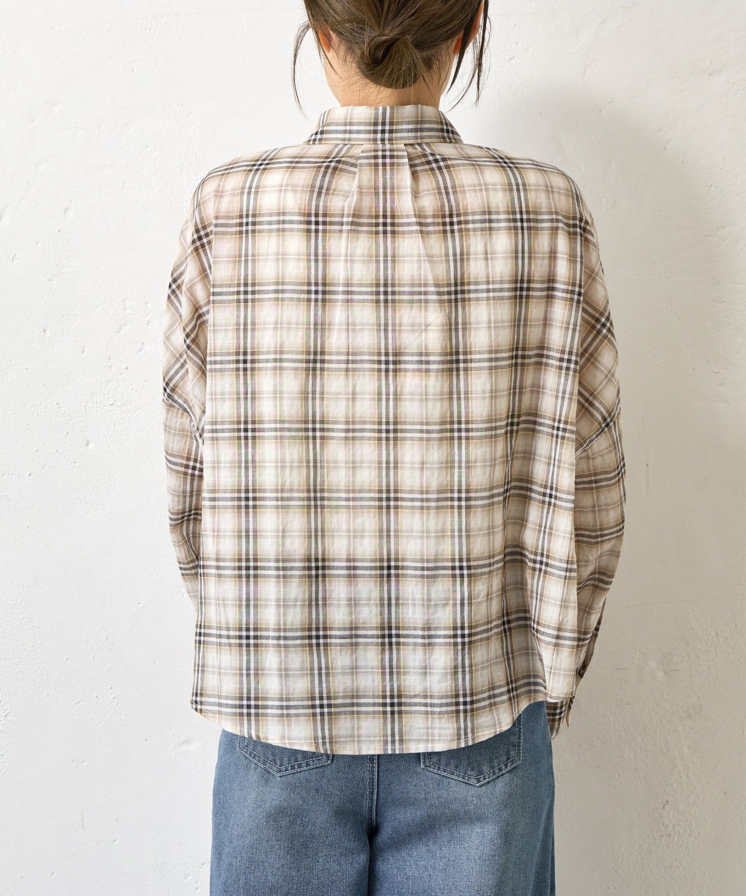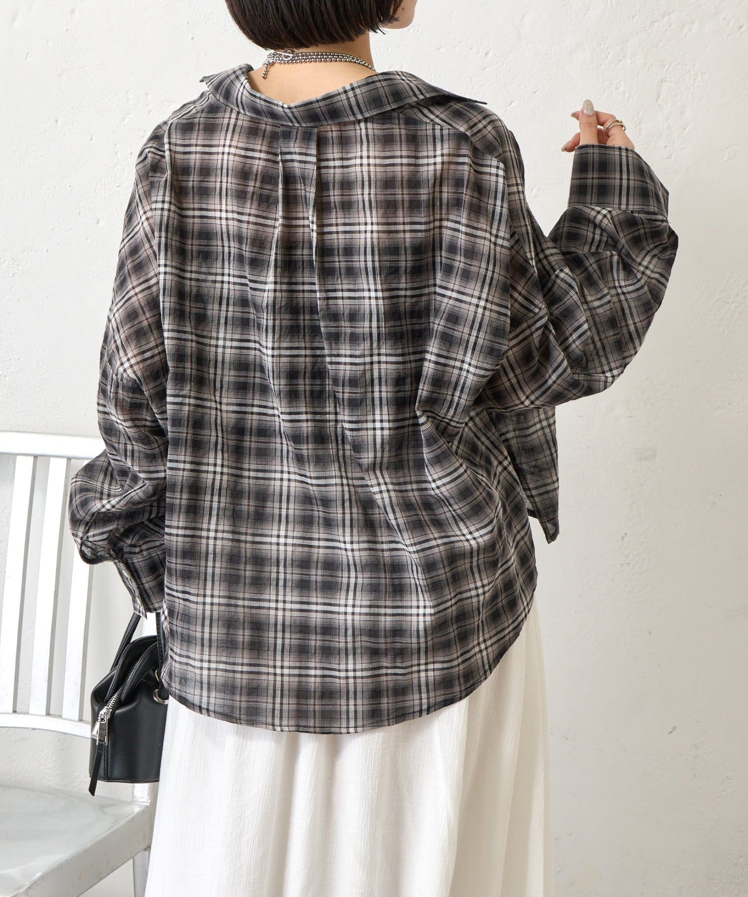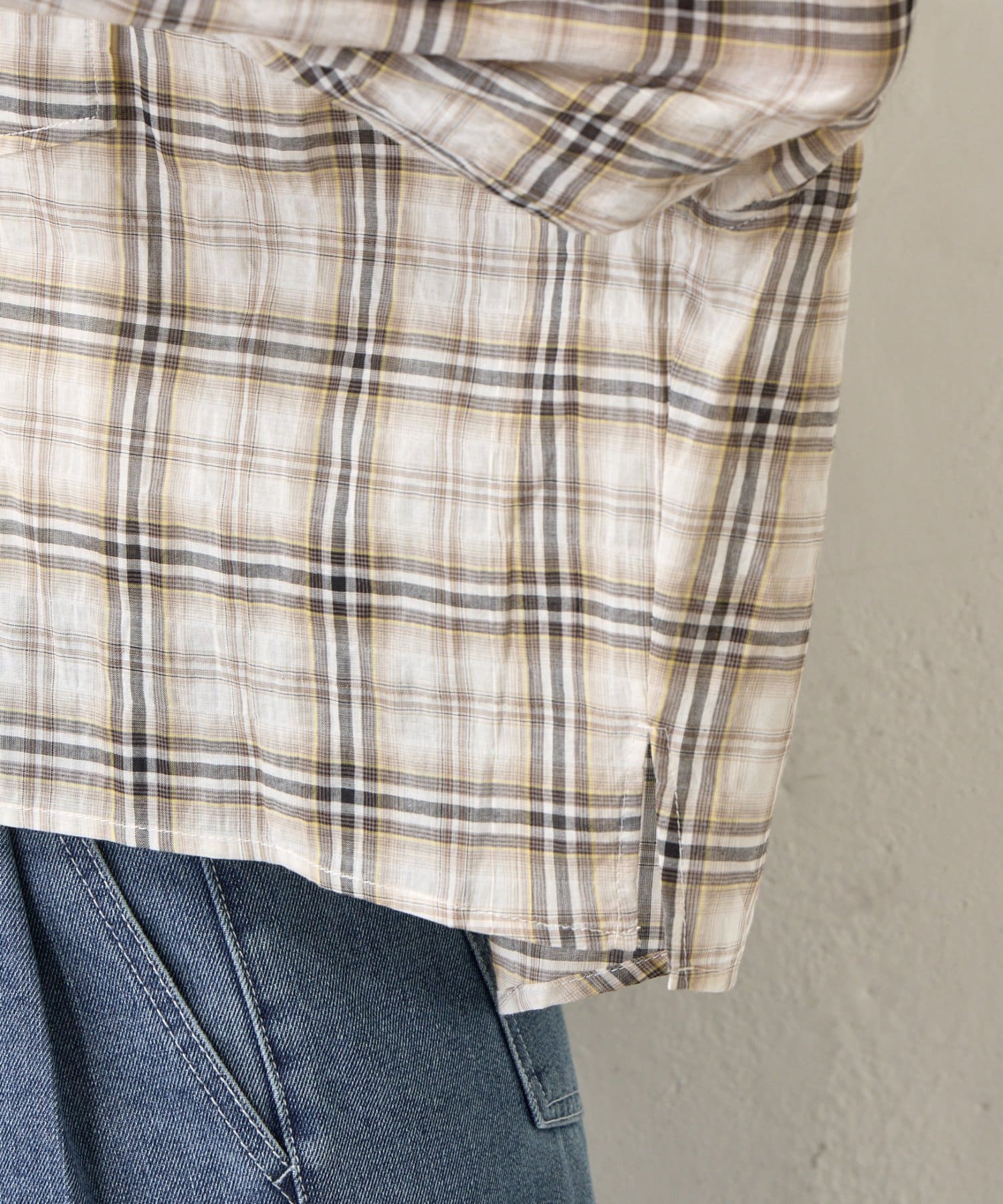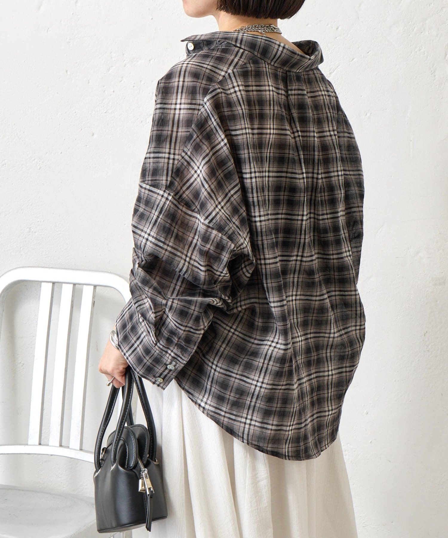 ・程よい透け感が春らしい、シアーチェックシャツ。