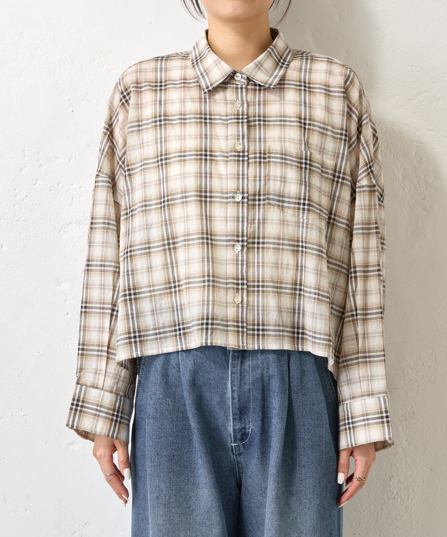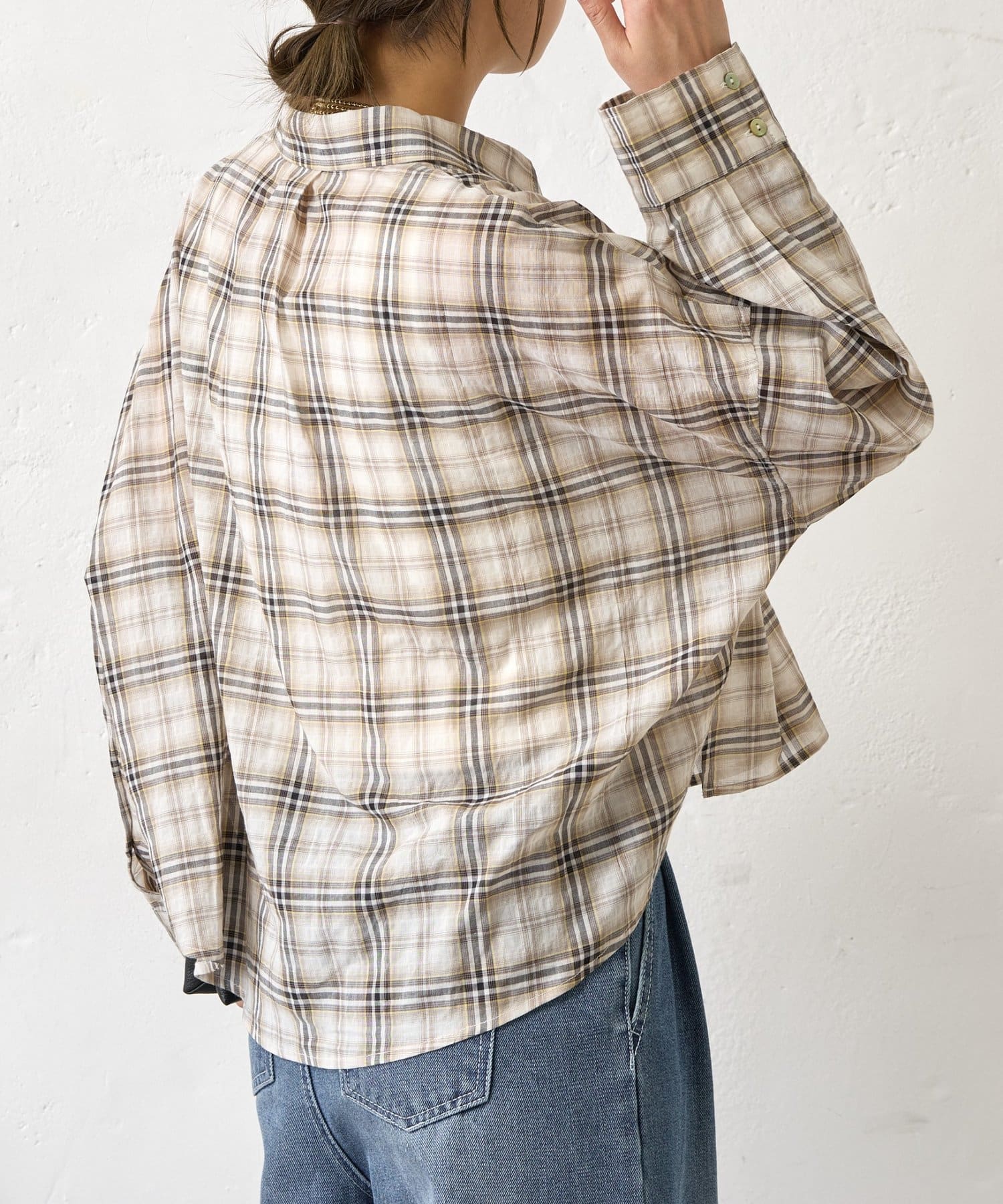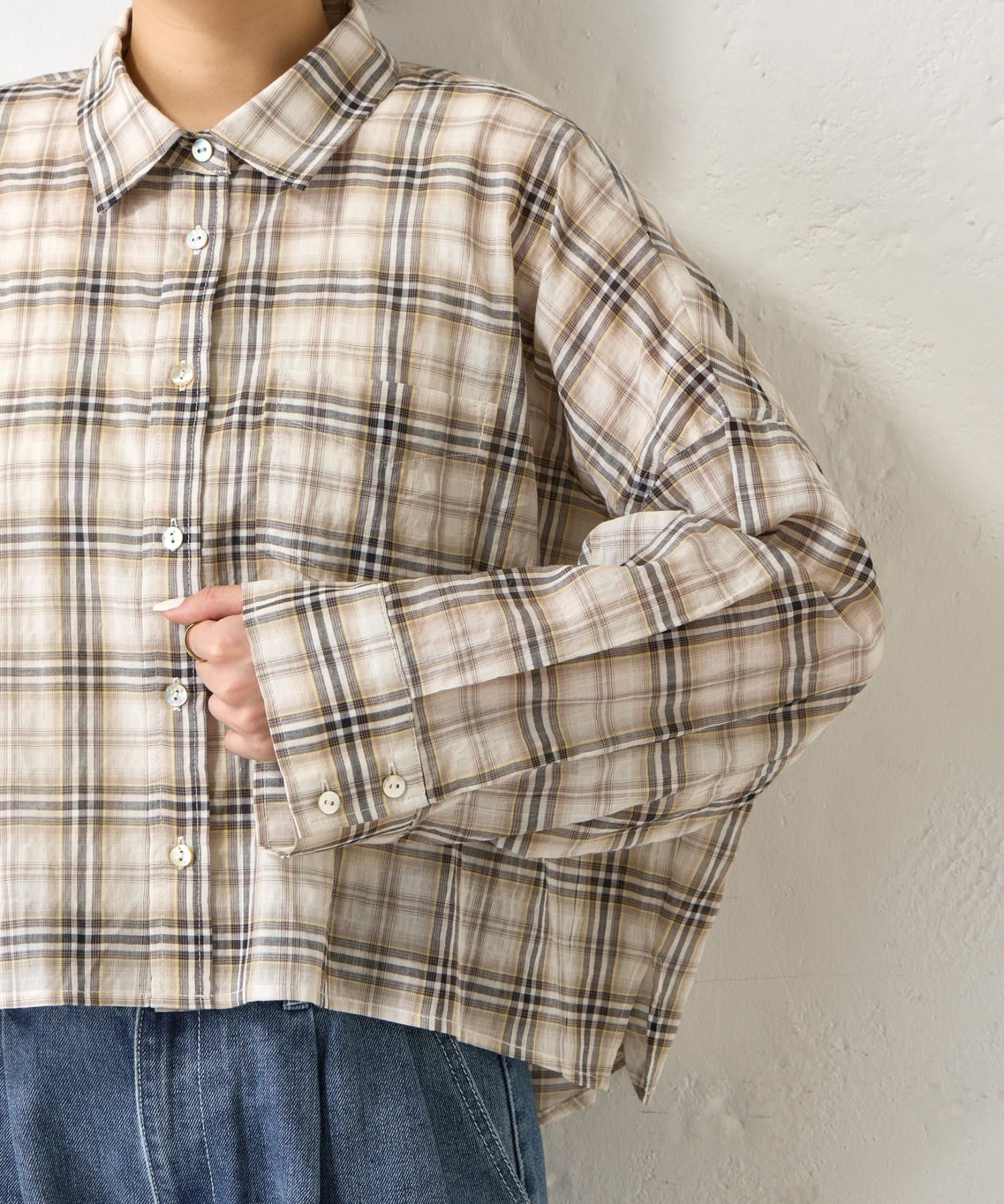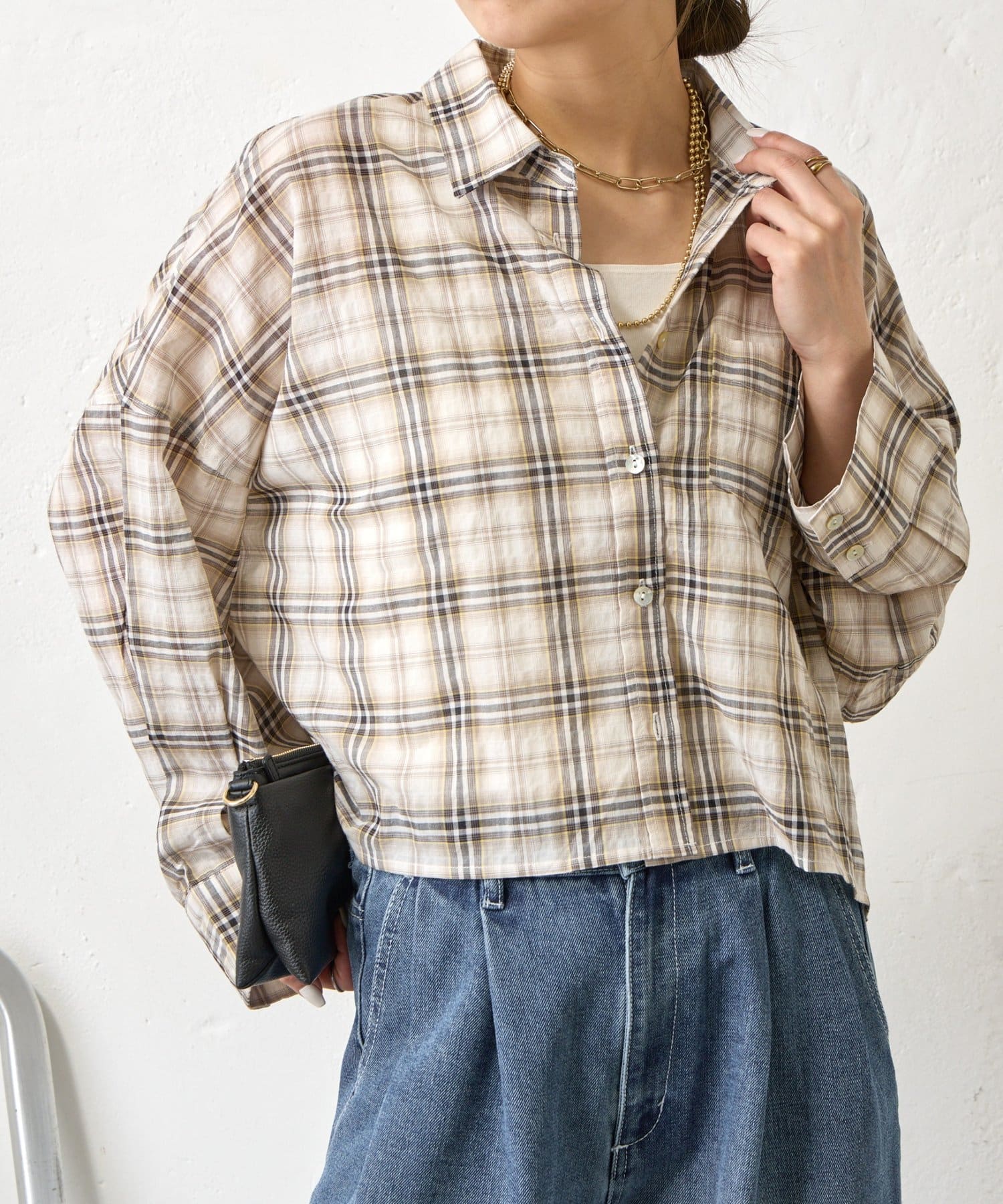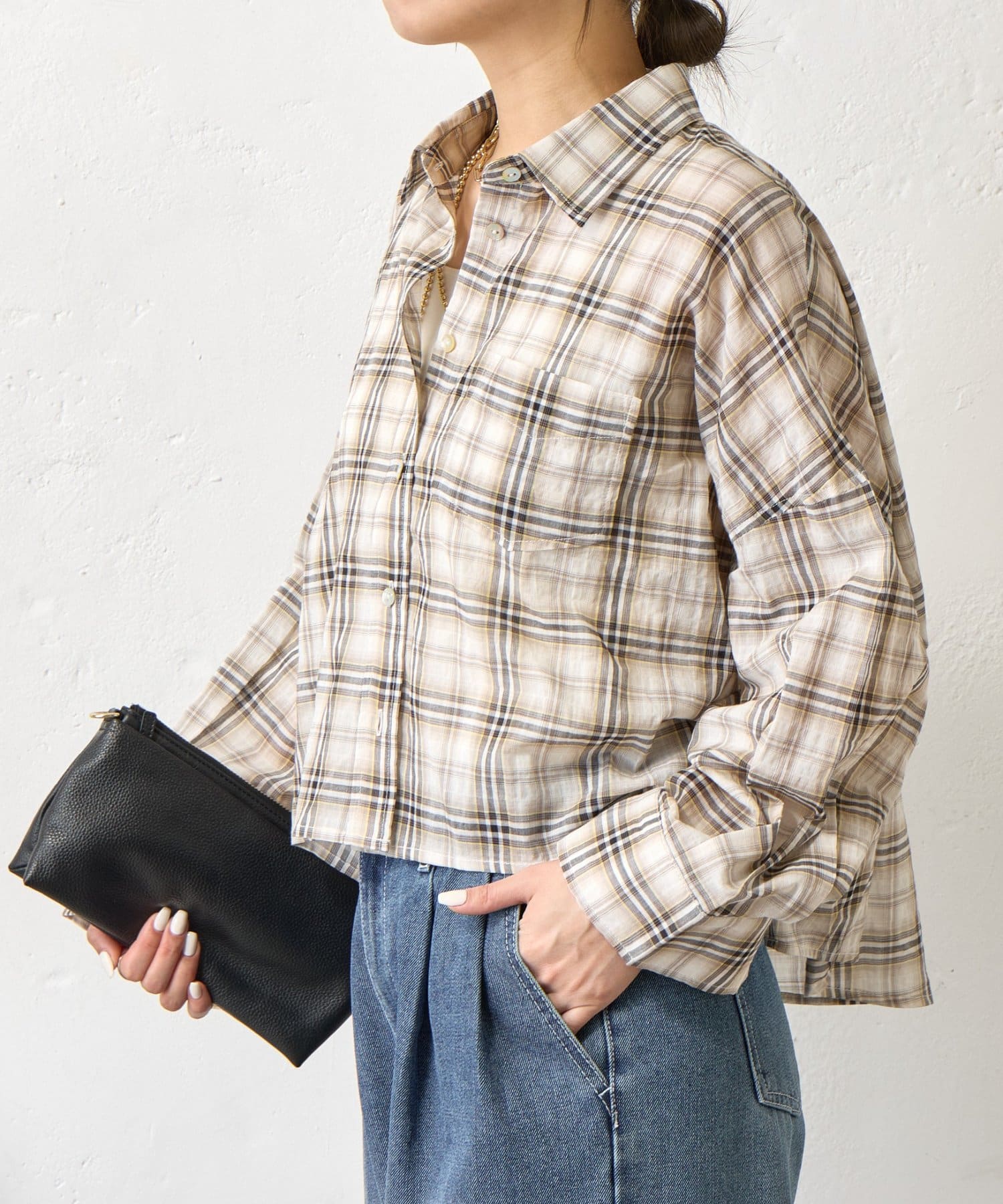 ・程よい透け感が春らしい、シアーチェックシャツ。