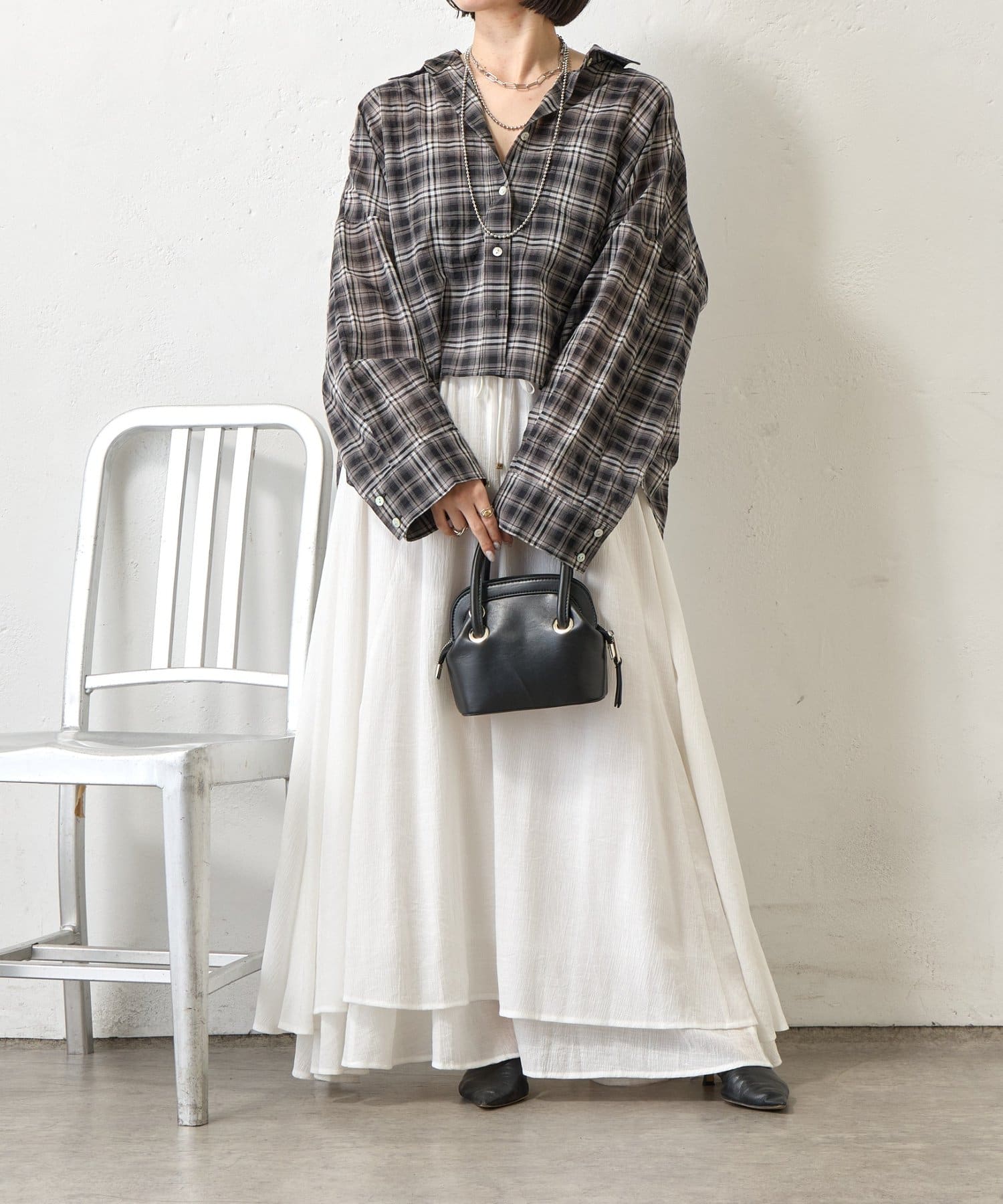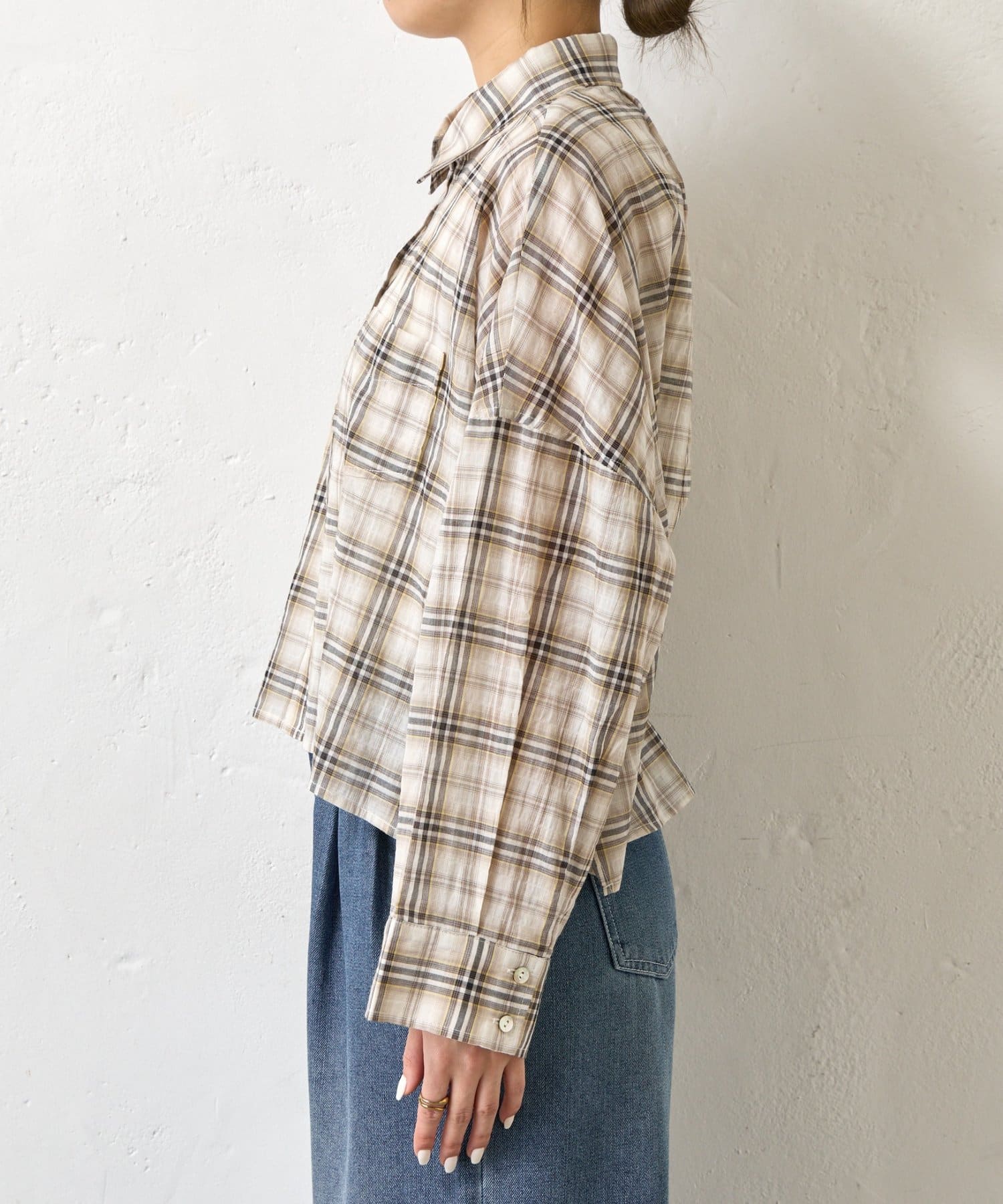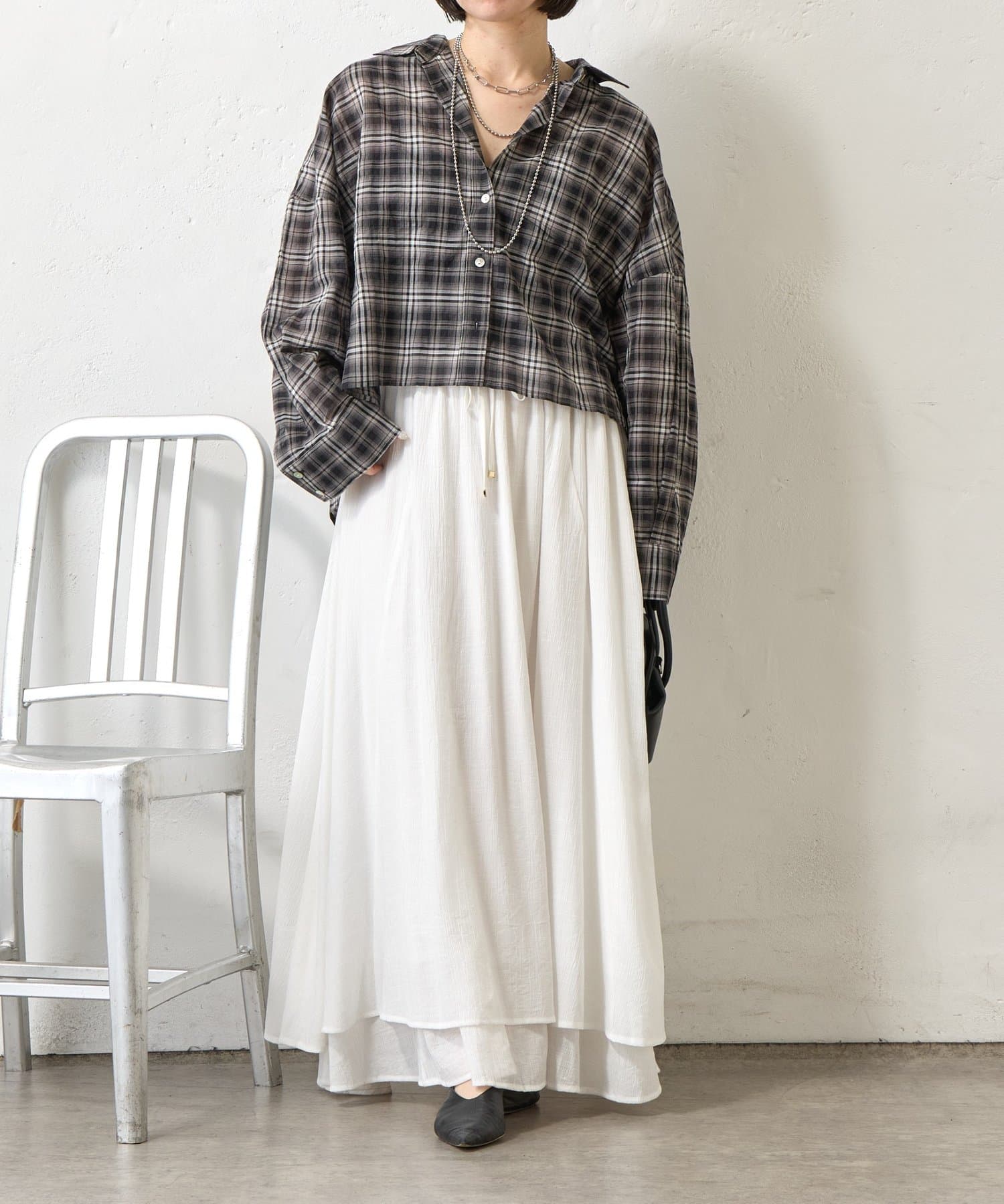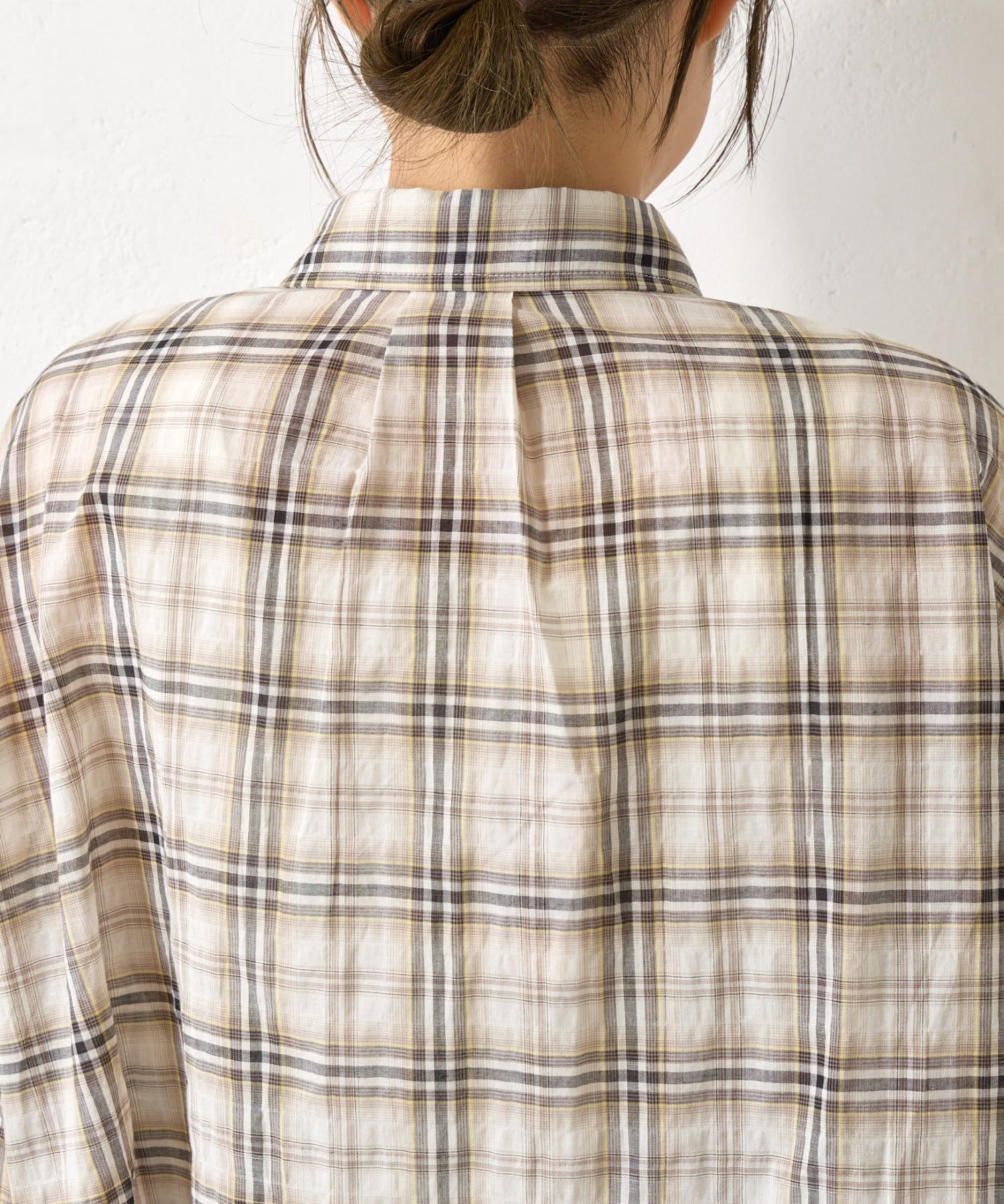 ・程よい透け感が春らしい、シアーチェックシャツ。