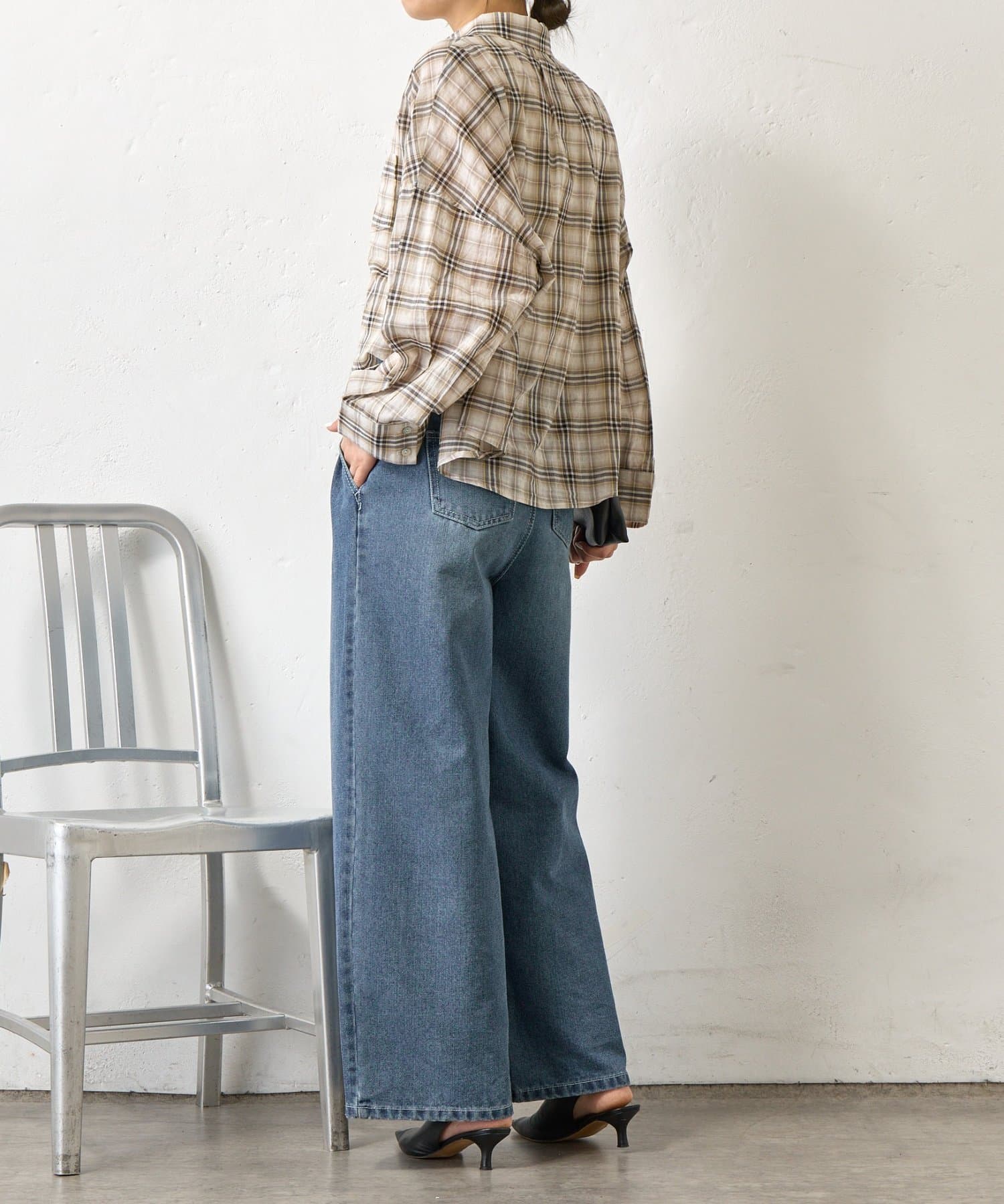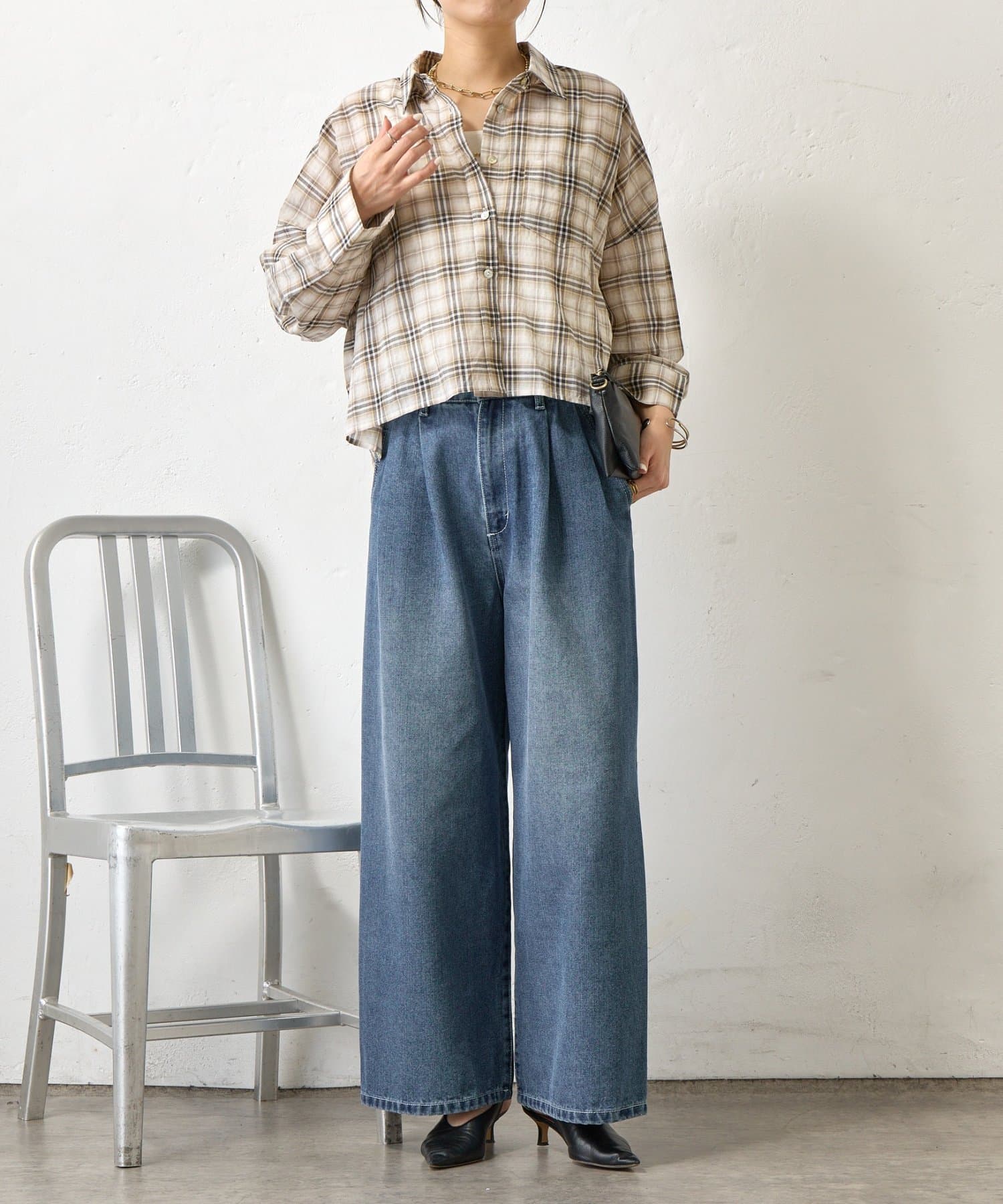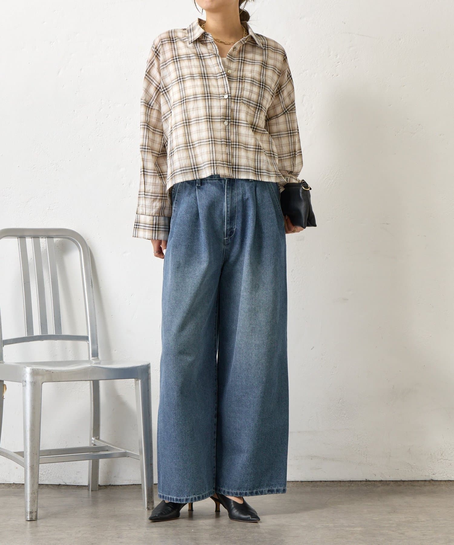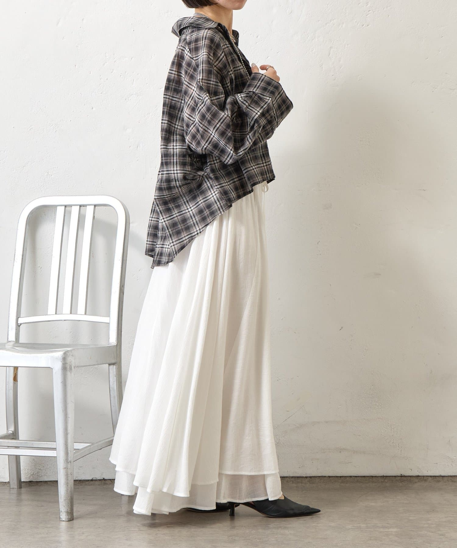 ・程よい透け感が春らしい、シアーチェックシャツ。