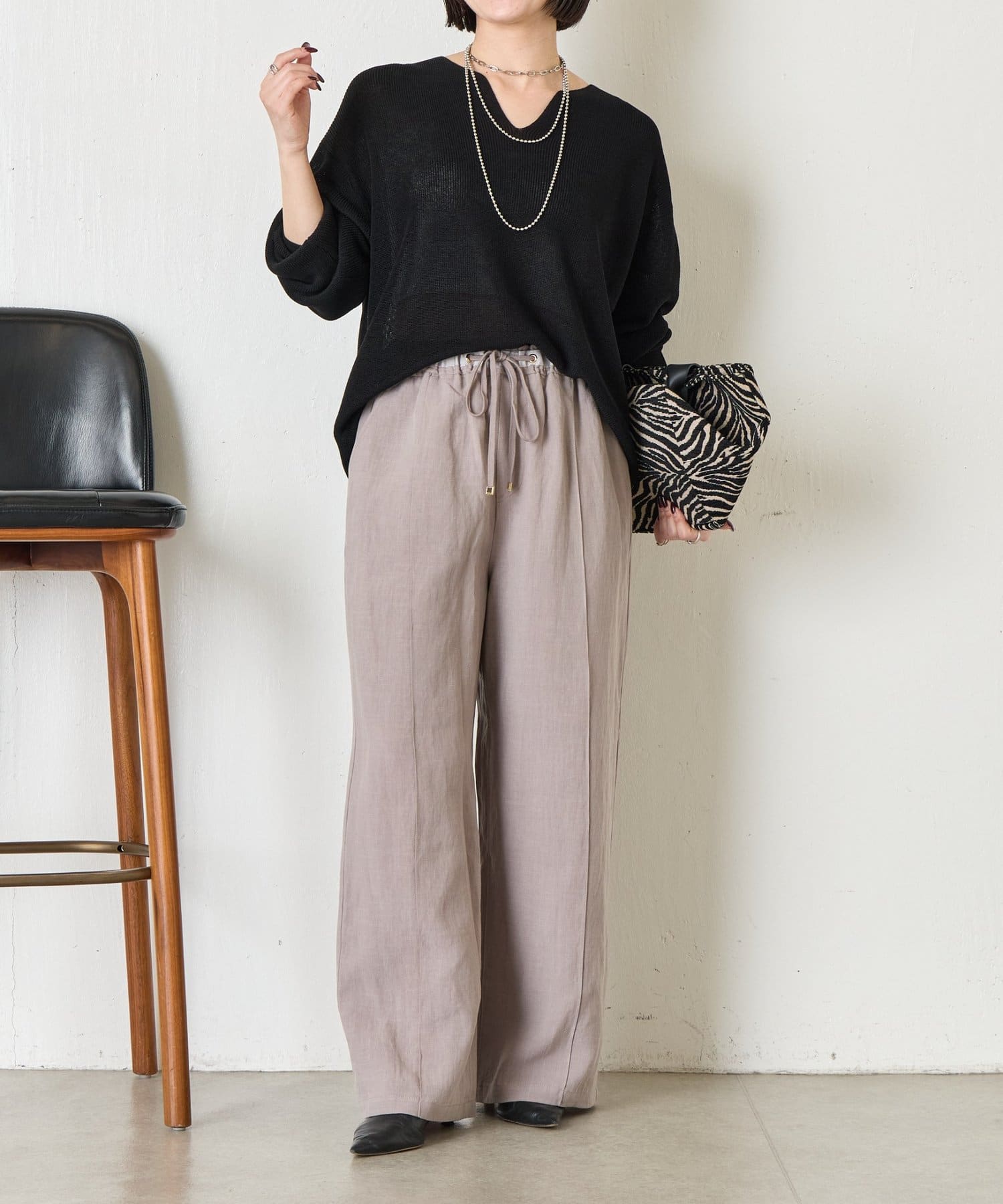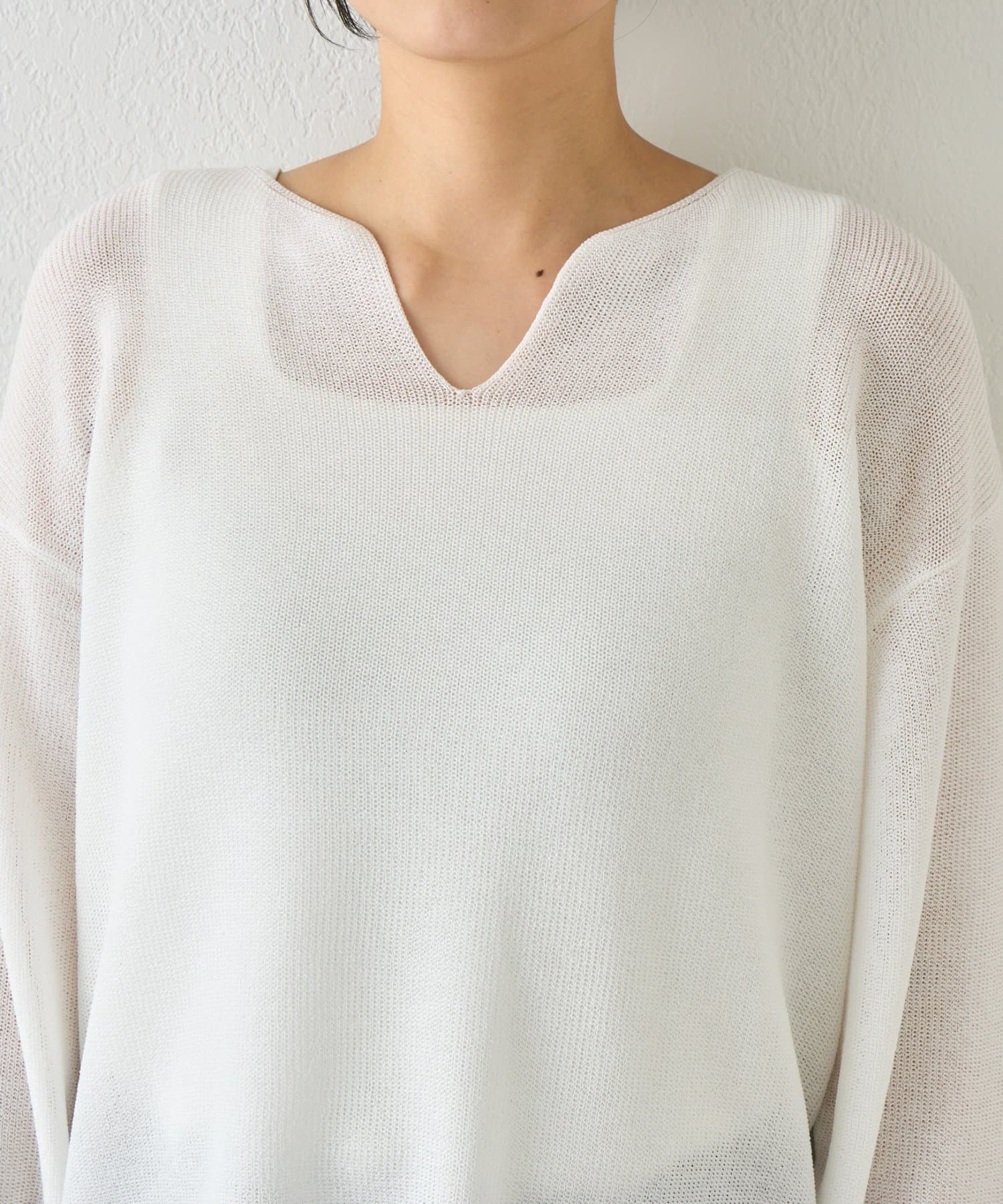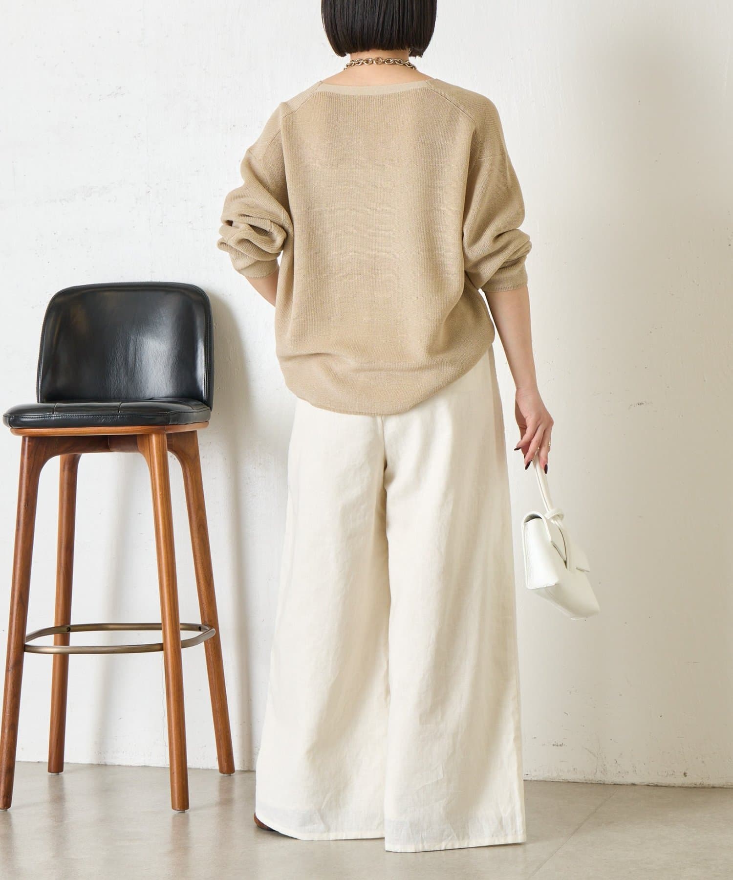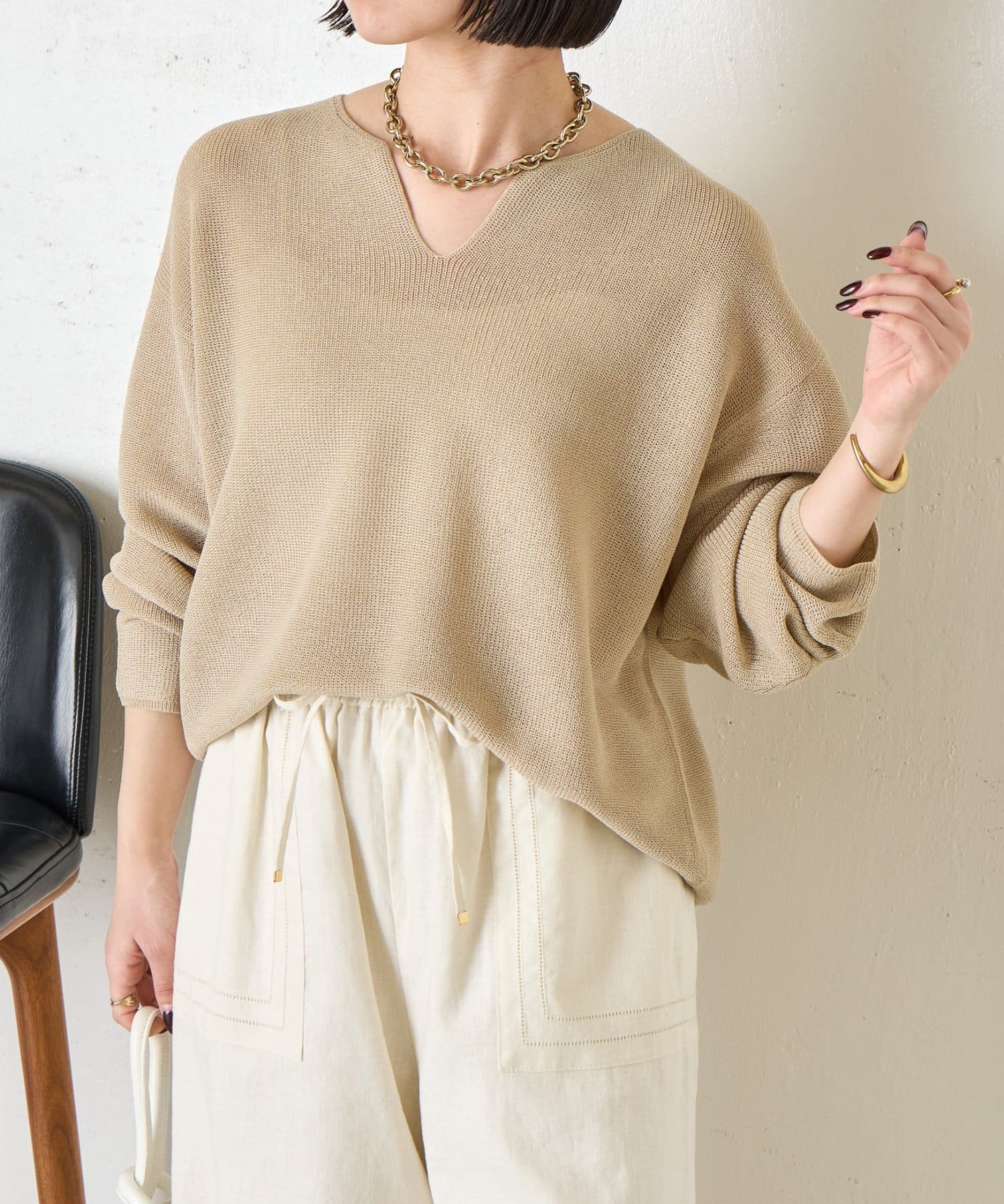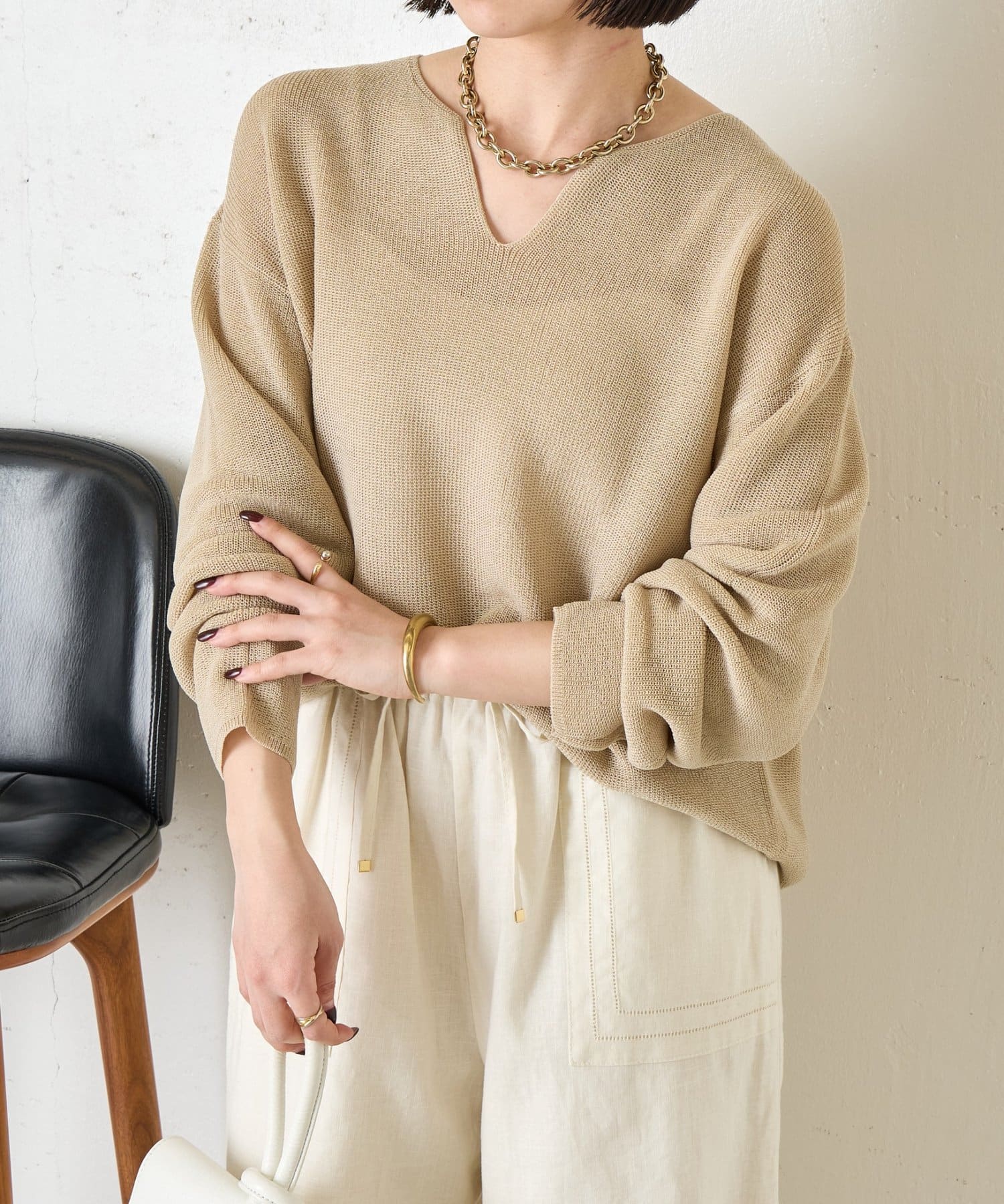 ・ギマライク素材のさらっとした風合いで、春夏も快適に着られるVネックニット