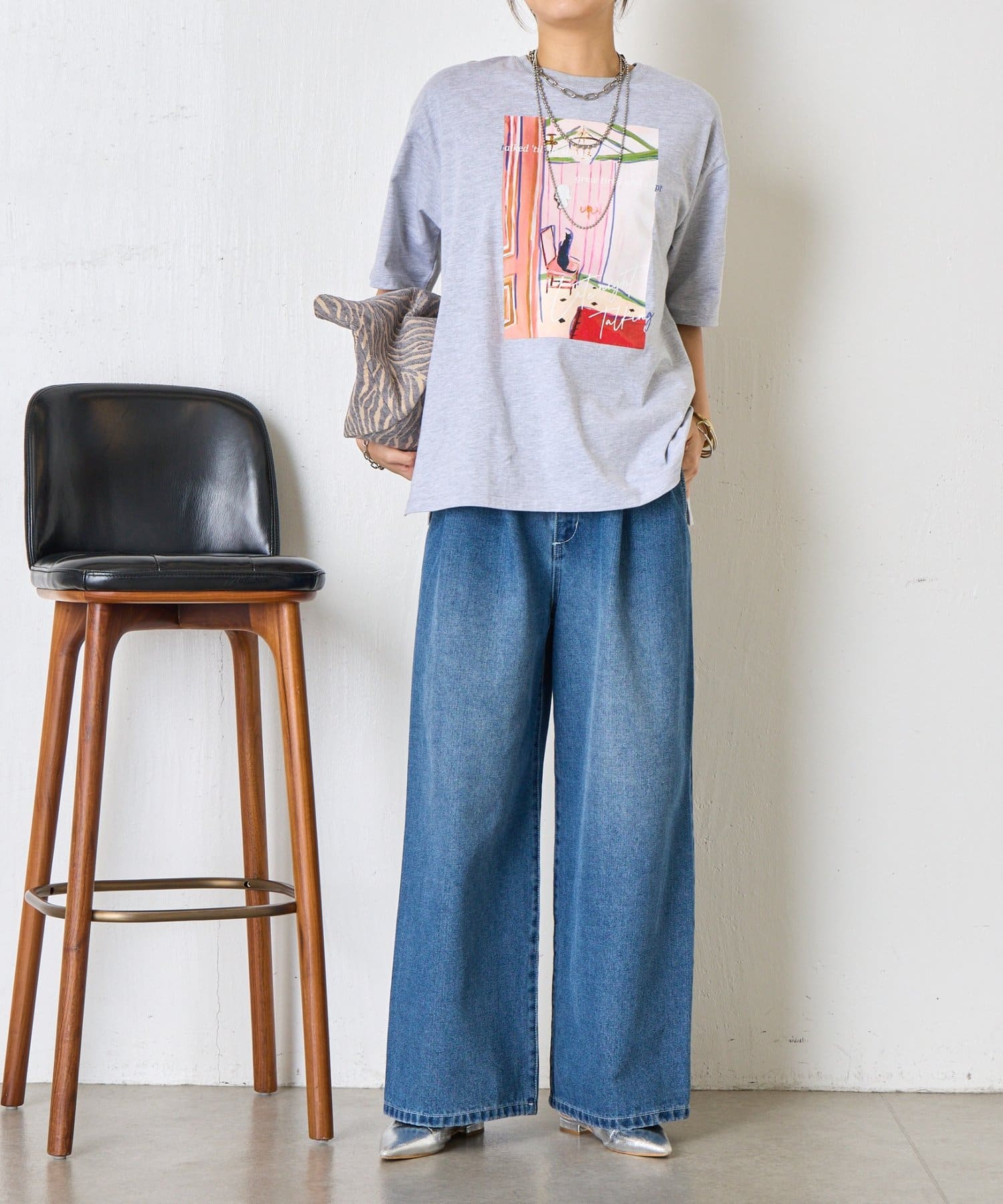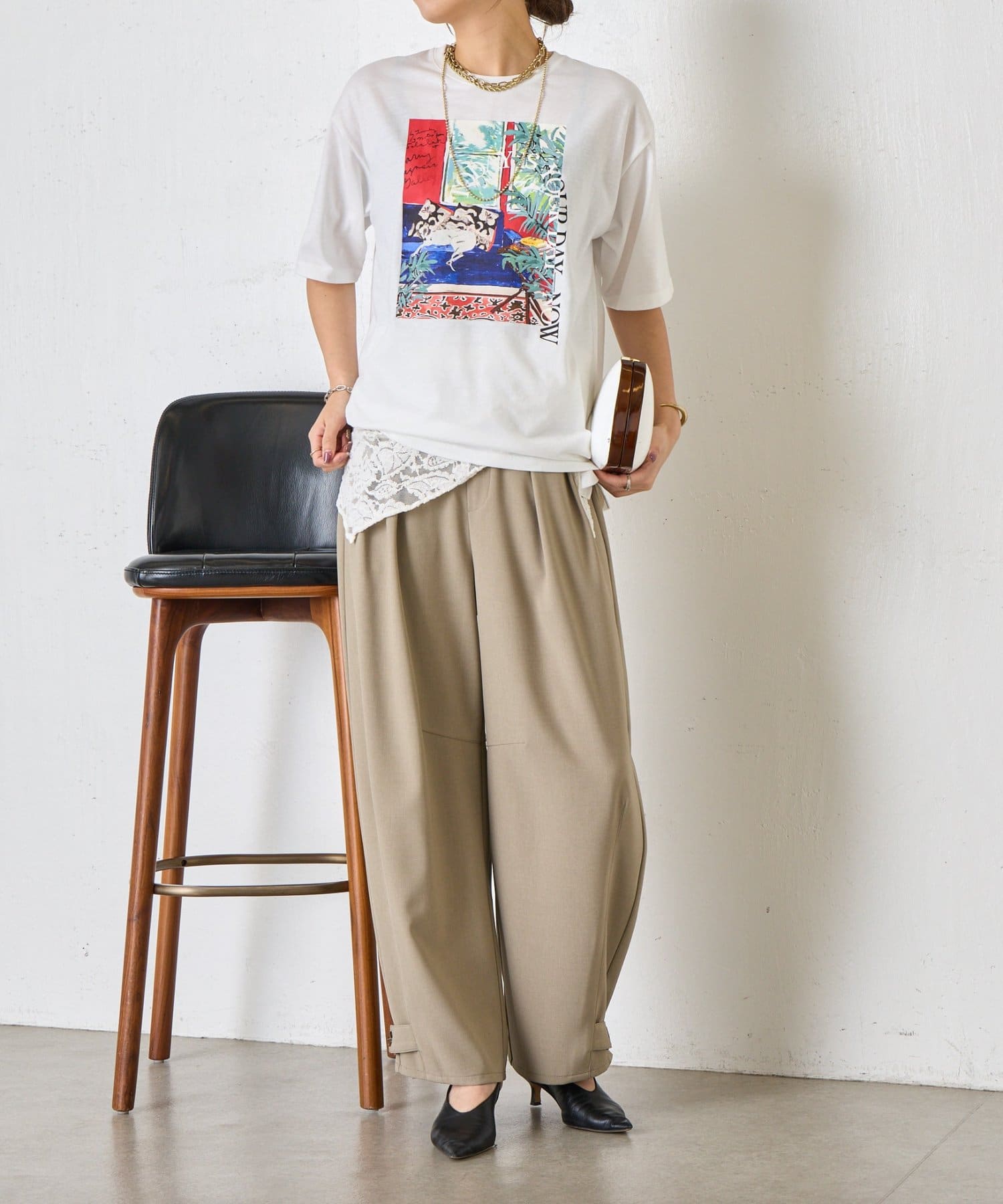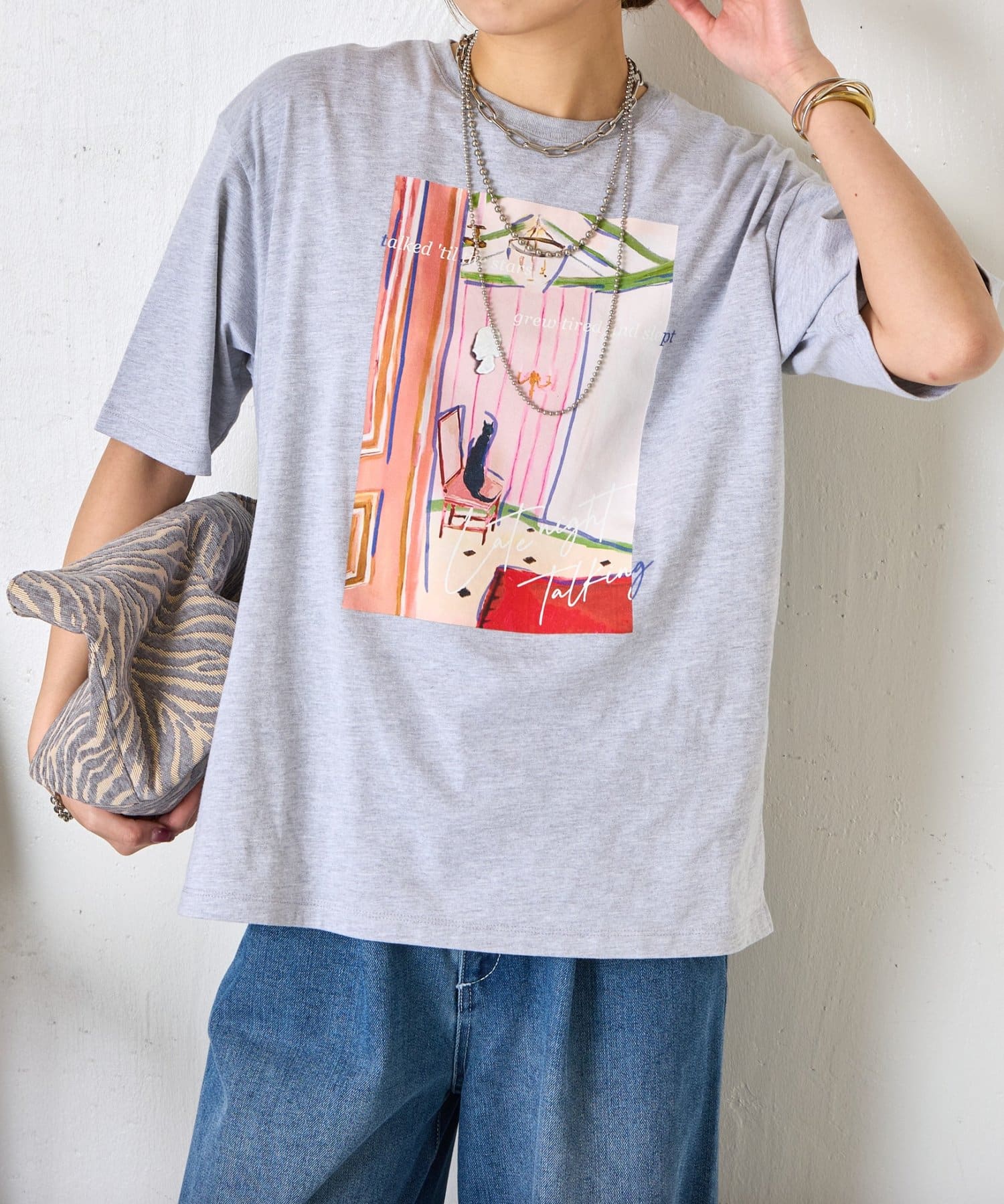 ・目を引くアートプリントが、シンプルコーデのアクセントになるTシャツ