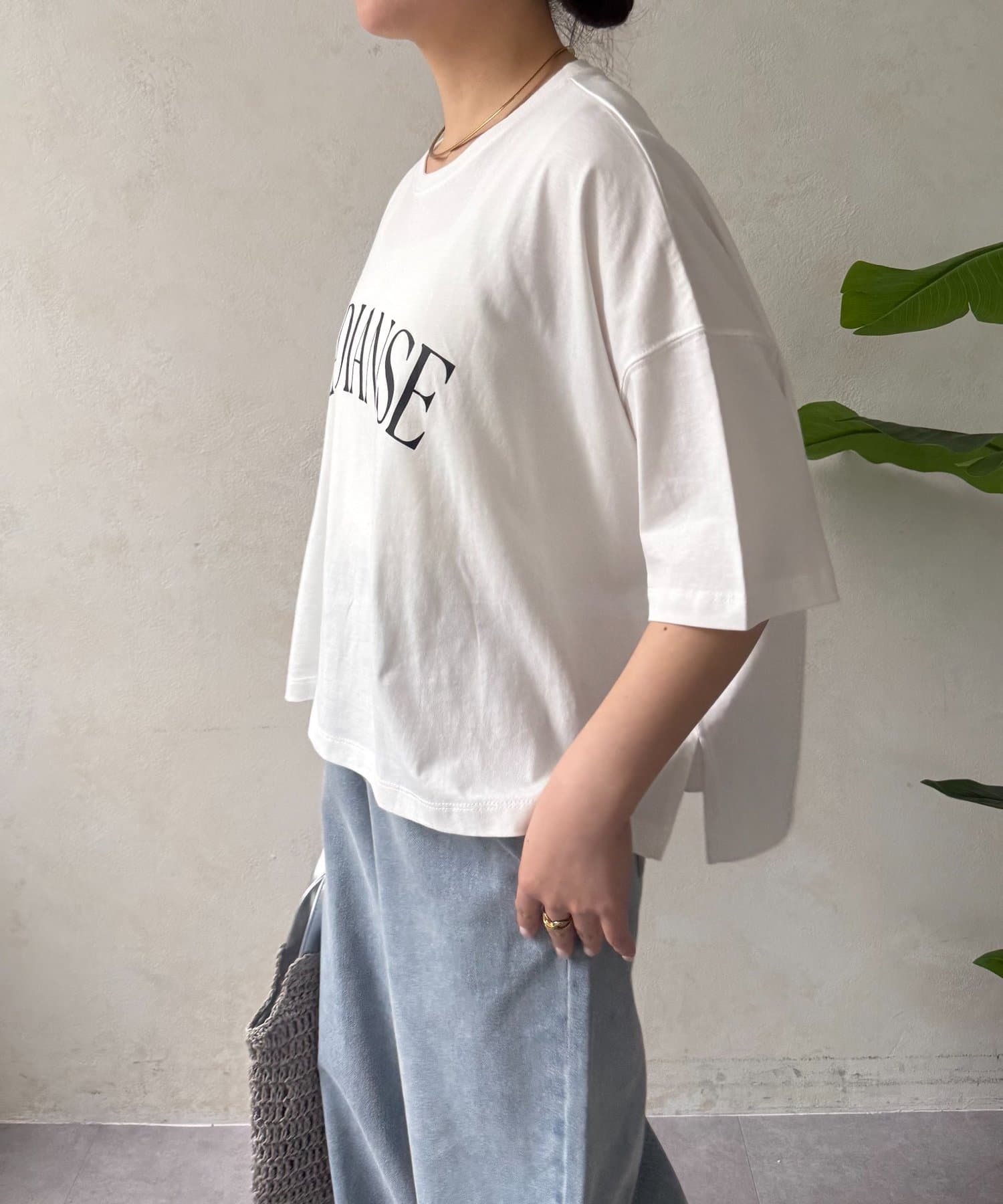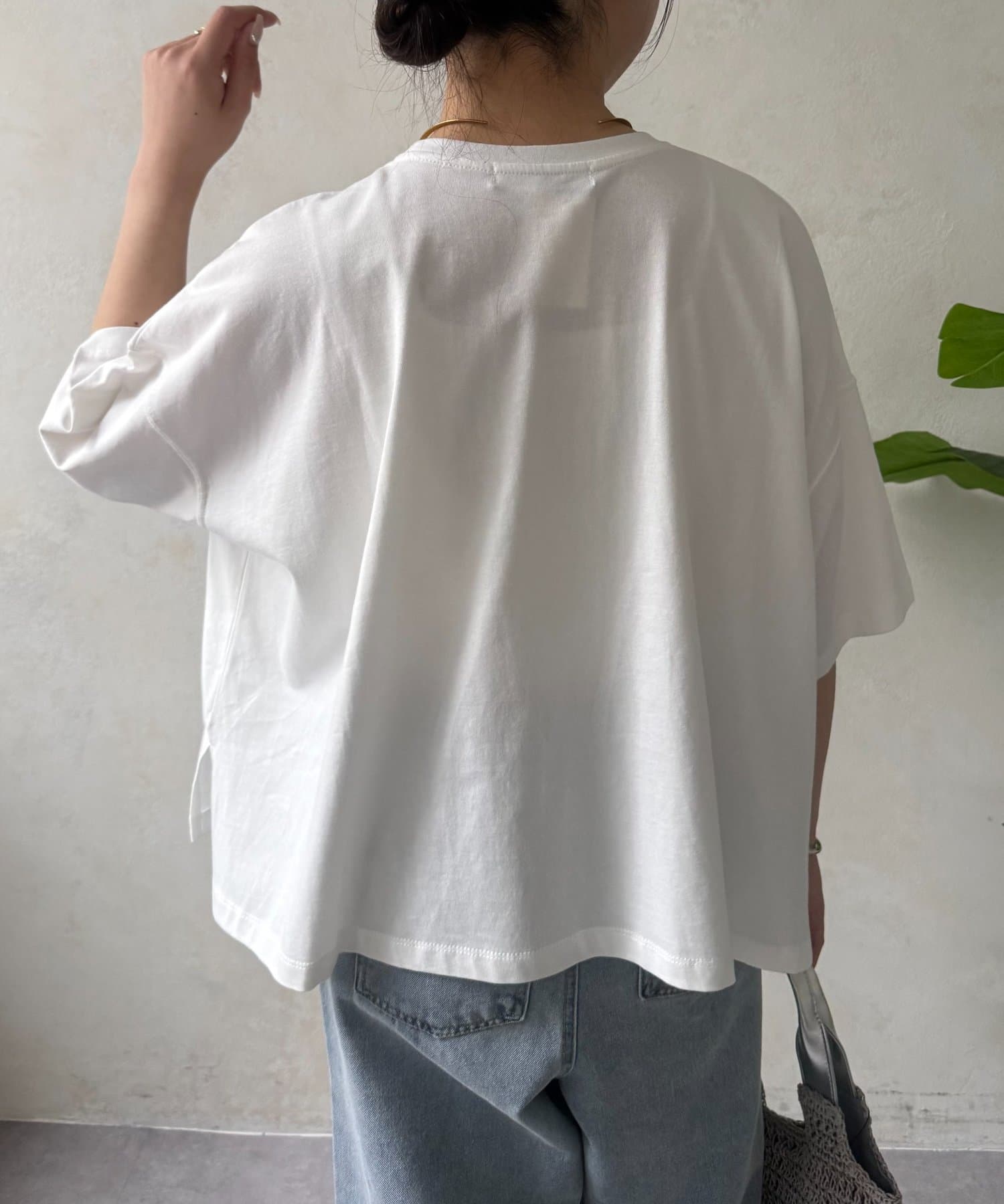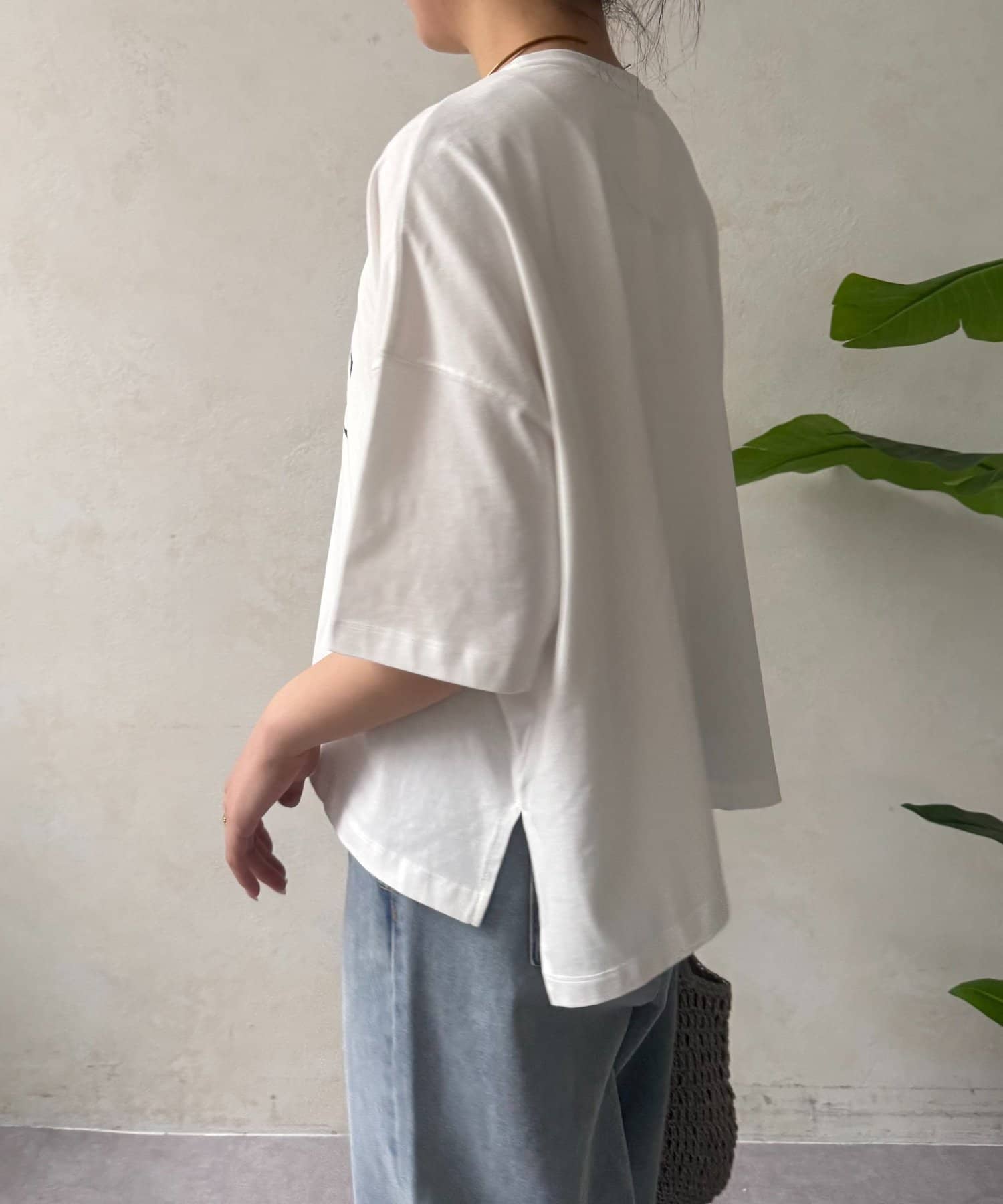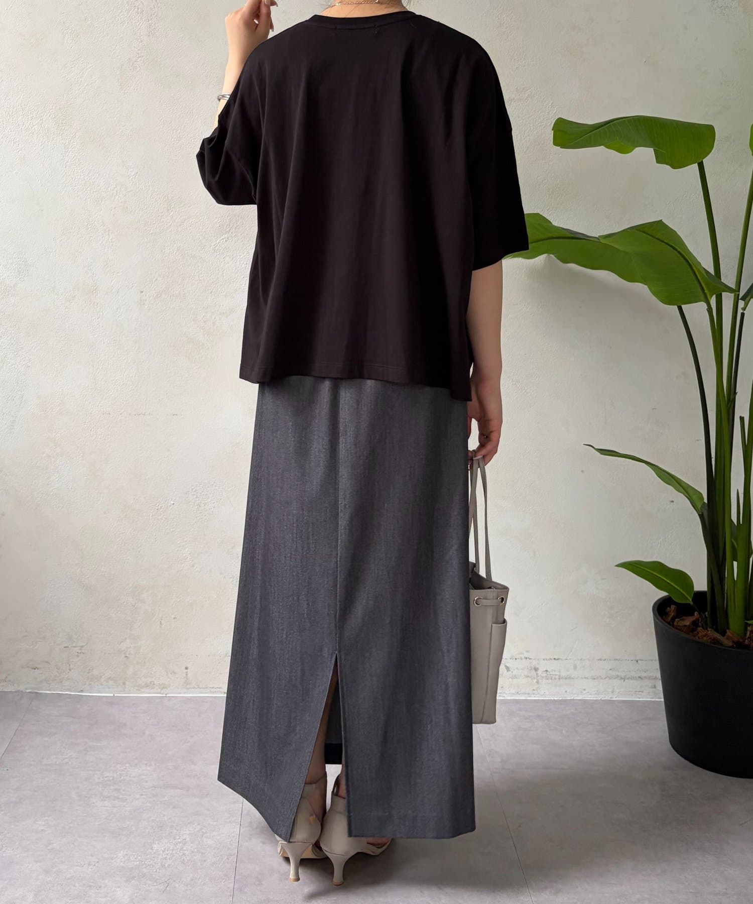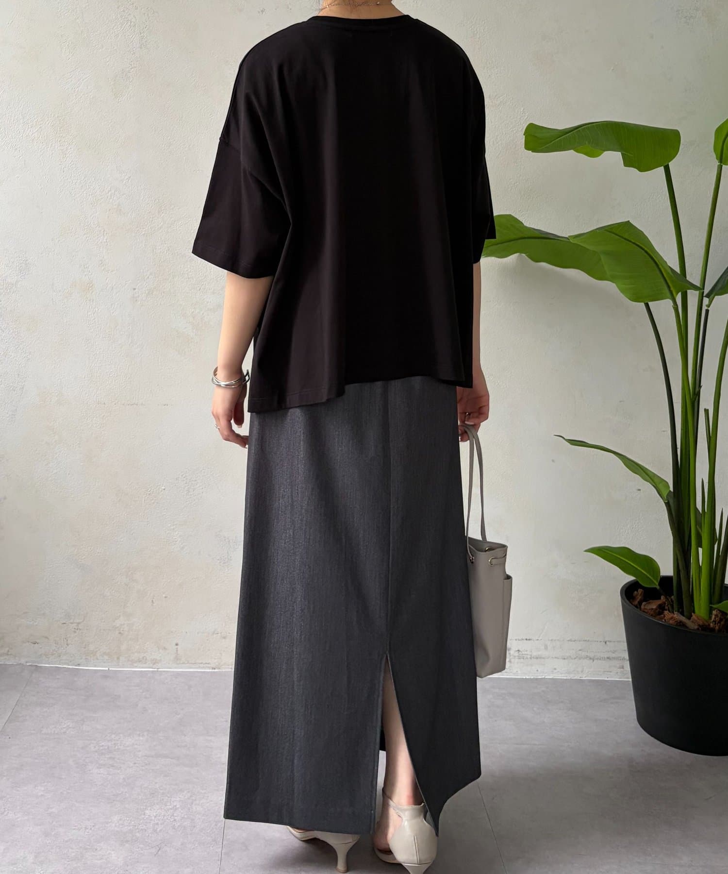 ・程よくゆったりとしたシルエットのオーバーサイズTシャツは、カジュアルながらも大人の女性らしいこなれ感を演出。