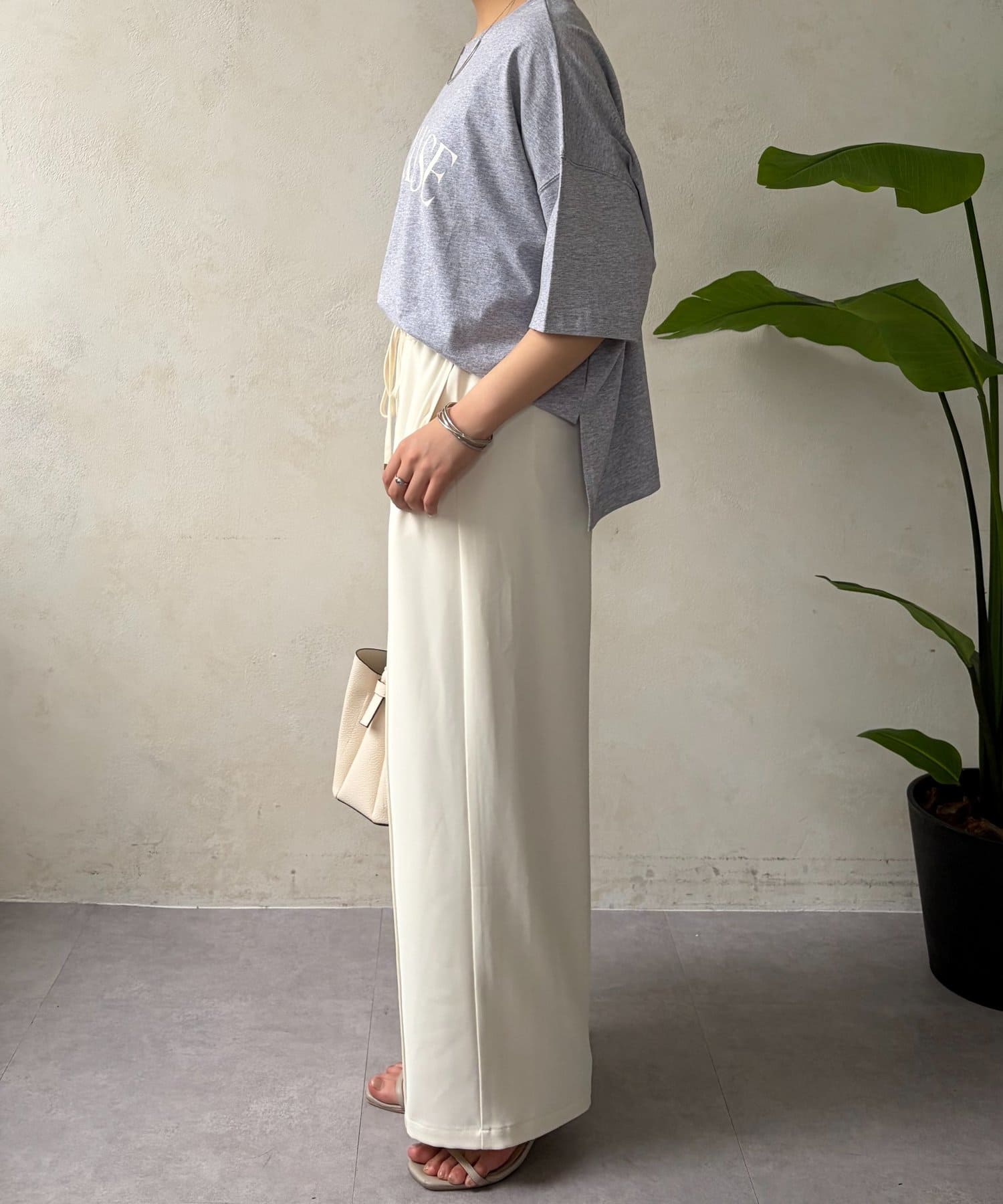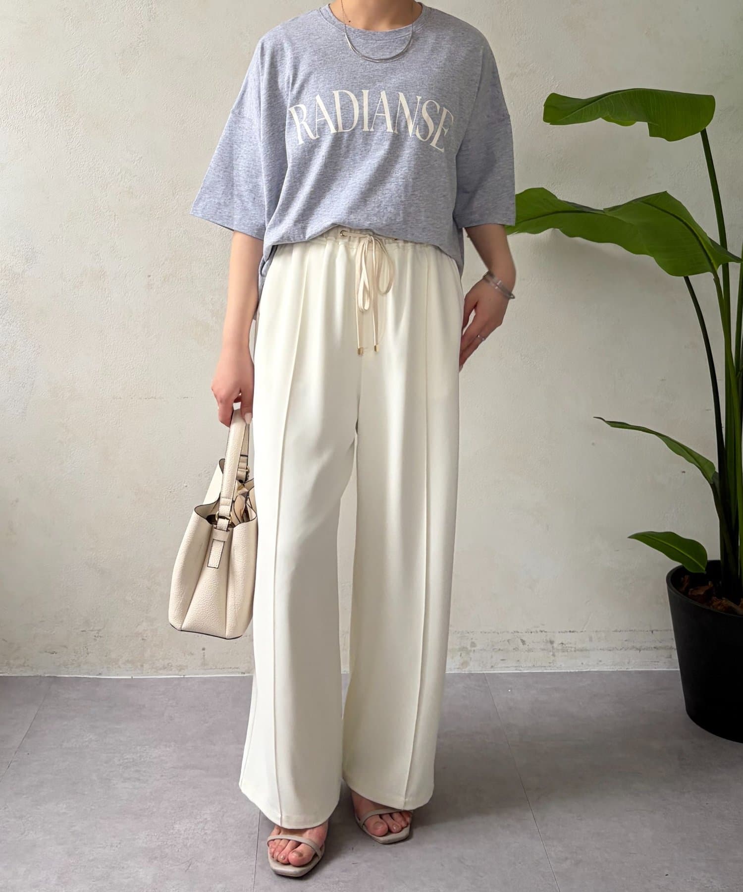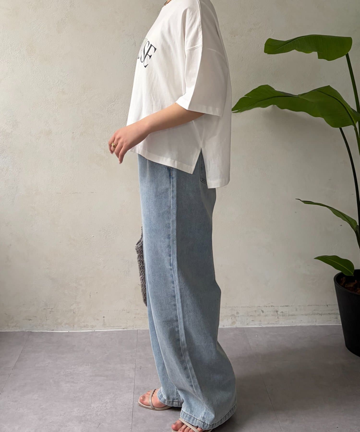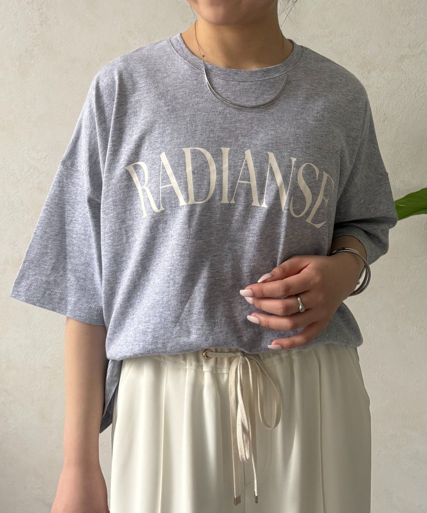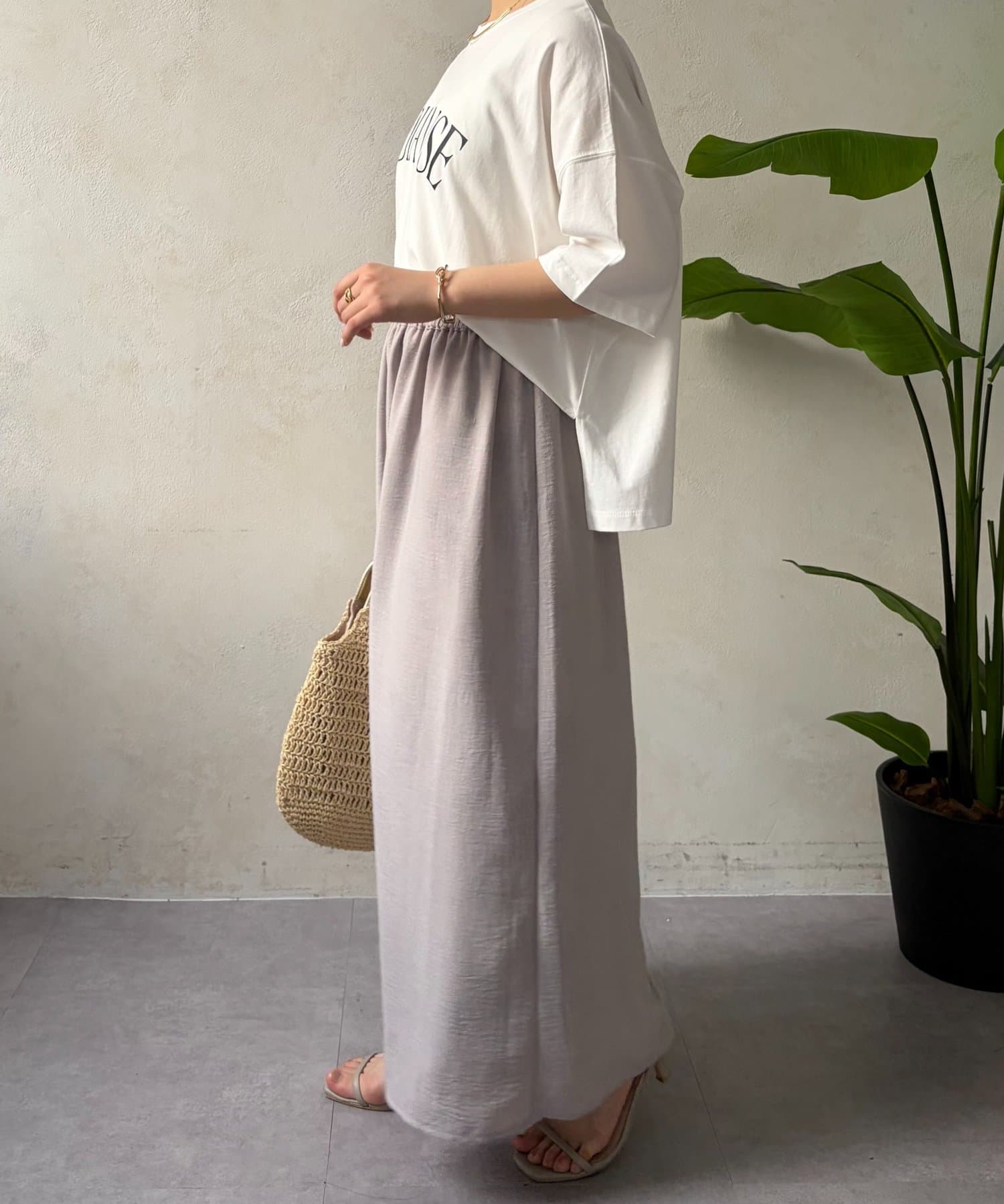 ・程よくゆったりとしたシルエットのオーバーサイズTシャツは、カジュアルながらも大人の女性らしいこなれ感を演出。