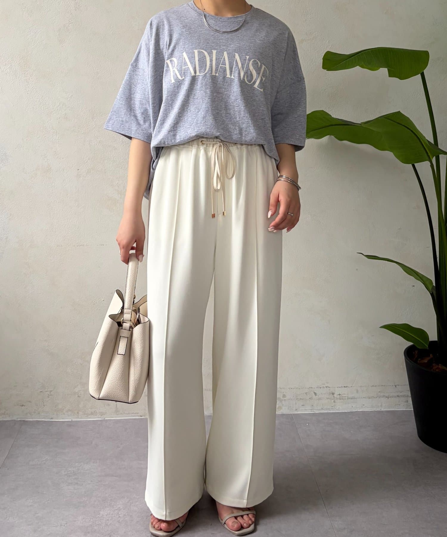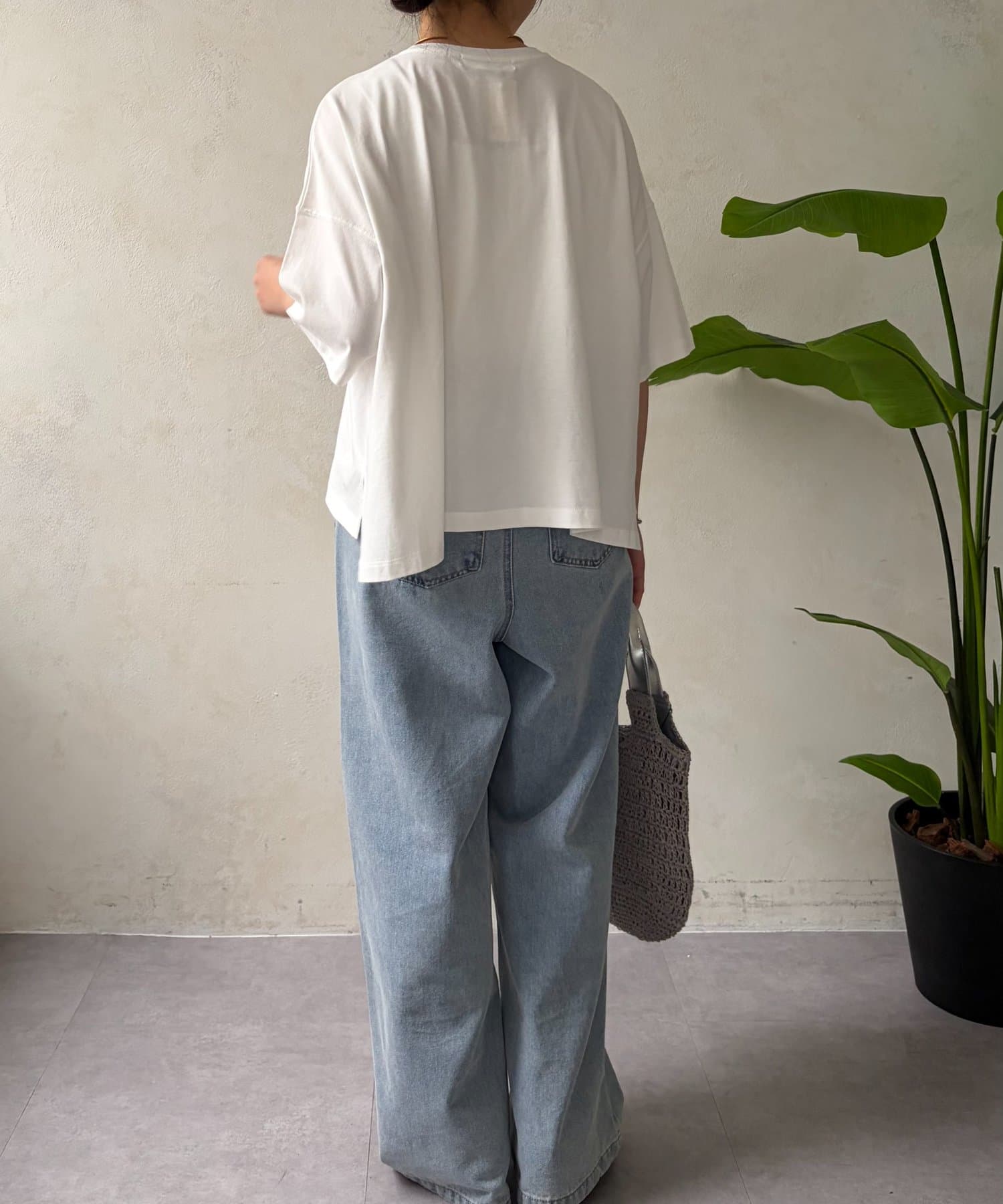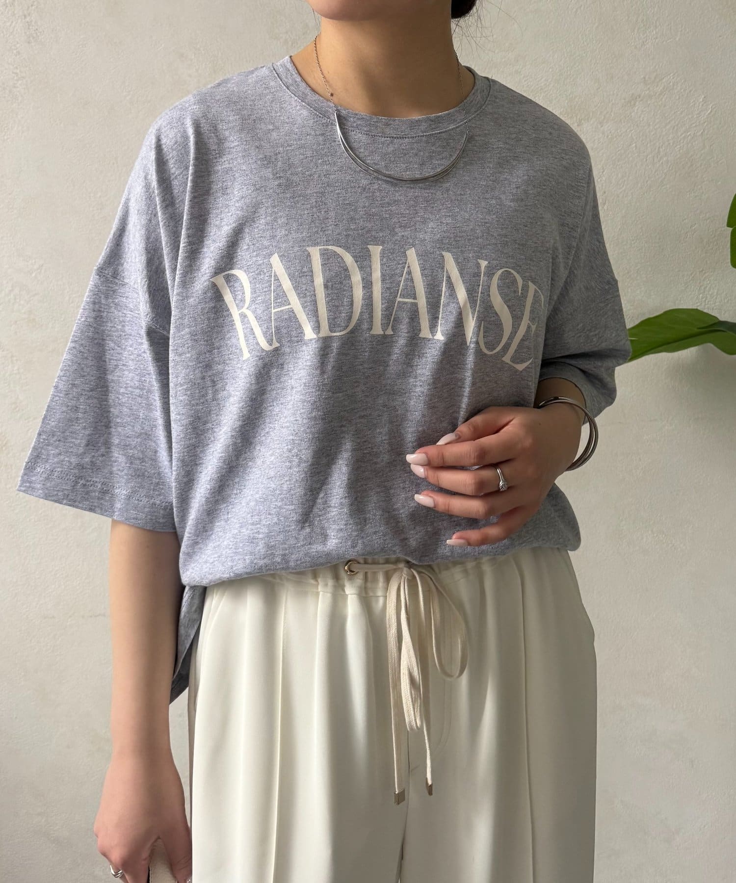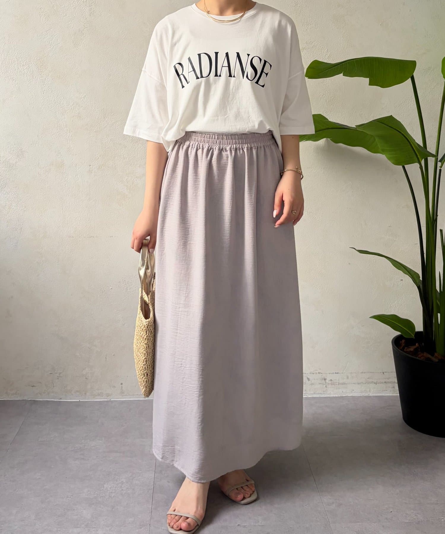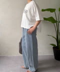 ・程よくゆったりとしたシルエットのオーバーサイズTシャツは、カジュアルながらも大人の女性らしいこなれ感を演出。