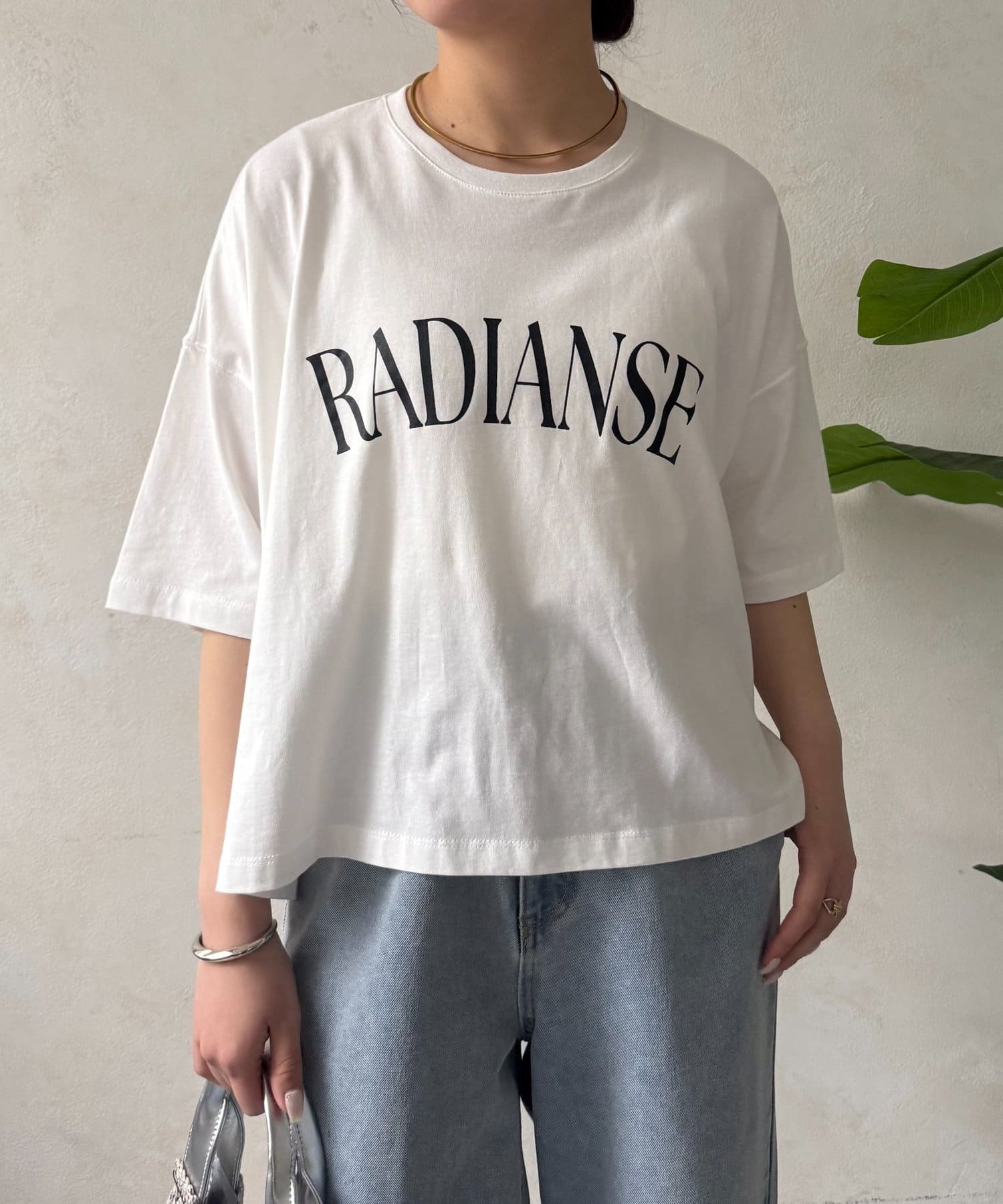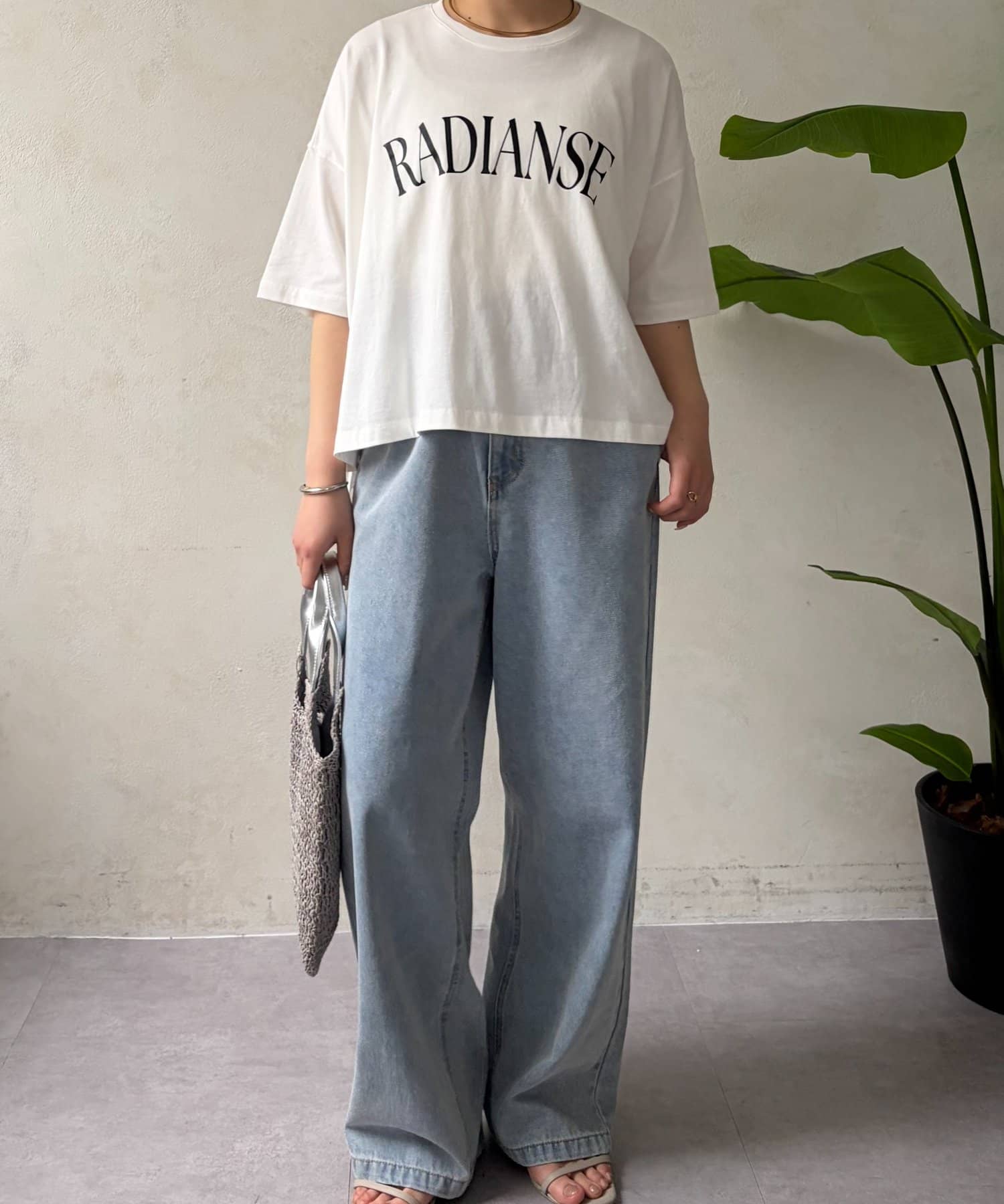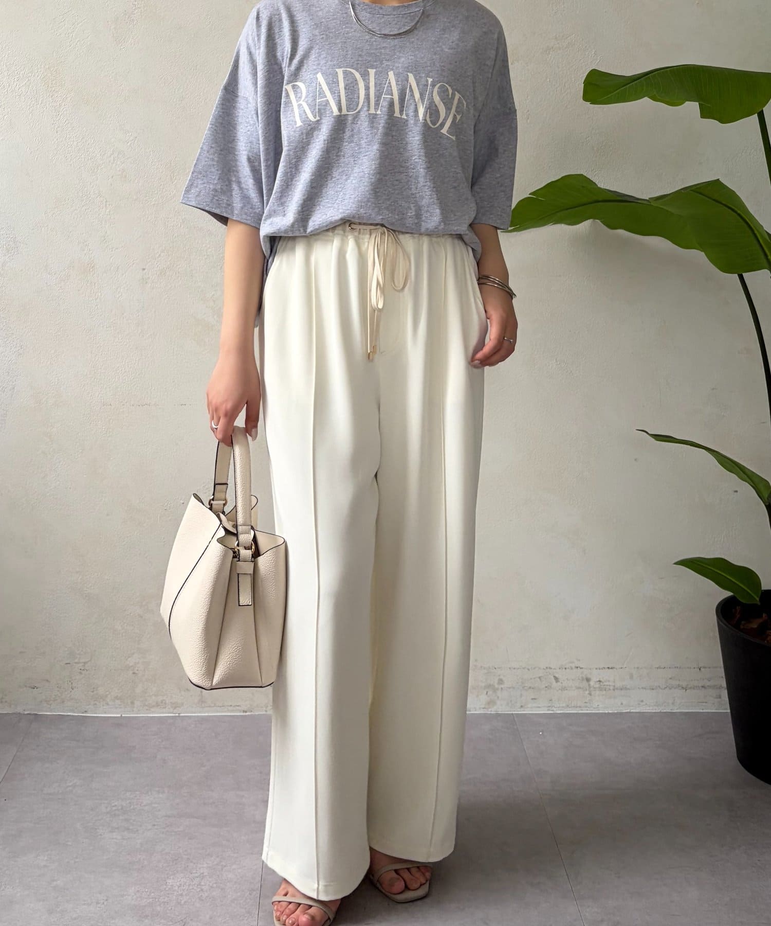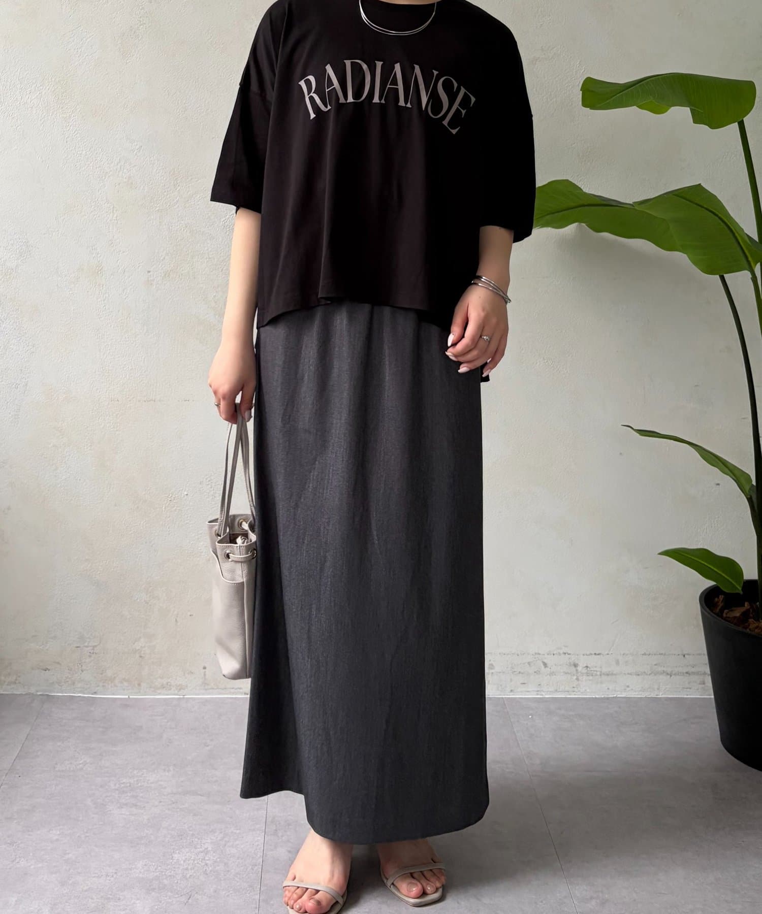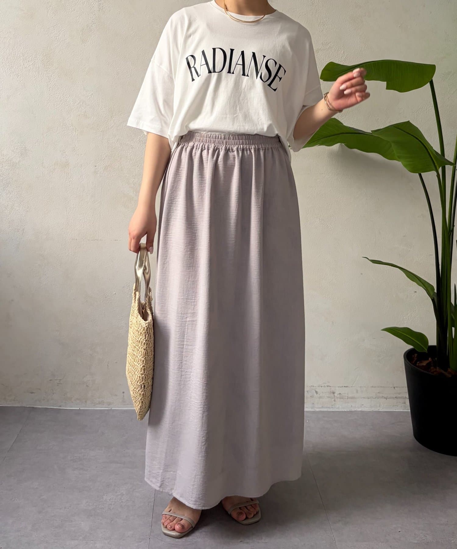 ・程よくゆったりとしたシルエットのオーバーサイズTシャツは、カジュアルながらも大人の女性らしいこなれ感を演出。