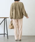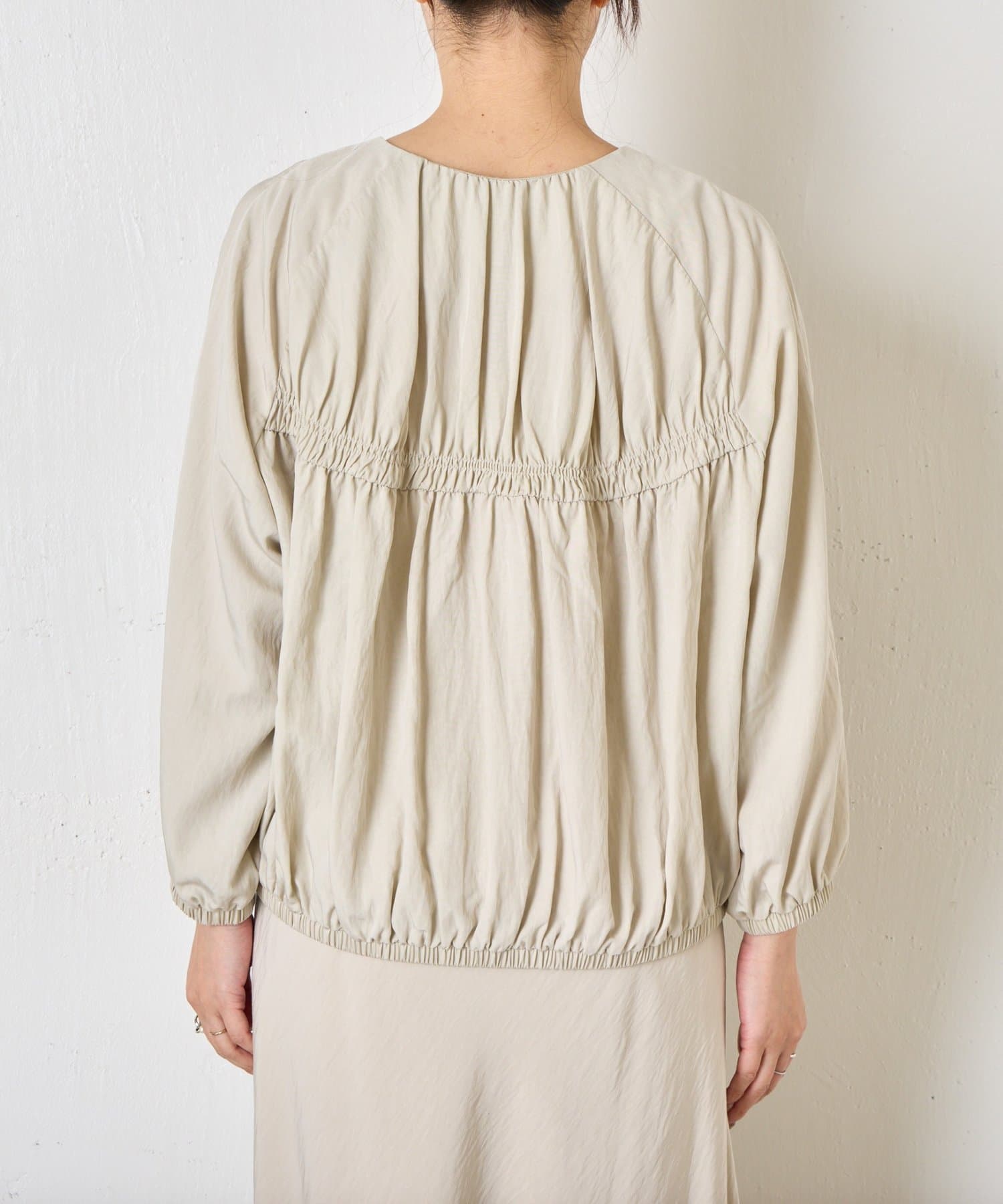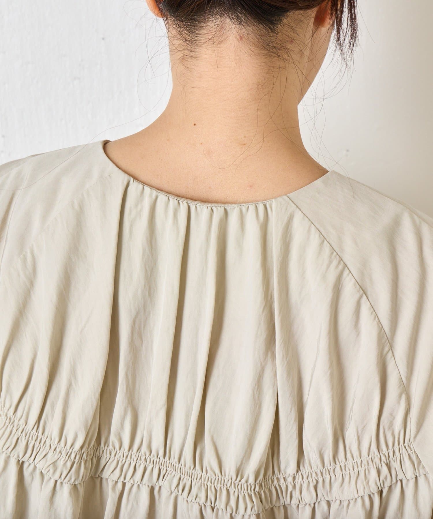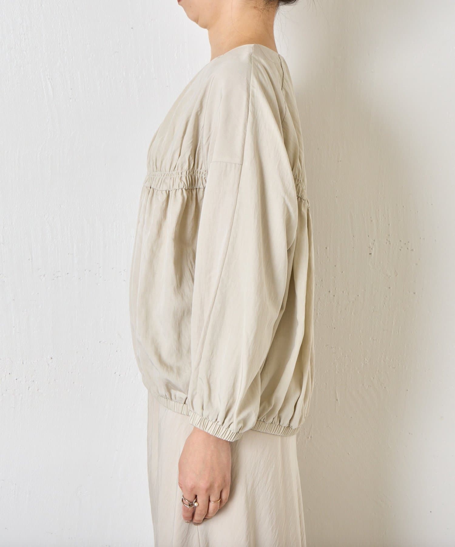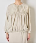 ・ギャザー切替デザインがふんわりとした立体感を生み、女性らしい印象に
