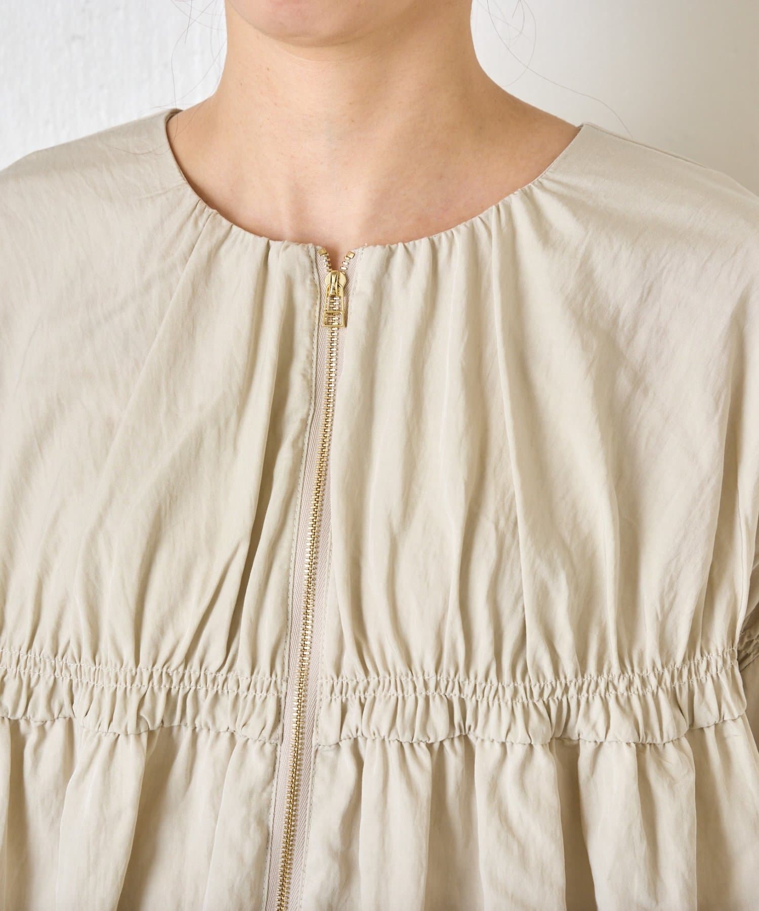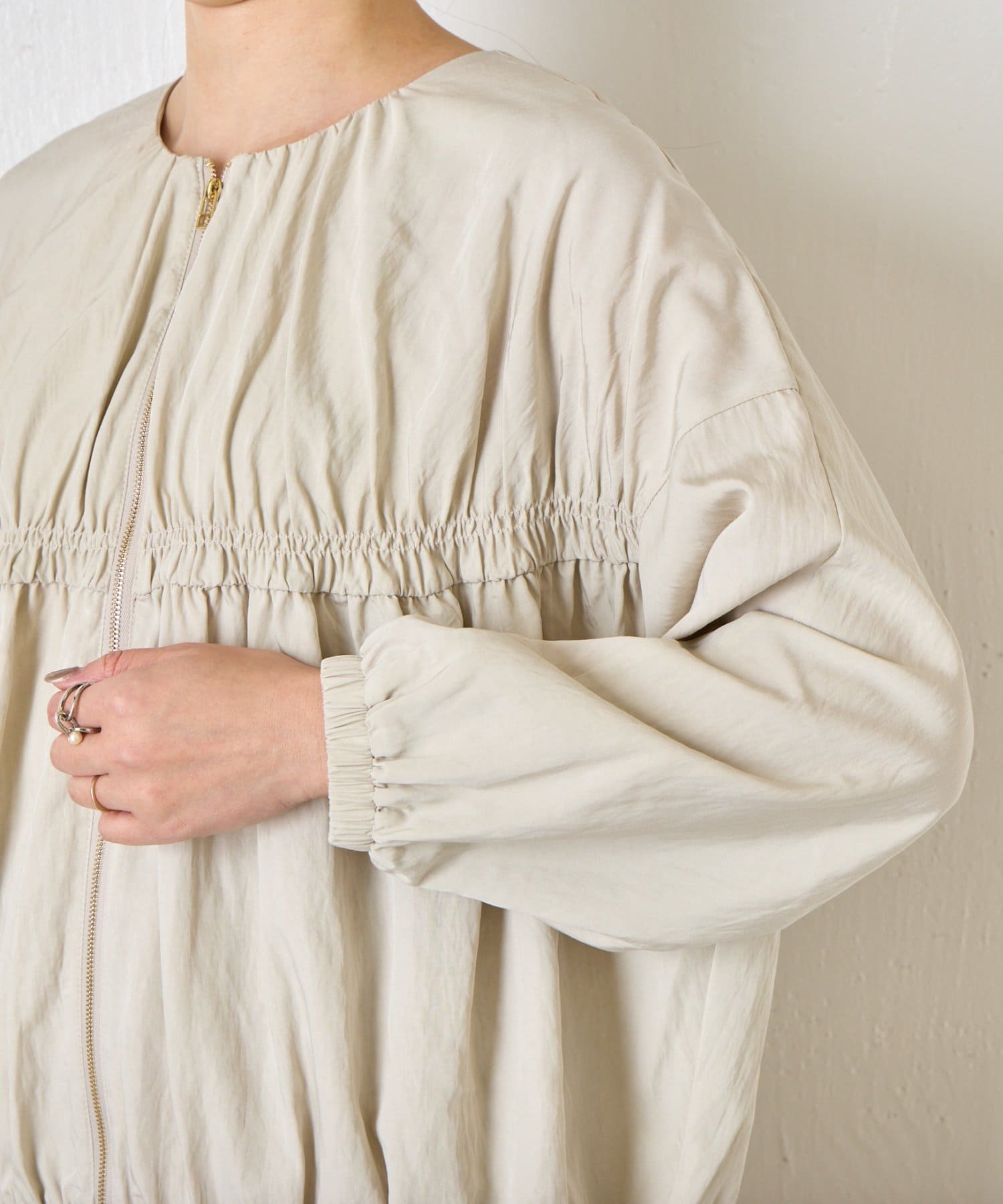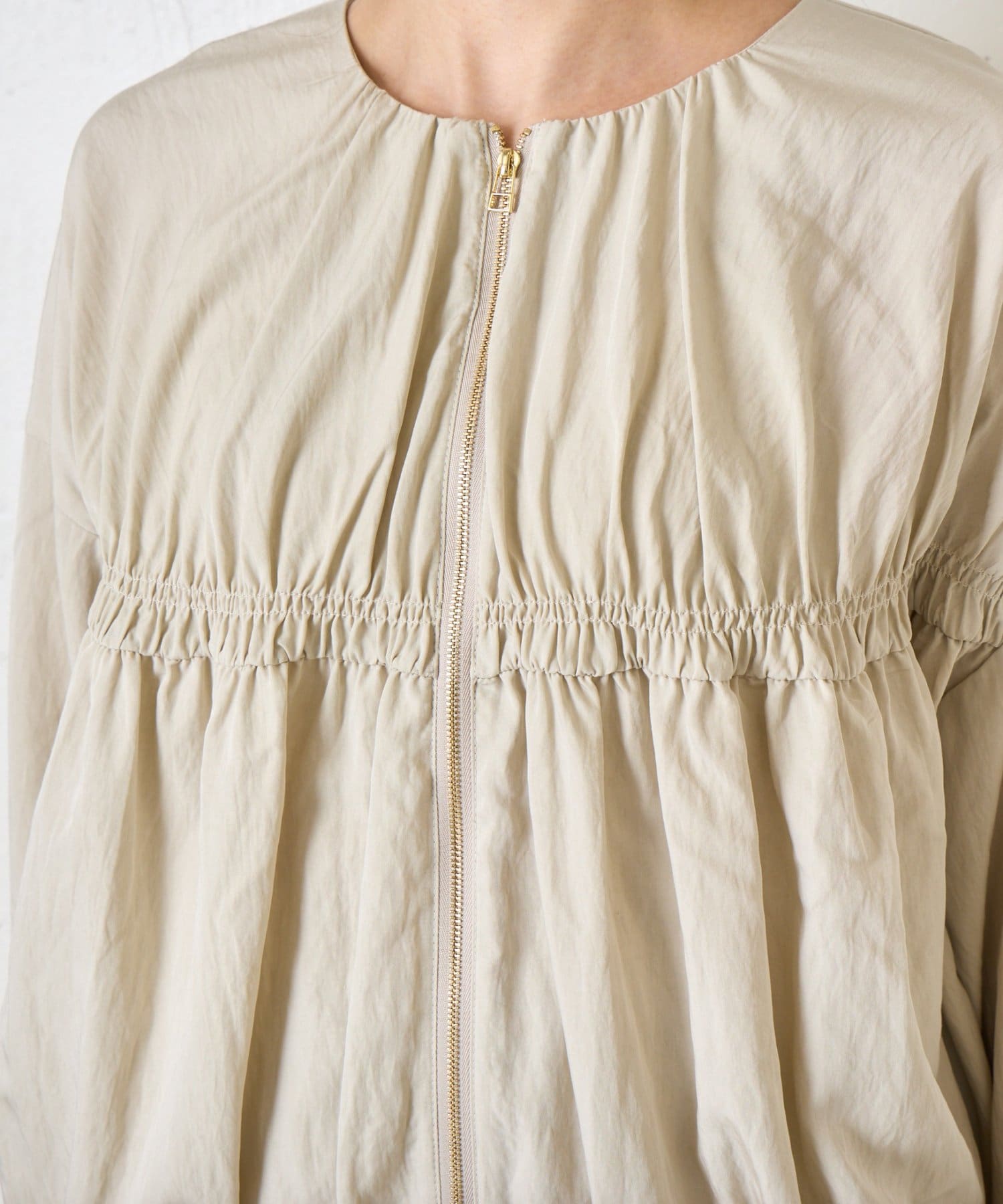 TOP > Jena espace merveilleux > レディース > ジャケット/アウター > ベスト/ジレ > 【さっと羽織れる】レーヨンナイロンギャザー切替ブルゾン