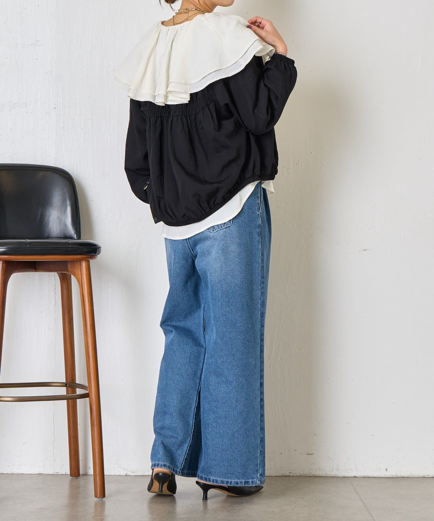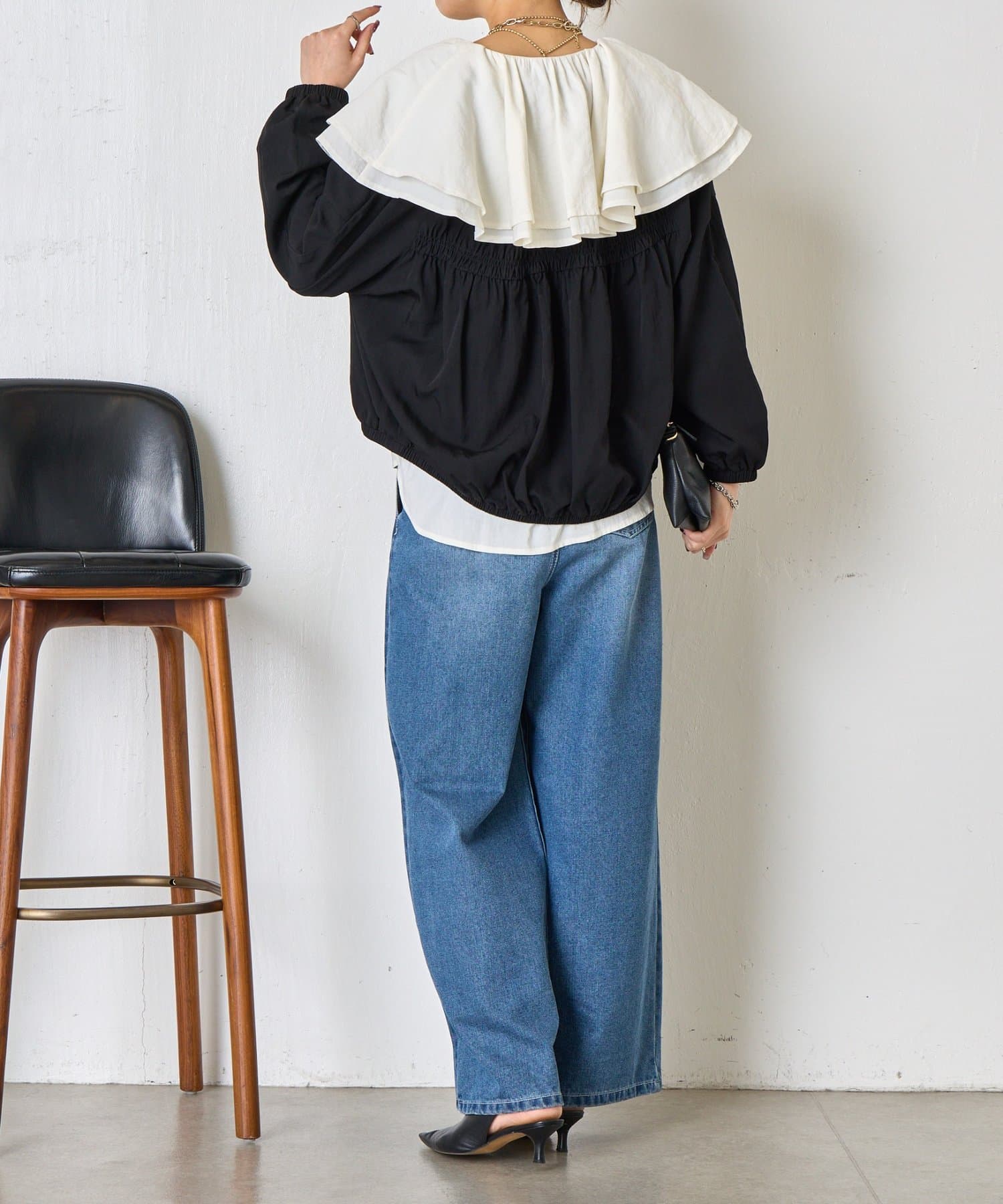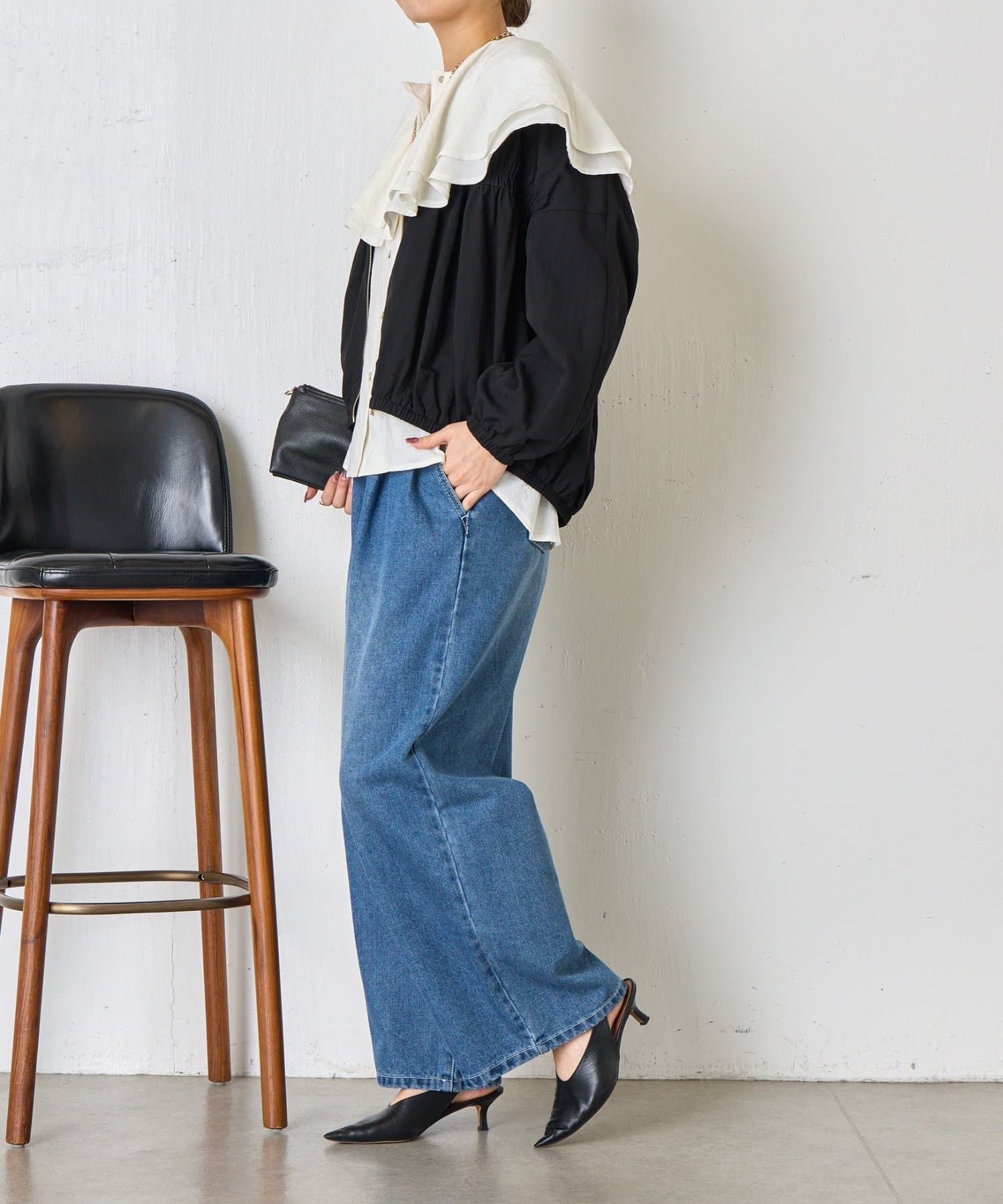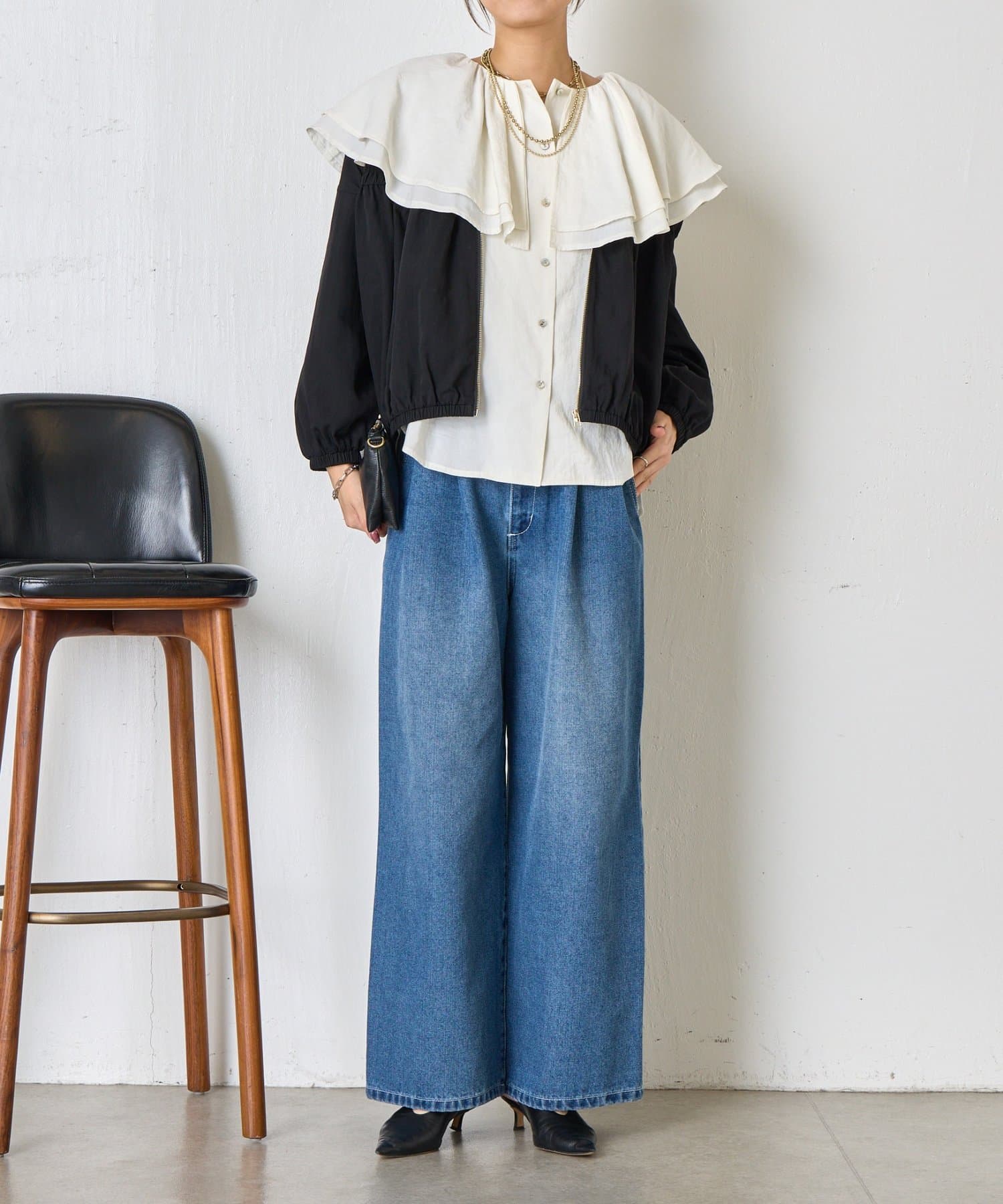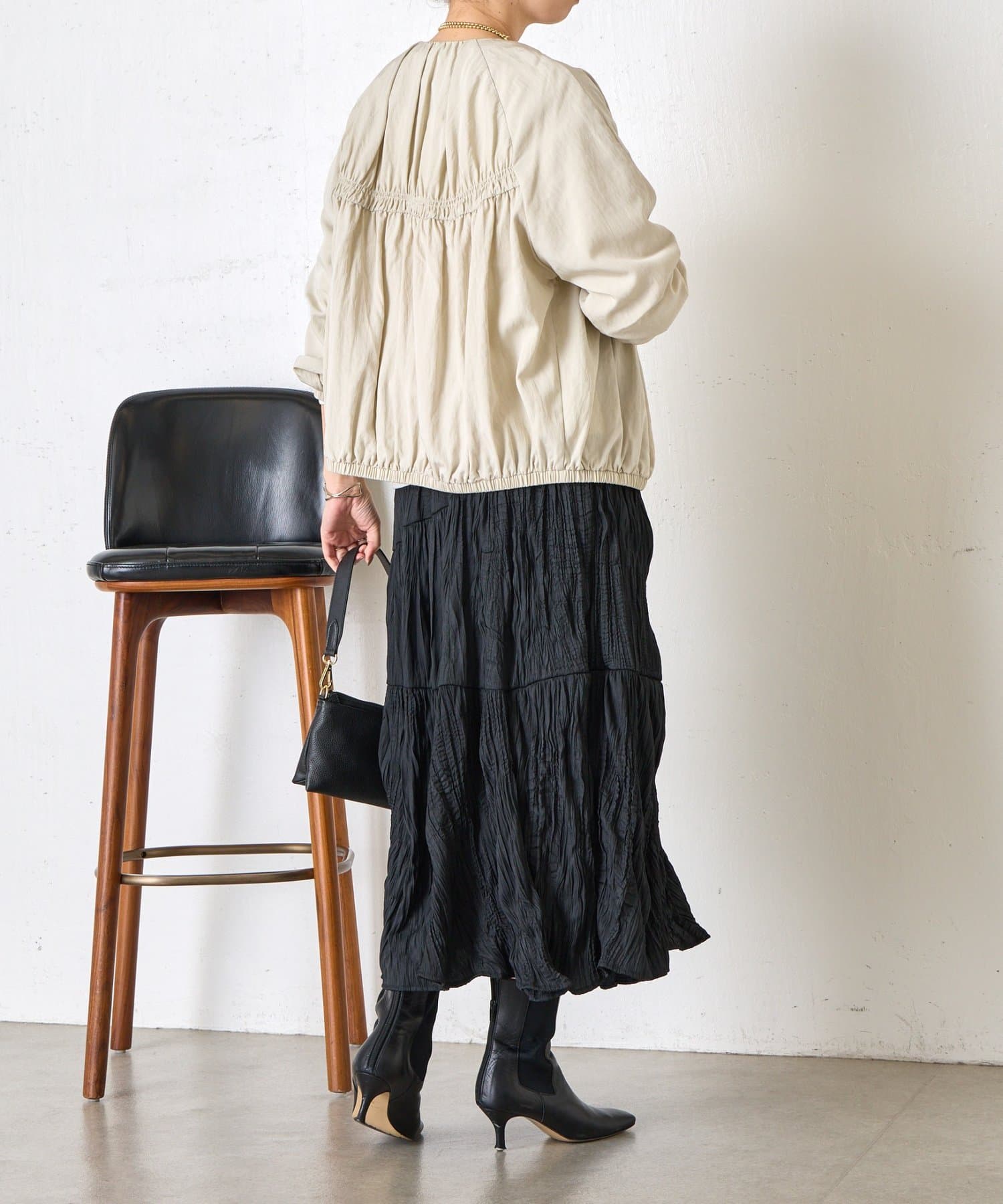 ・カジュアルになりすぎず、さっと羽織るだけでこなれ感のあるスタイリングが完成