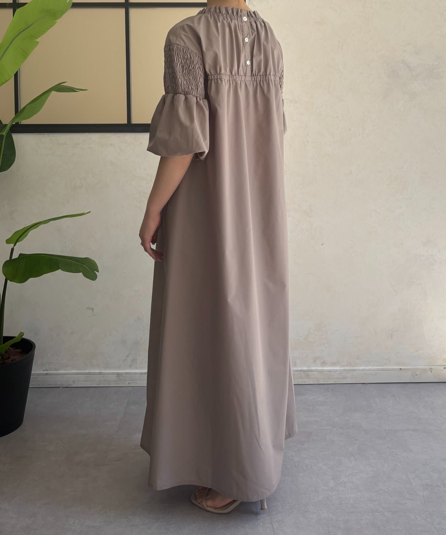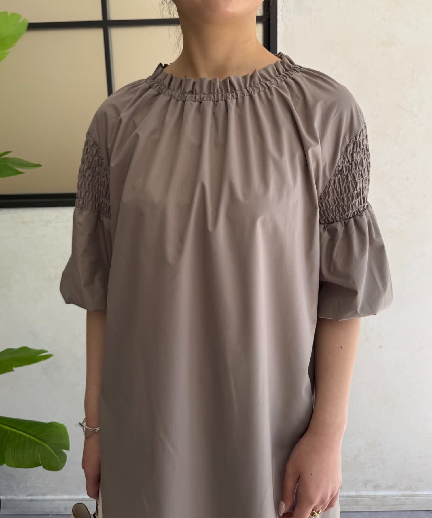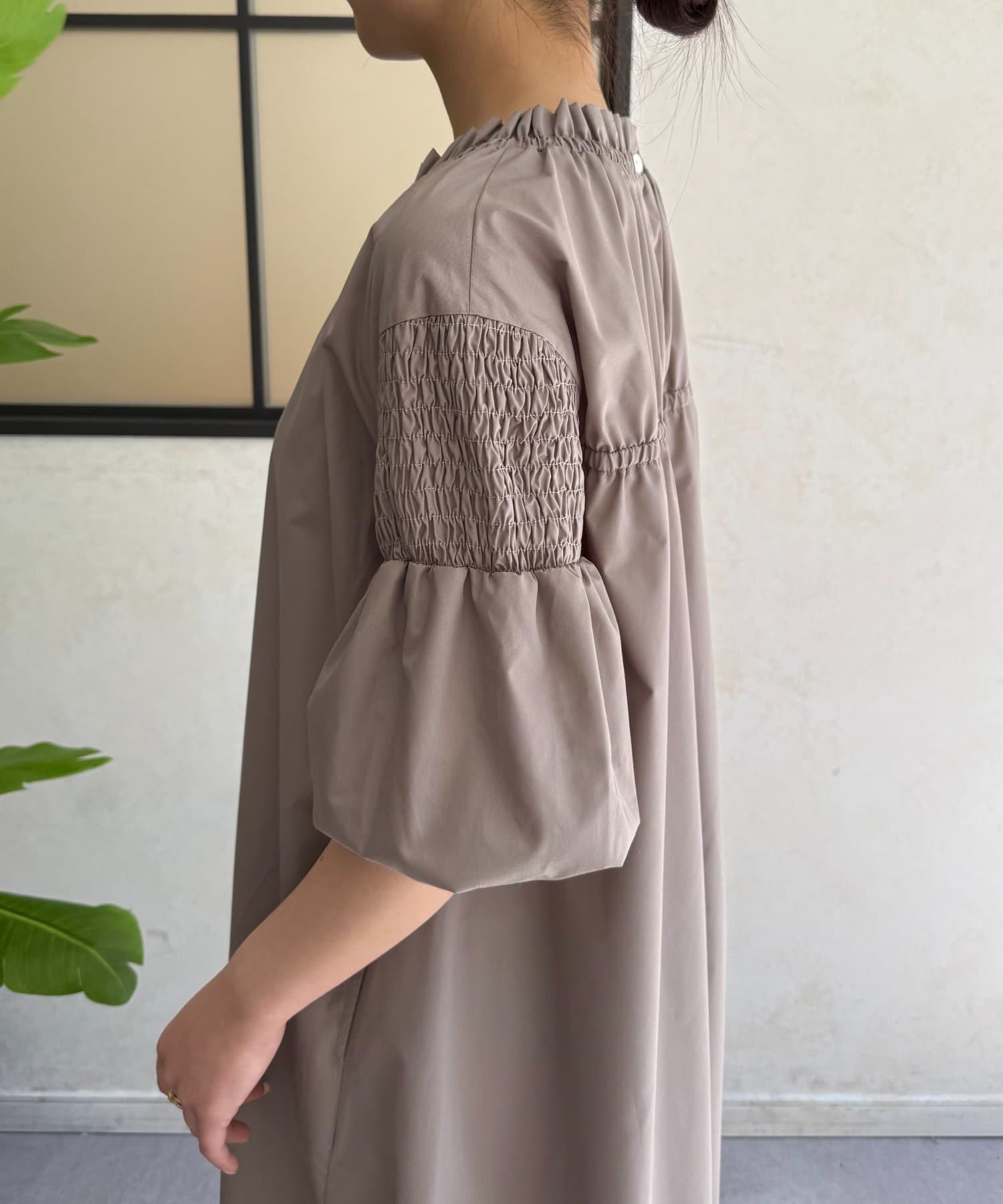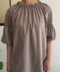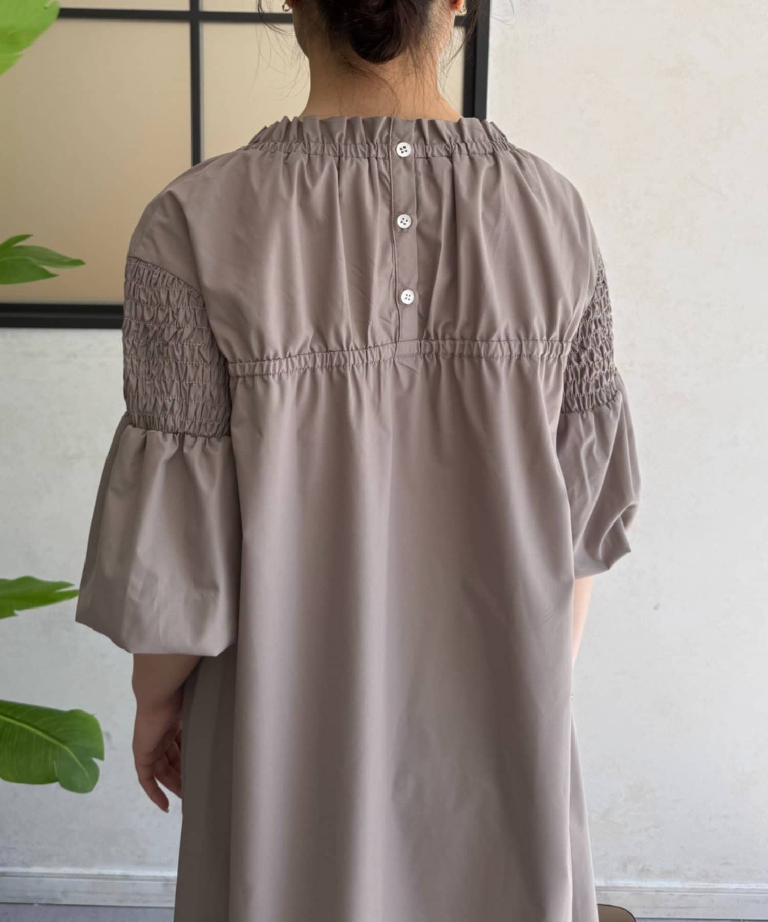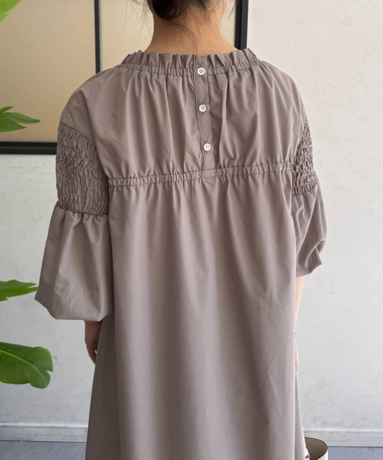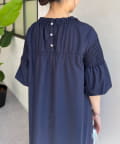 ・首元のギャザー、バックデザインがさりげないアクセント。