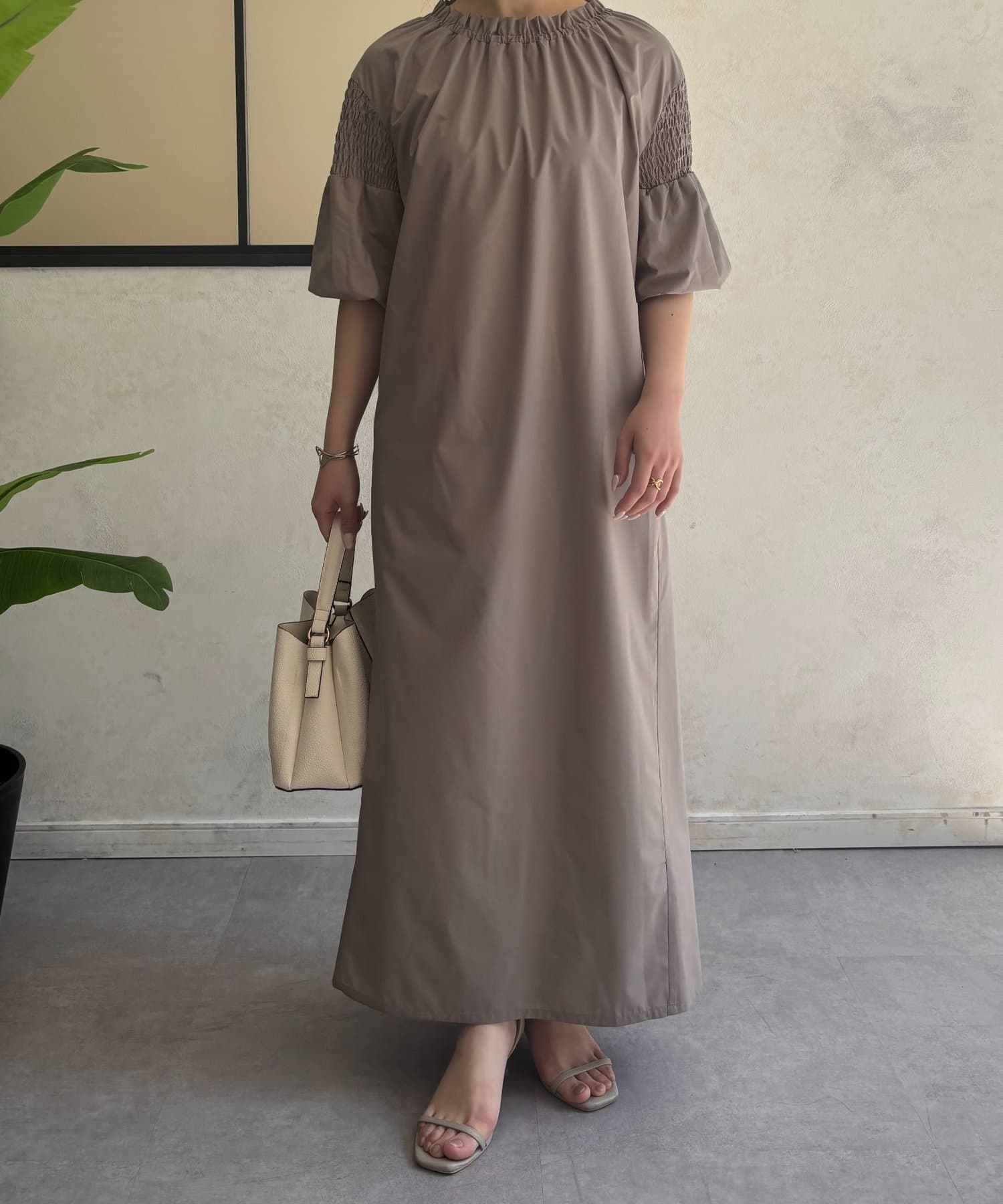 ・ストンと落ちるシルエットが、ボディラインを美しく見せてくれるロングワンピース。