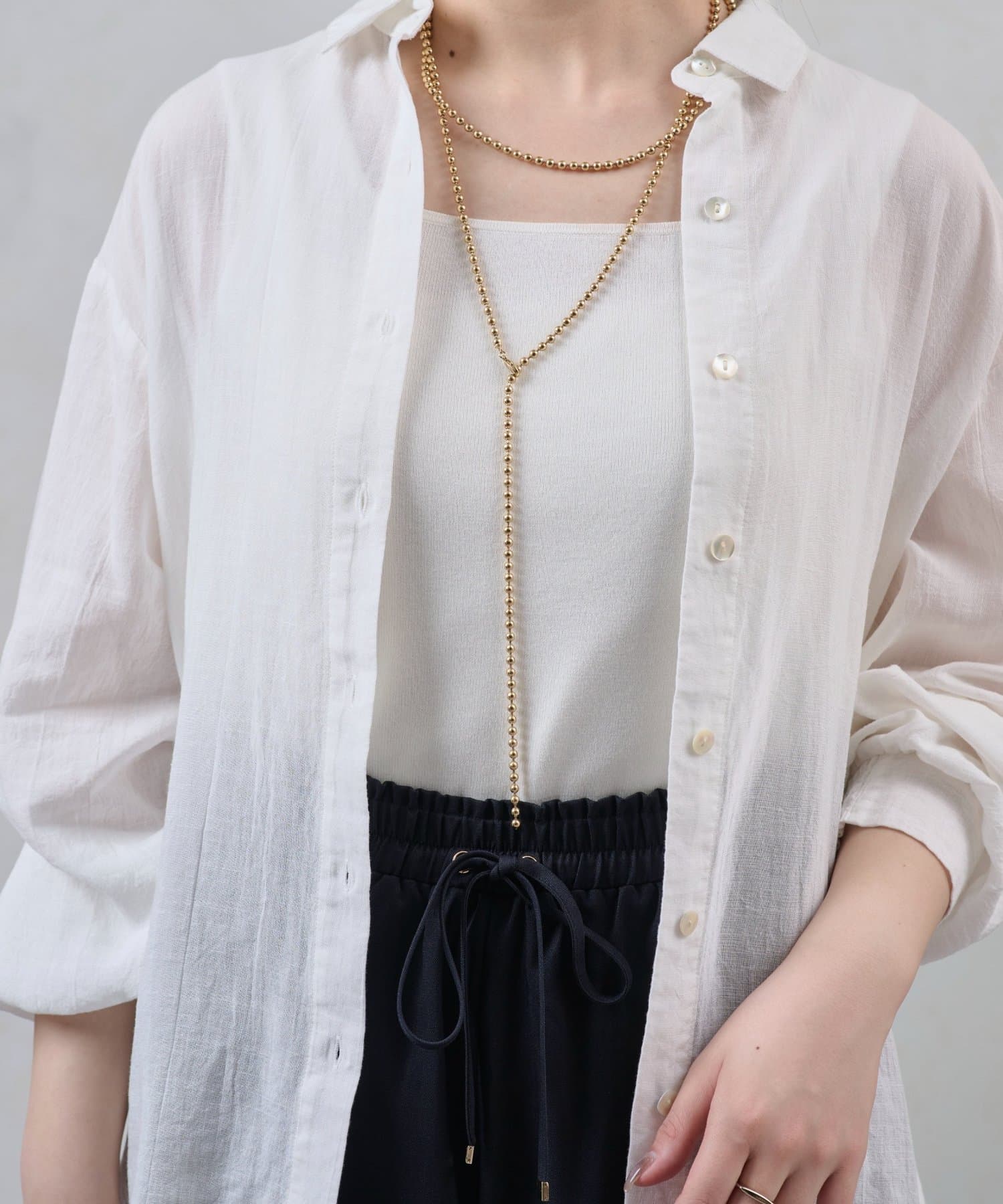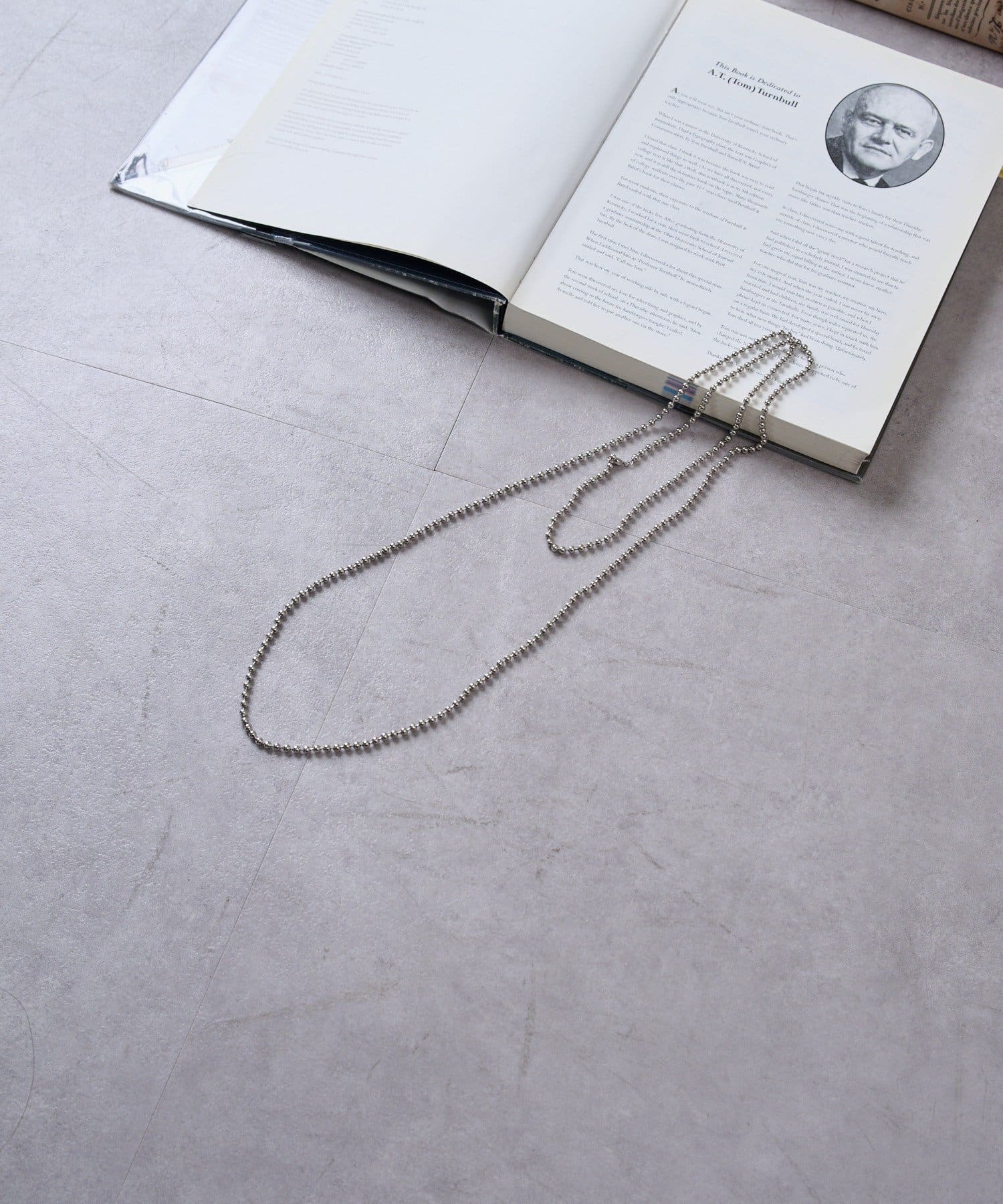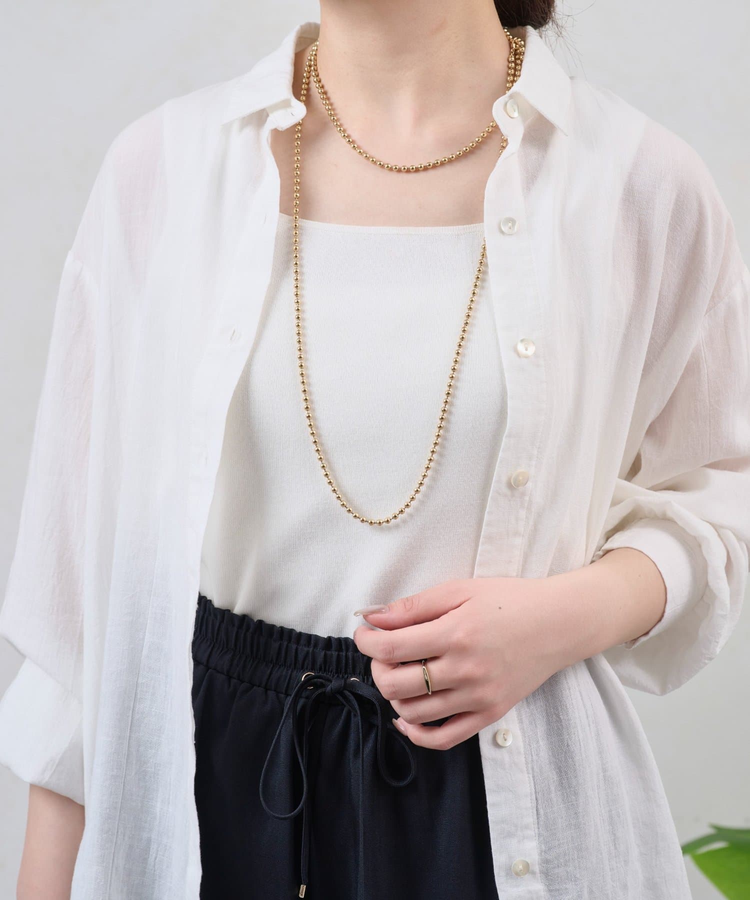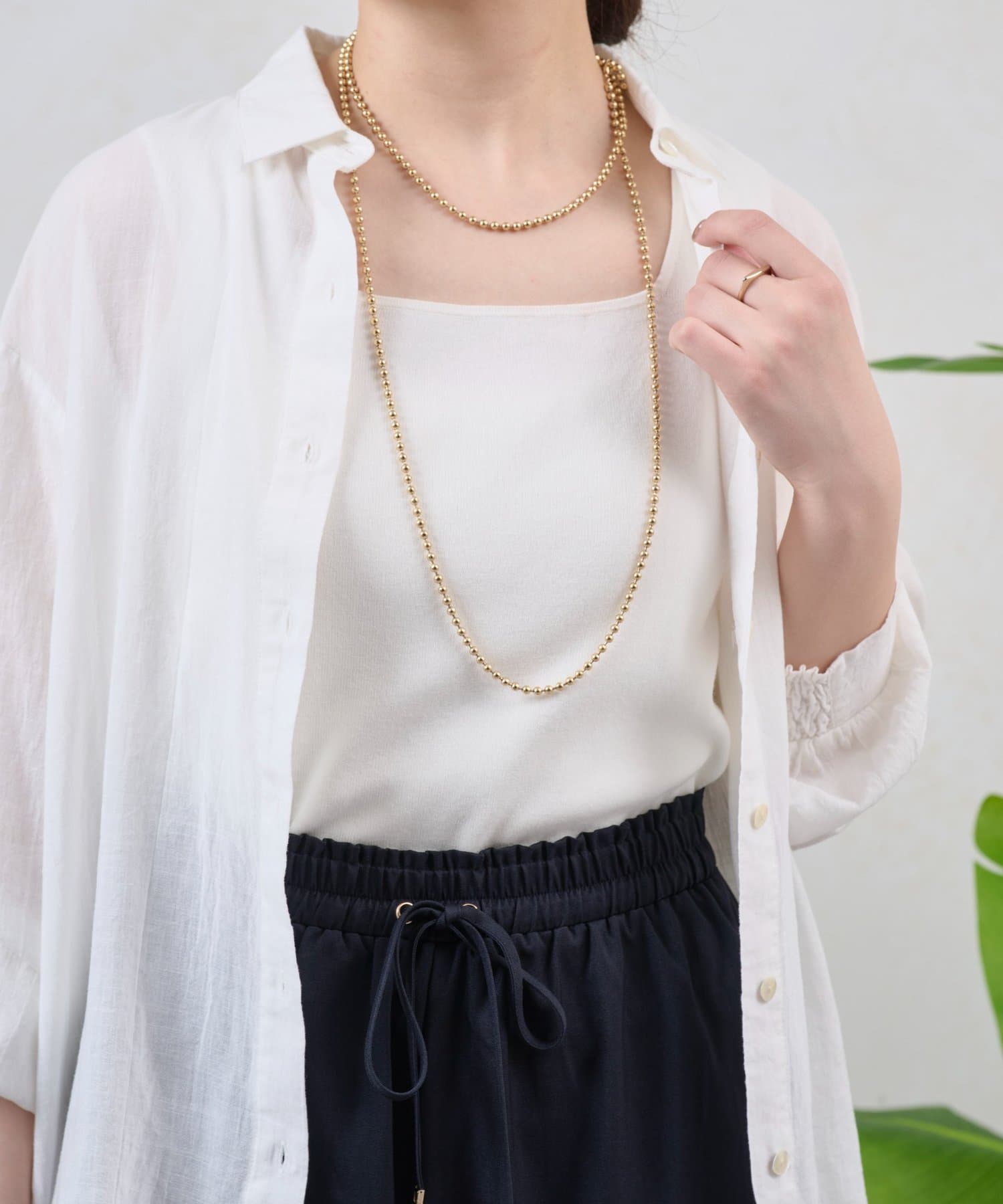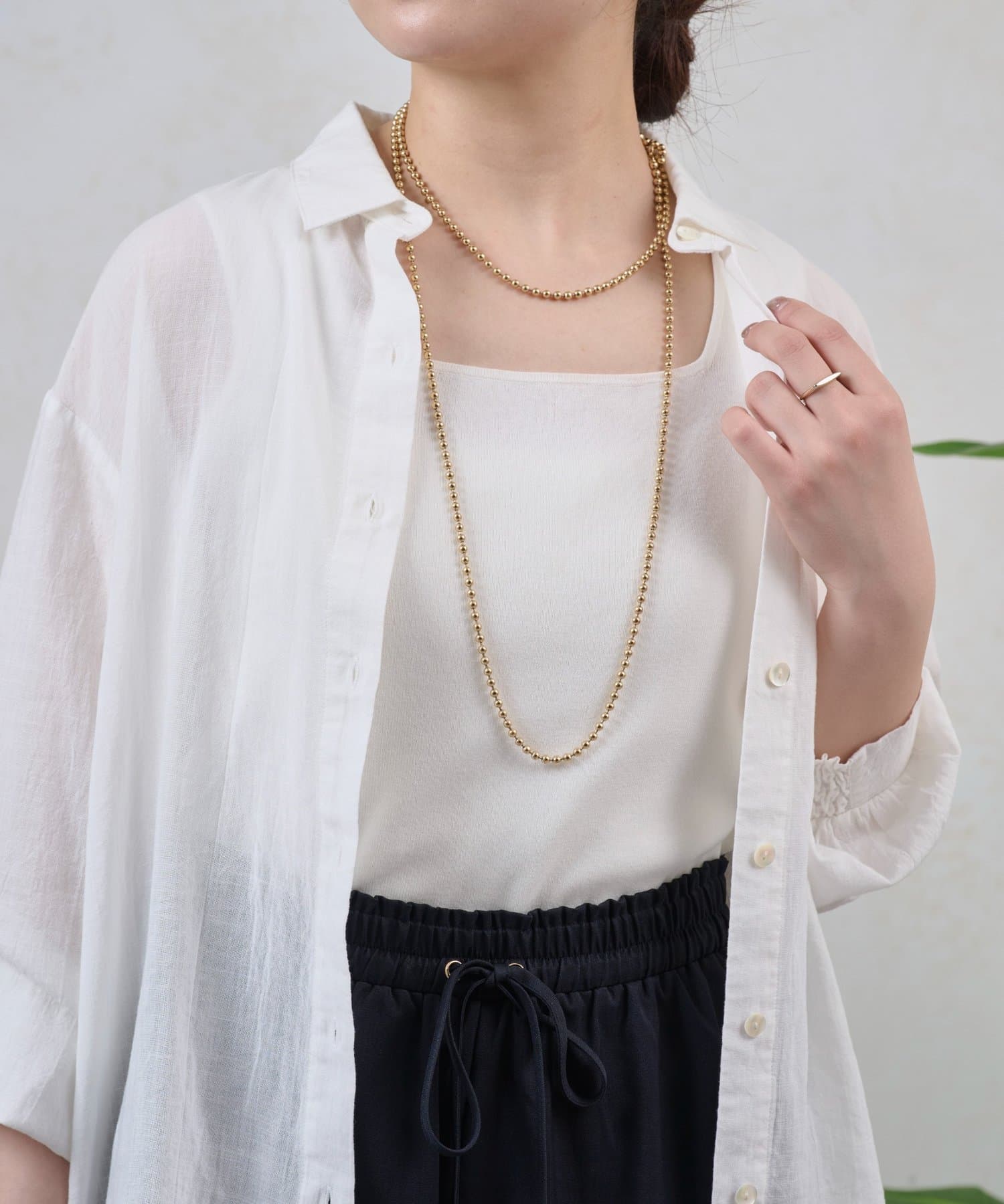 ・程よい存在感のボールパーツを連ねたロングネックレス。