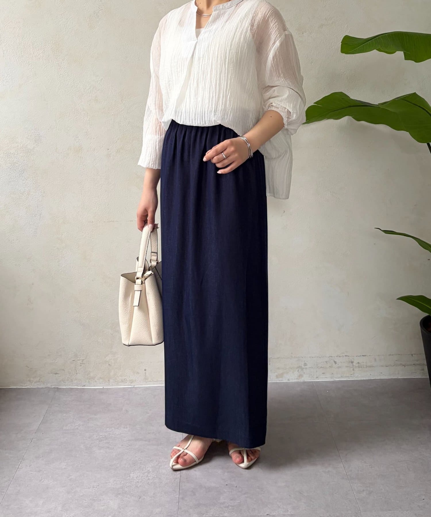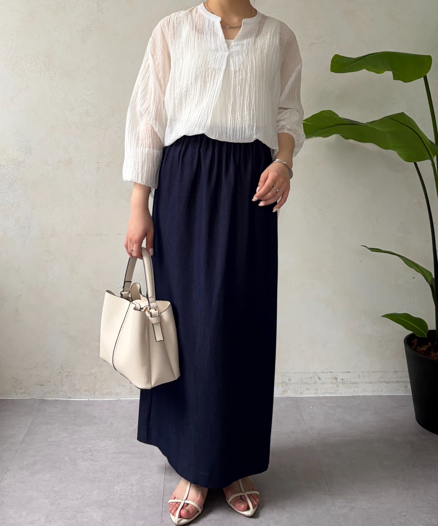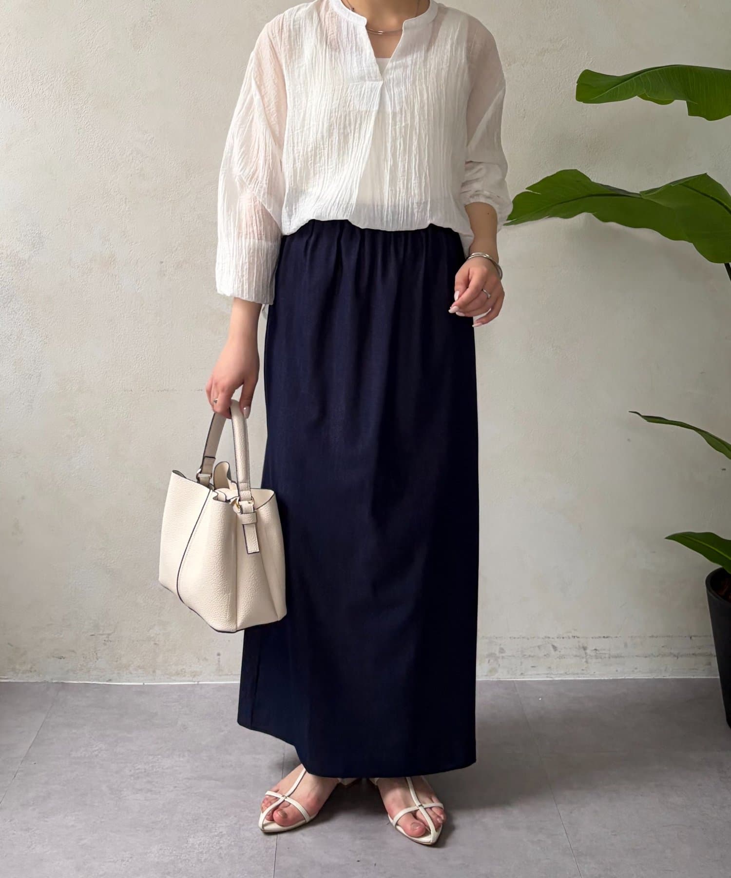 ・すとんと落ちるIラインシルエットが大人の女性らしい落ち着きと、洗練された印象を演出します。