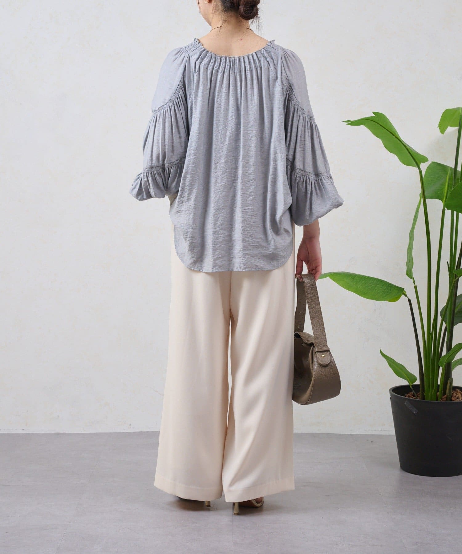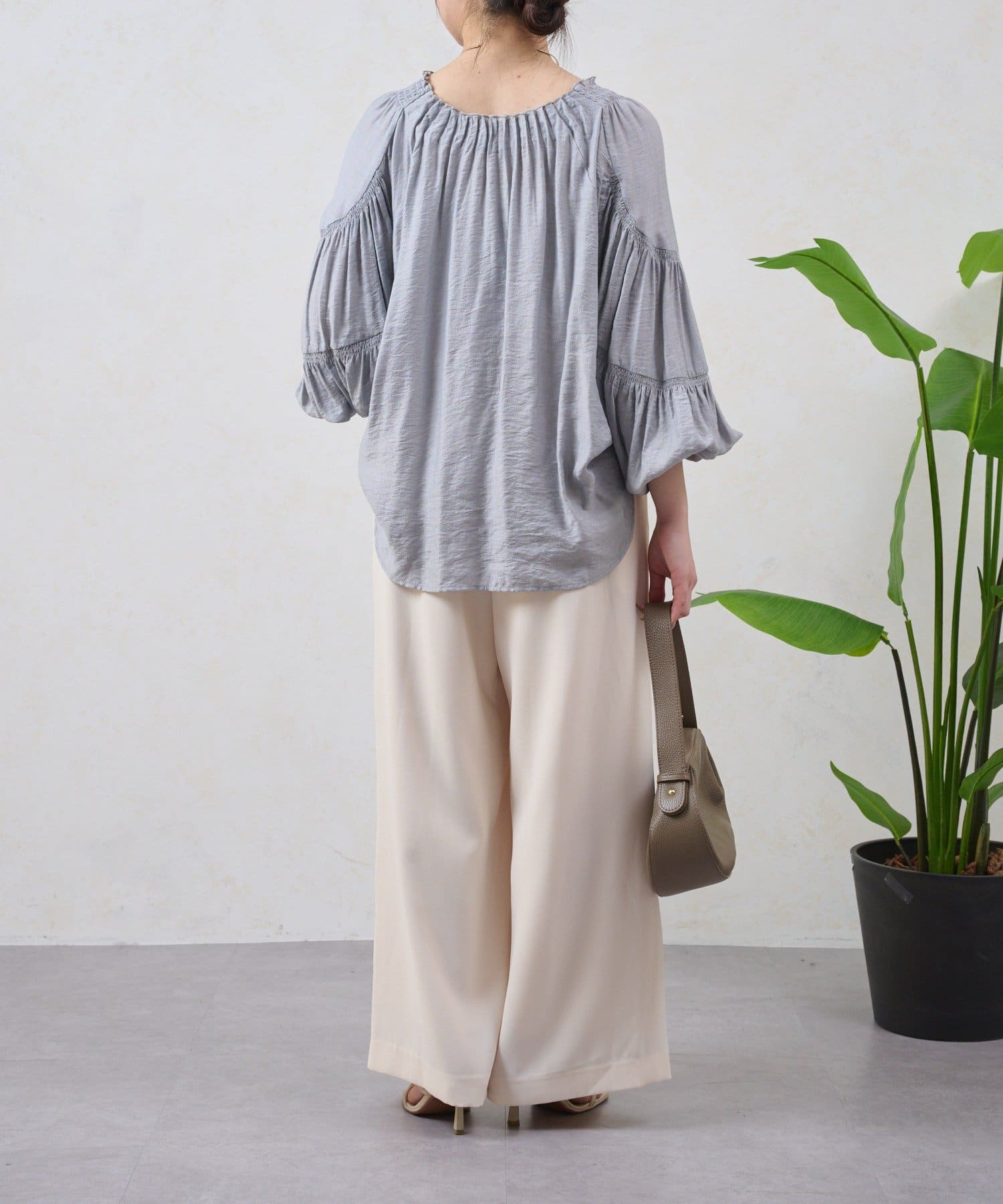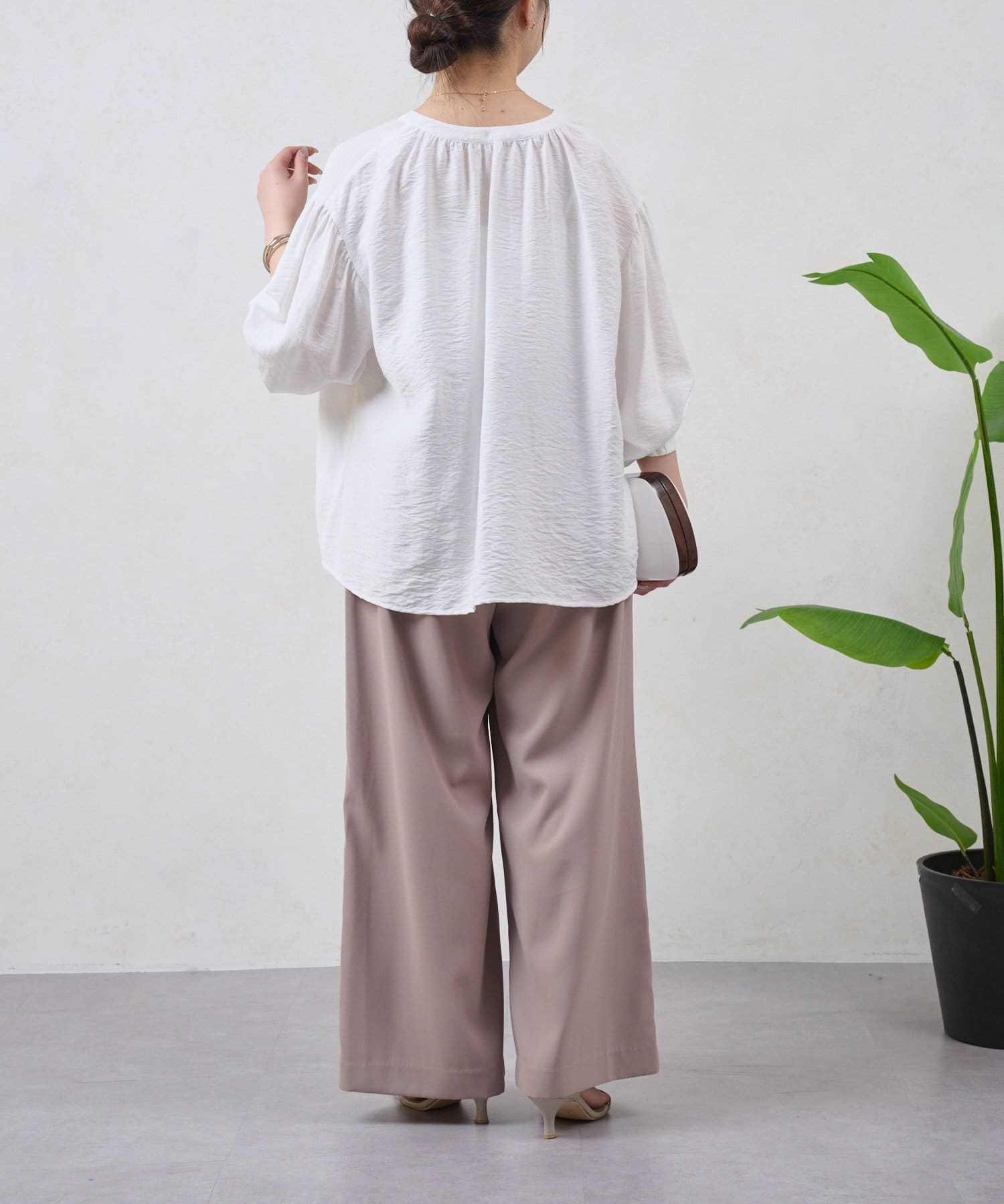 ・ すとんと落ちるワイドシルエットは、気になる体型をカバーしながら、スタイルアップ効果も期待できます。