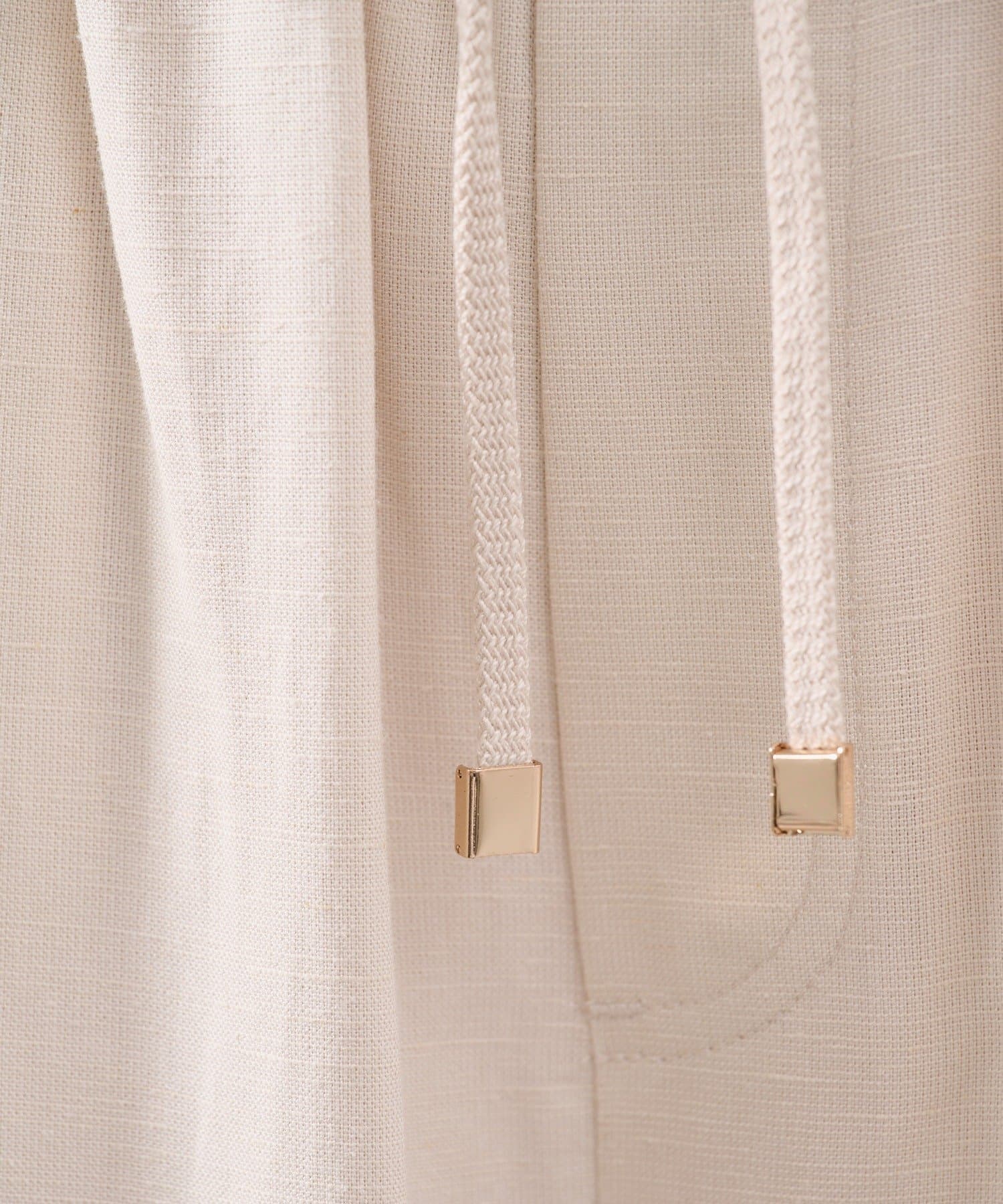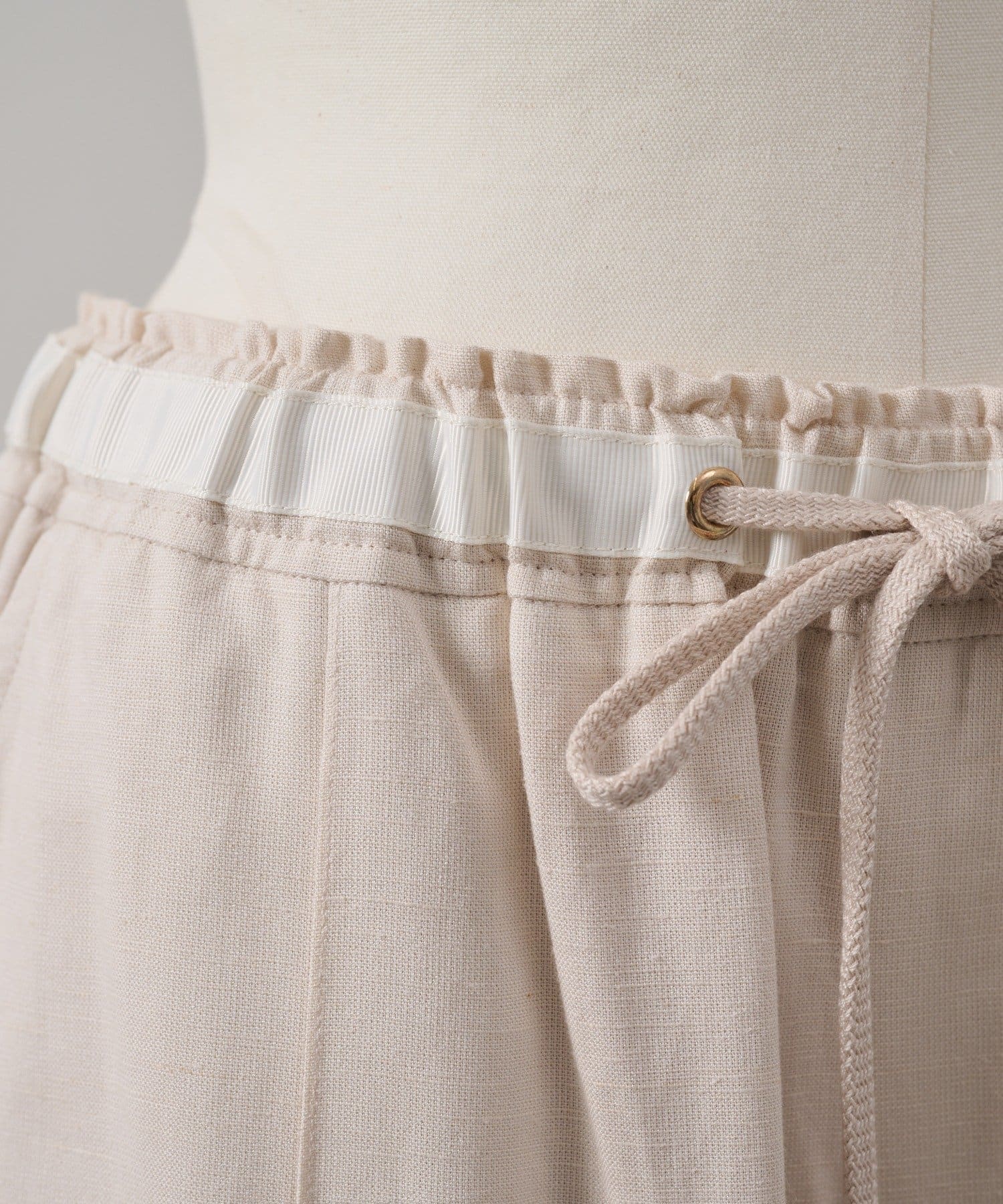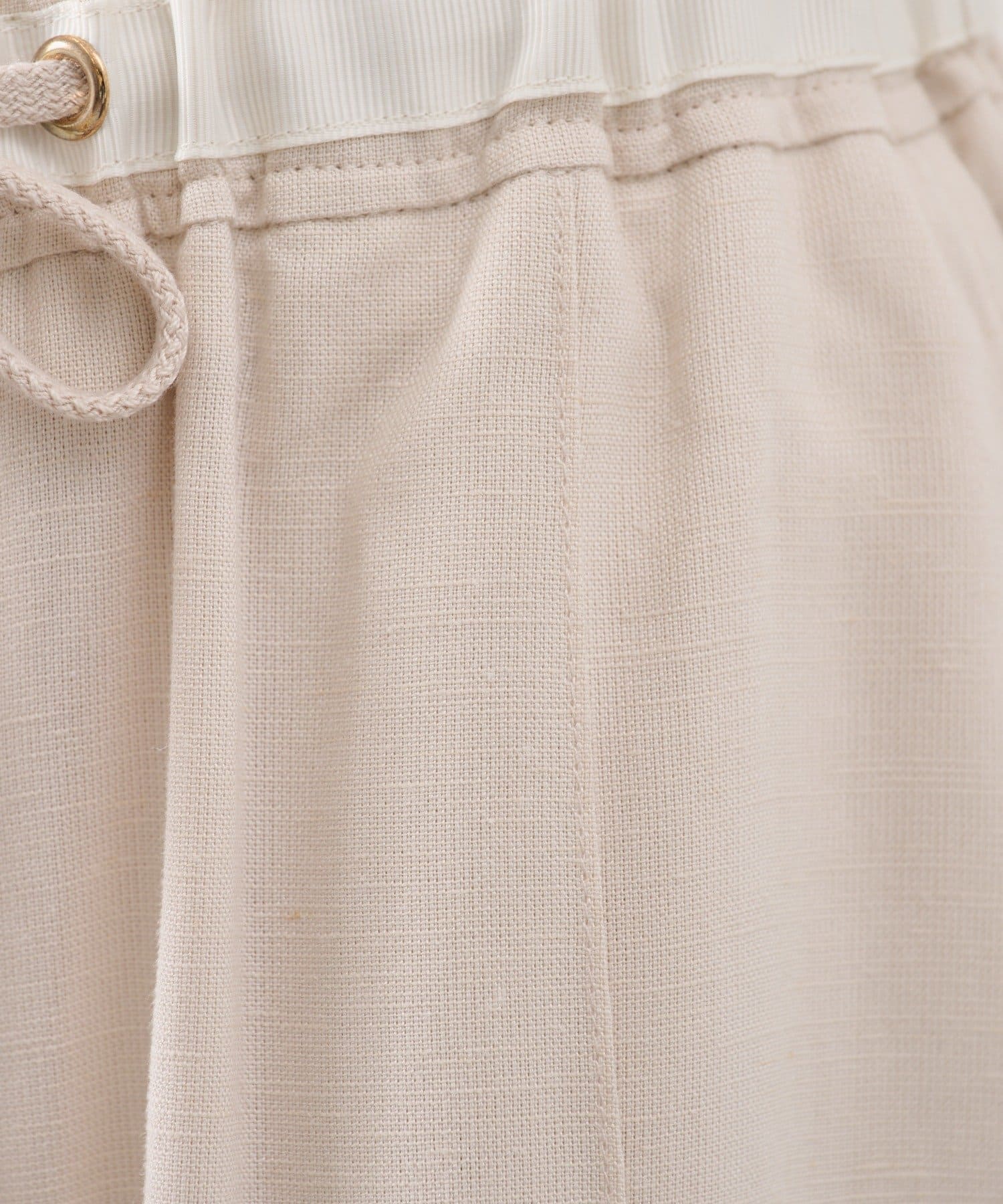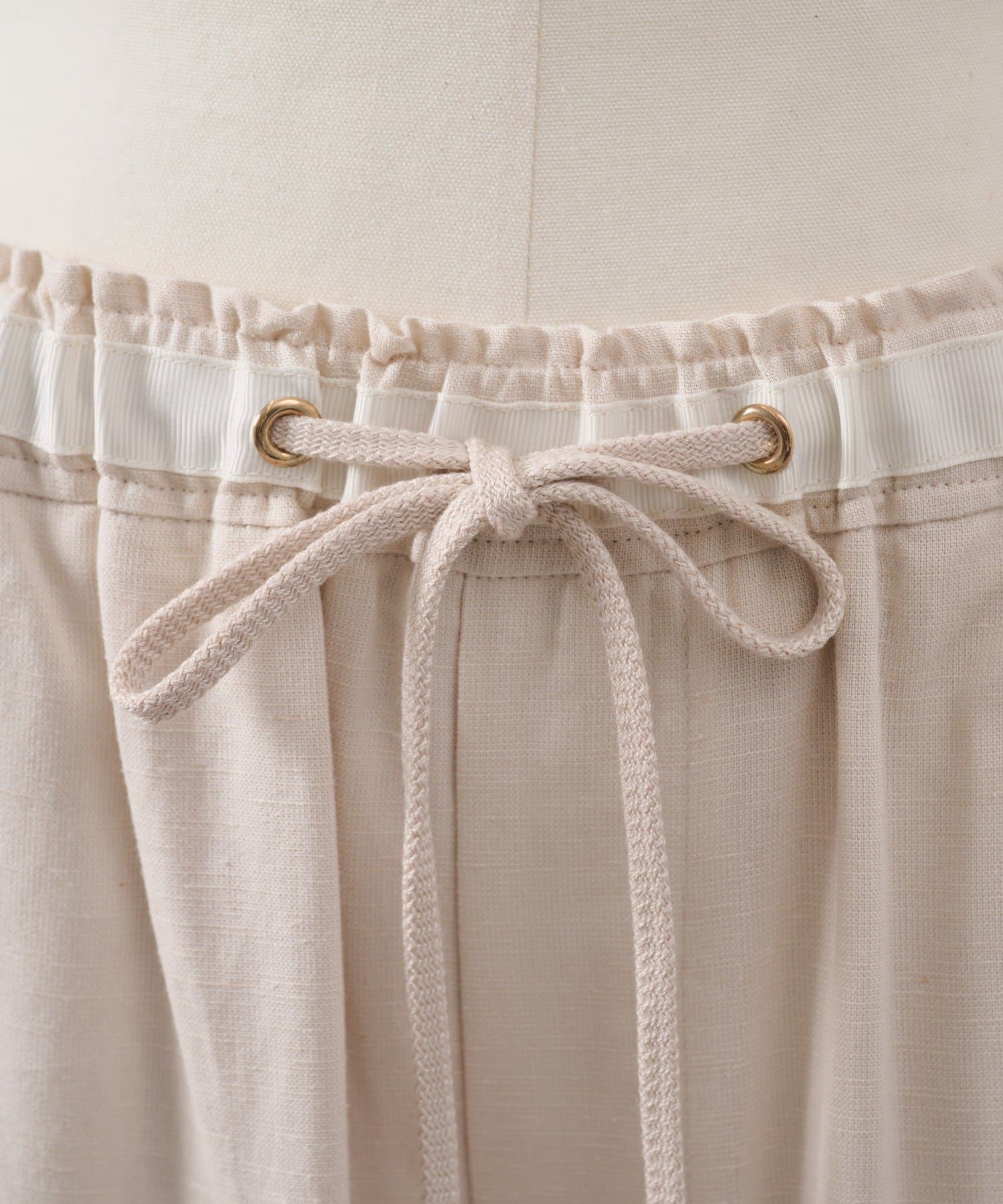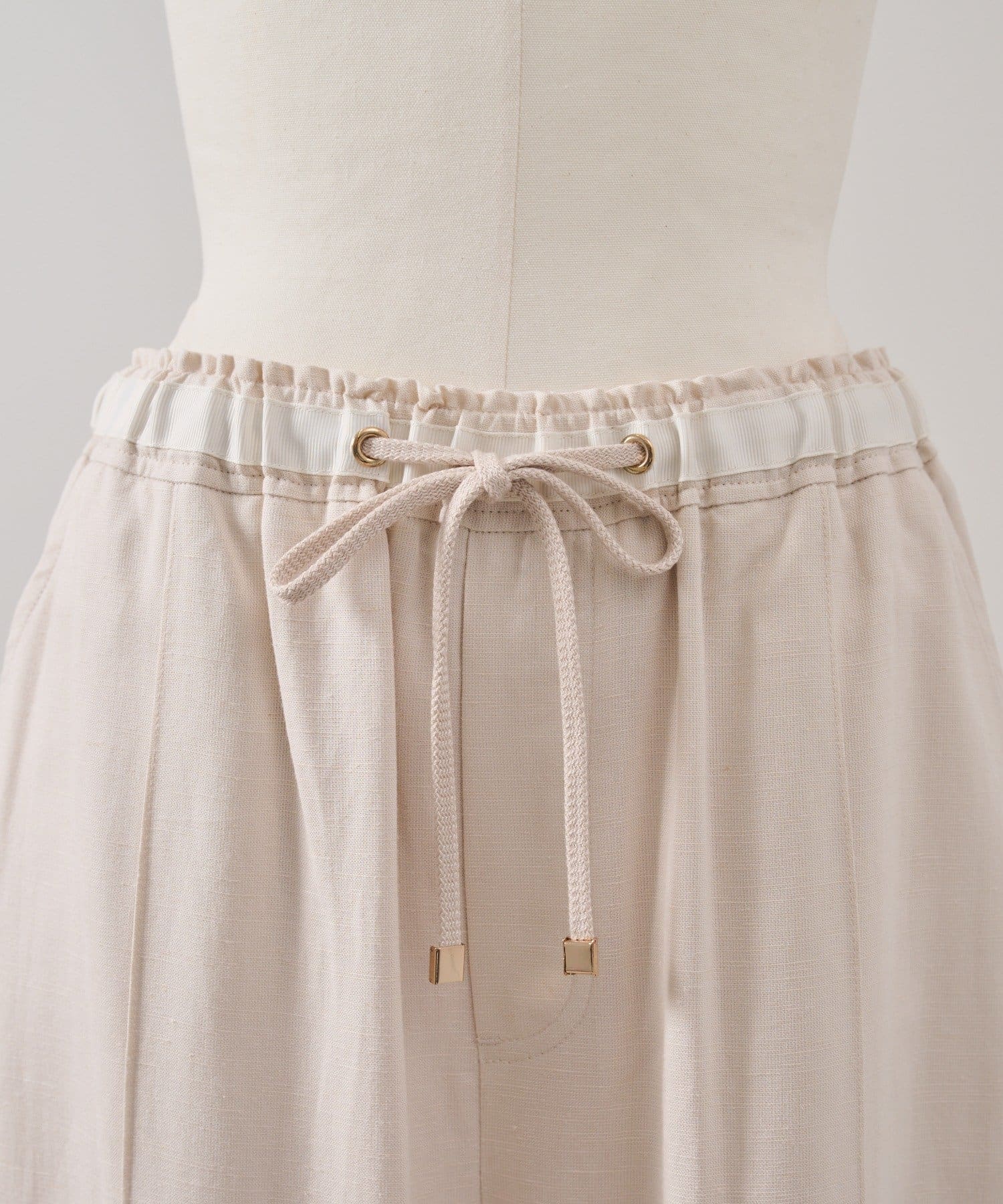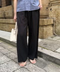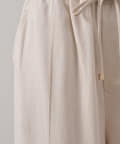 ・ウエストはゴム仕様で、さらにドローストリング付き。お好みのフィット感に調整できるので、リラックスした着心地ながらも、だらしなく見えません。