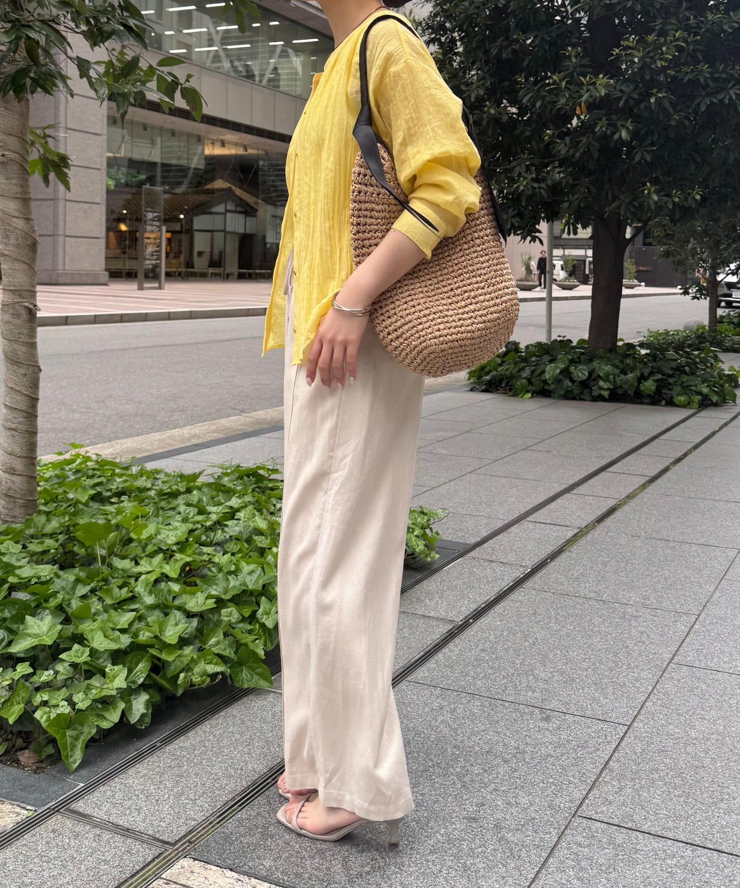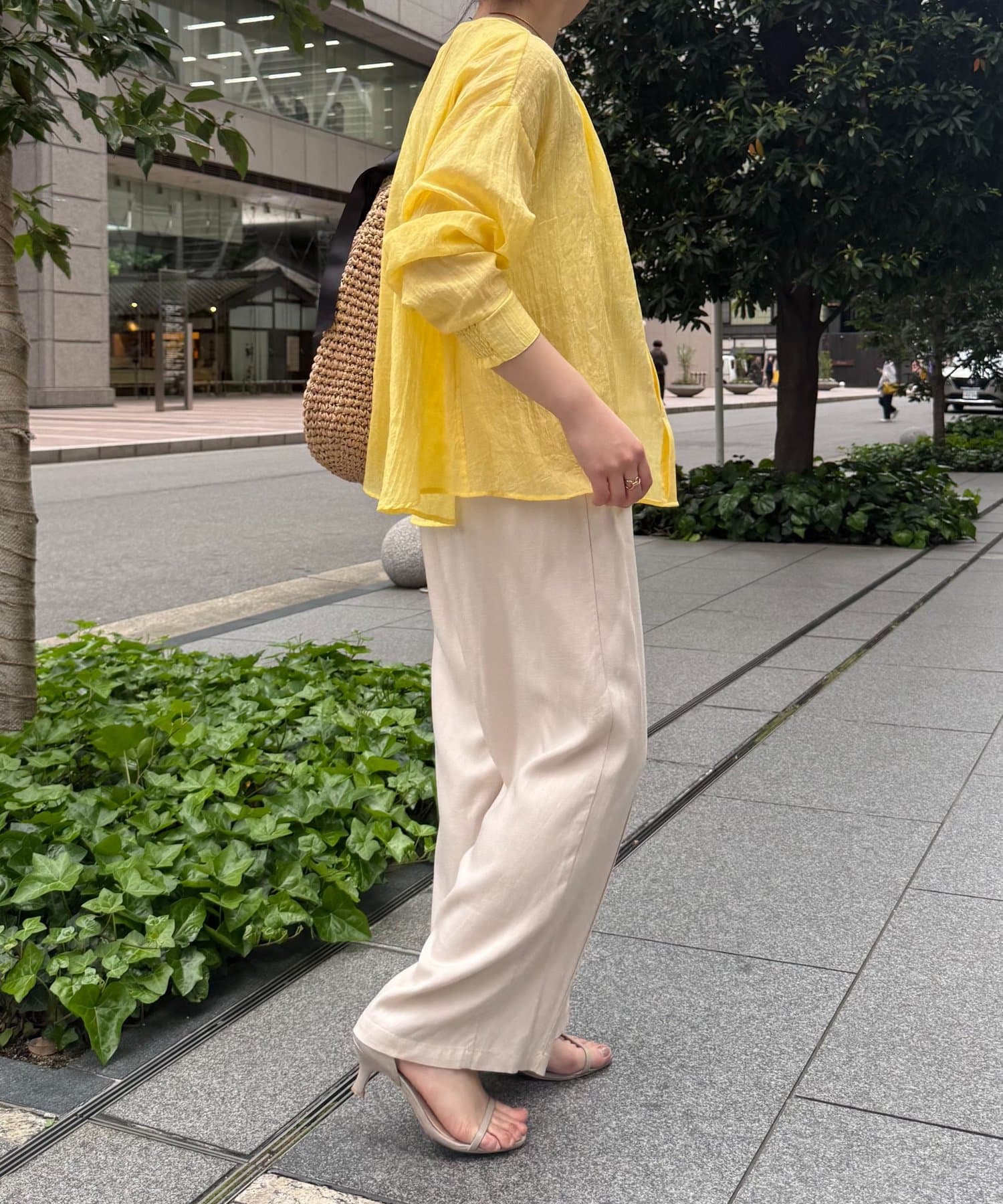 ・ストンと落ちるワイドなシルエットは、気になる体型をカバーしつつ、こなれ感を演出します。