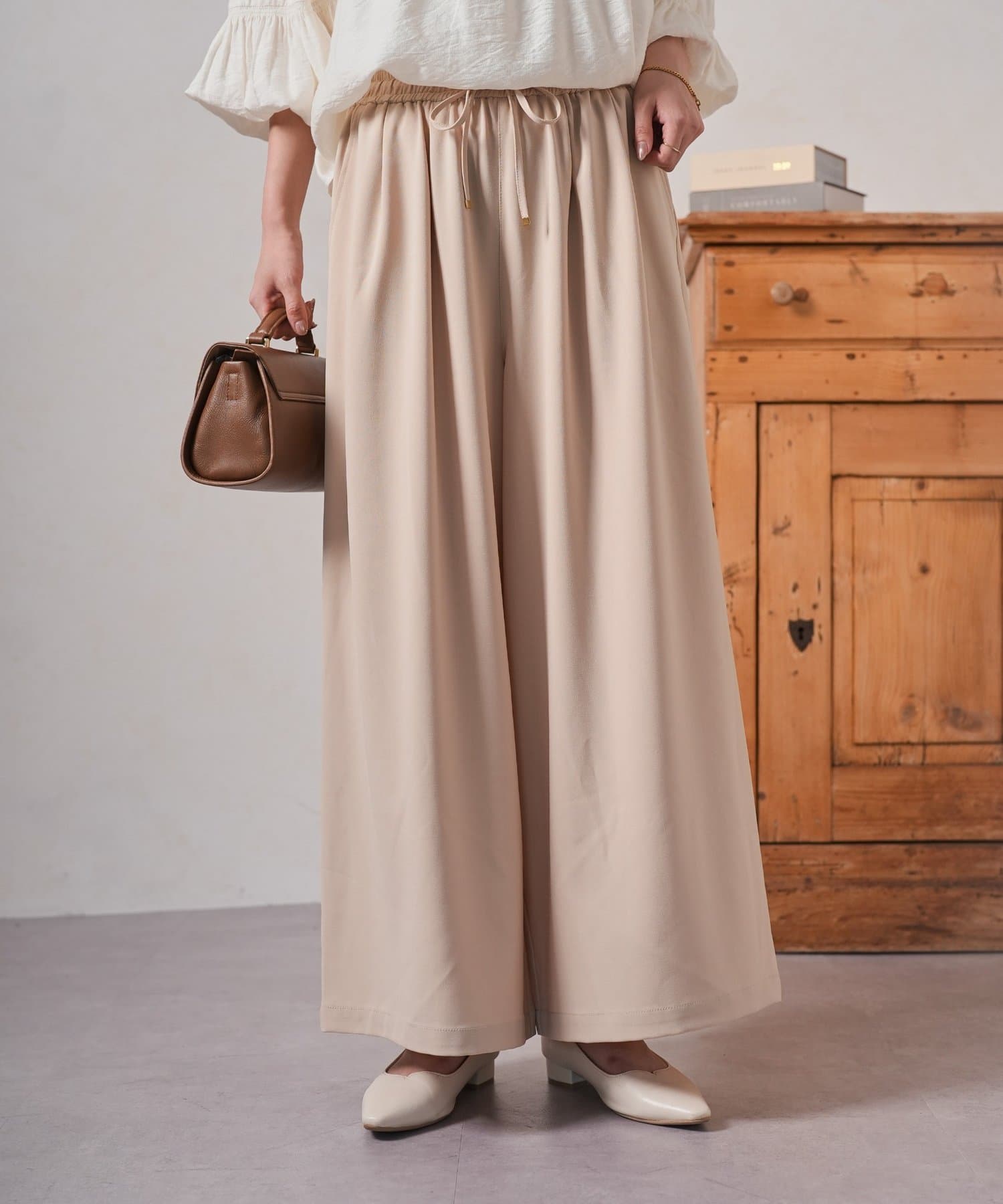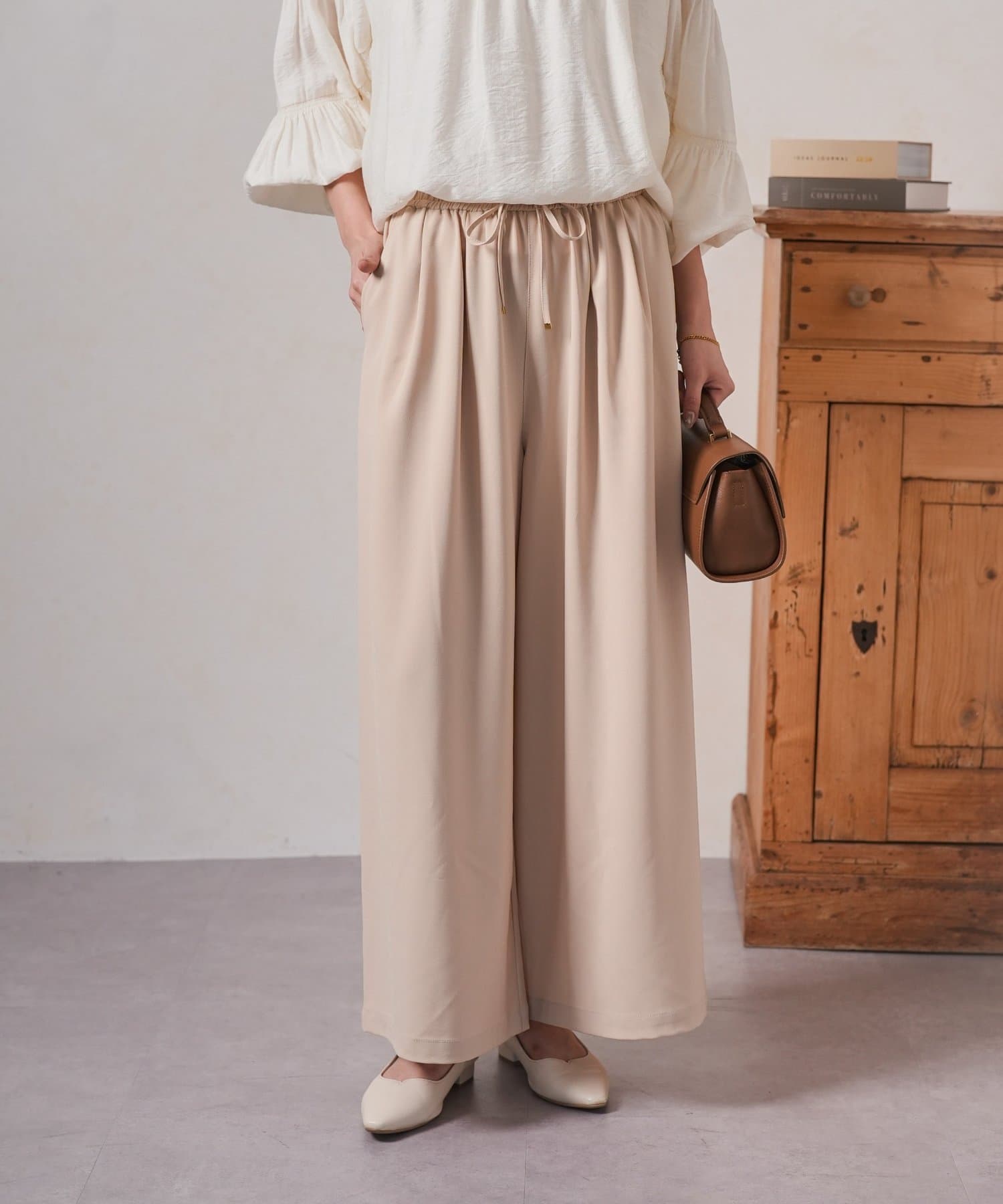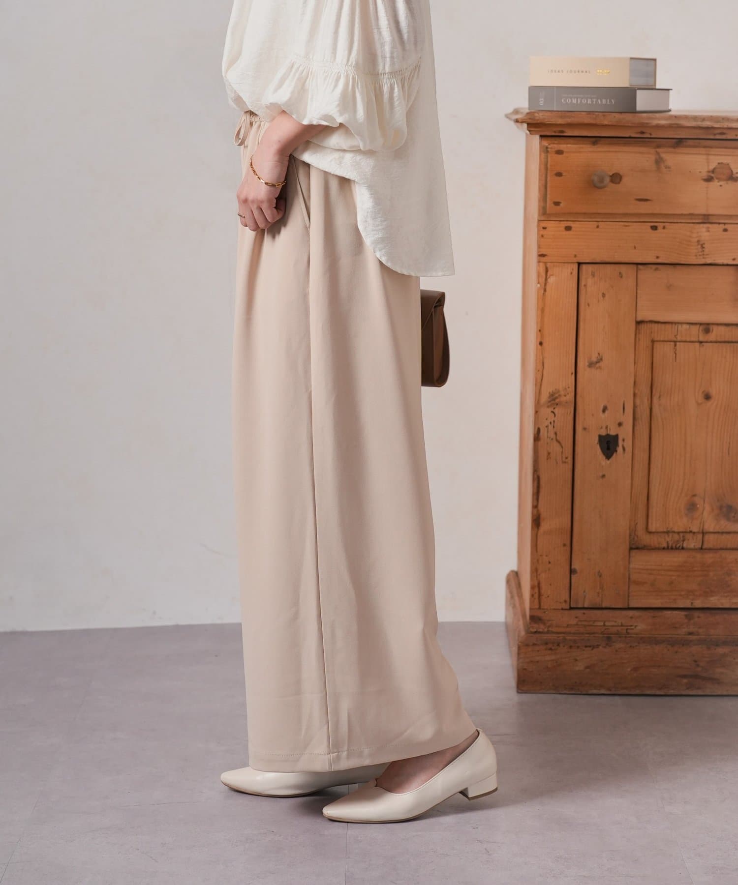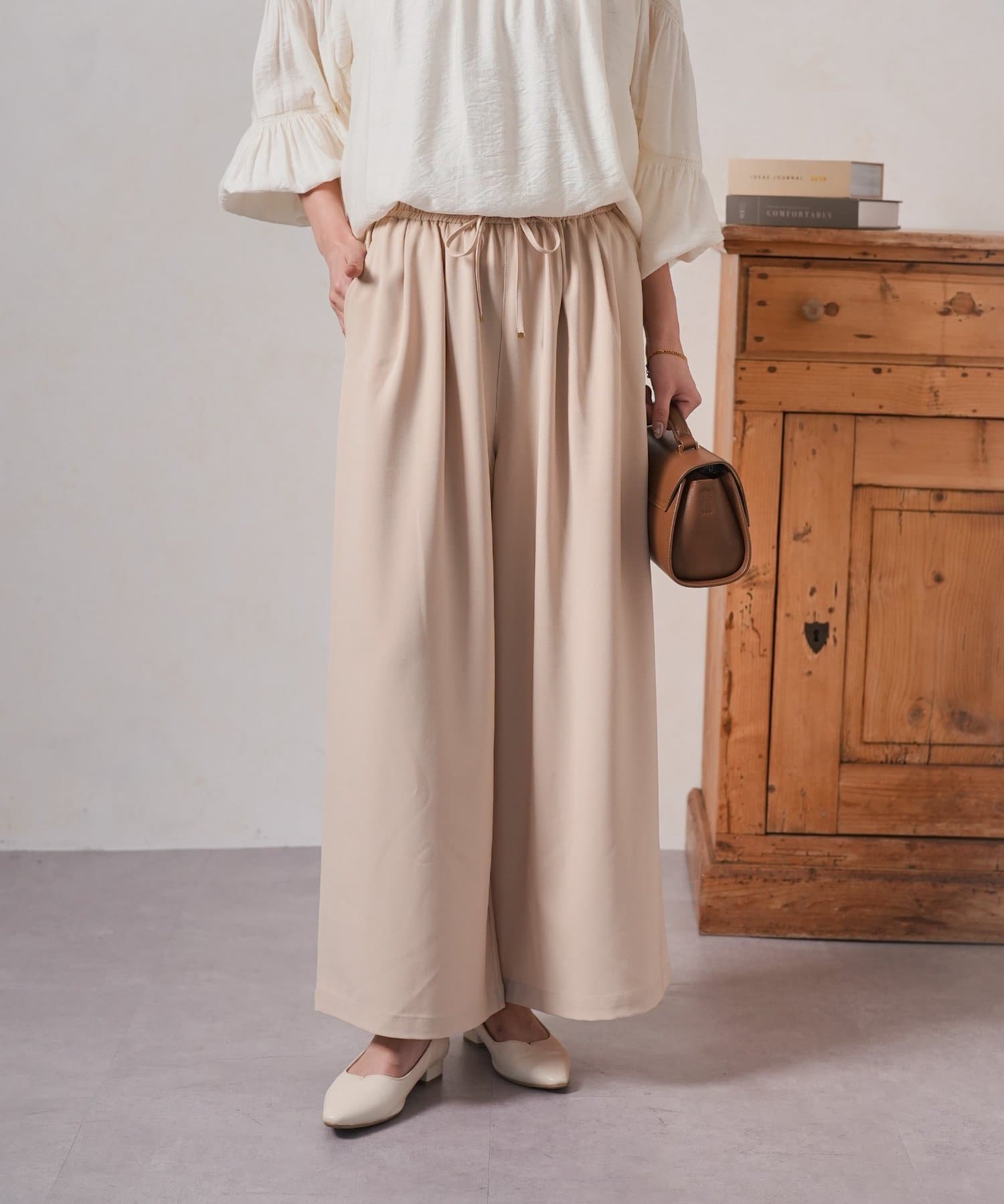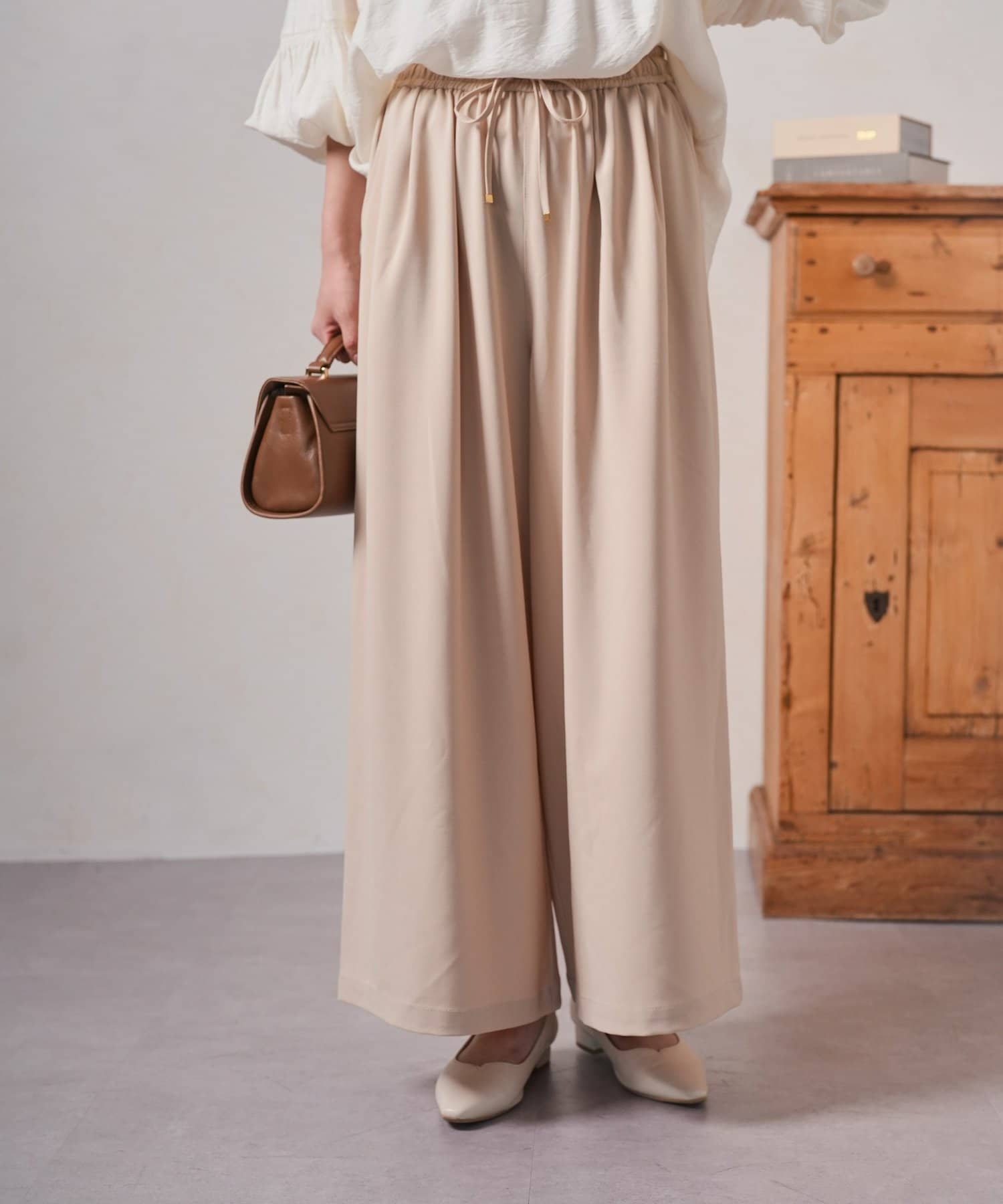 ・ゆったりとしたワイドシルエットは、気になる体型をカバーしつつ、リラックスした着心地。