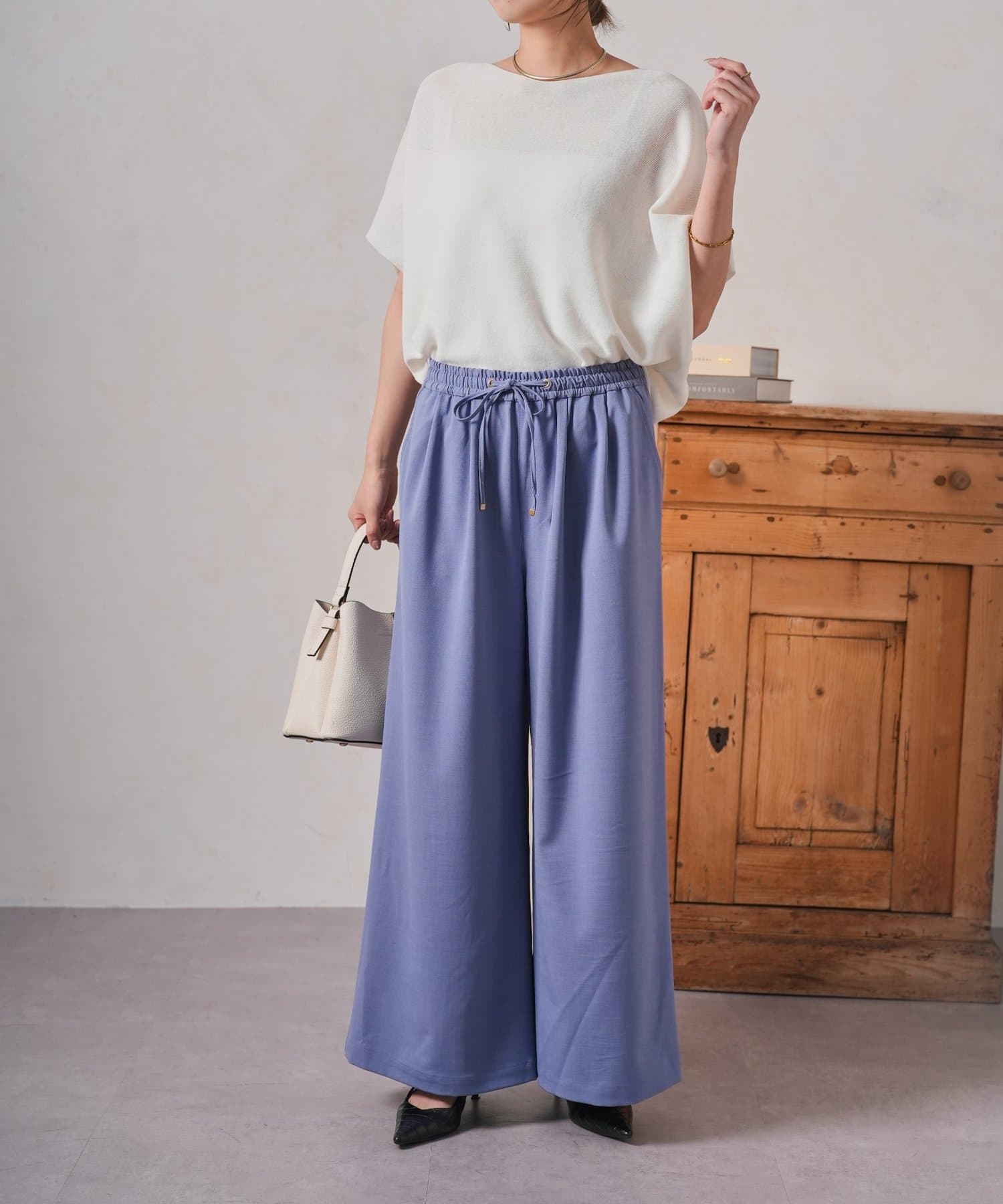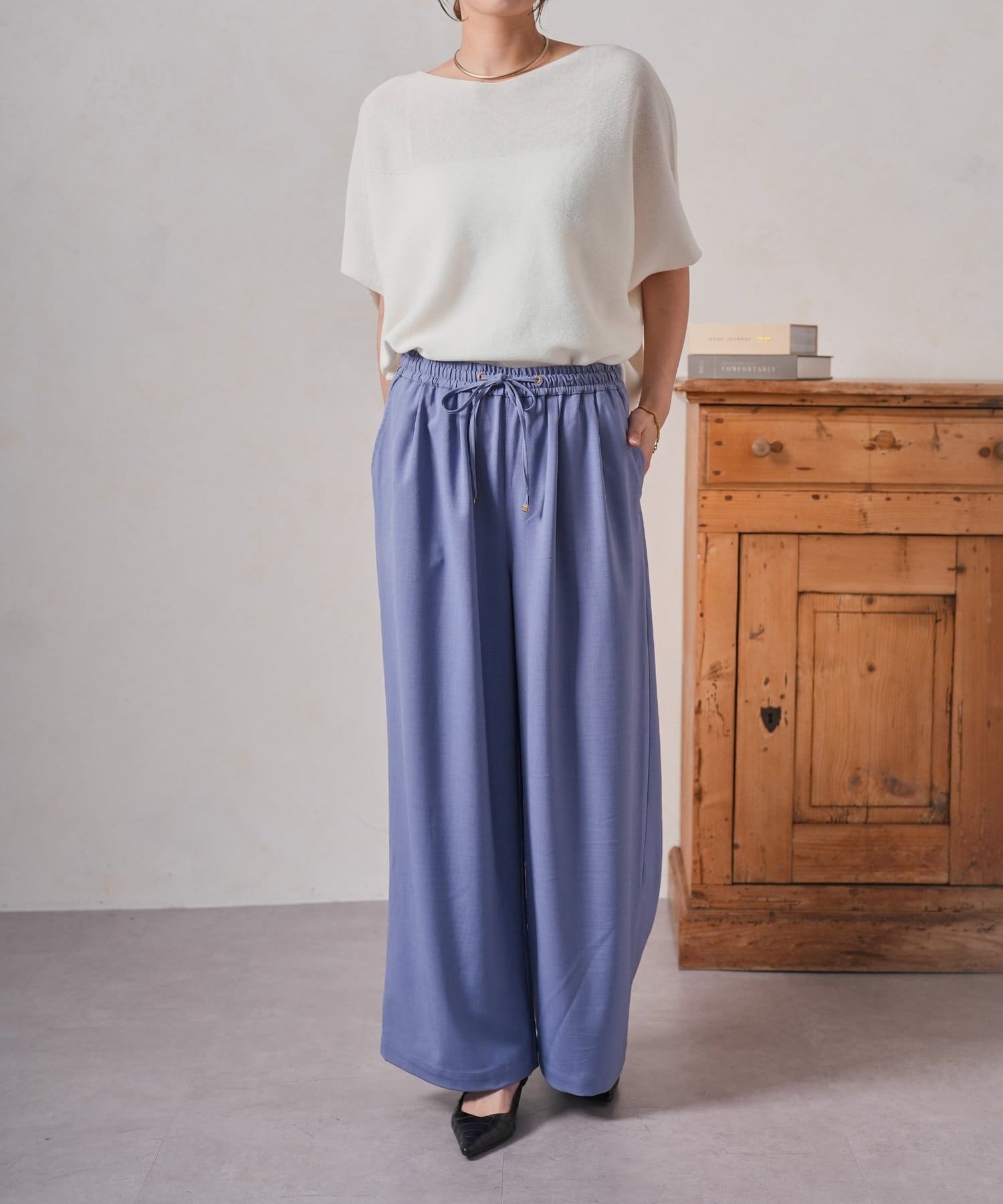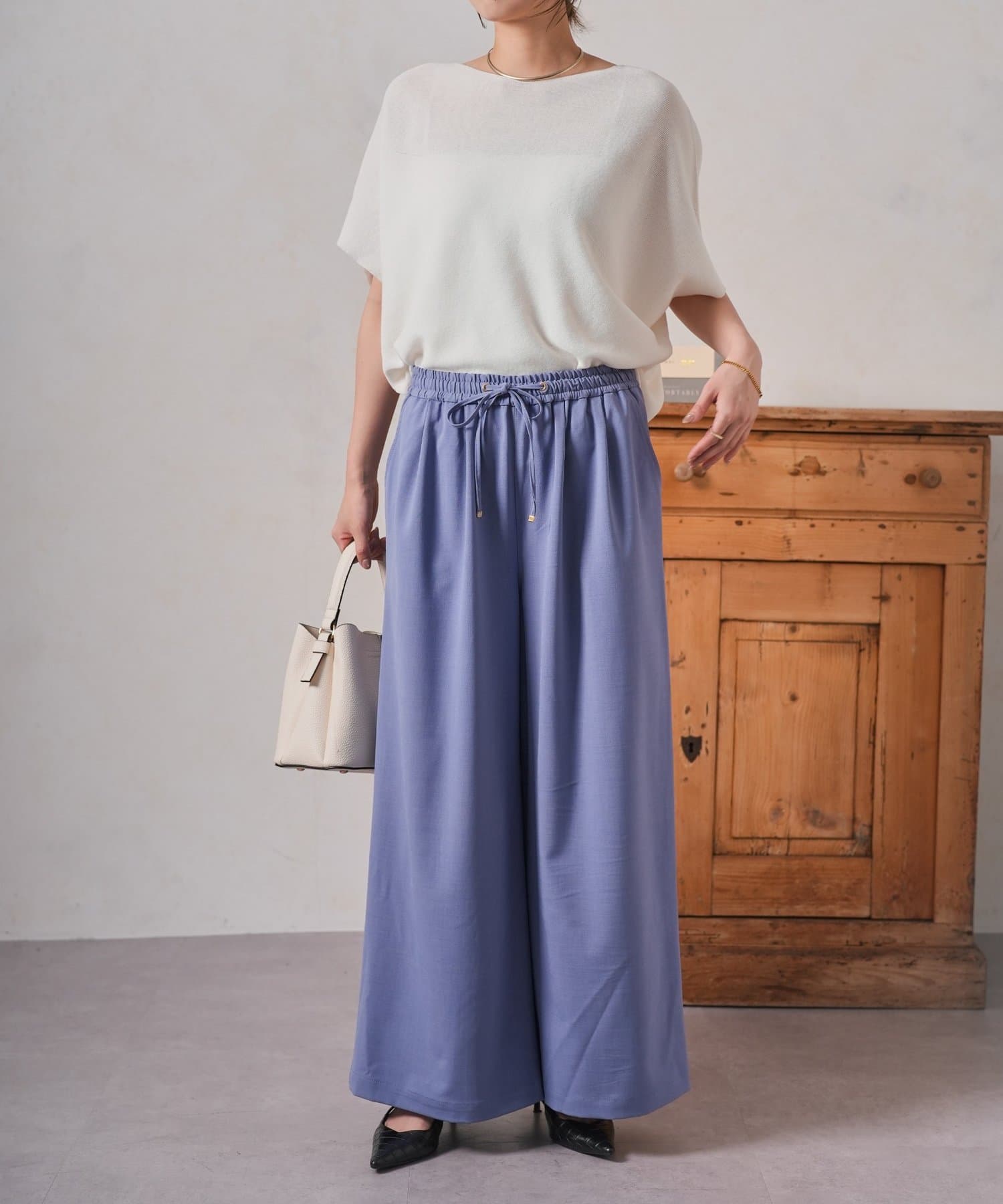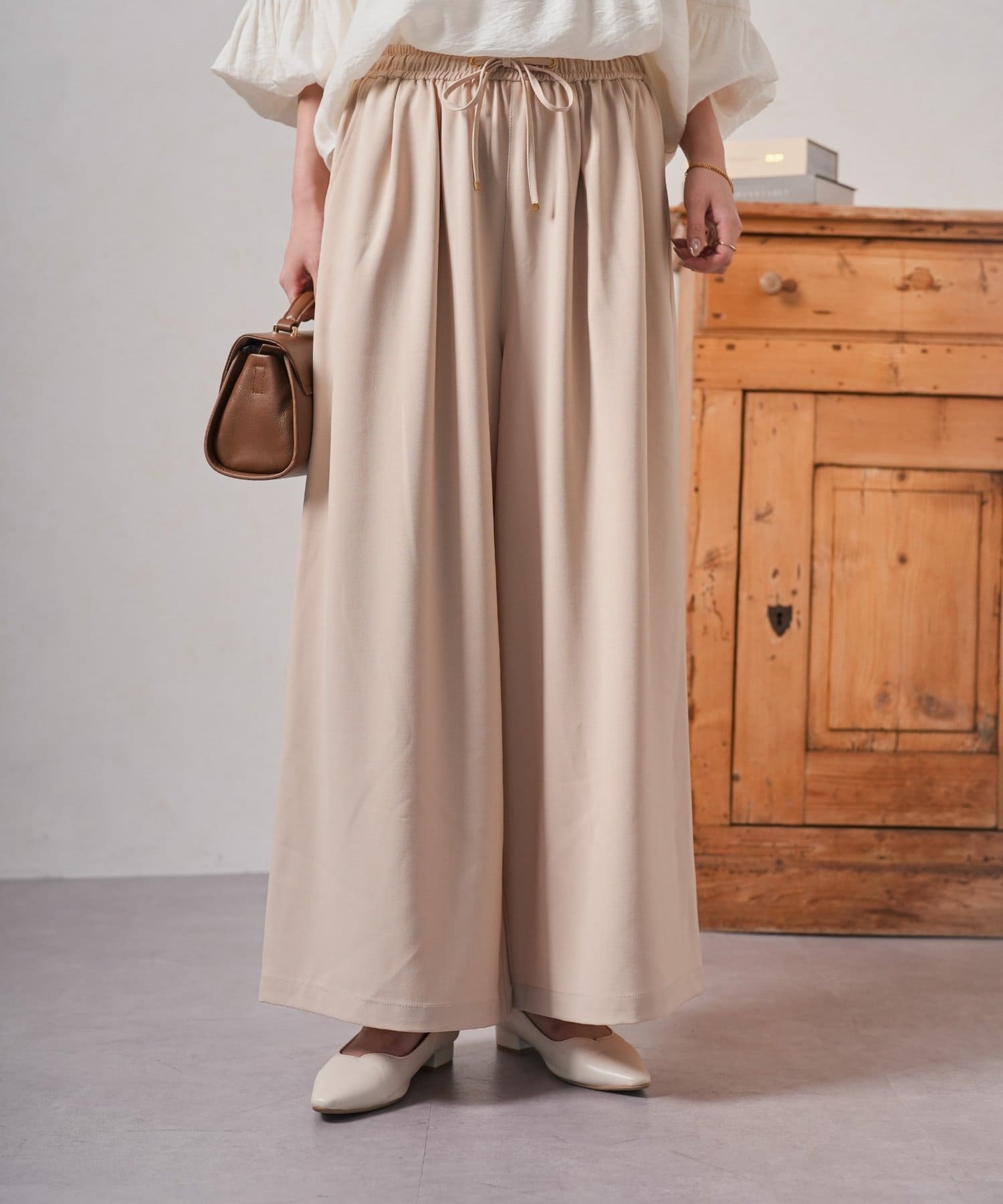・ゆったりとしたワイドシルエットは、気になる体型をカバーしつつ、リラックスした着心地。