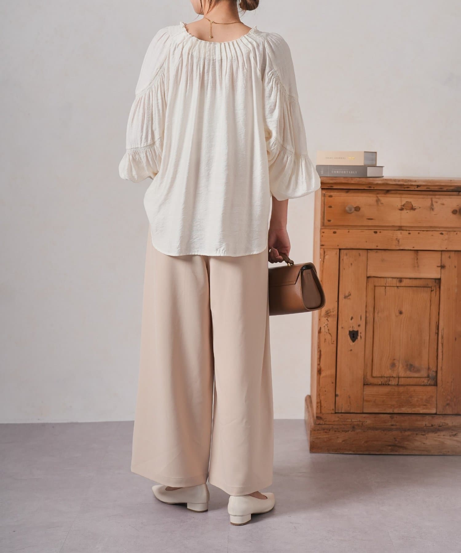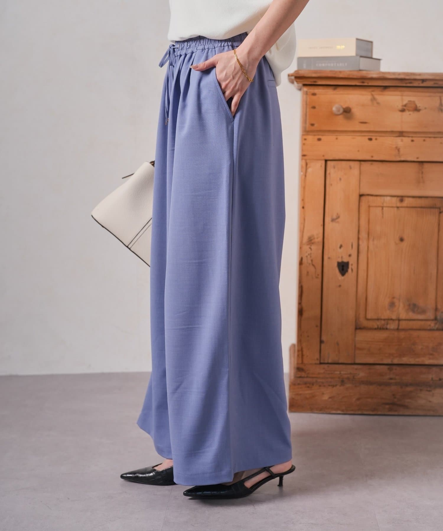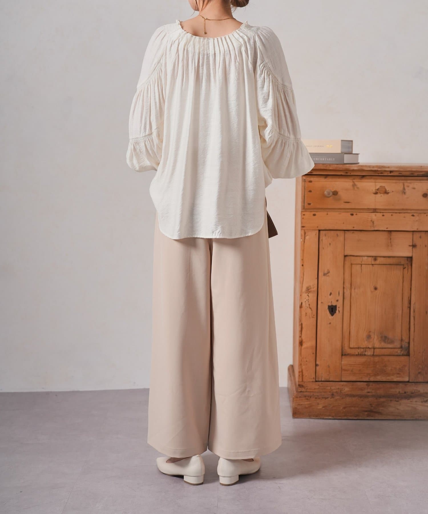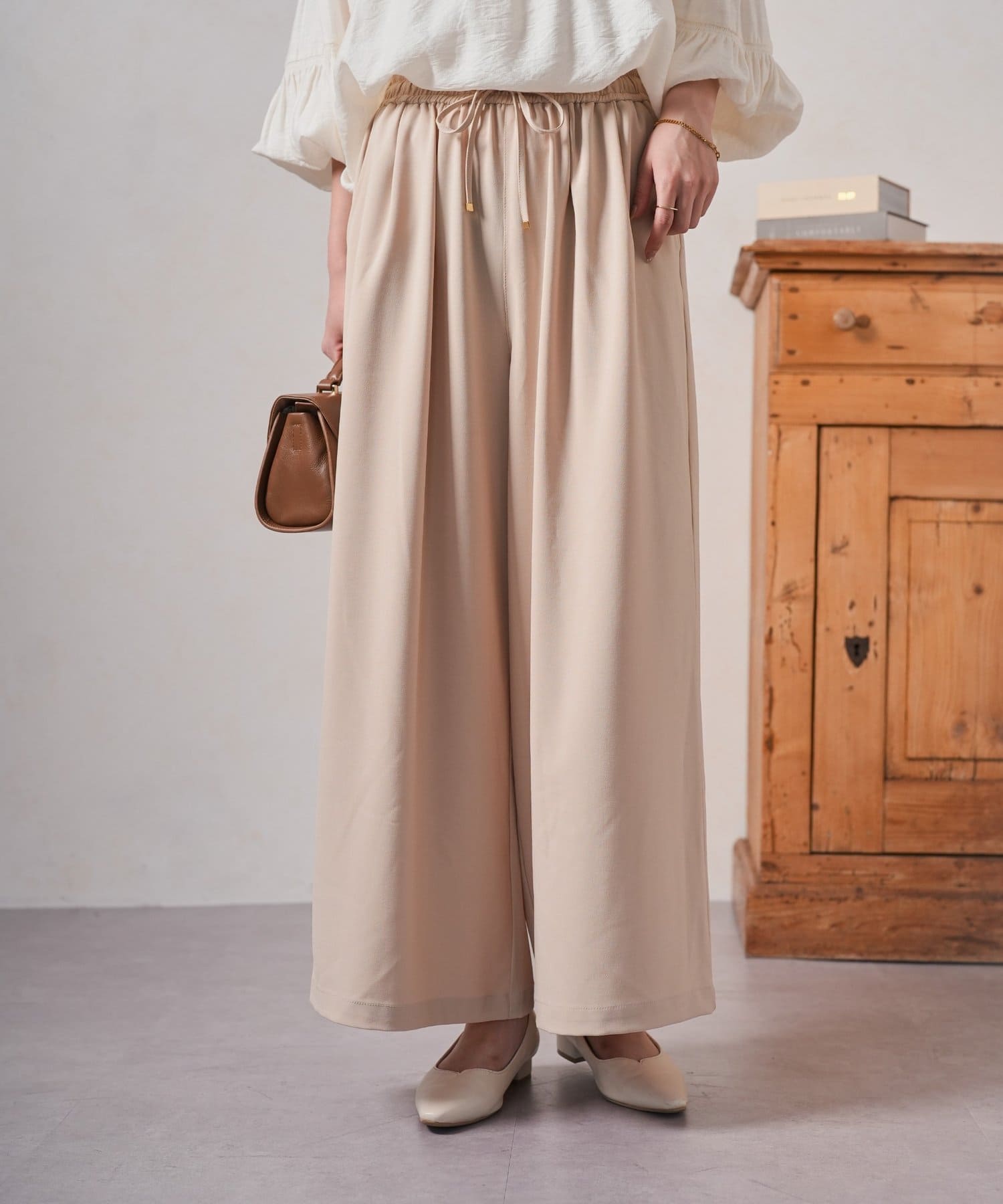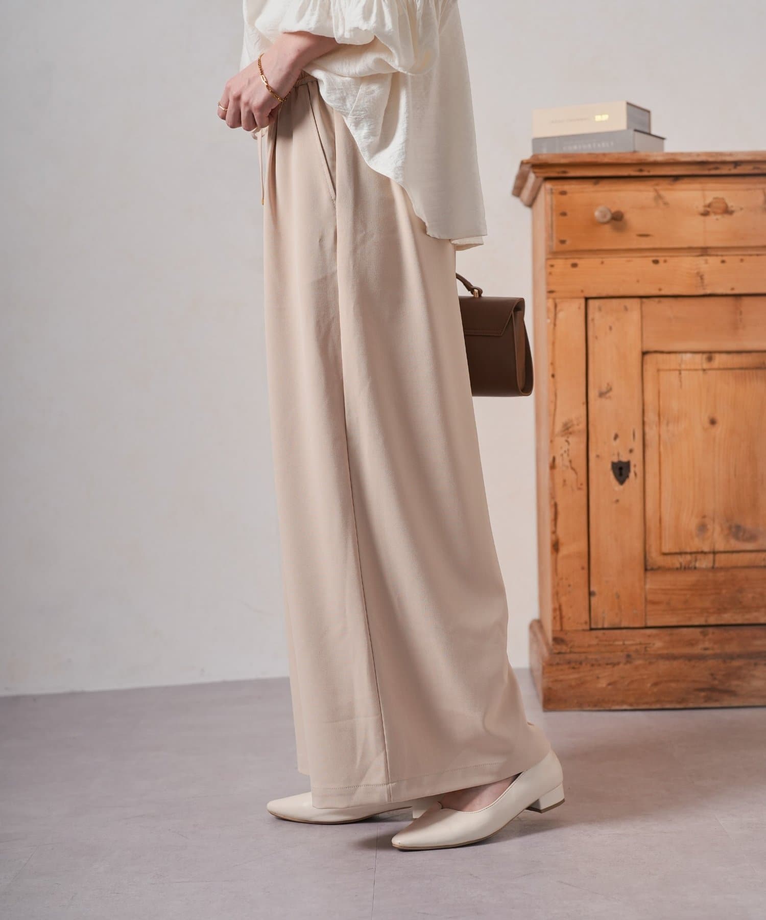 ・ゆったりとしたワイドシルエットは、気になる体型をカバーしつつ、リラックスした着心地。