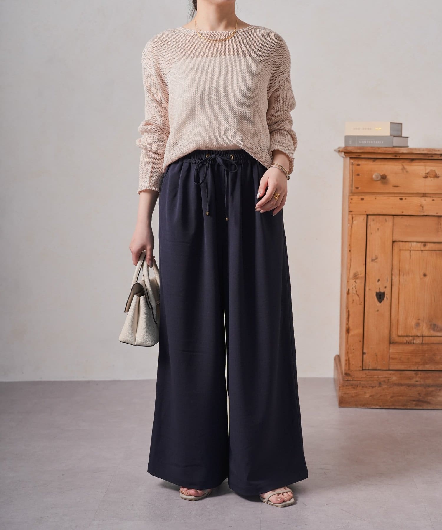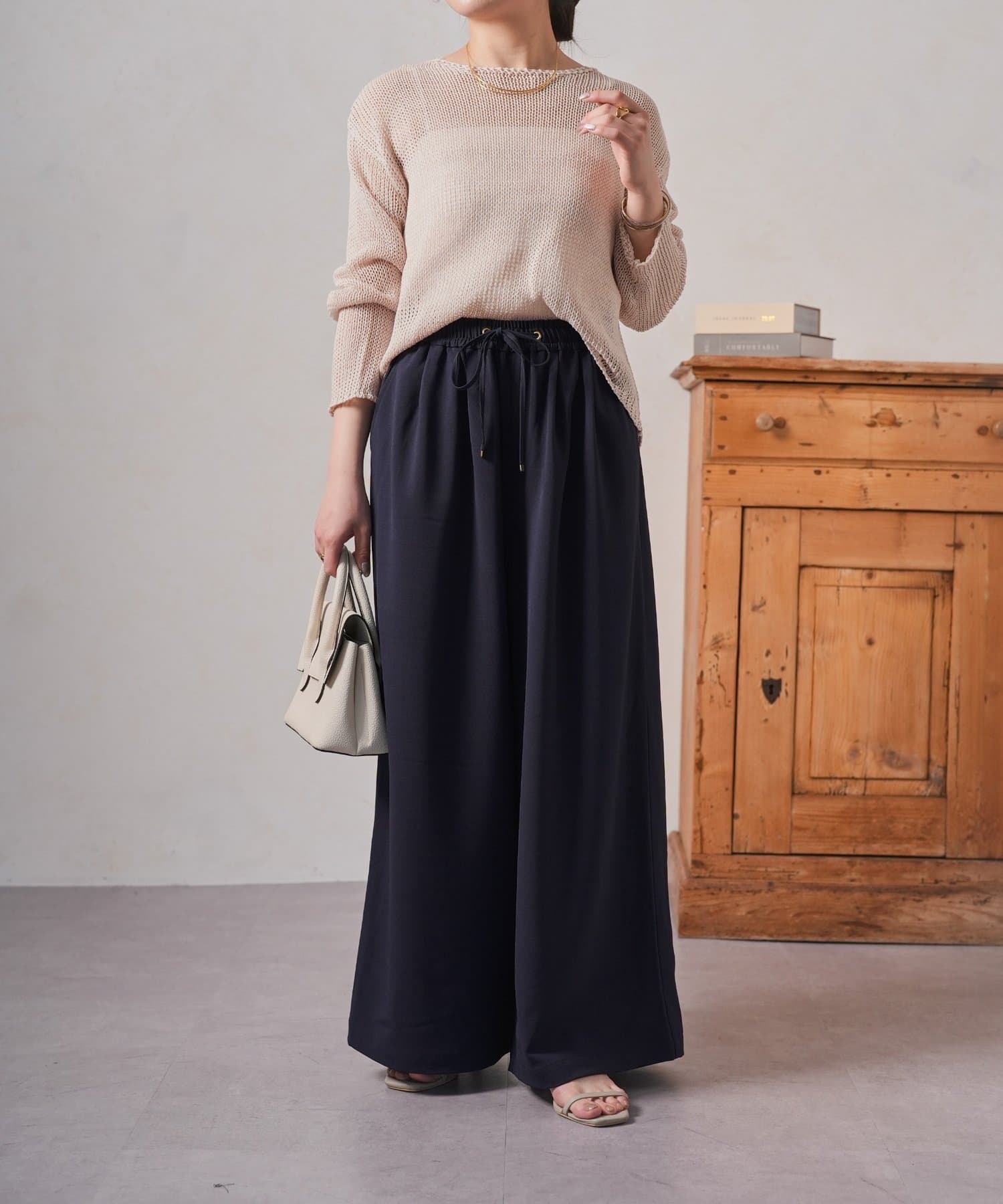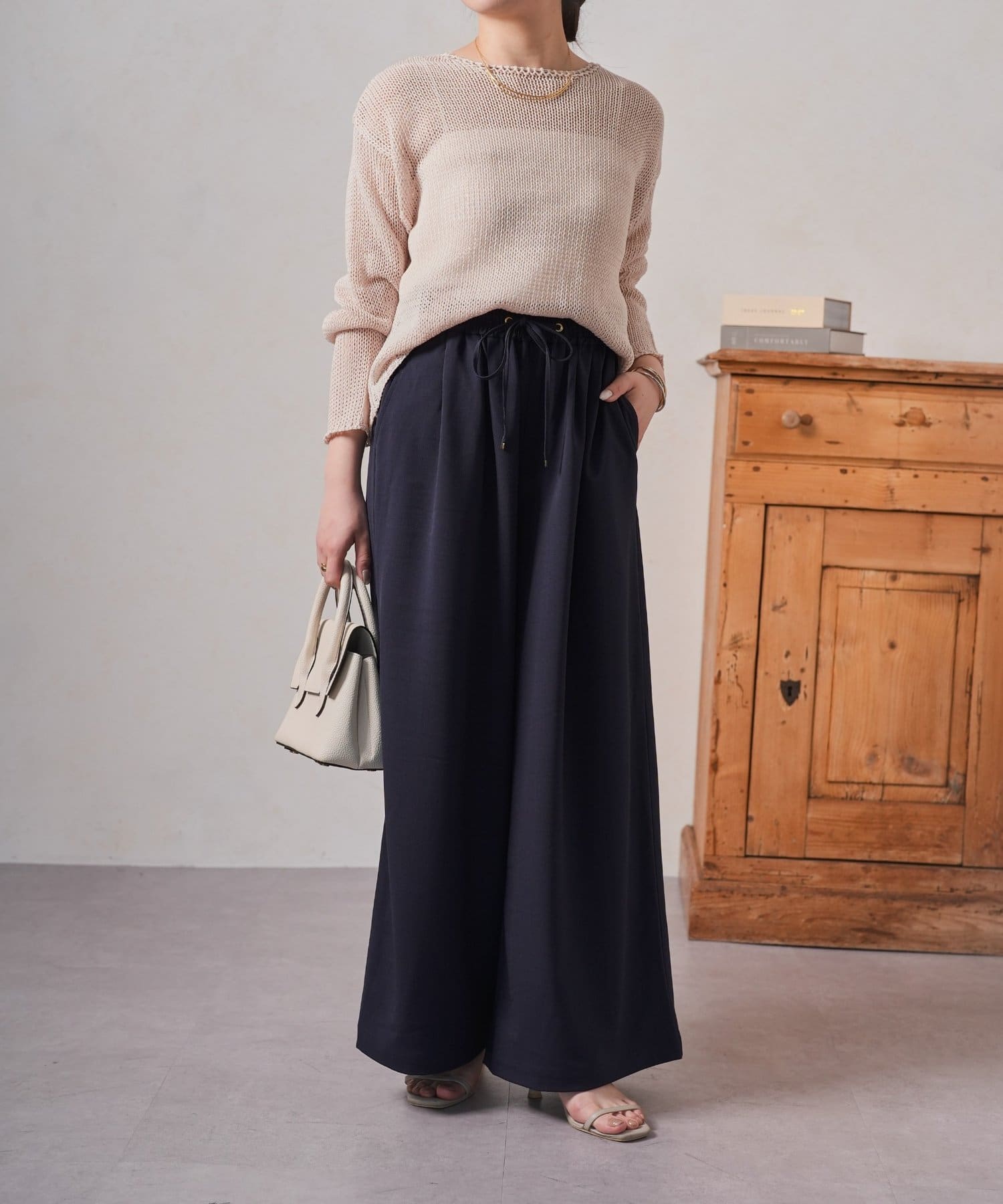 ・カジュアルになりすぎない、上品な素材感もポイント。