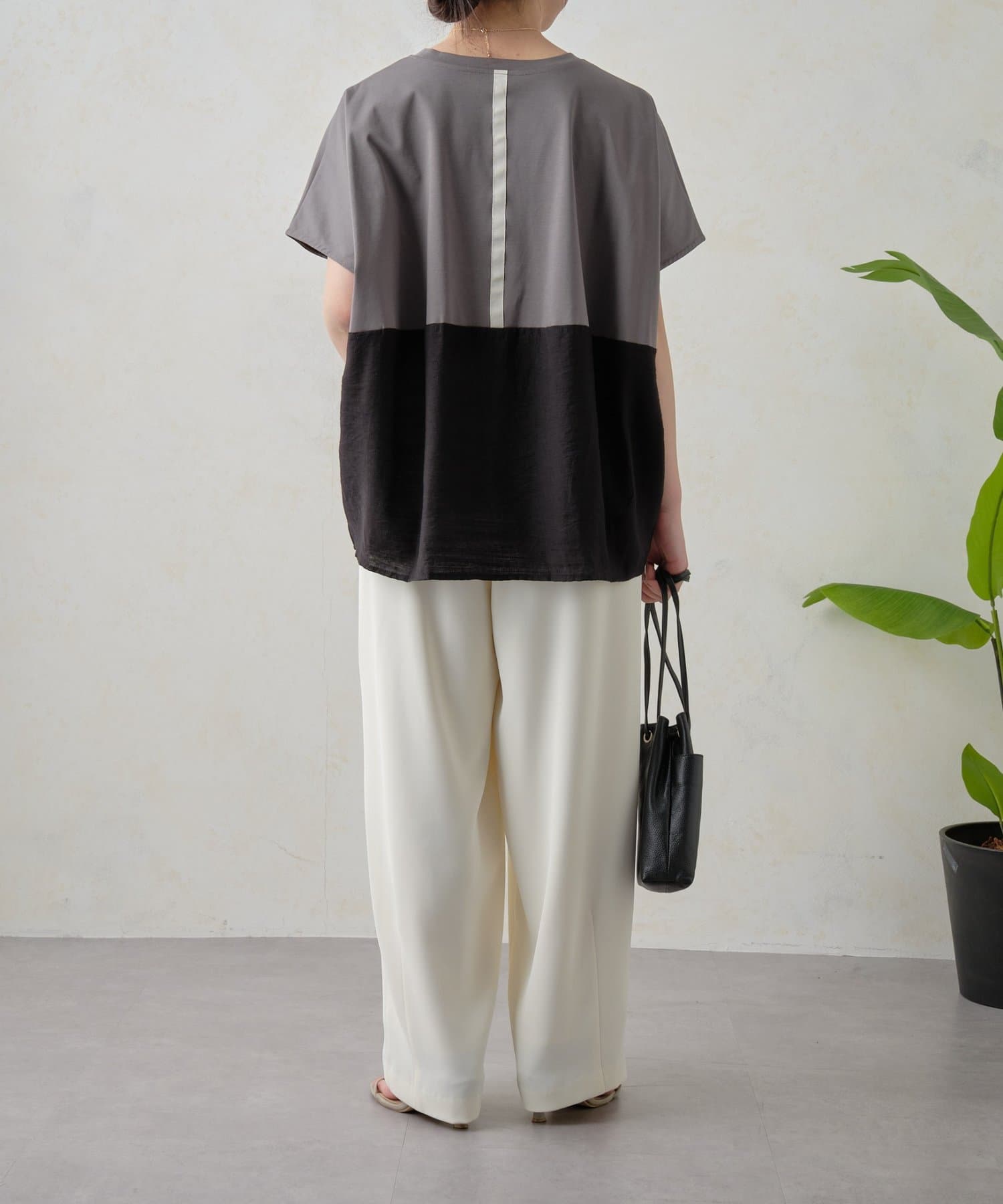 ・ウエスト部分にあしらわれた切り替えが、シンプルながらも洗練された印象を与えます。