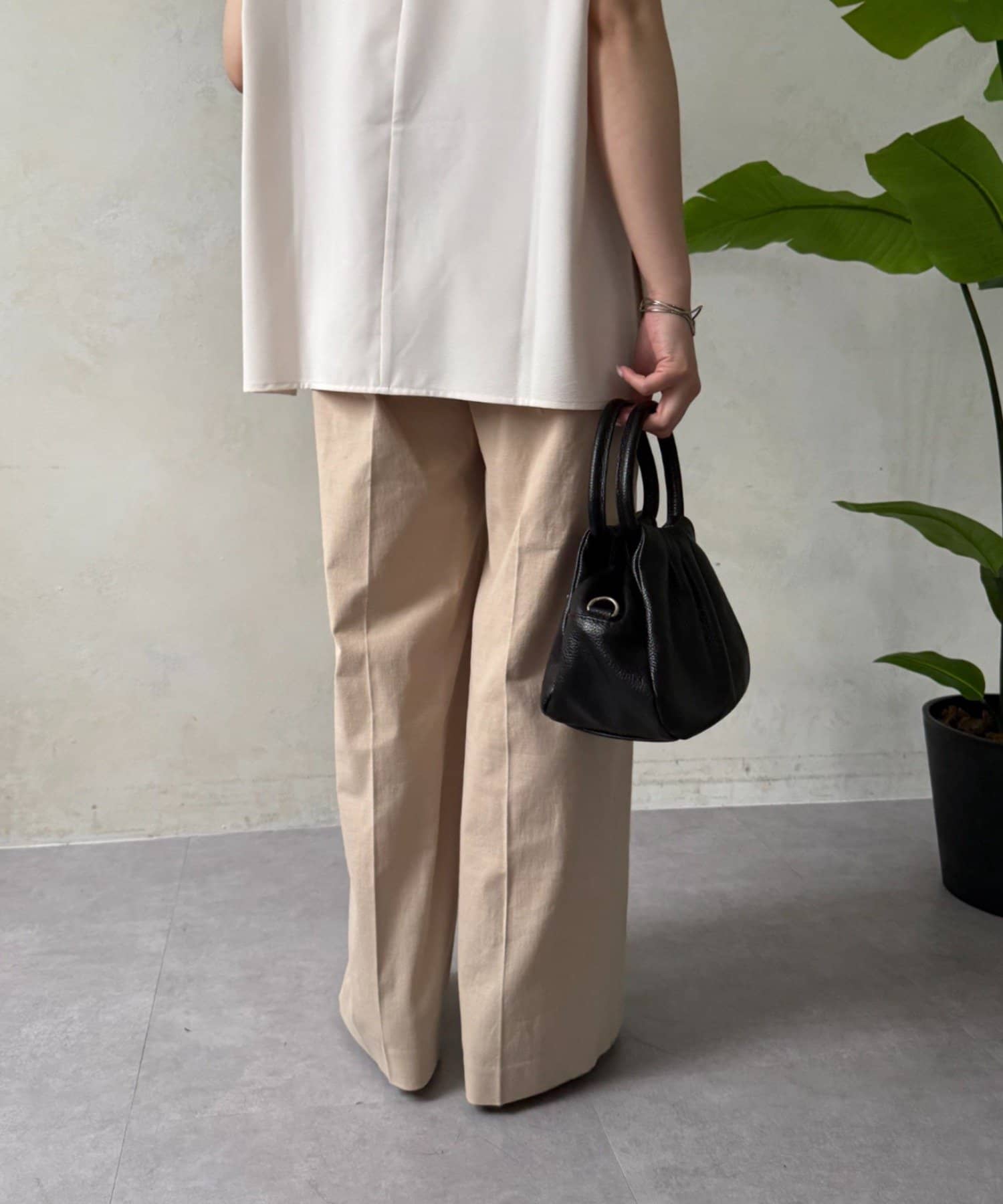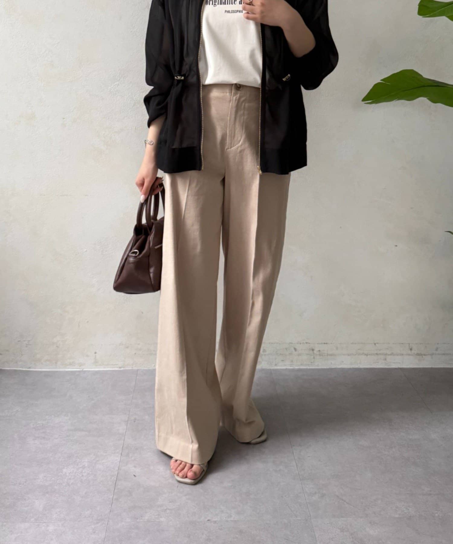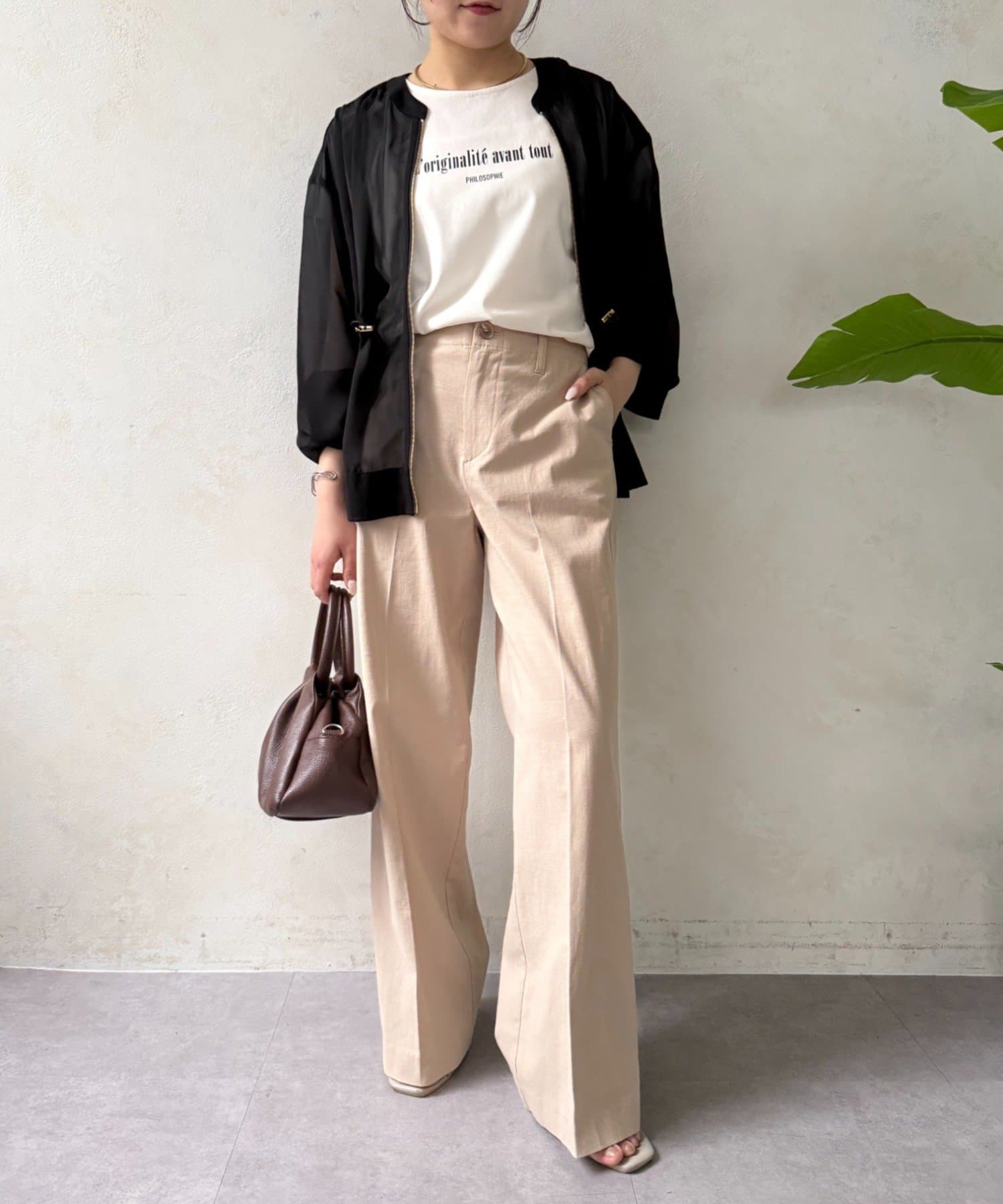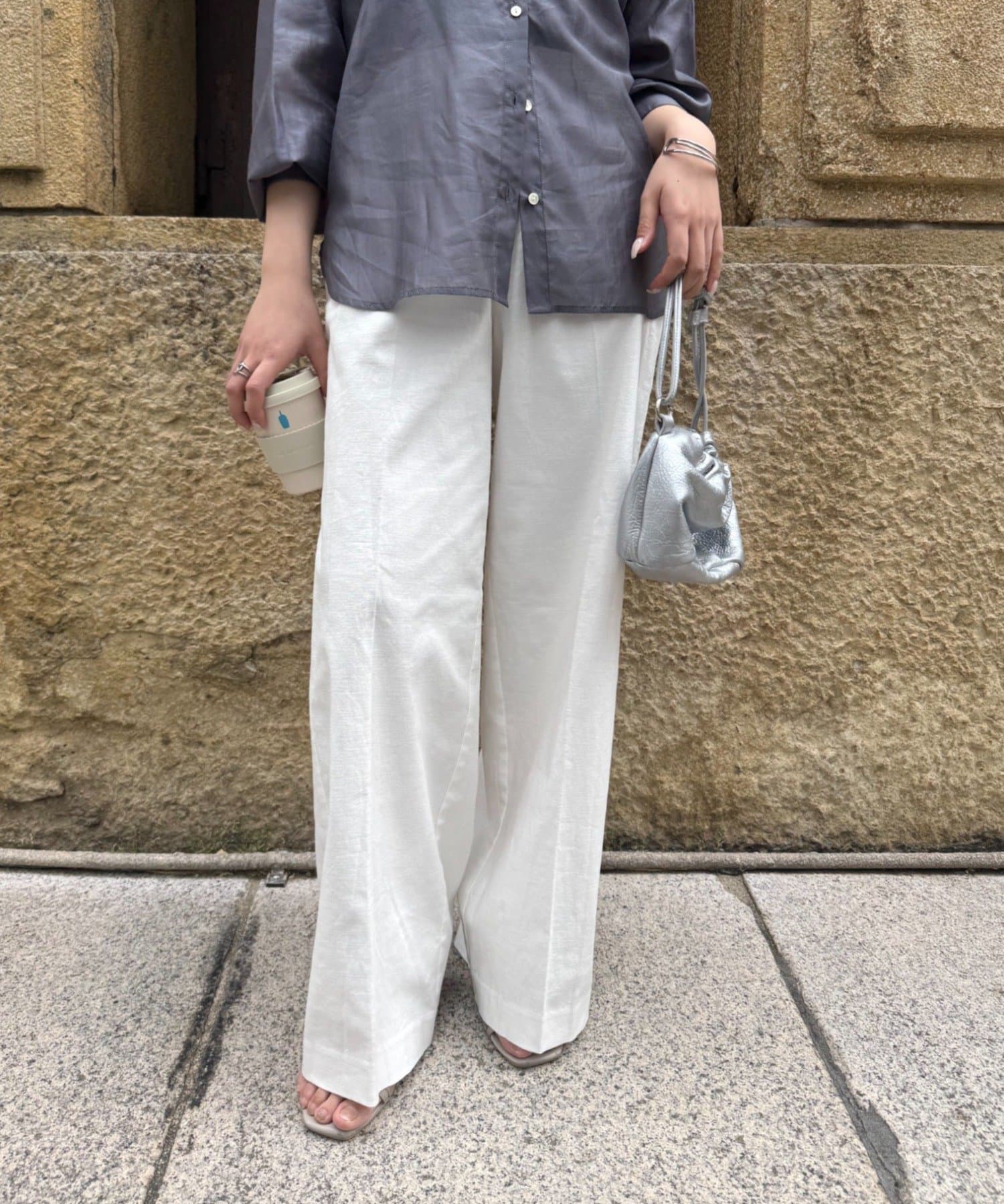 ・広がりすぎない絶妙なワイドシルエットは、リラックス感がありながらも上品な印象を与えます。