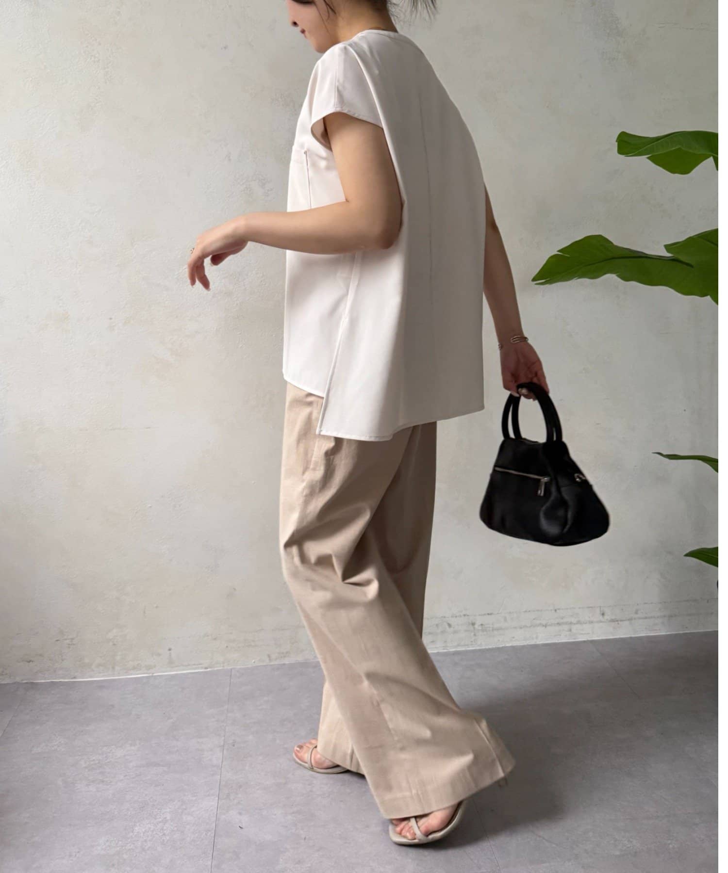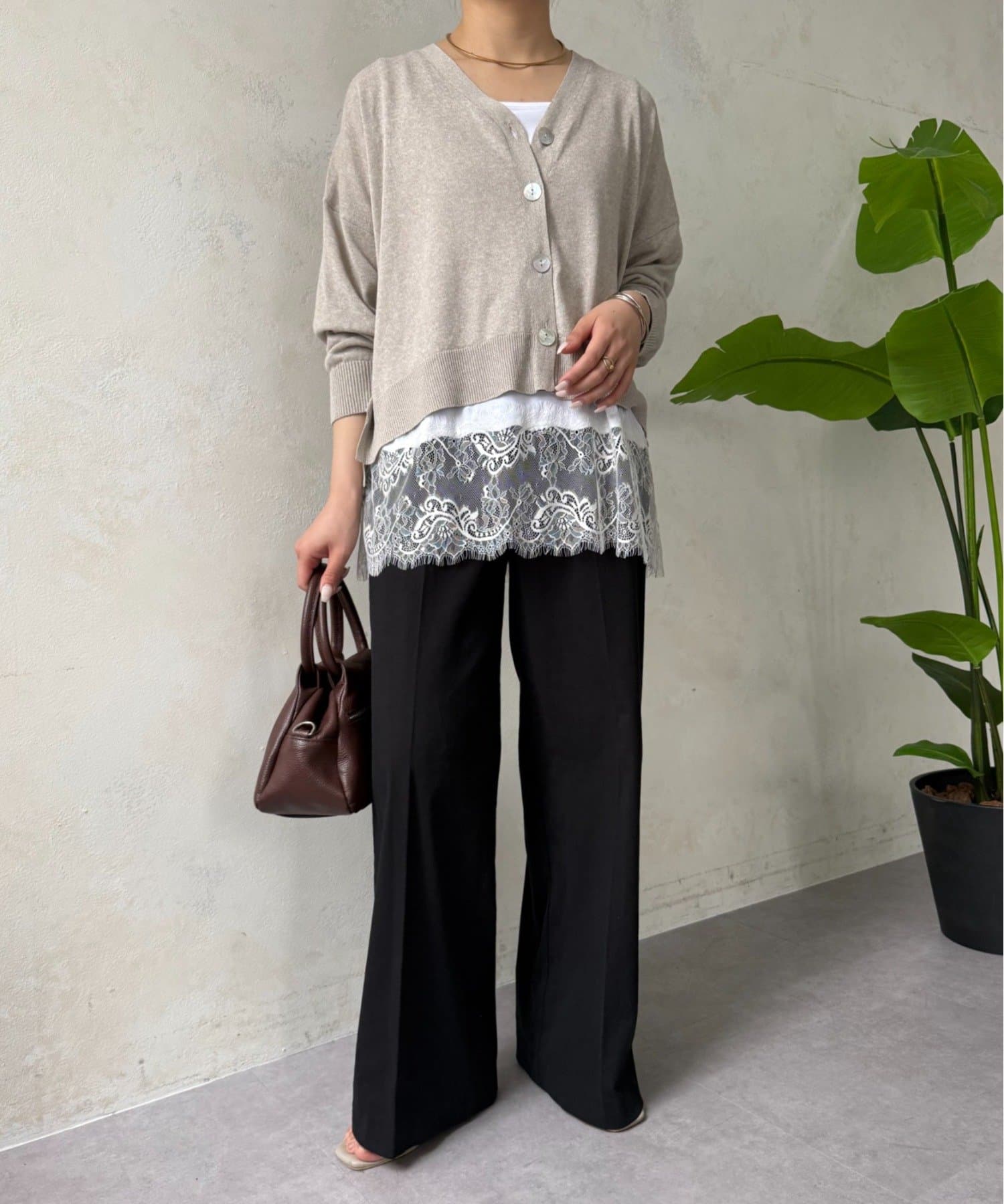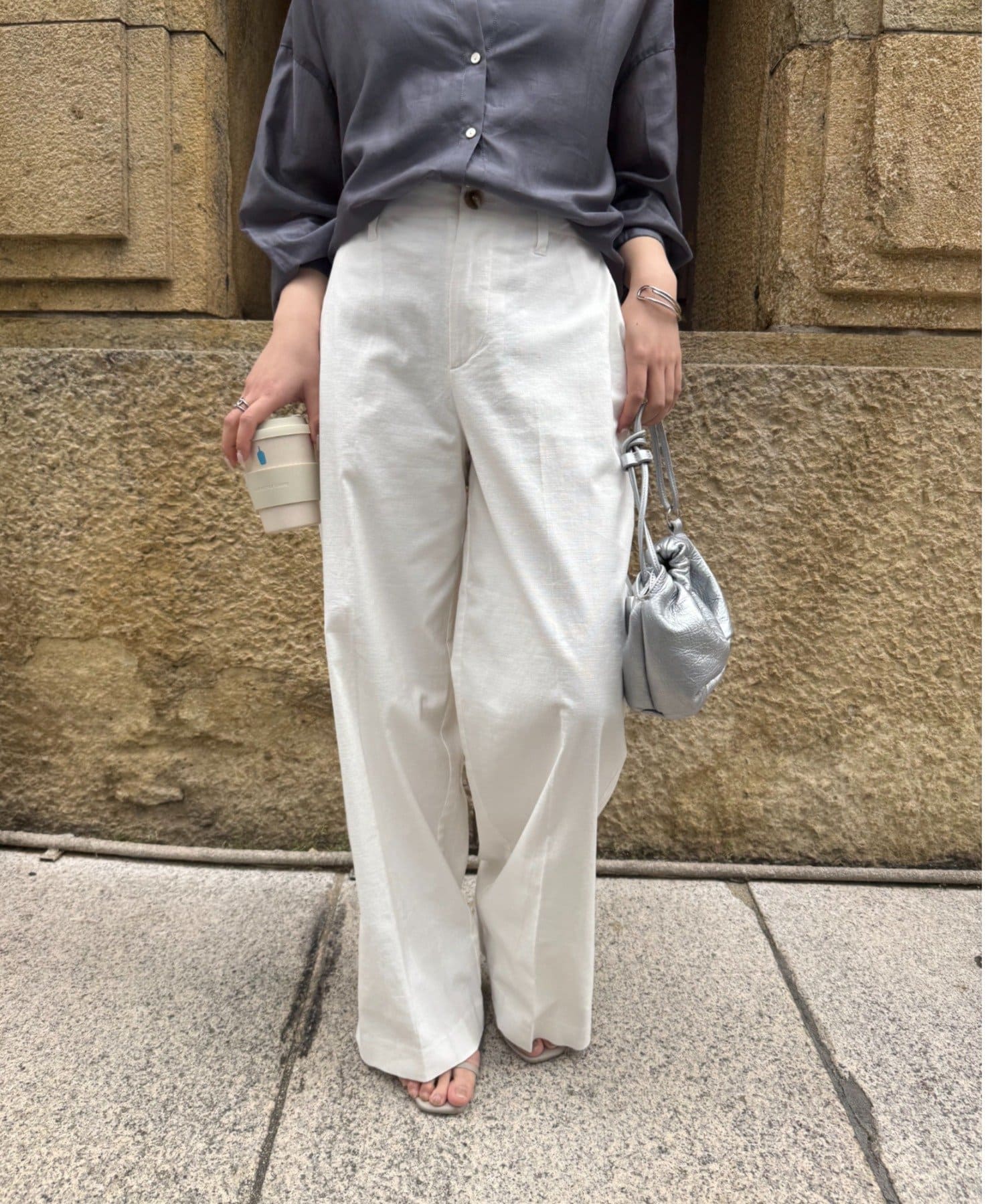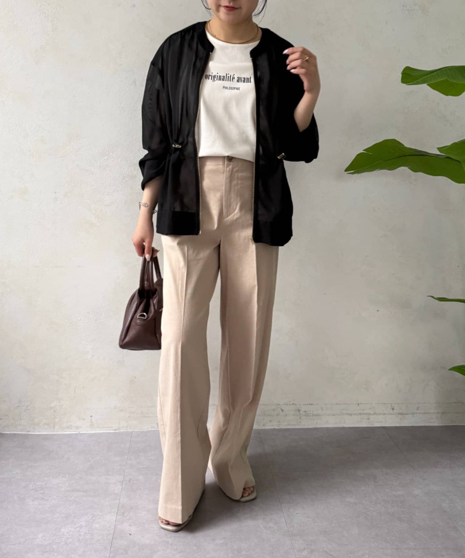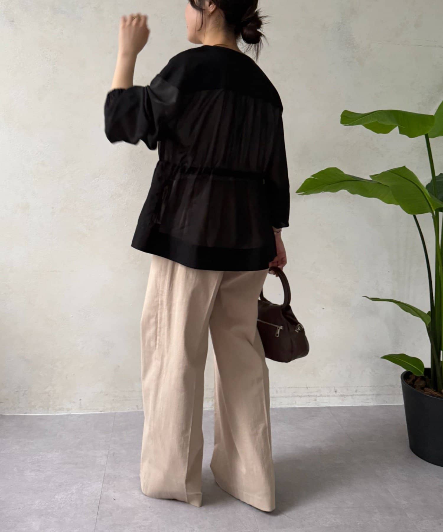 ・広がりすぎない絶妙なワイドシルエットは、リラックス感がありながらも上品な印象を与えます。