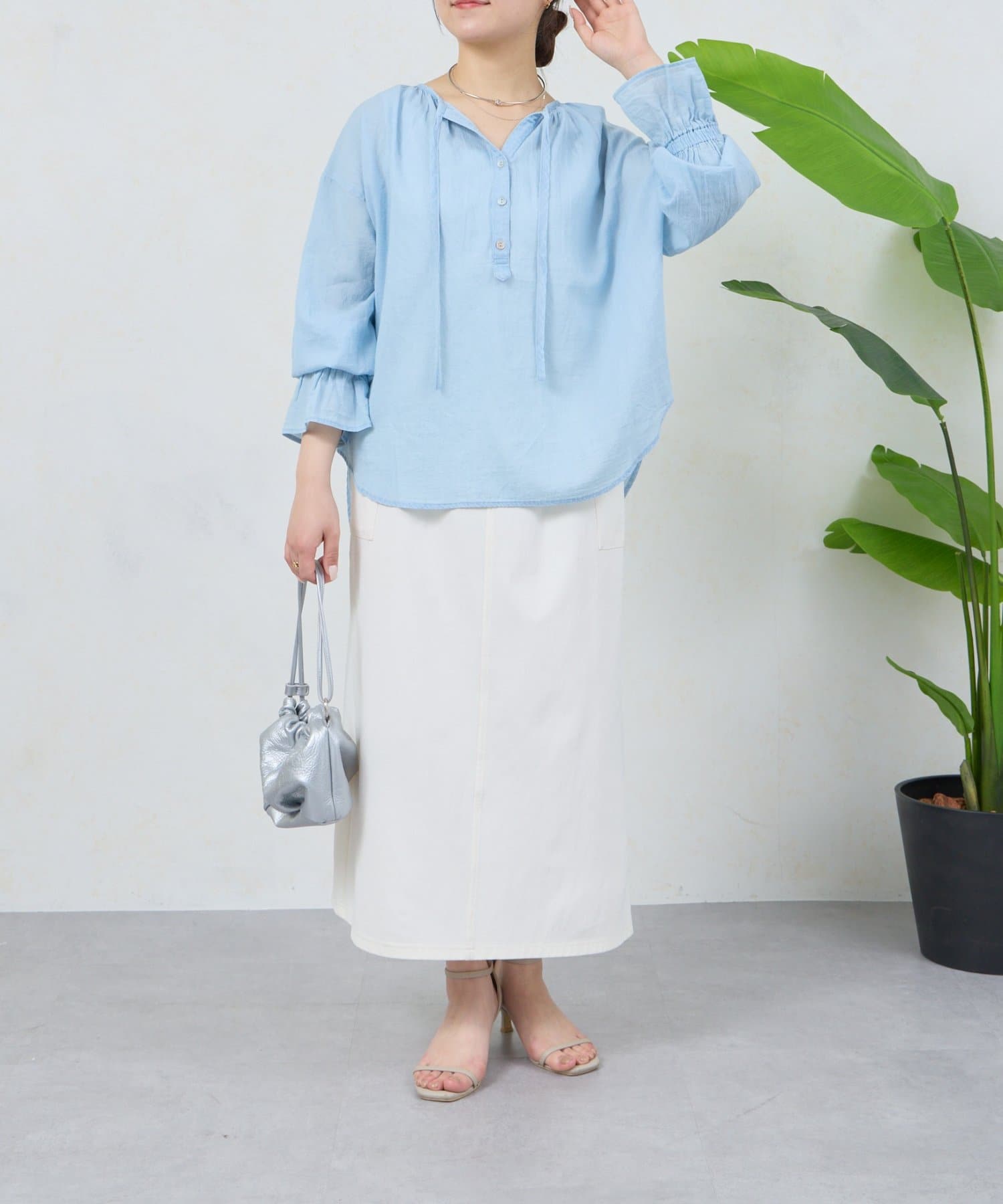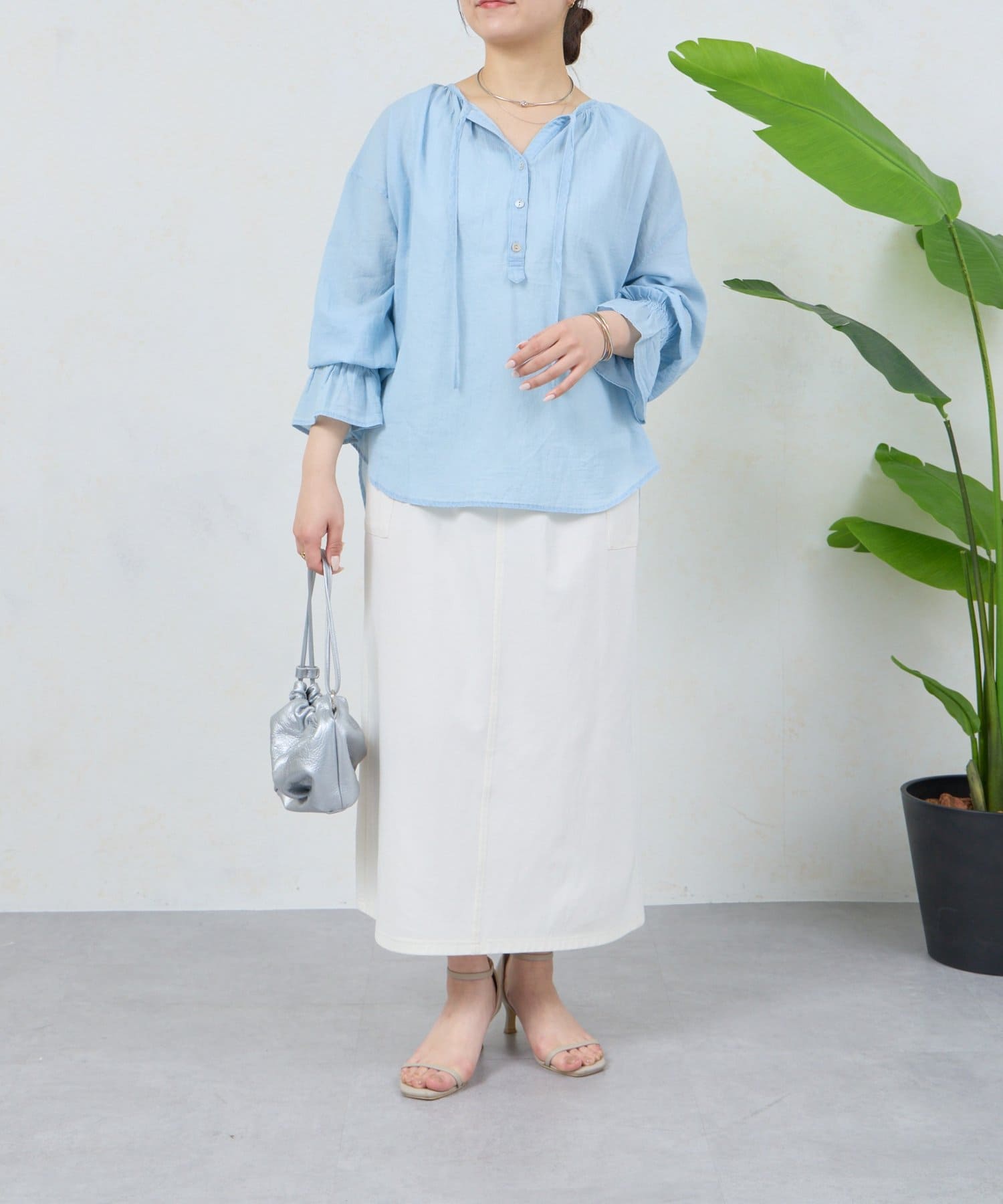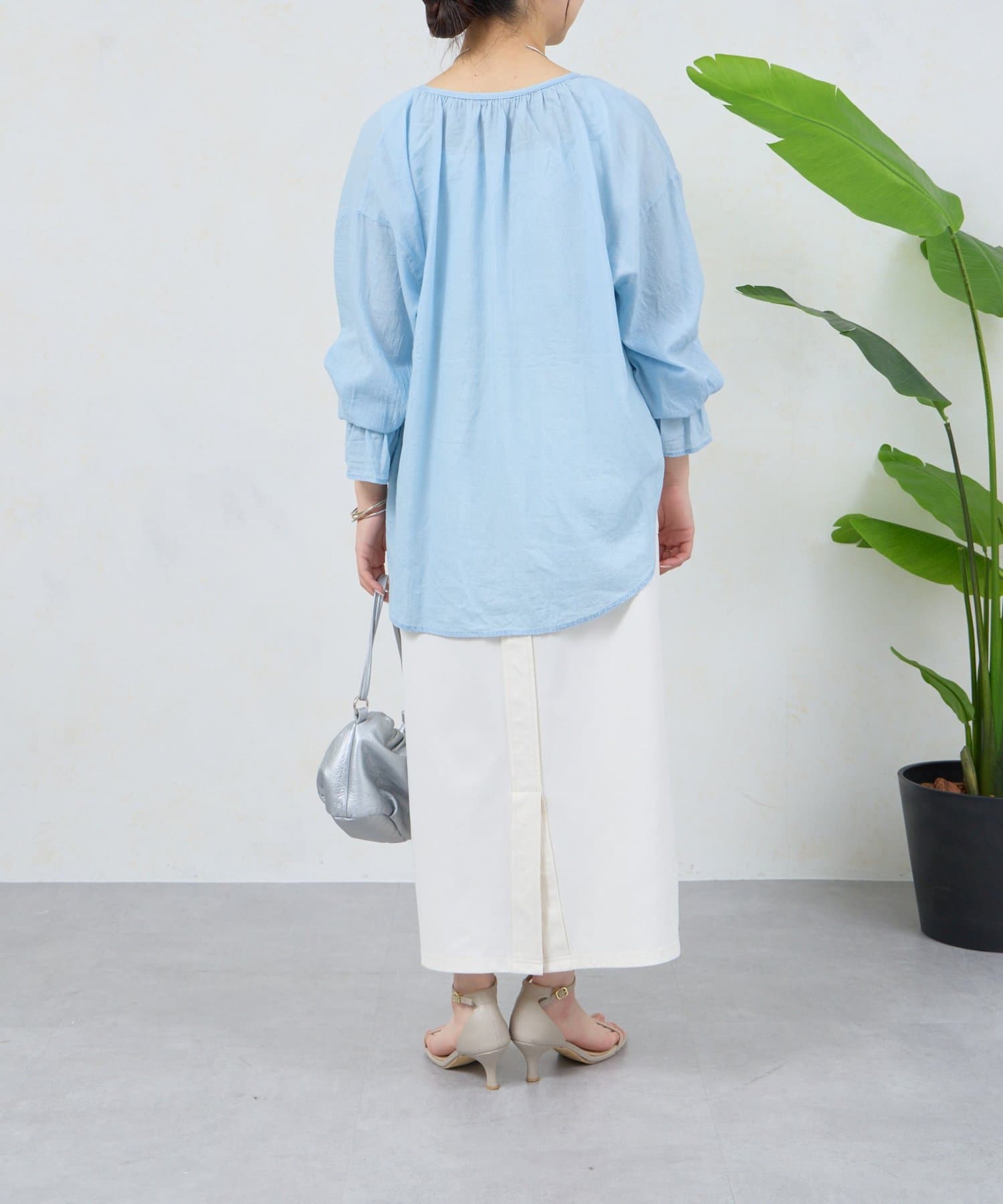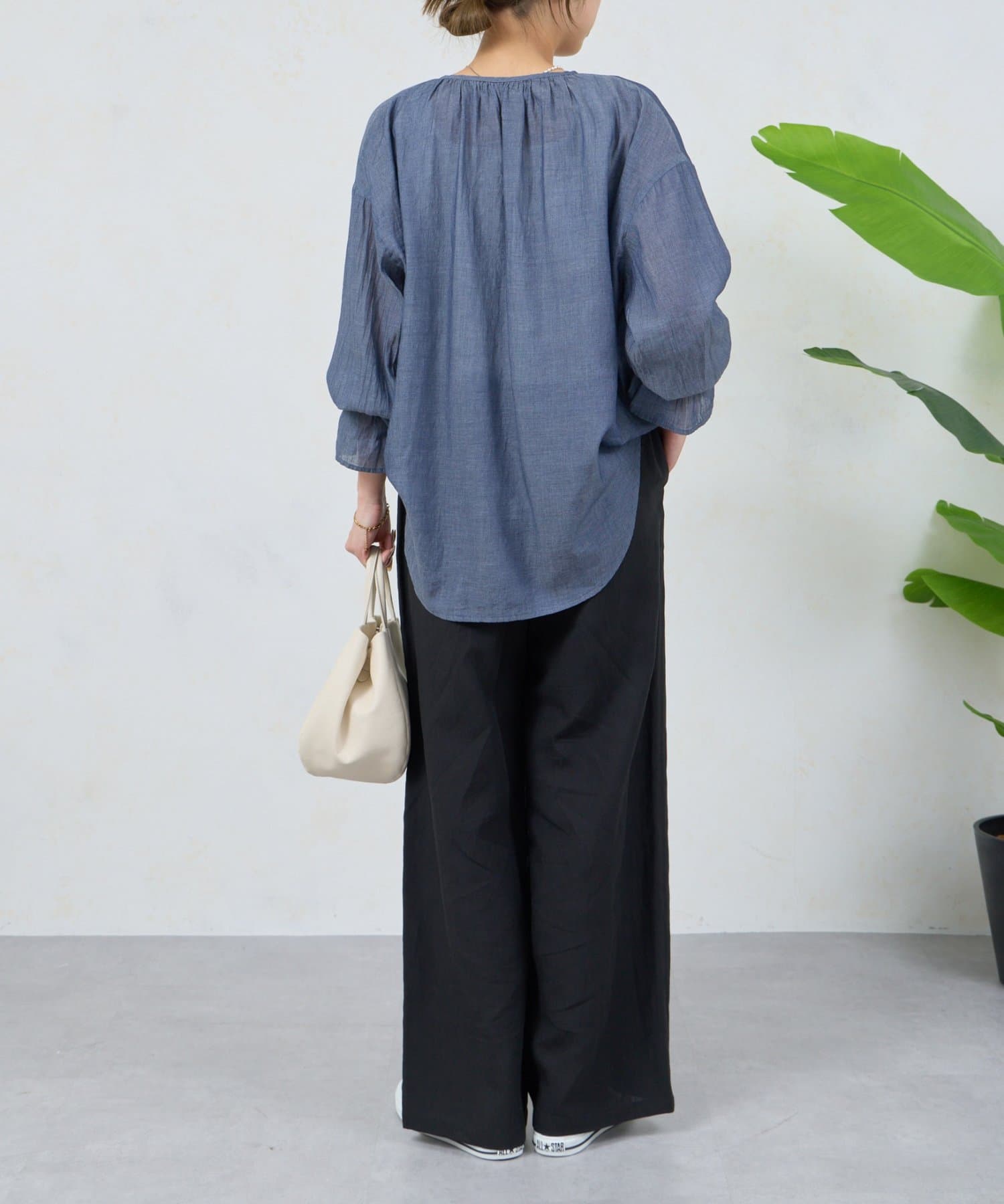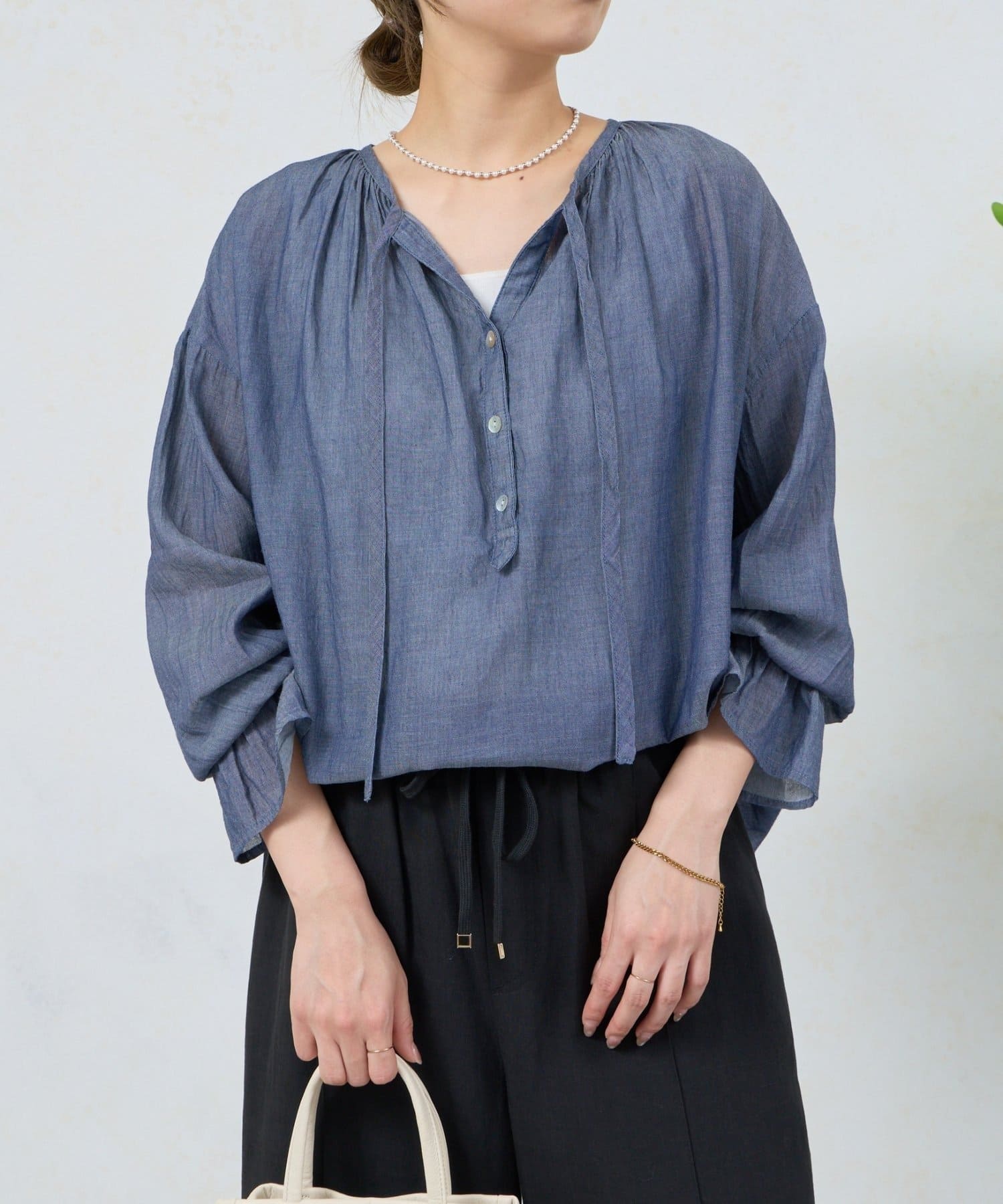 • Jena espace merveilleux(ジェナ エスパスメルヴェイユ) シアーデニムコットンブラウス