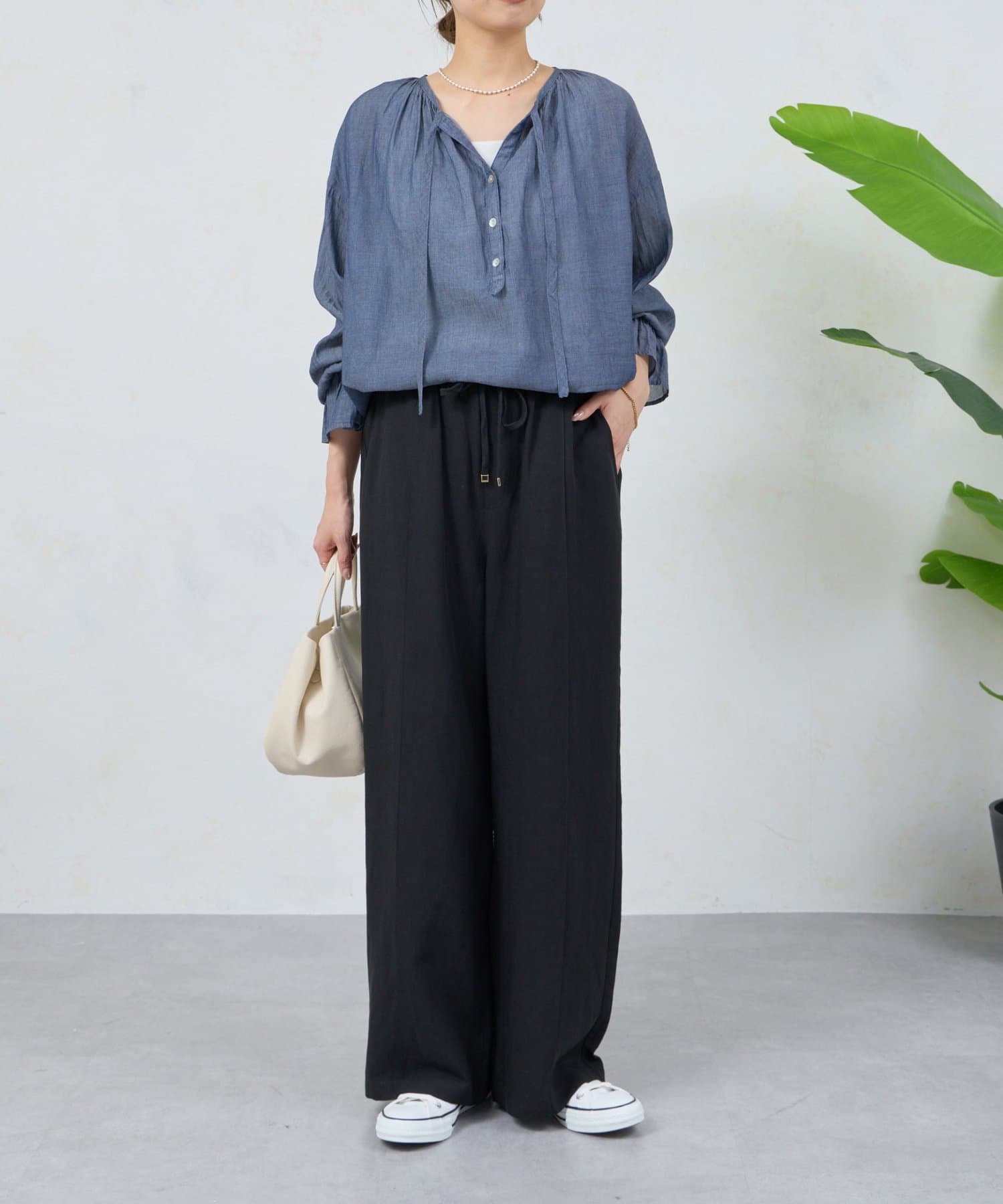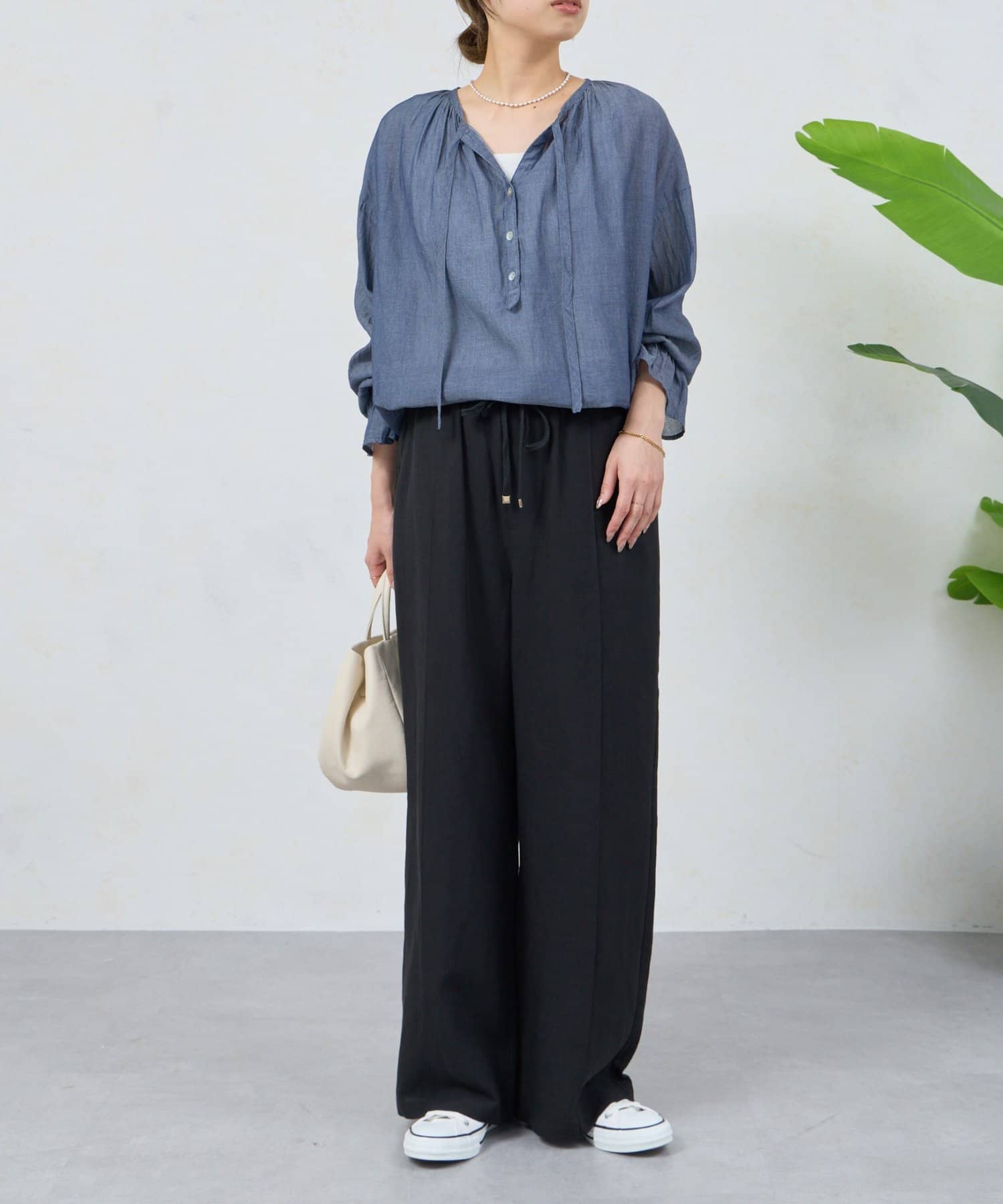 ・ゆったりとしたシルエットで、リラックス感がありながらも、オフィスにも着ていけるきちんと感を演出。