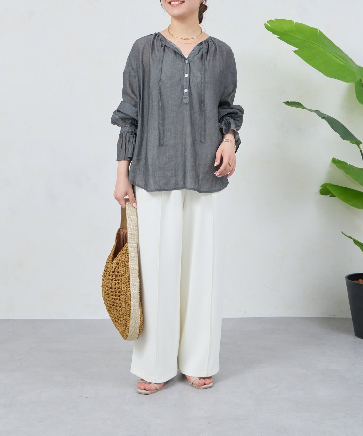 ・袖口のシャーリングが、手首を華奢に見せてくれます。