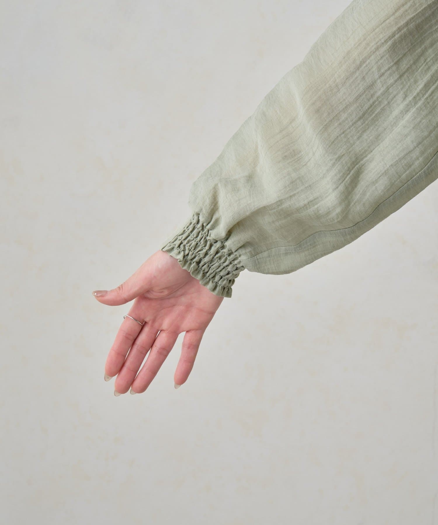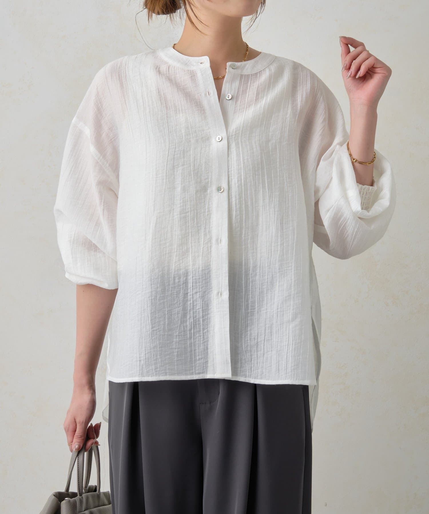 ・さりげない透け感と、ふんわりとしたシルエットが、女性らしさを引き立てます。