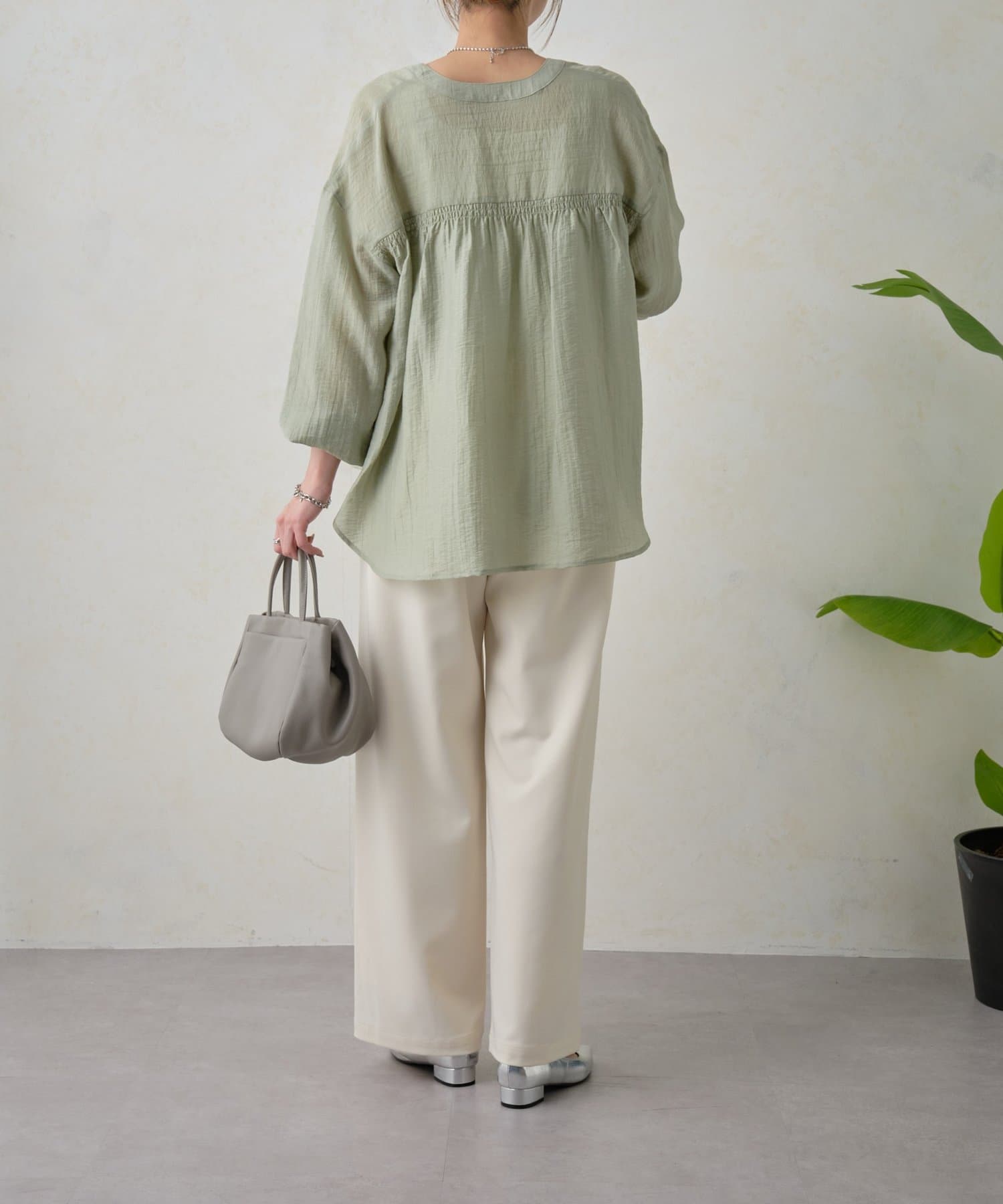 バックギャザーシアーシャツ