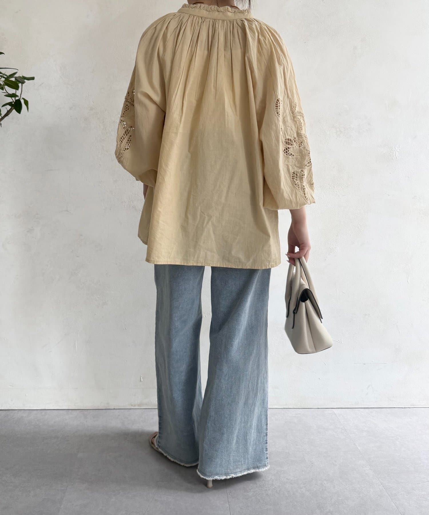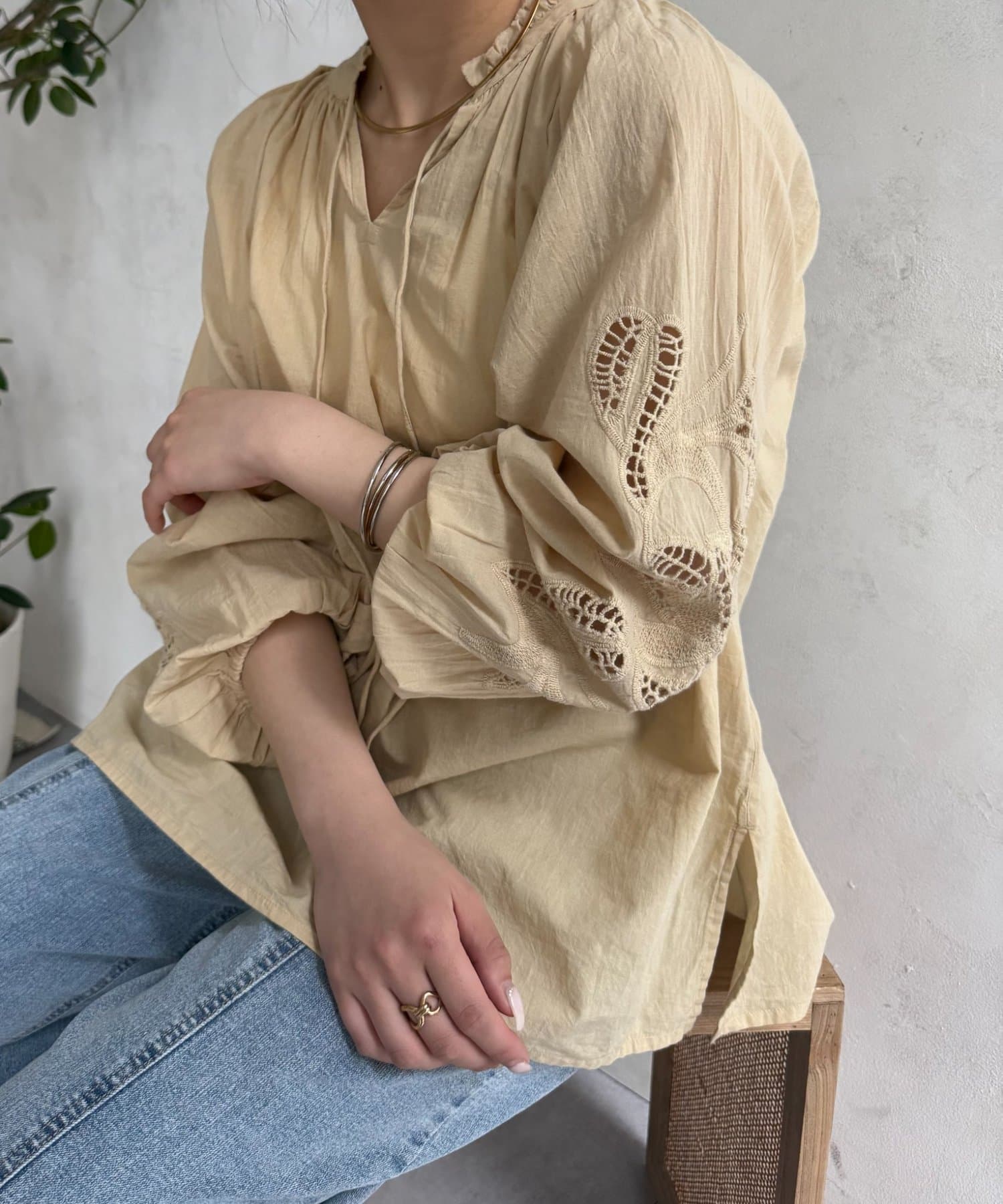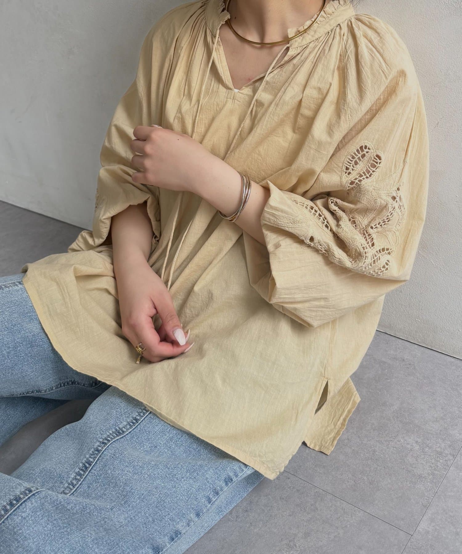 袖レース刺繍ブラウス