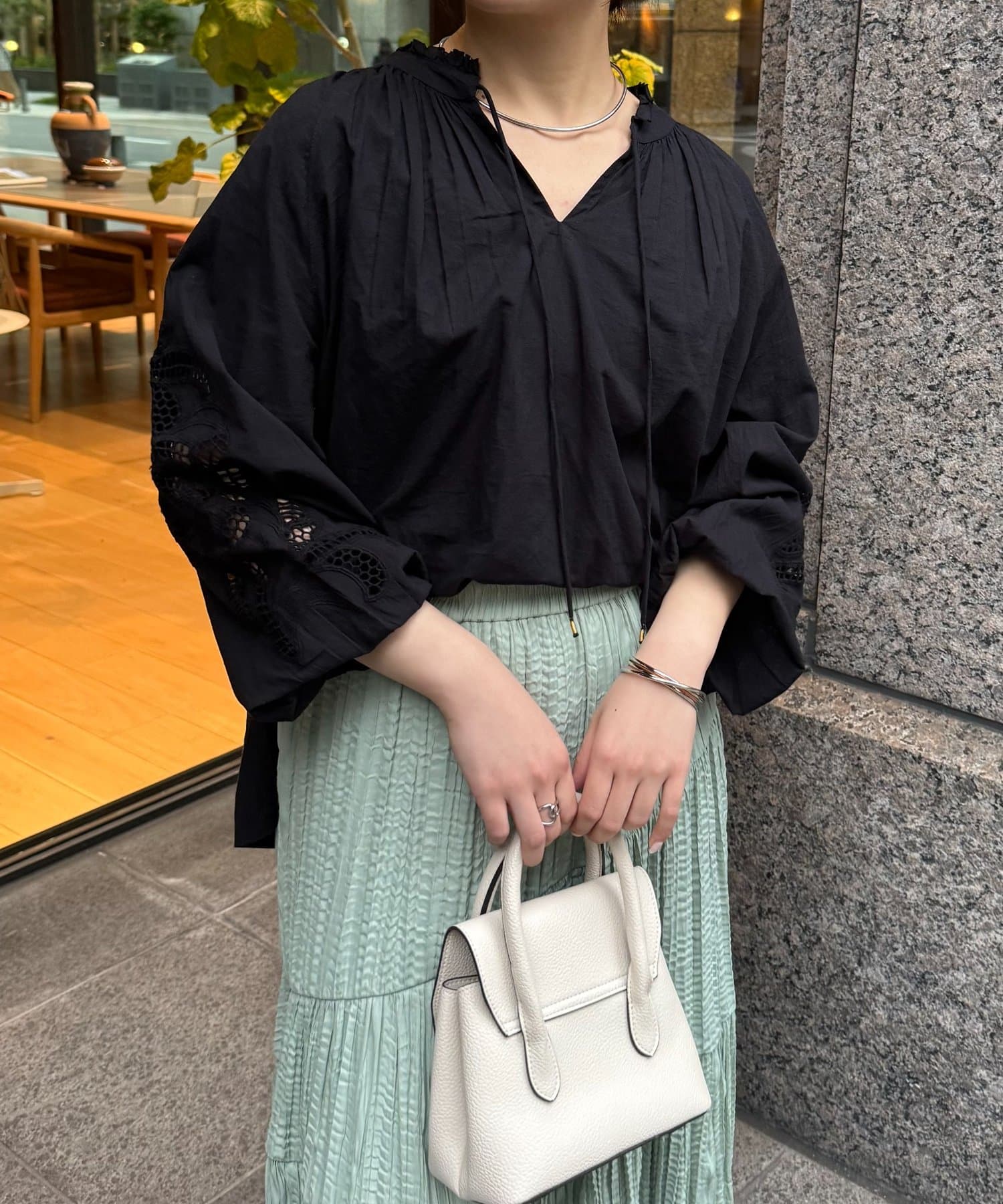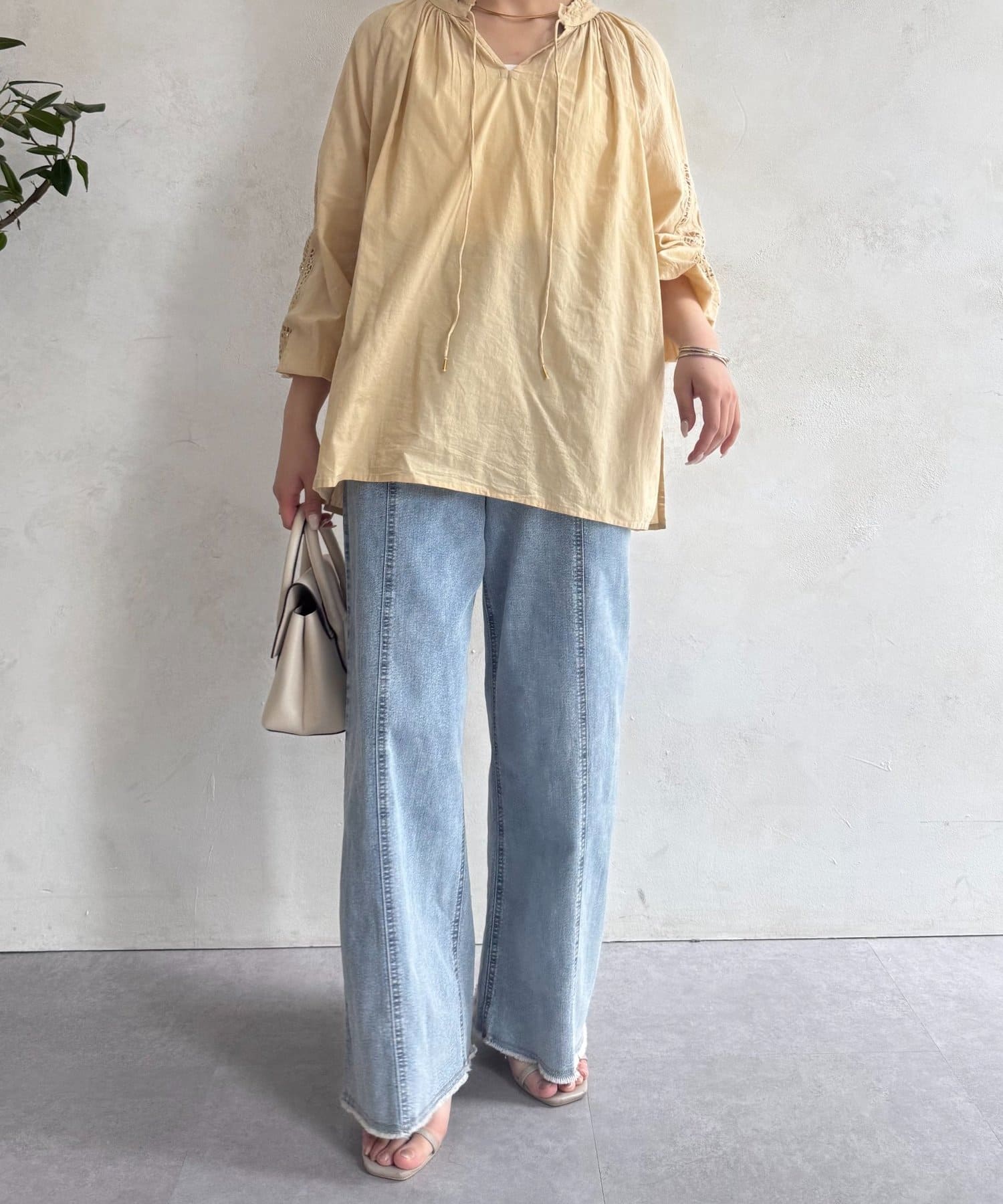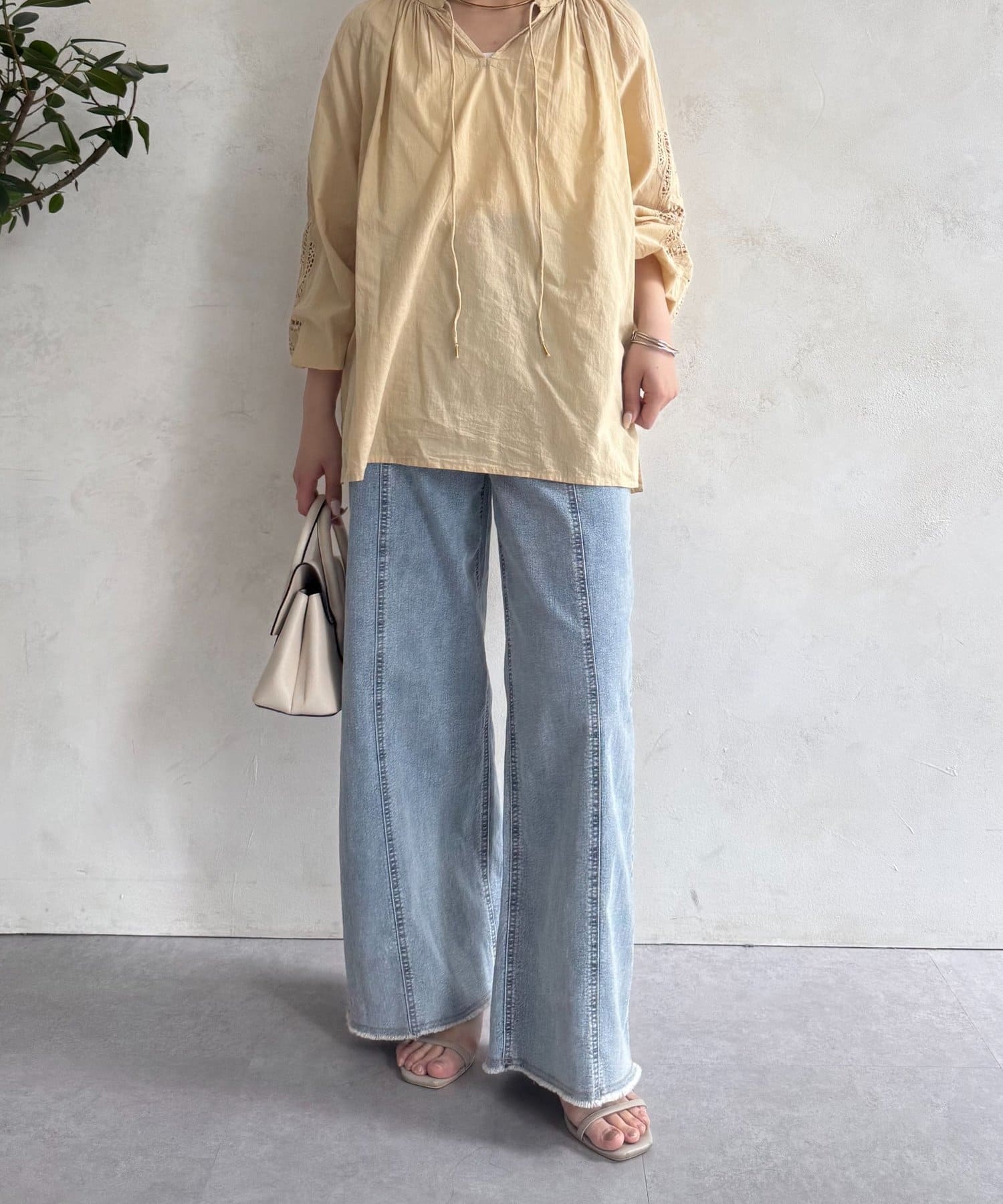 袖レース刺繍ブラウス