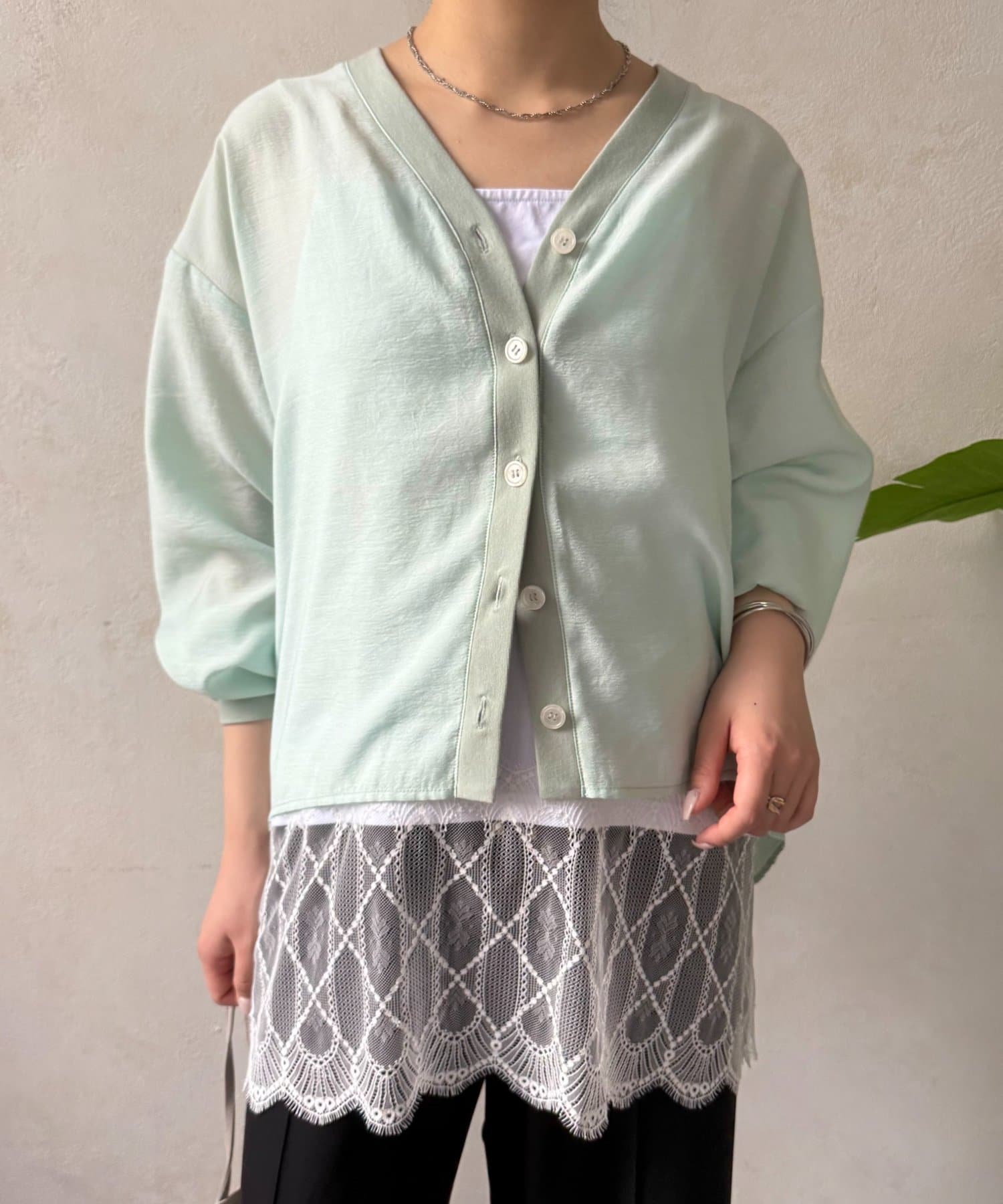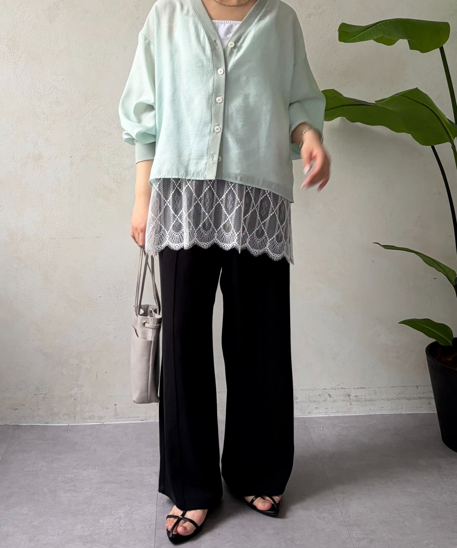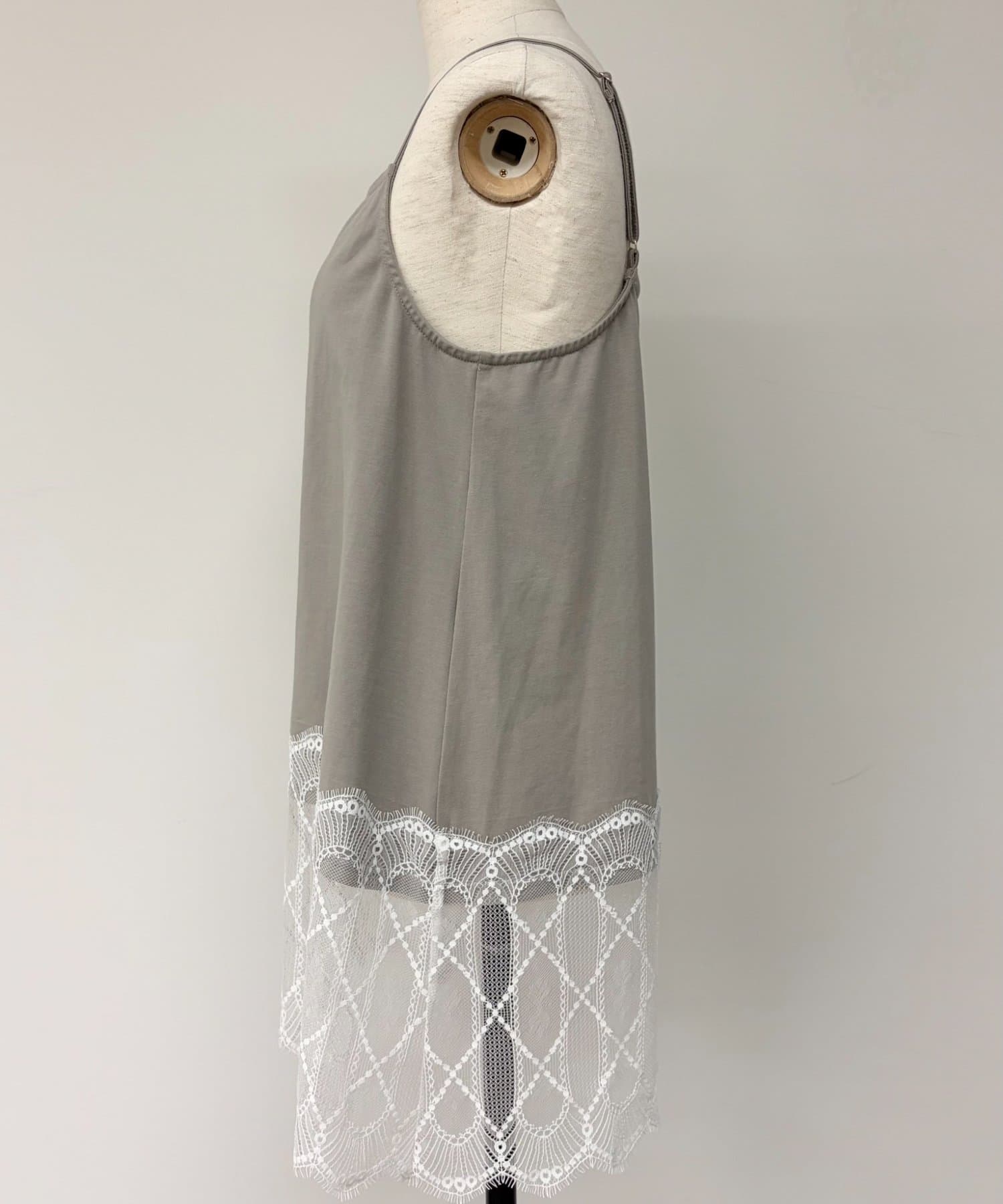 ・繊細なレースをあしらった、女性らしさ引きたつキャミソール。