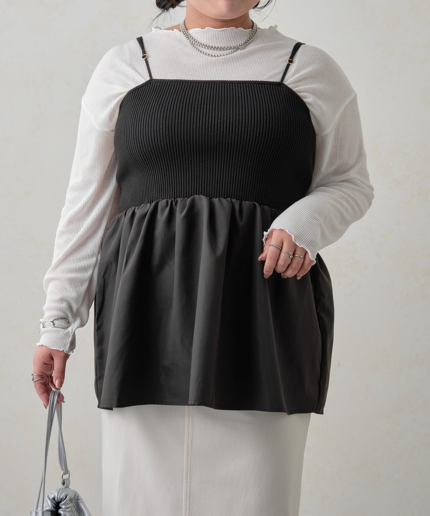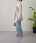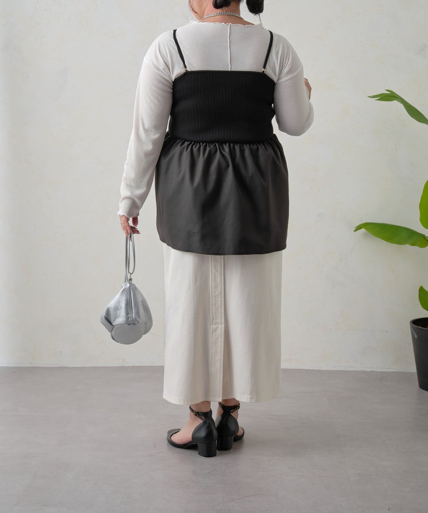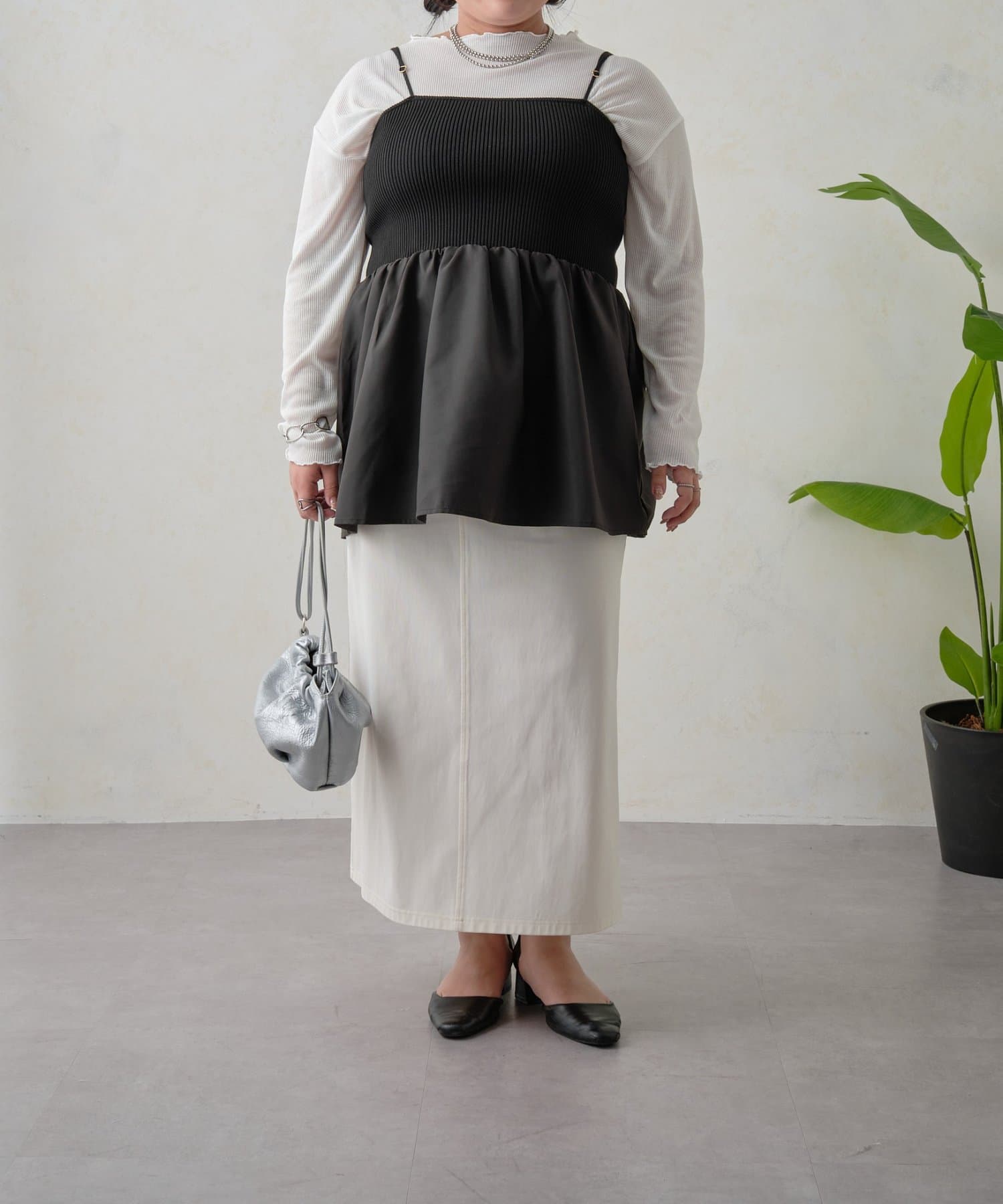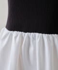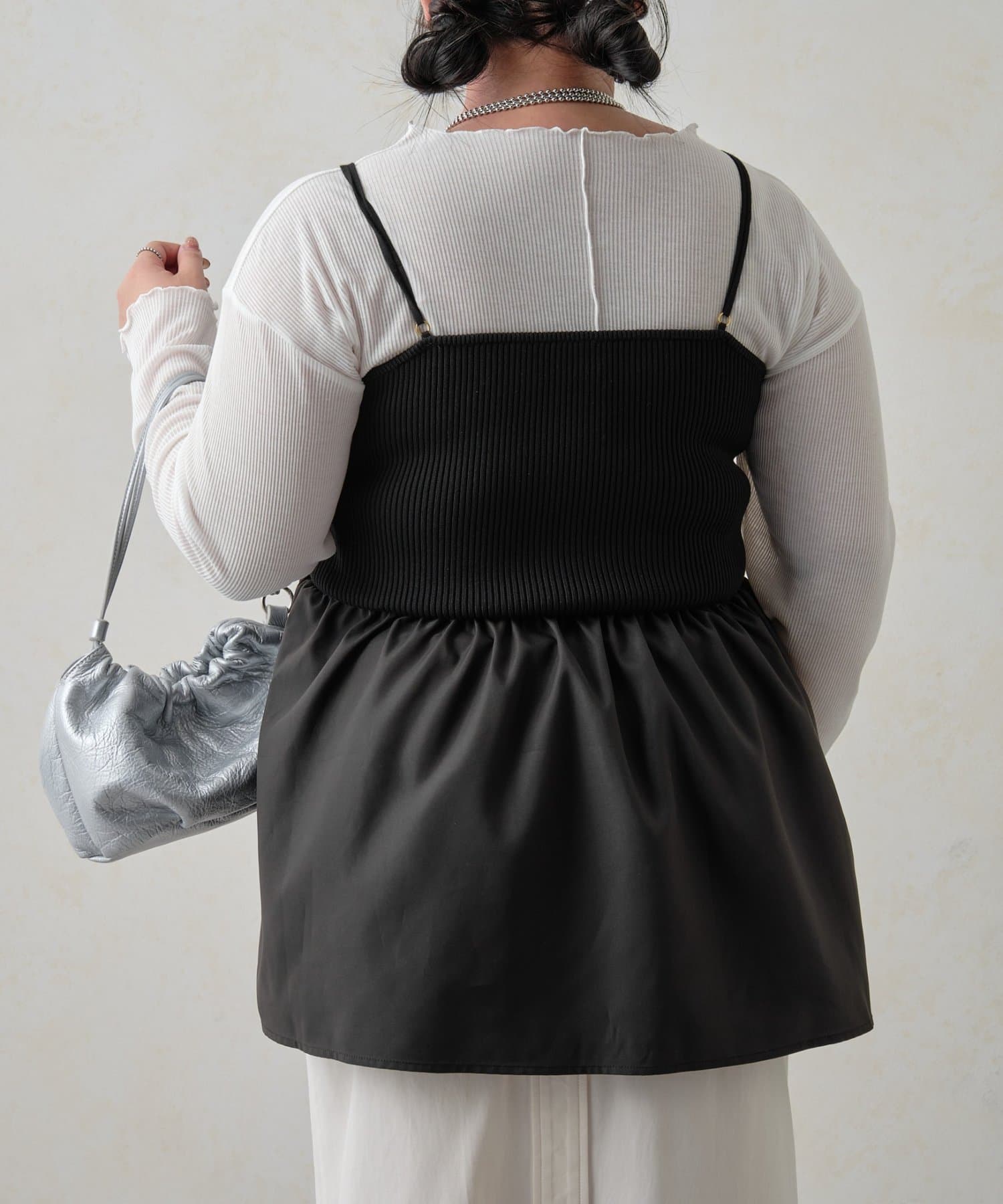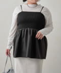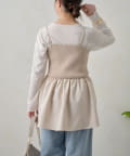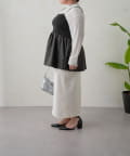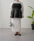 リブニットのペプラムビスチェなので着るだけでおなかやおしりが隠れるので体型カバーも叶います。
