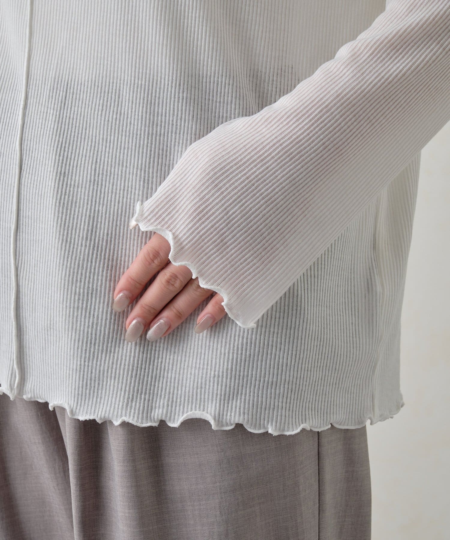 リブニットの部分がラインを拾いすぎないリブなのでラインを拾いすぎないのがうれしいポイントです。