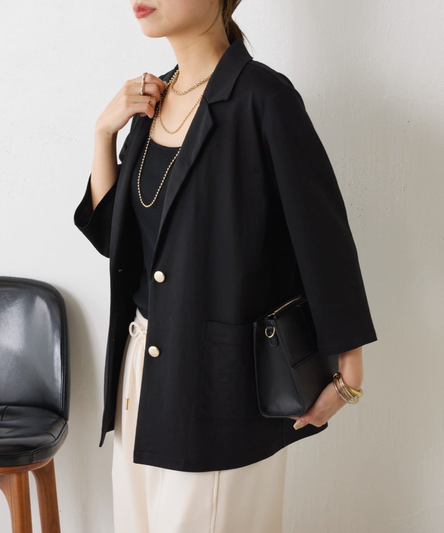 ・7分袖デザインで、きちんと感がありながら抜け感も演出できるテーラードジャケット