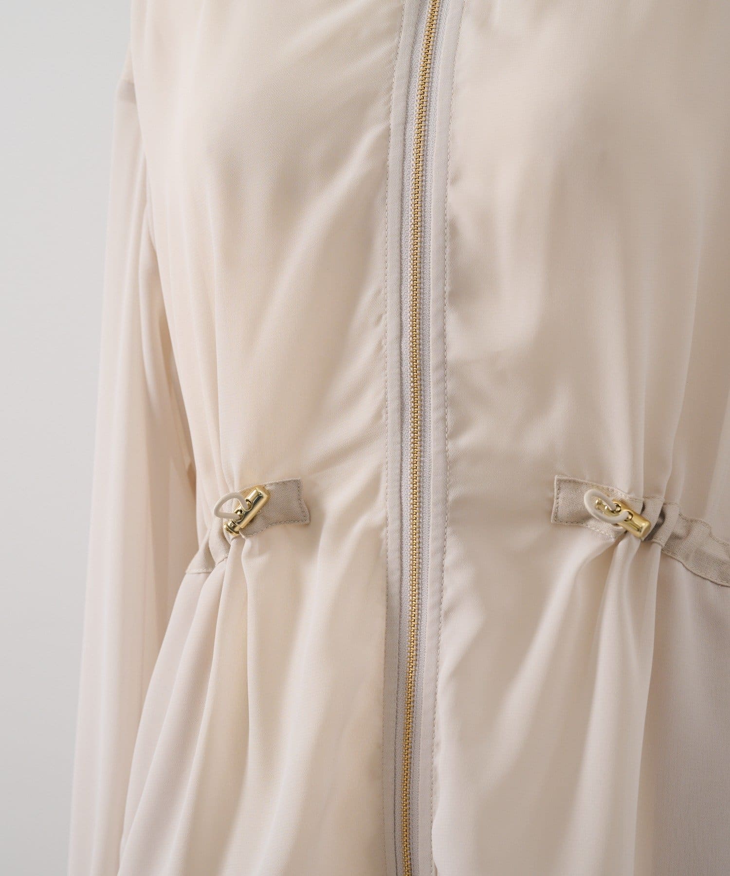 ・フロントのゴールドジップが、上品な輝きを添えます。開閉することで、スタイリングに変化をつけることも可能です。