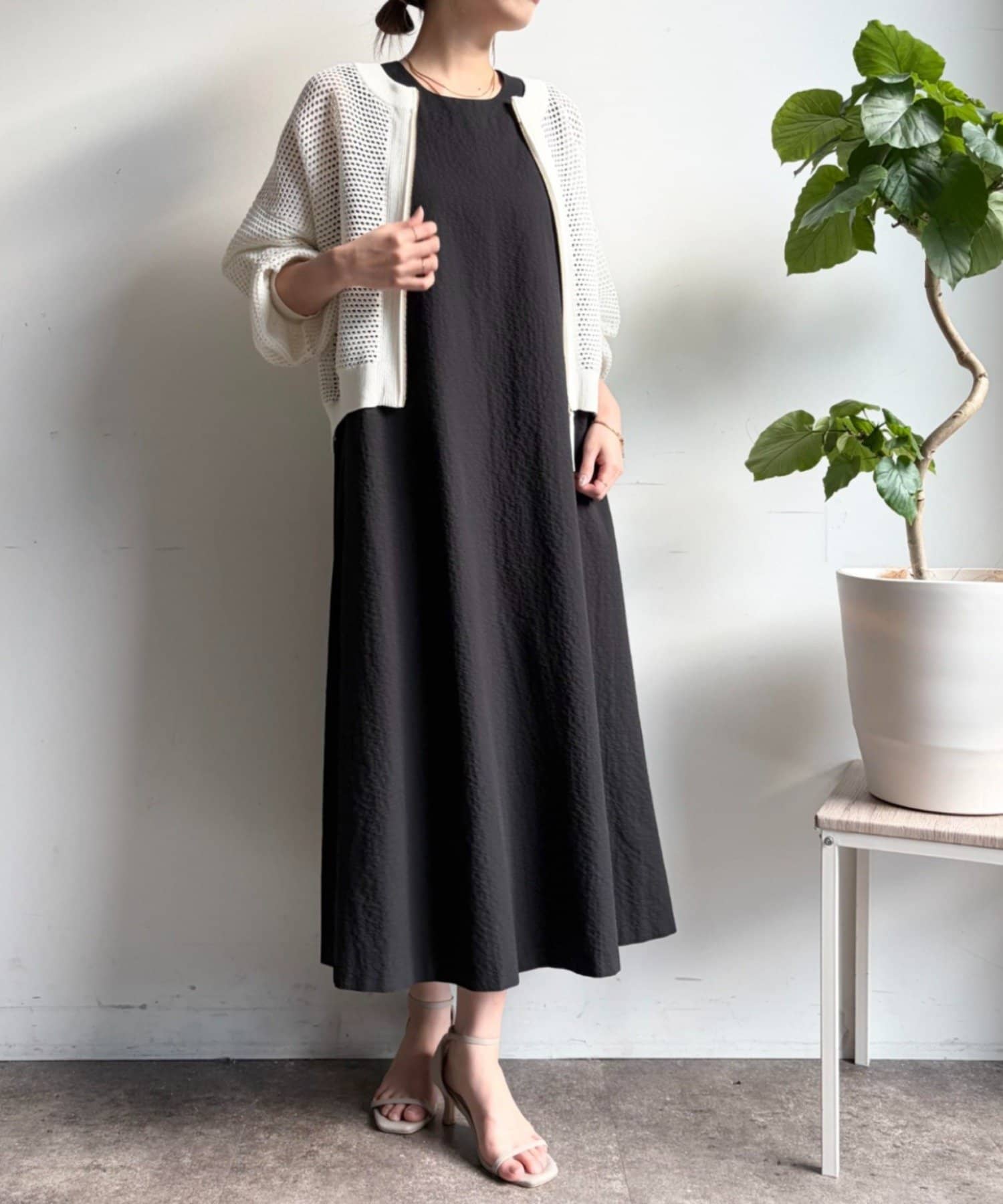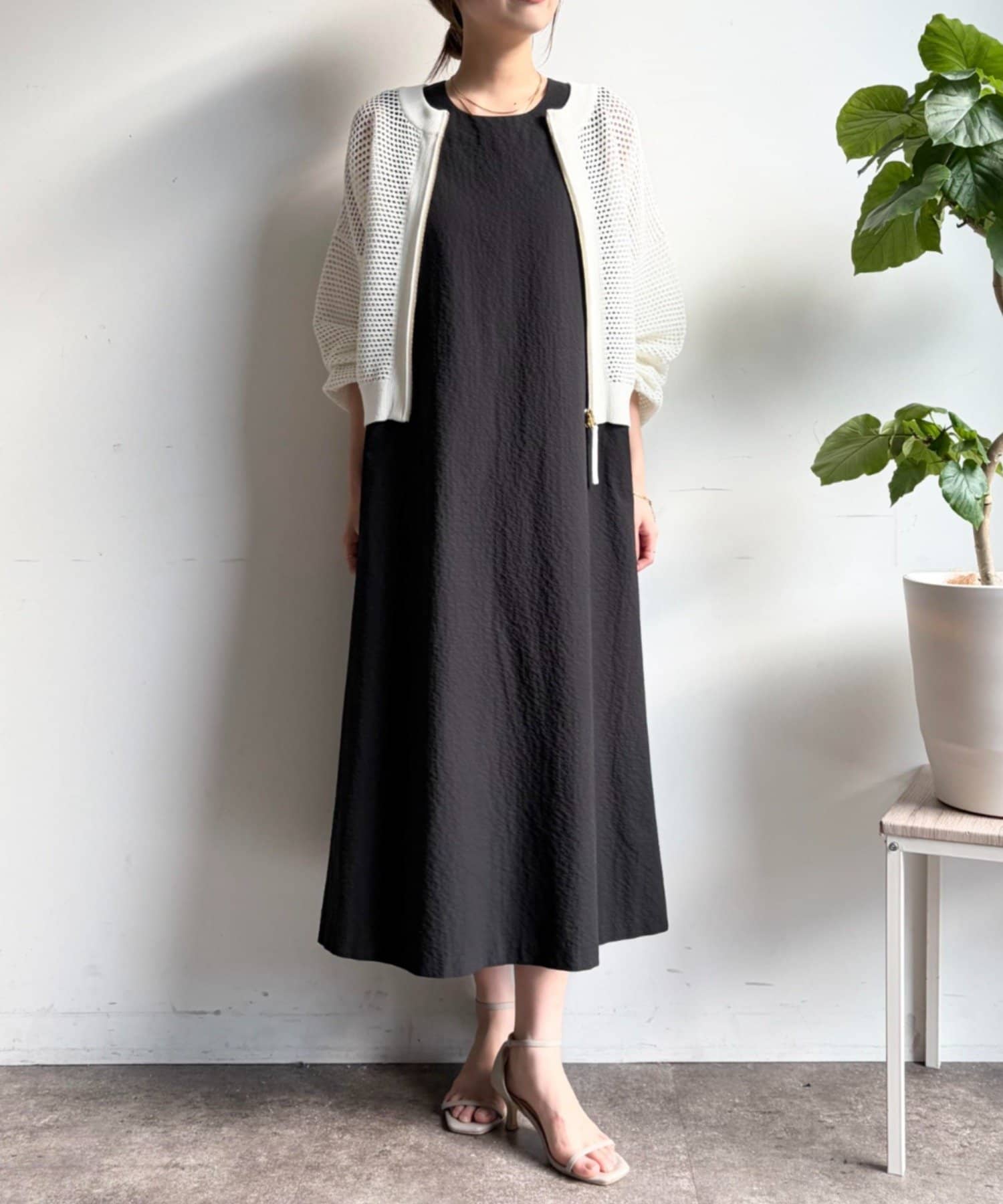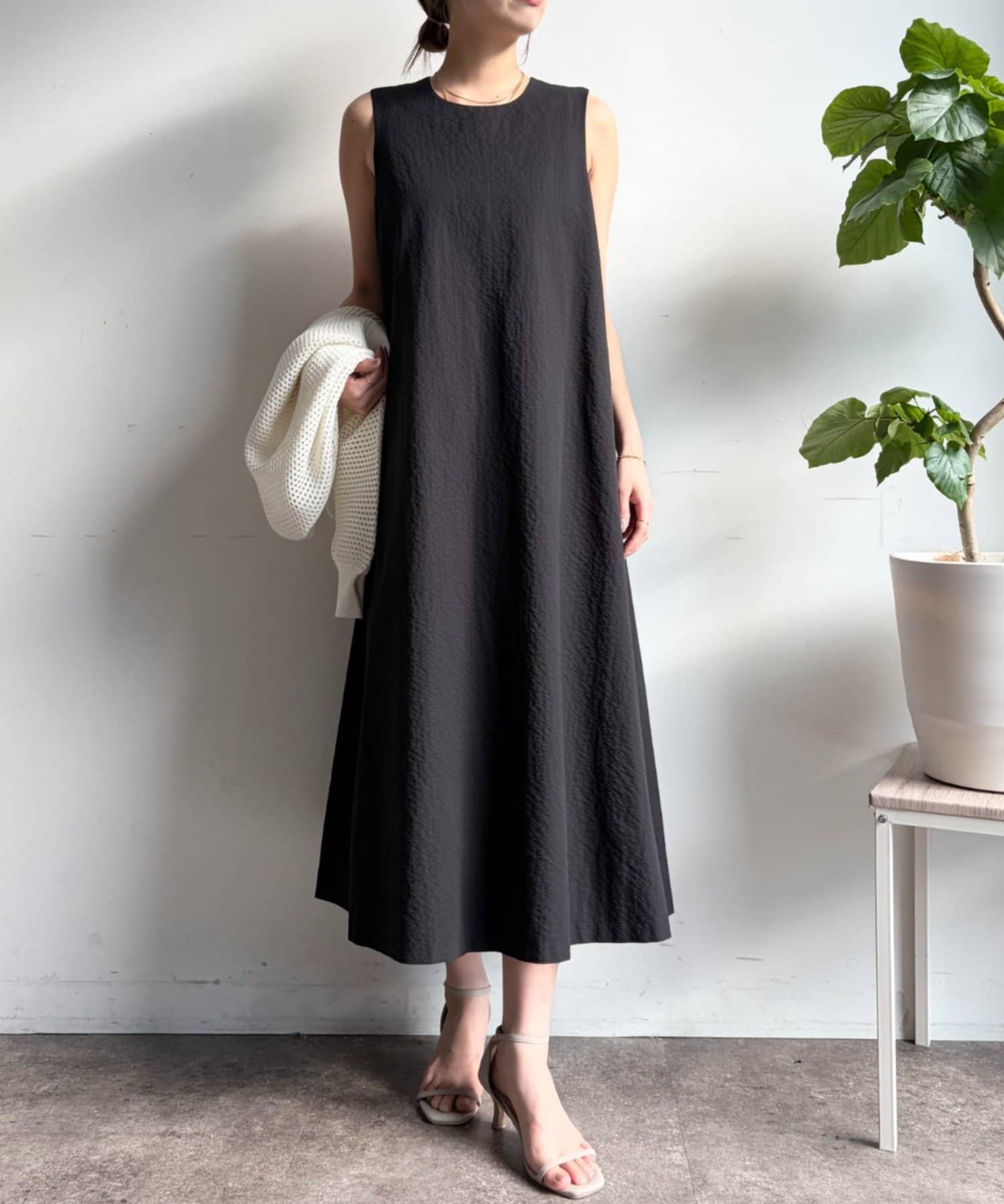 ・ストンと落ちるようなシルエットは、気になるボディラインをさりげなくカバーしつつ、リラックス感のある着心地を実現。