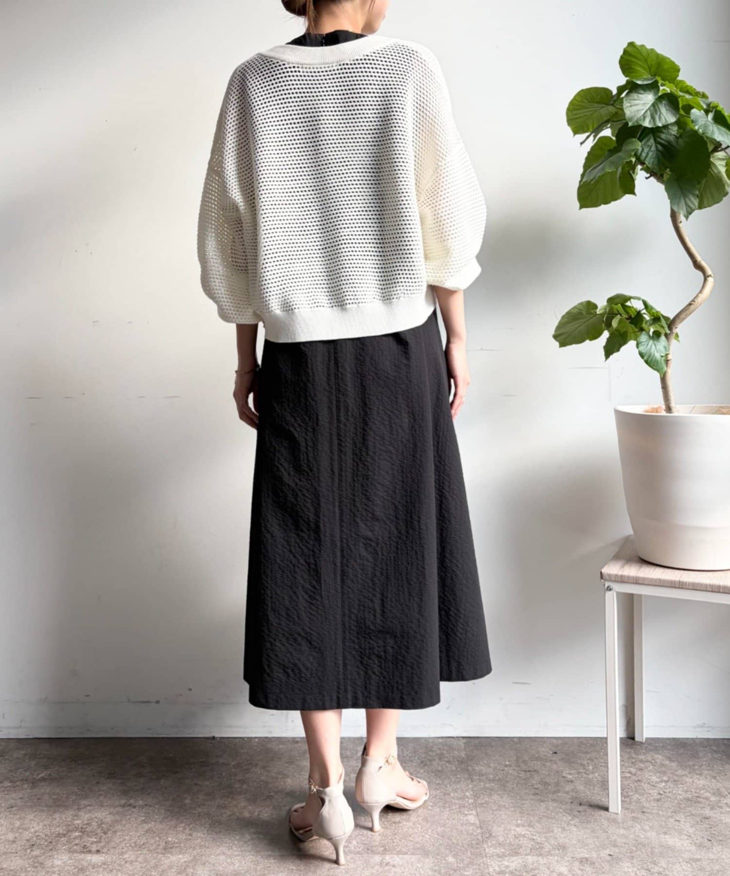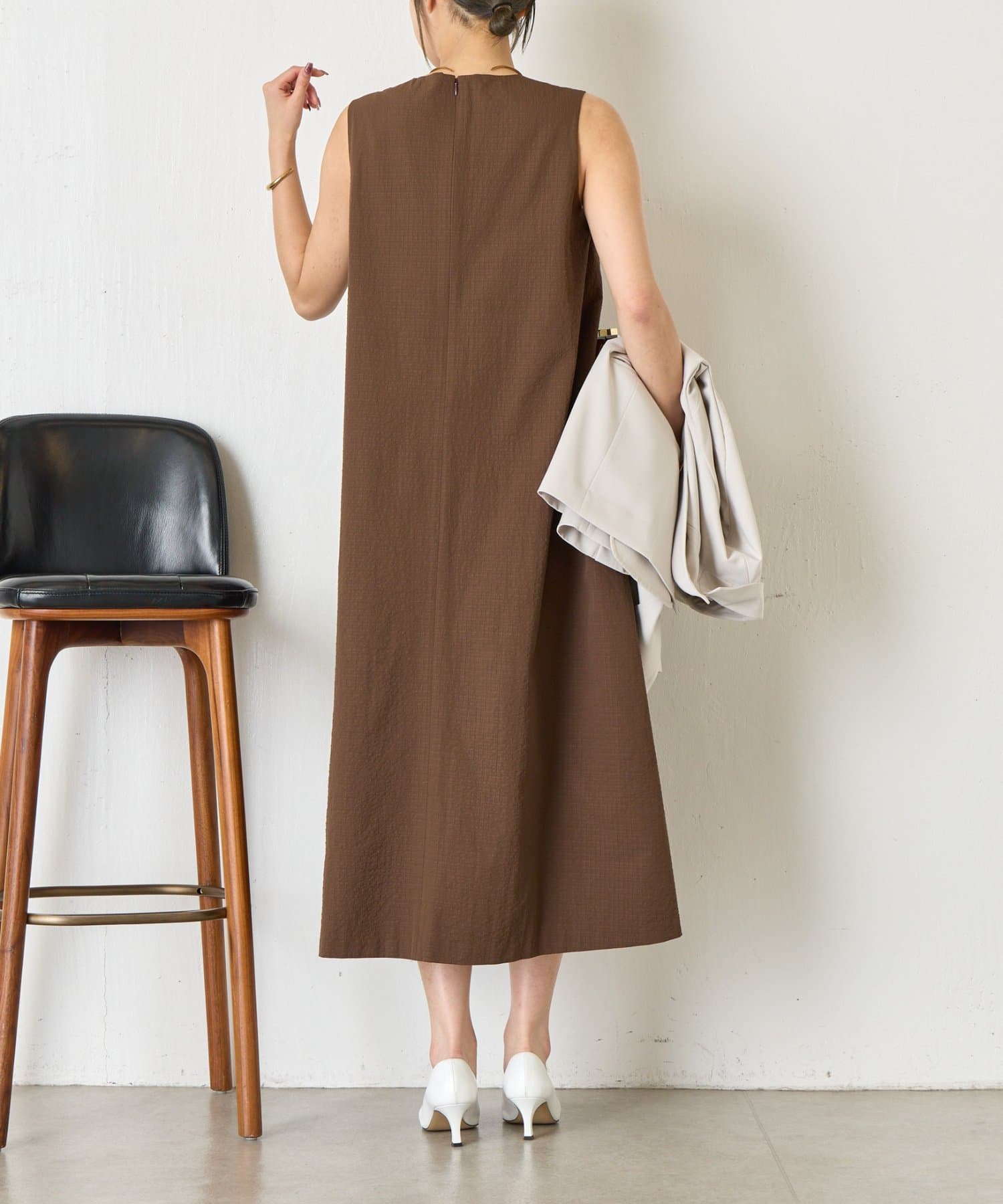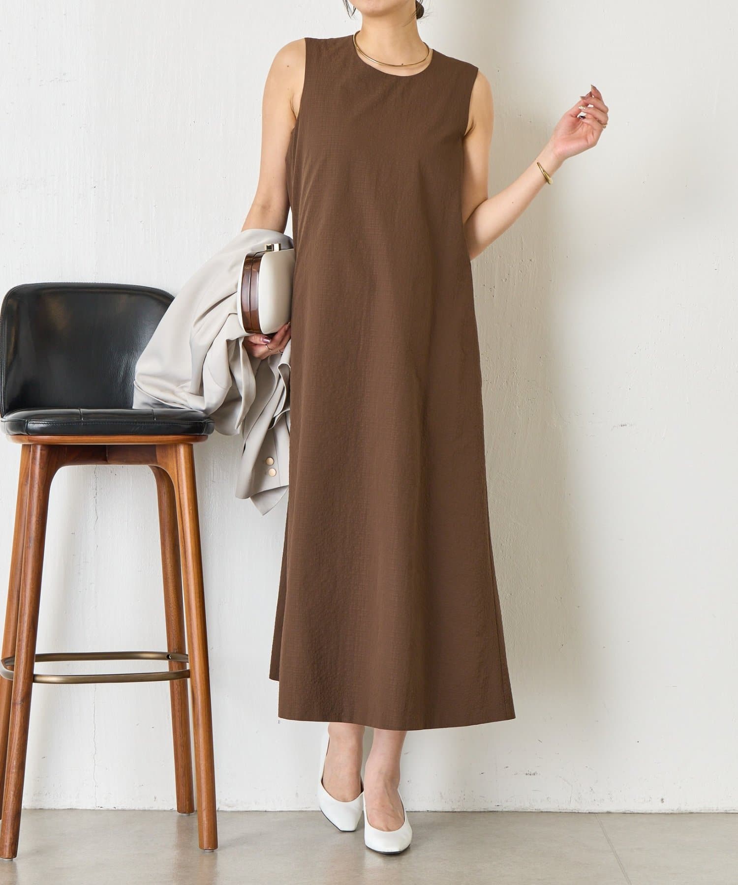 ・ストンと落ちるようなシルエットは、気になるボディラインをさりげなくカバーしつつ、リラックス感のある着心地を実現。