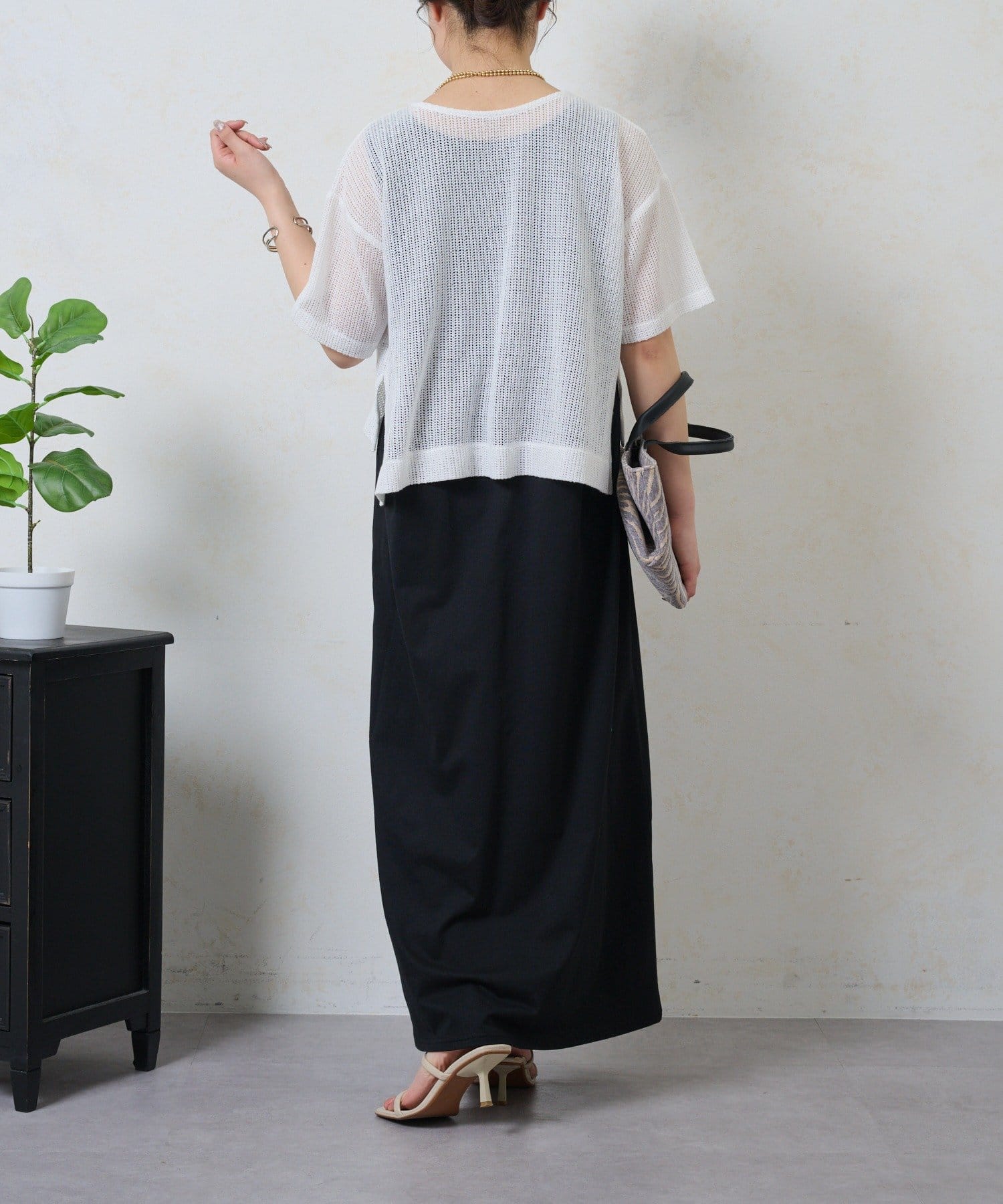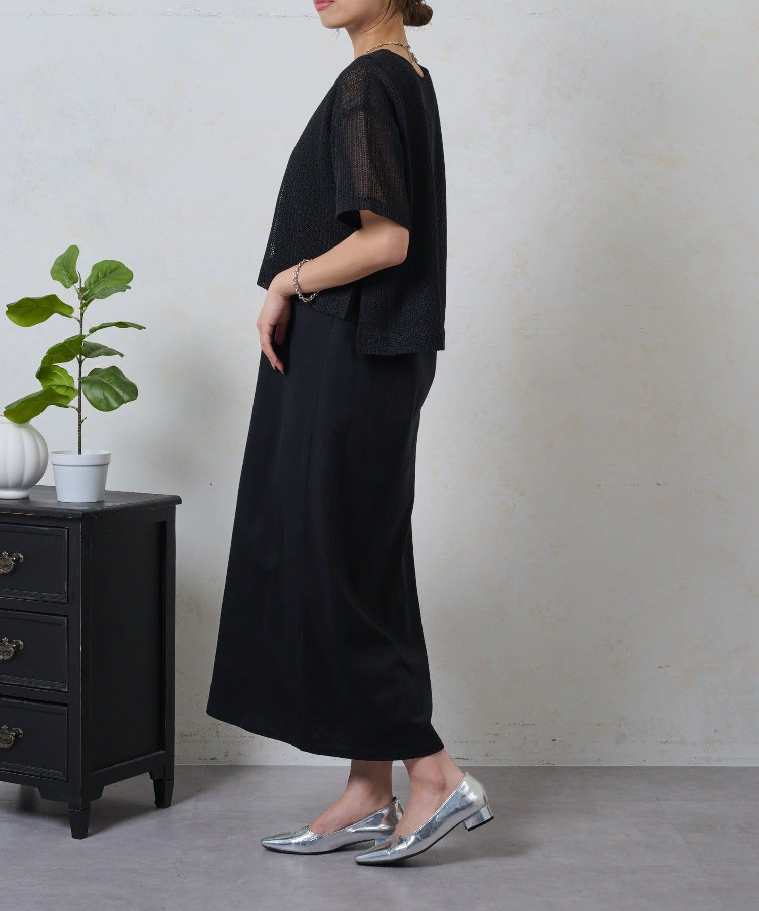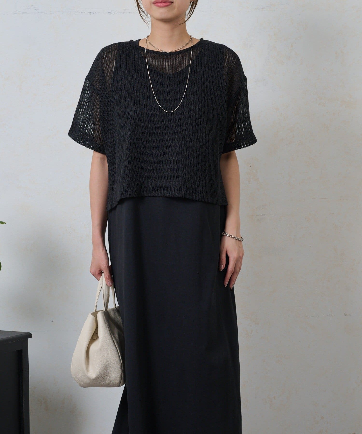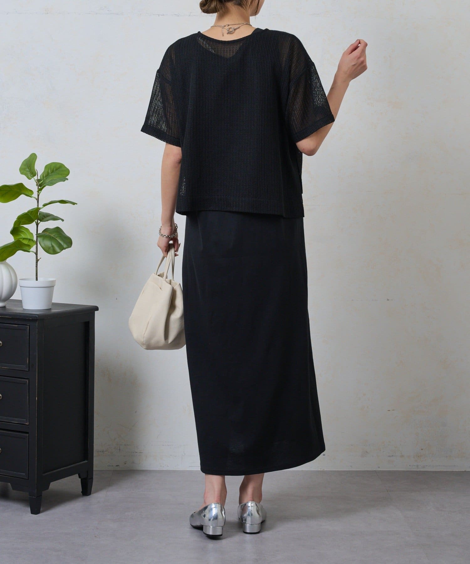 ・トレンドのレイヤードスタイルが即完成する、メッシュトップスとロングスカートのセットが登場。