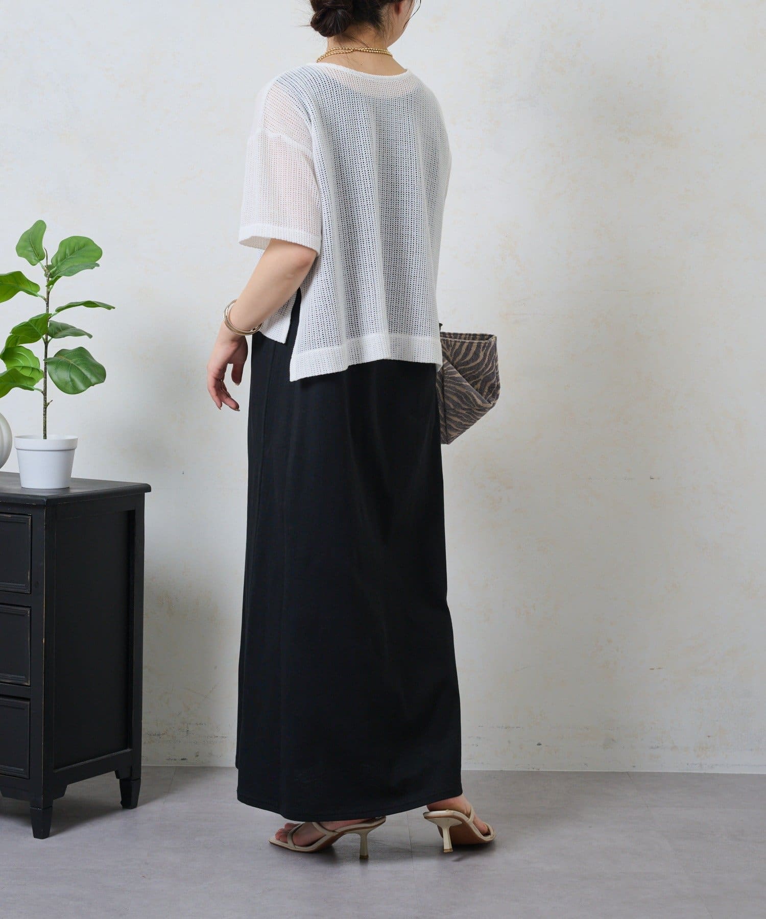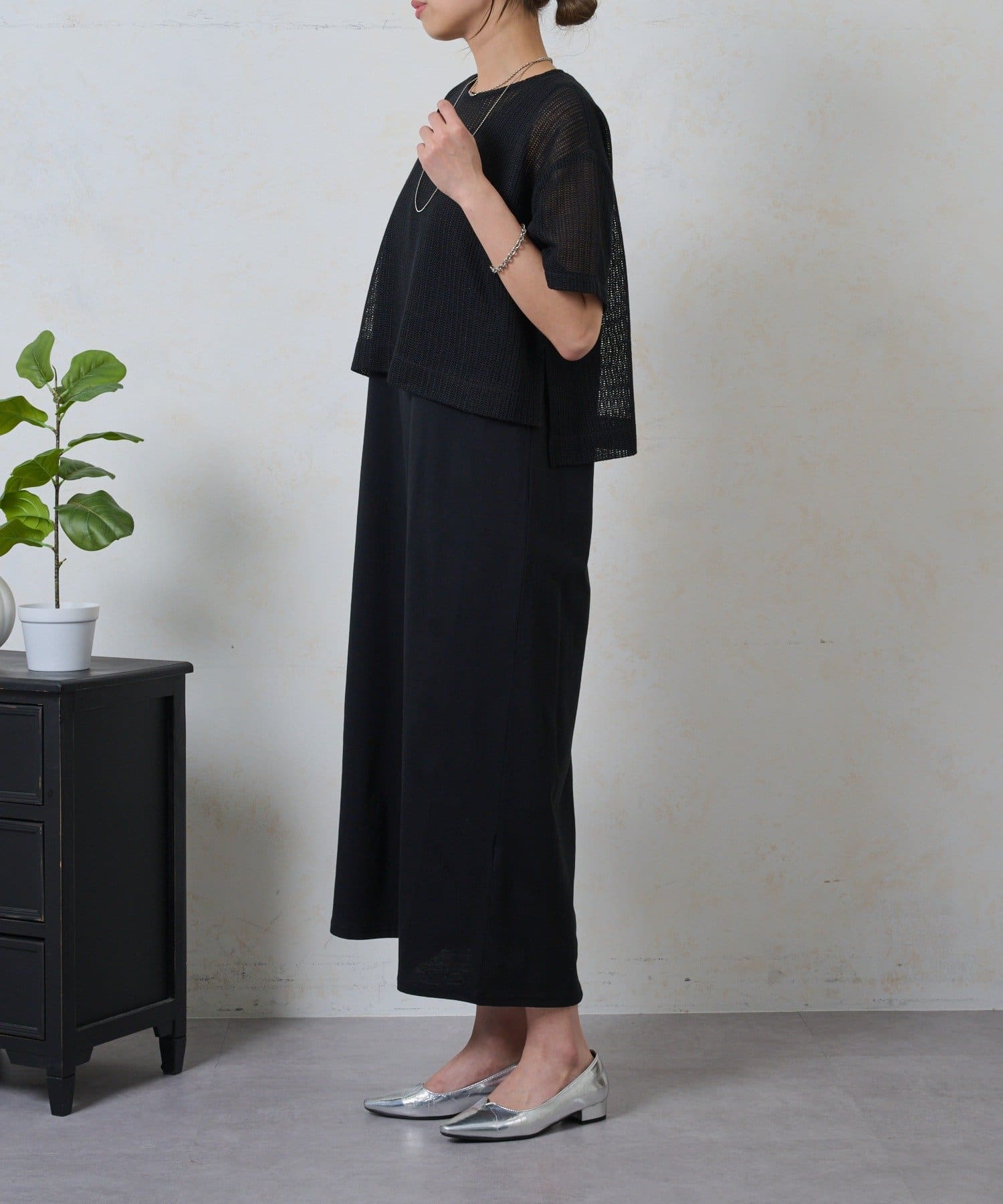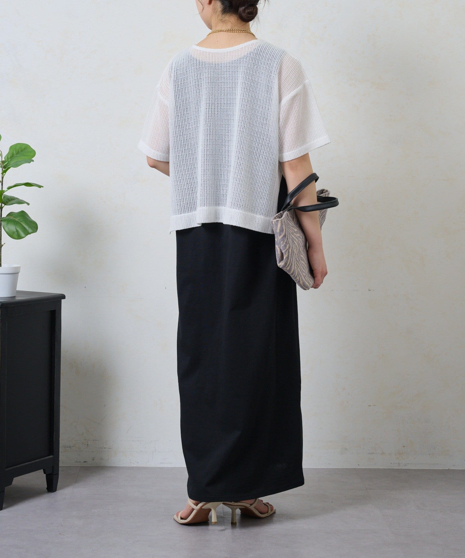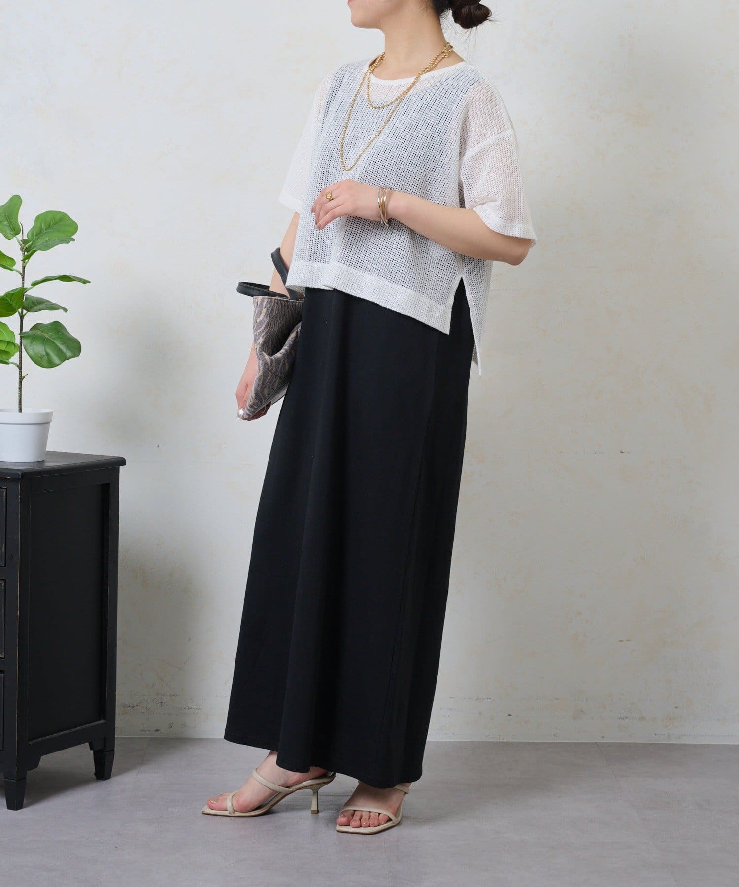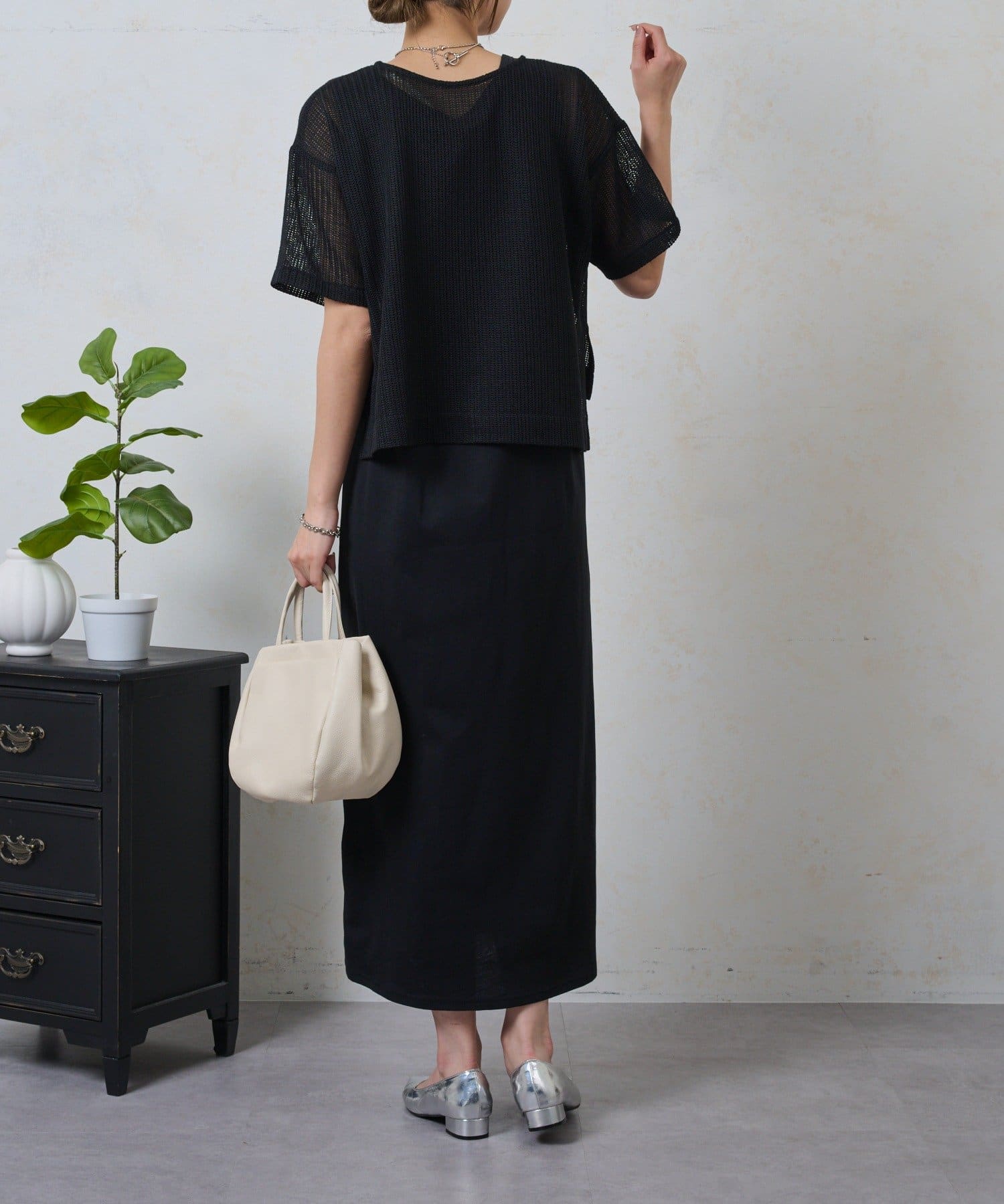 ・トレンドのレイヤードスタイルが即完成する、メッシュトップスとロングスカートのセットが登場。