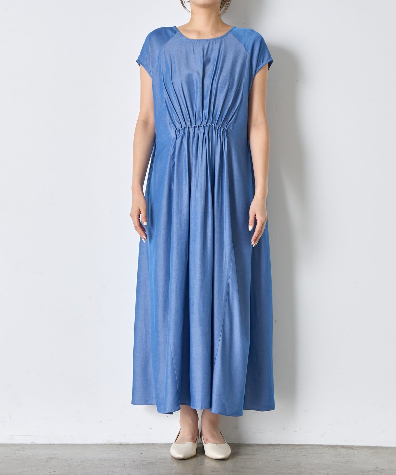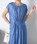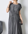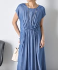 フレンチスリーブギャザーワンピ