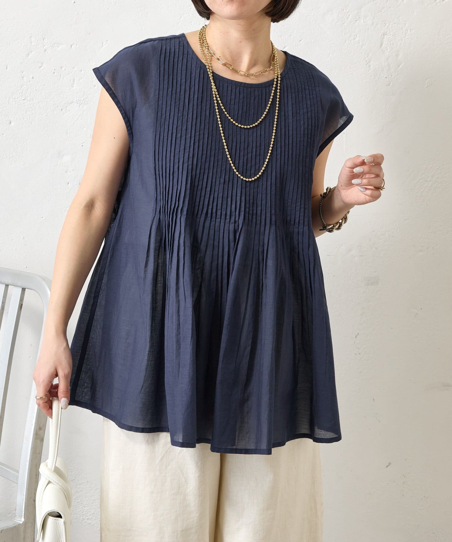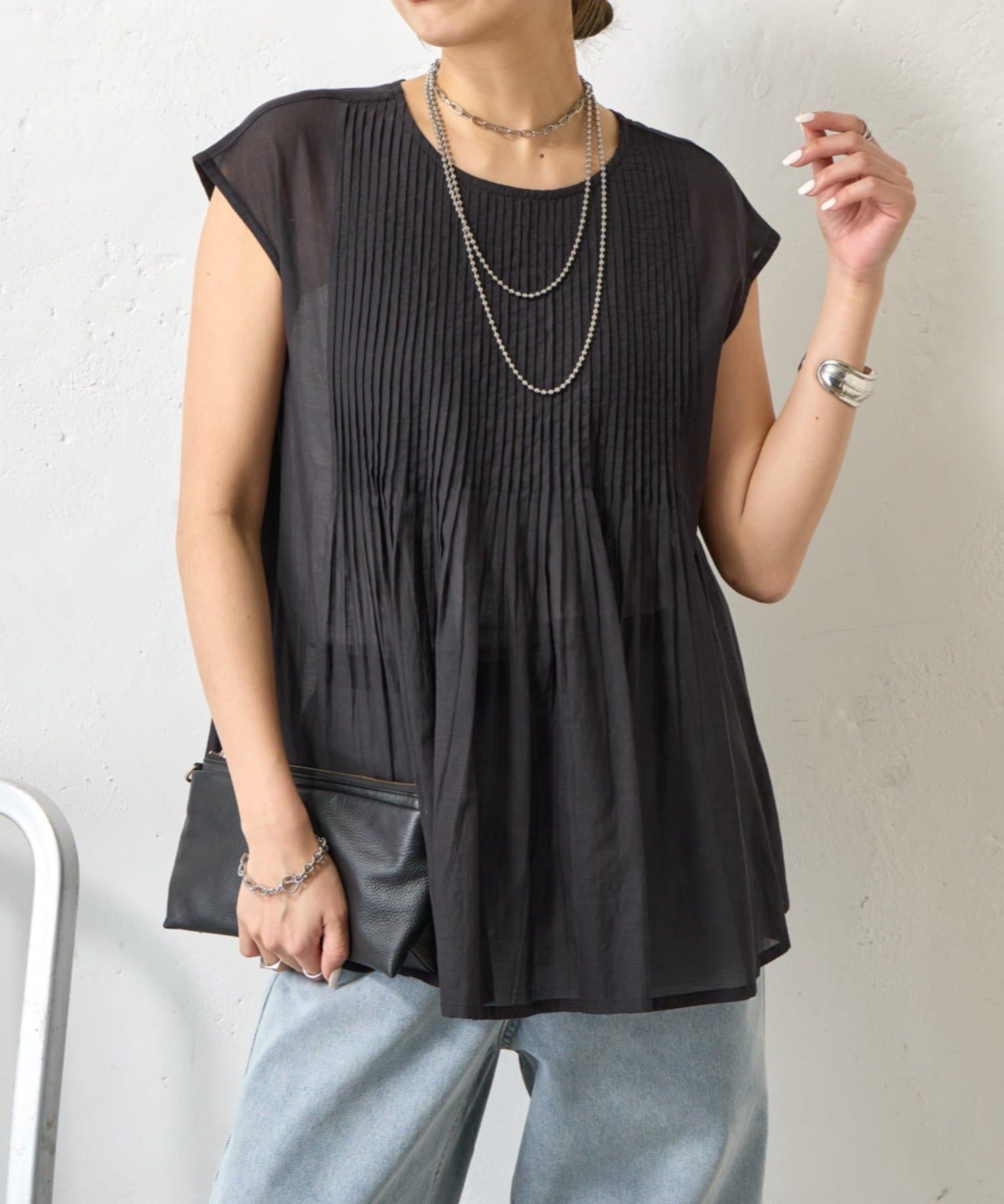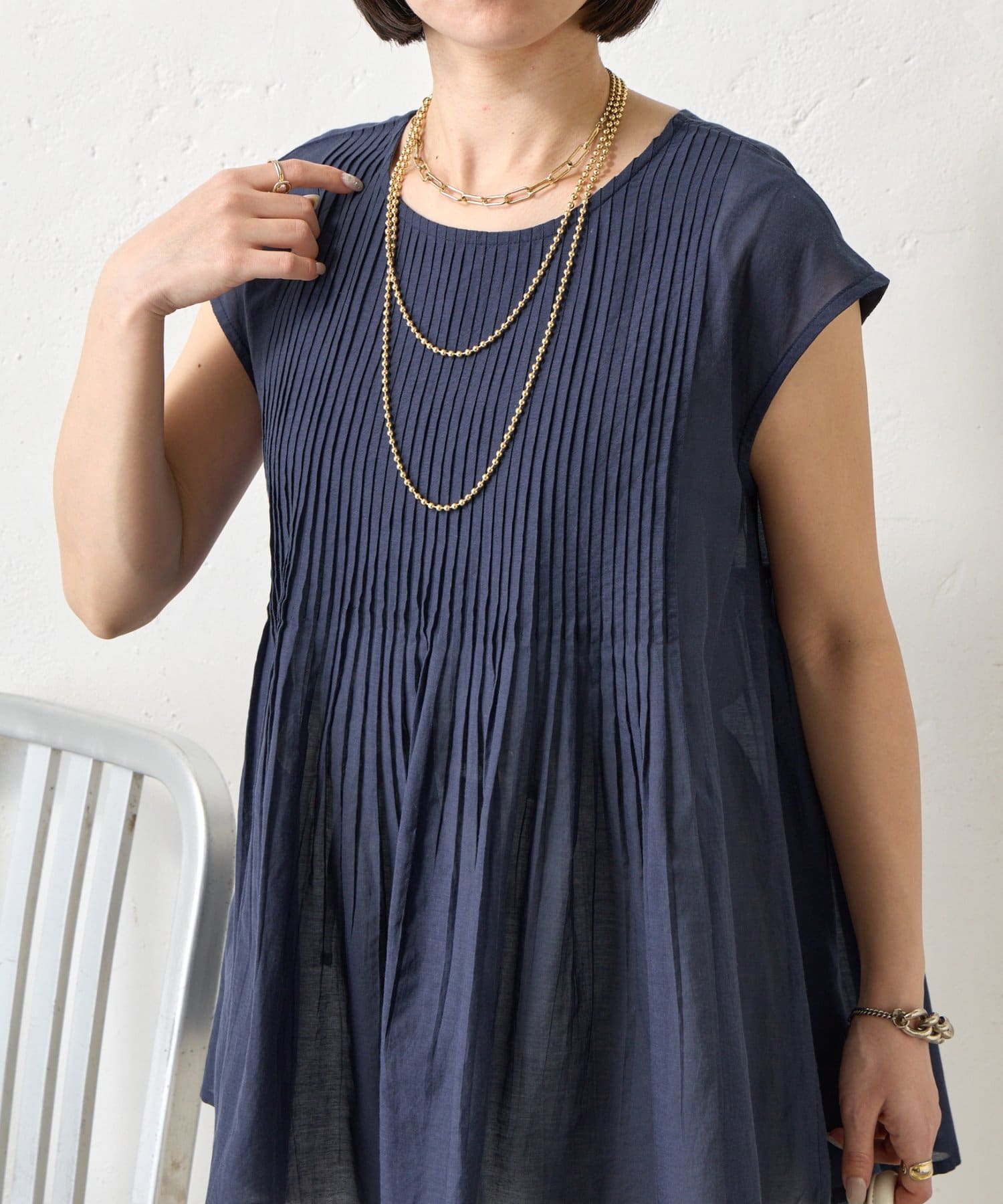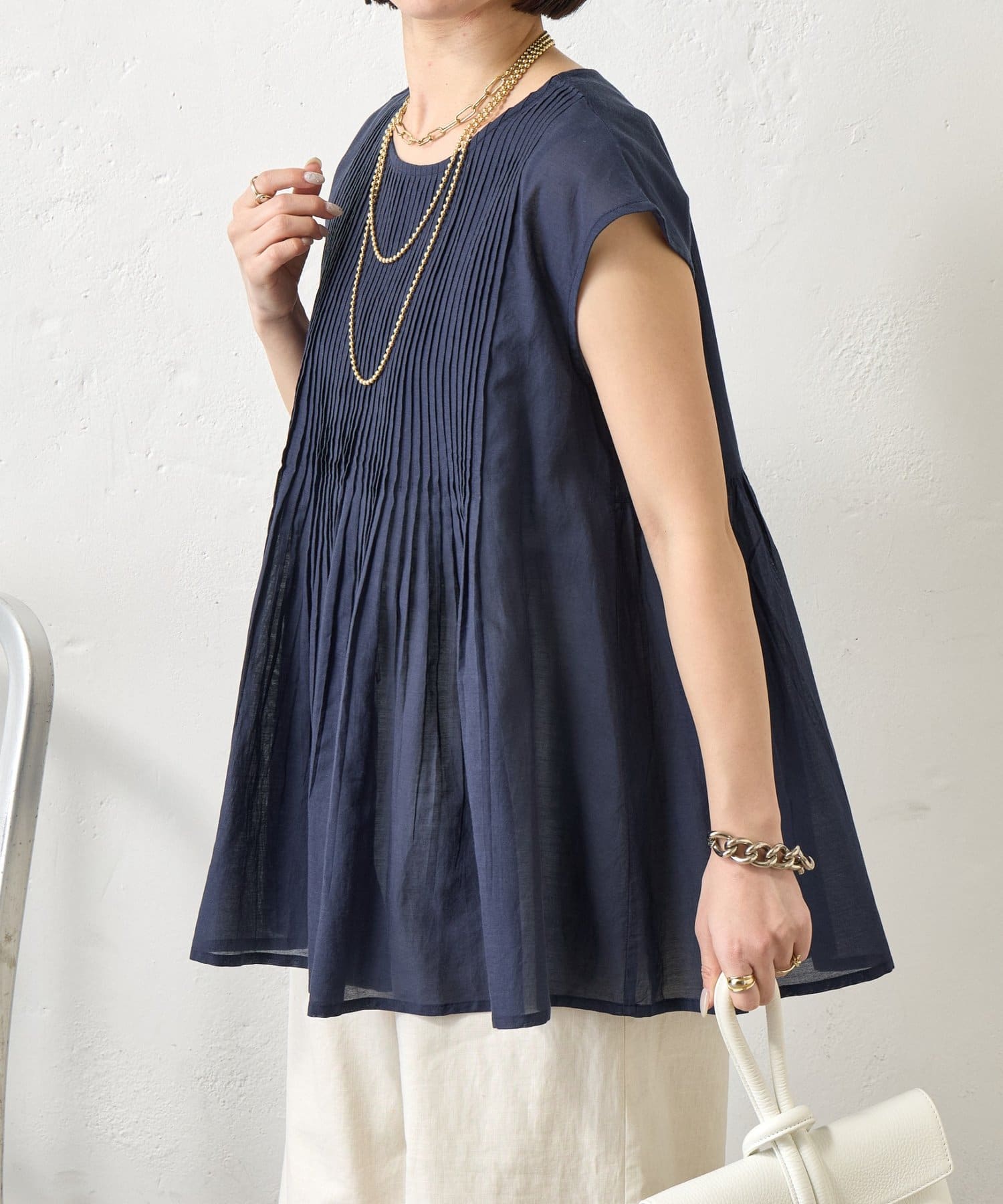 ・繊細なピンタックが縦のラインを強調し、スタイルアップ効果も。