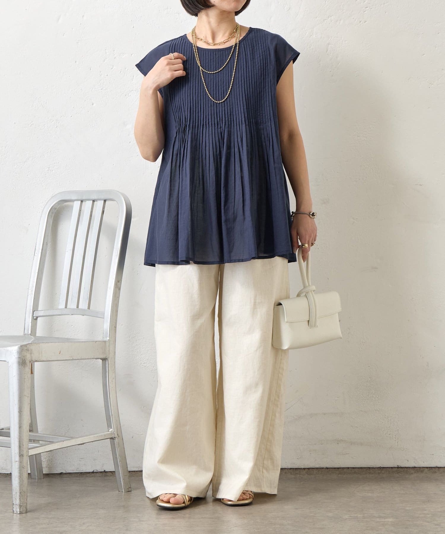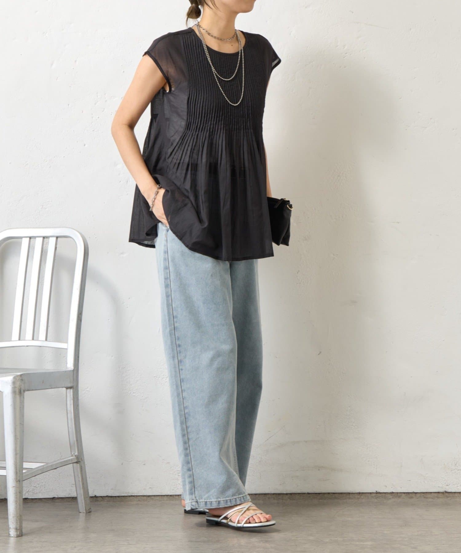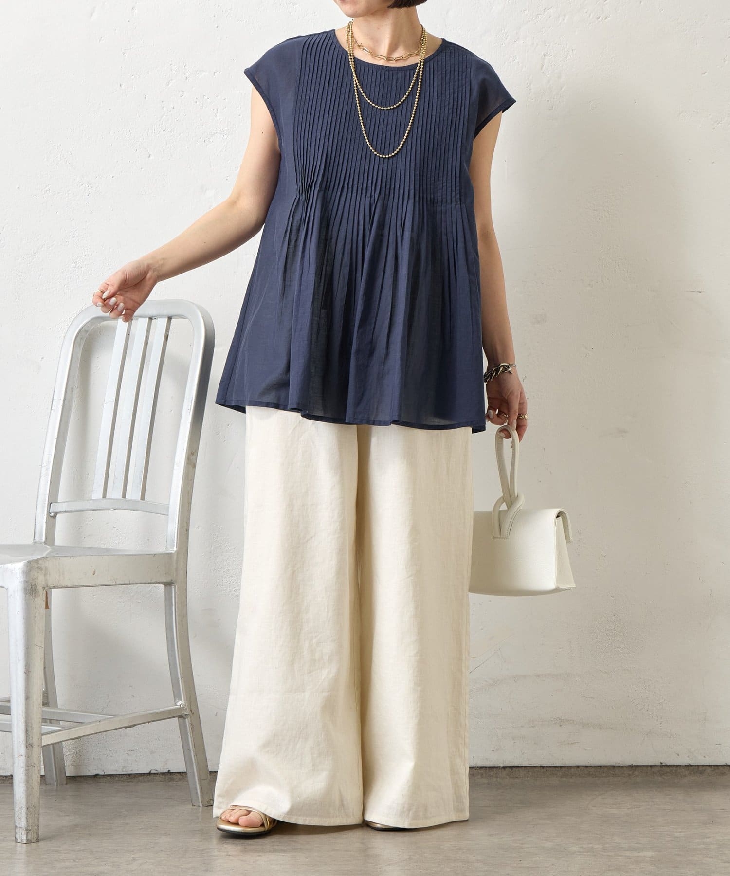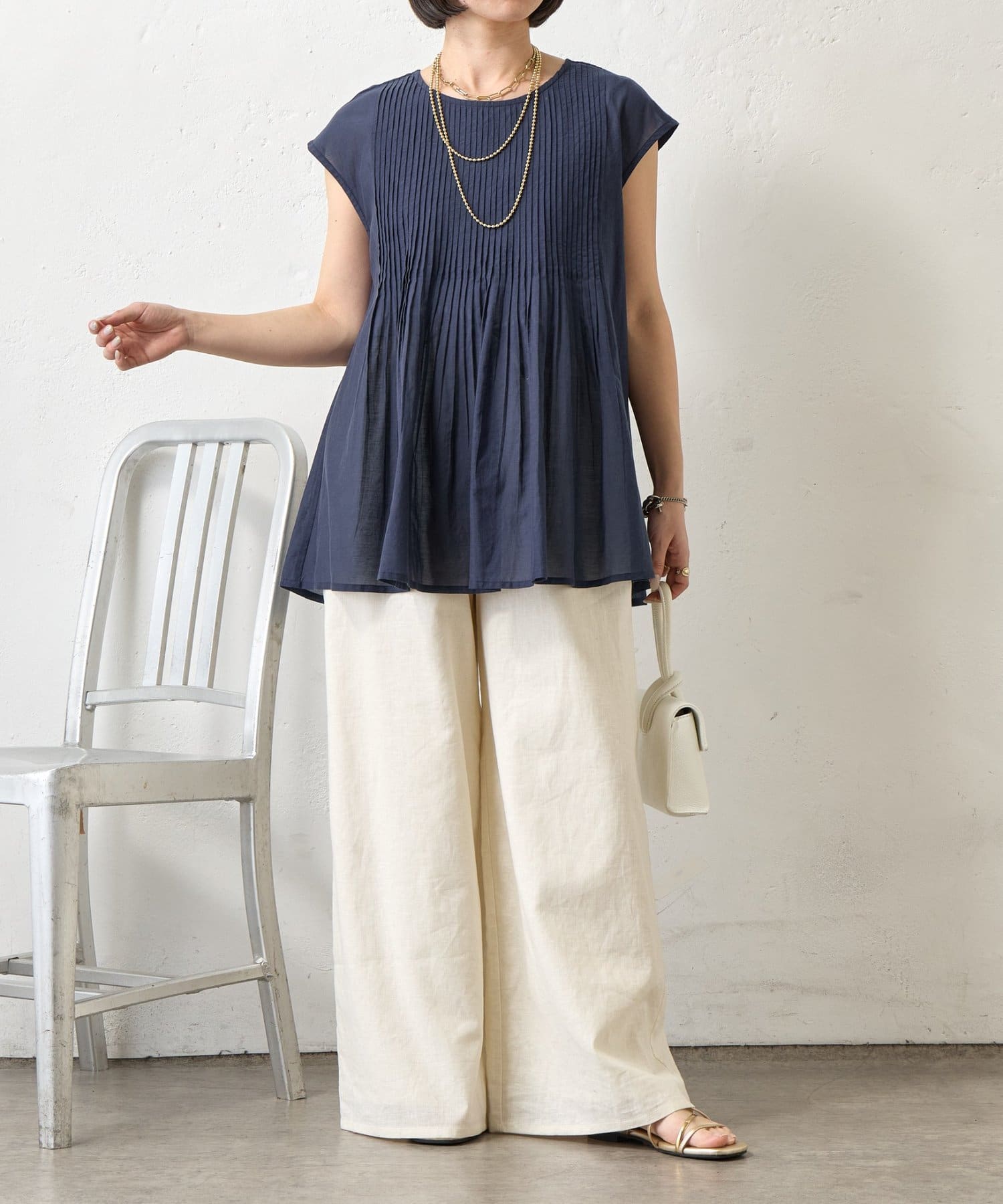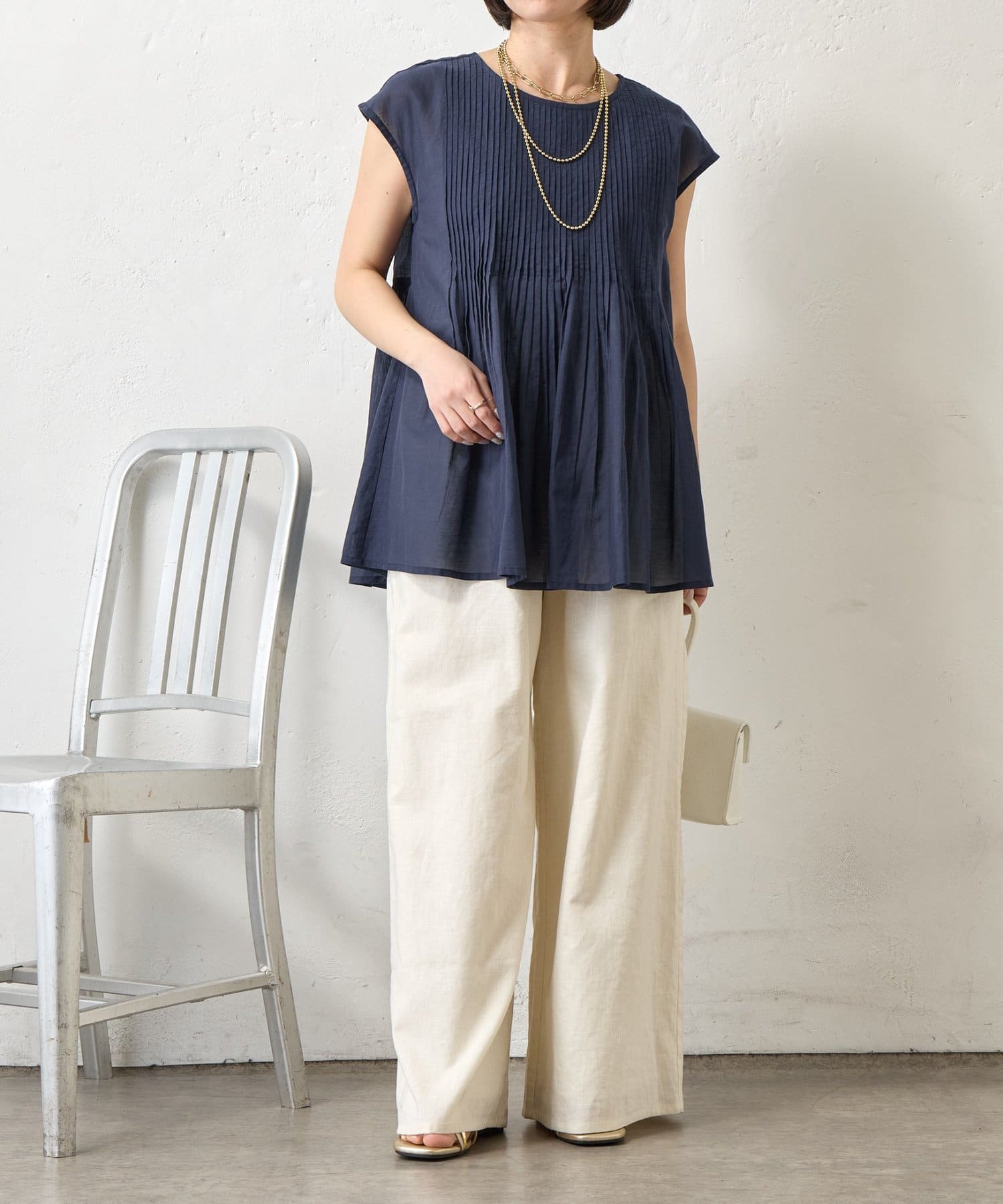 ・繊細なピンタックが縦のラインを強調し、スタイルアップ効果も。