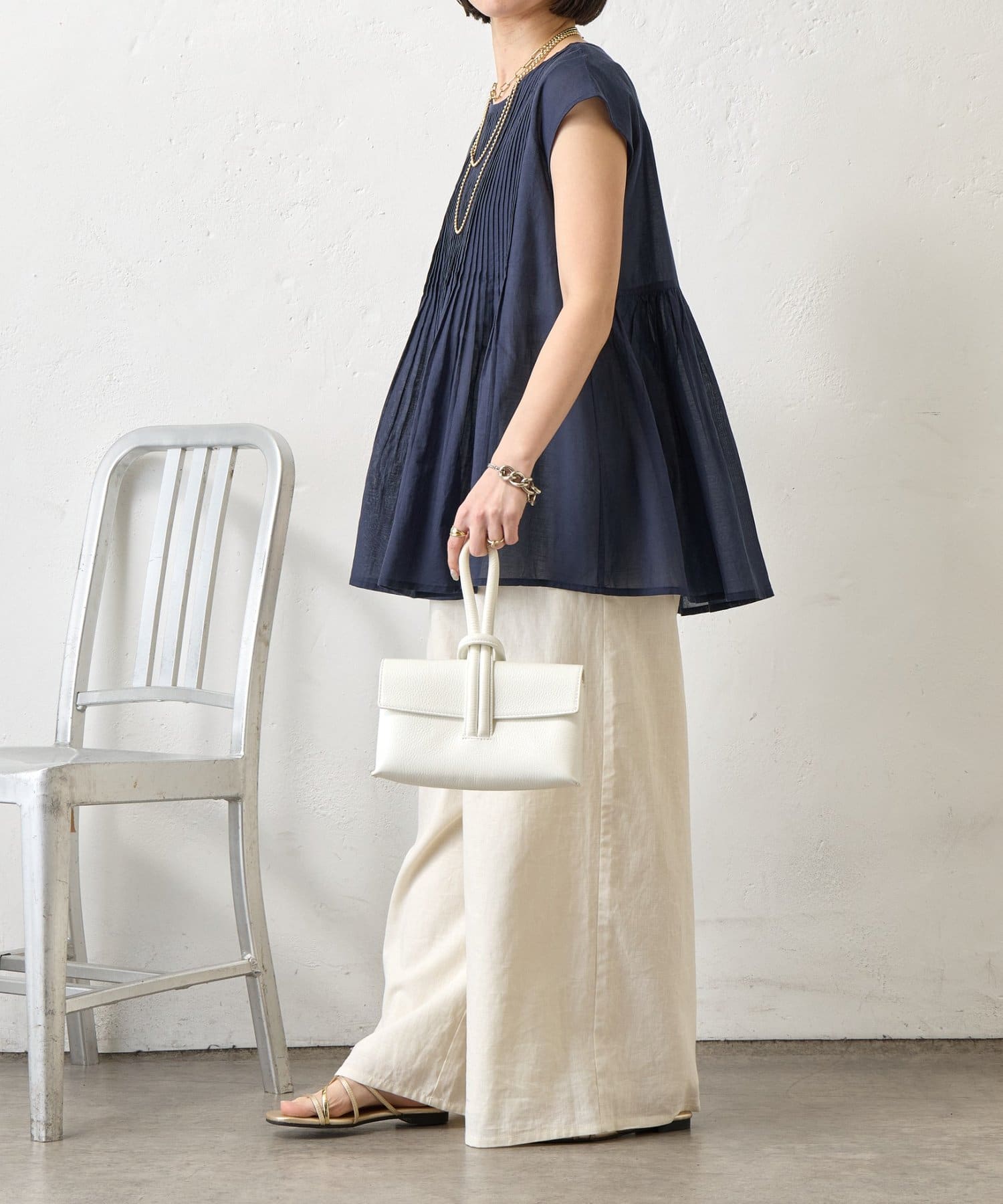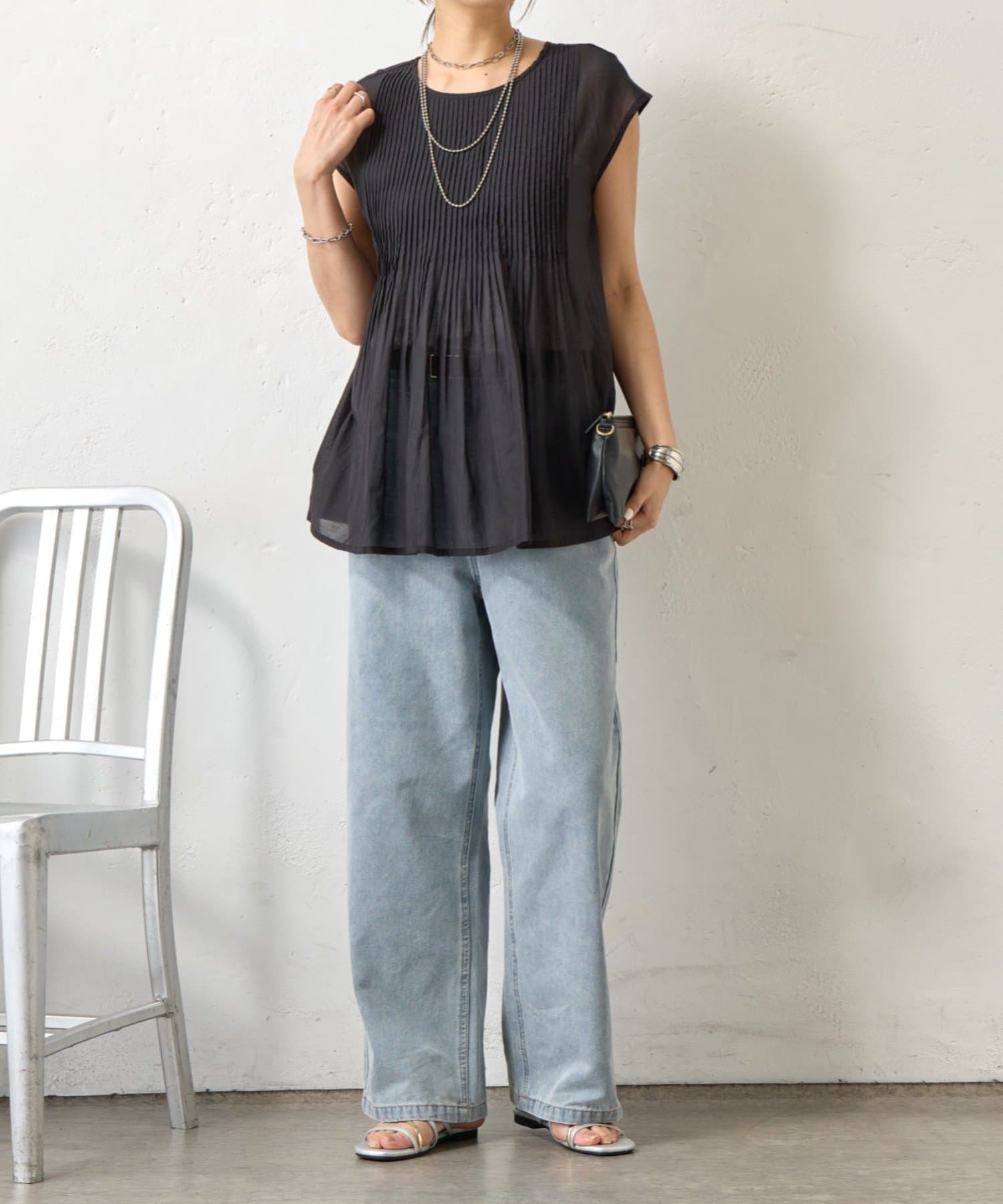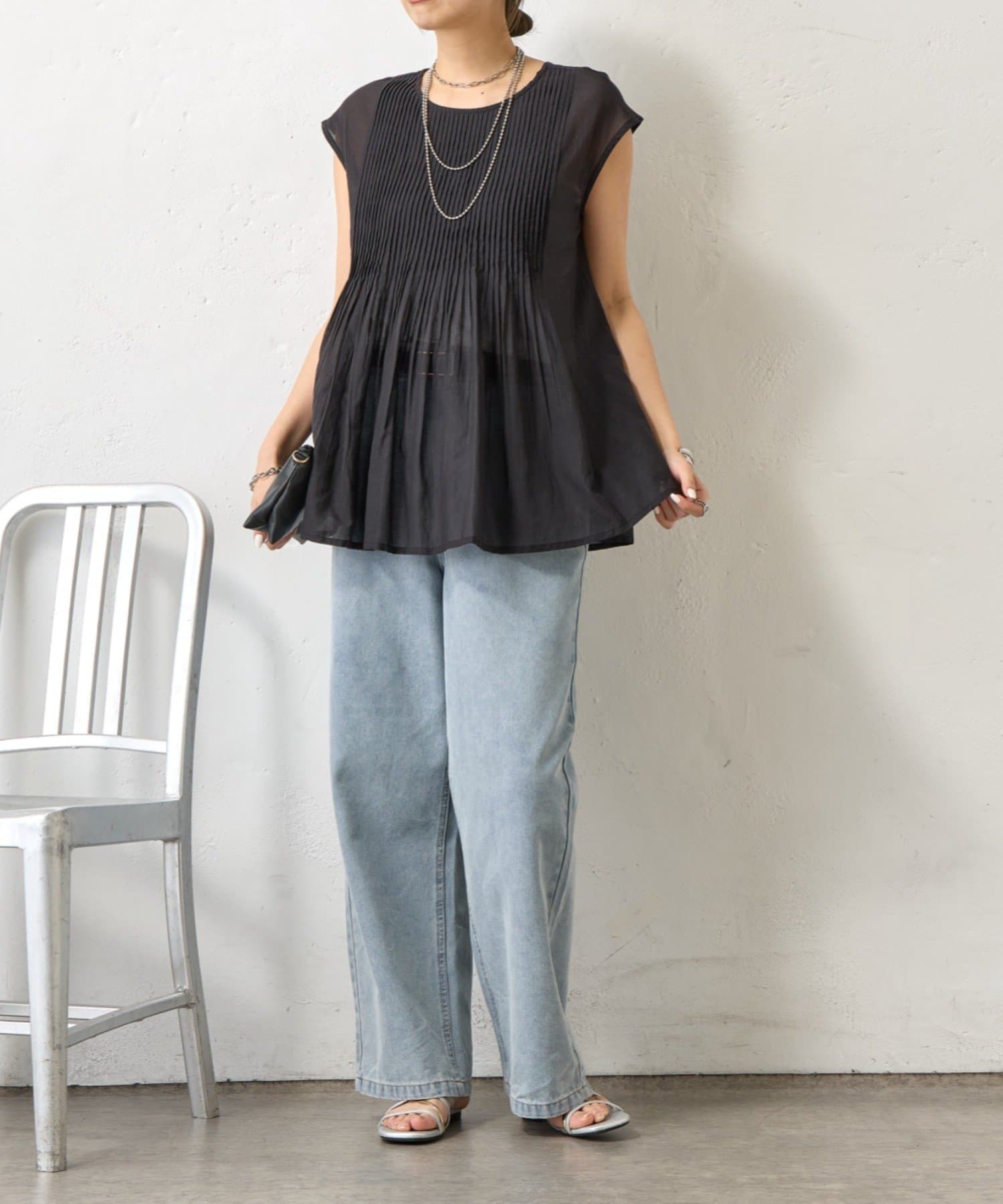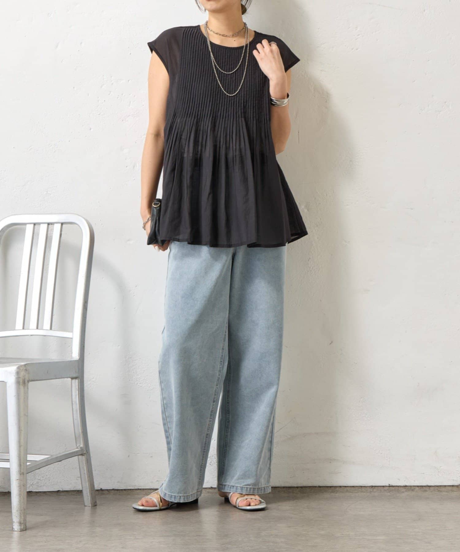 ・繊細なピンタックが縦のラインを強調し、スタイルアップ効果も。