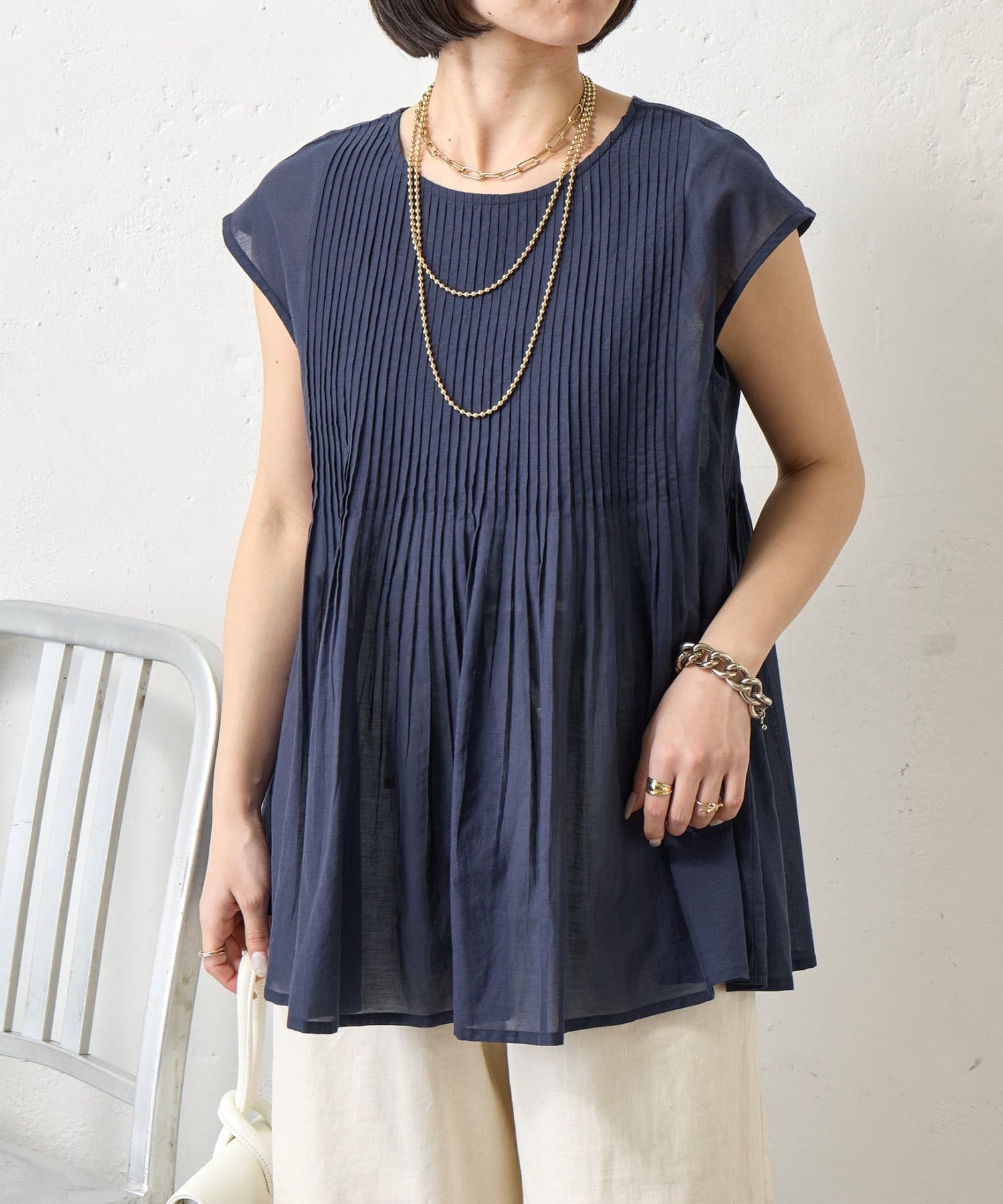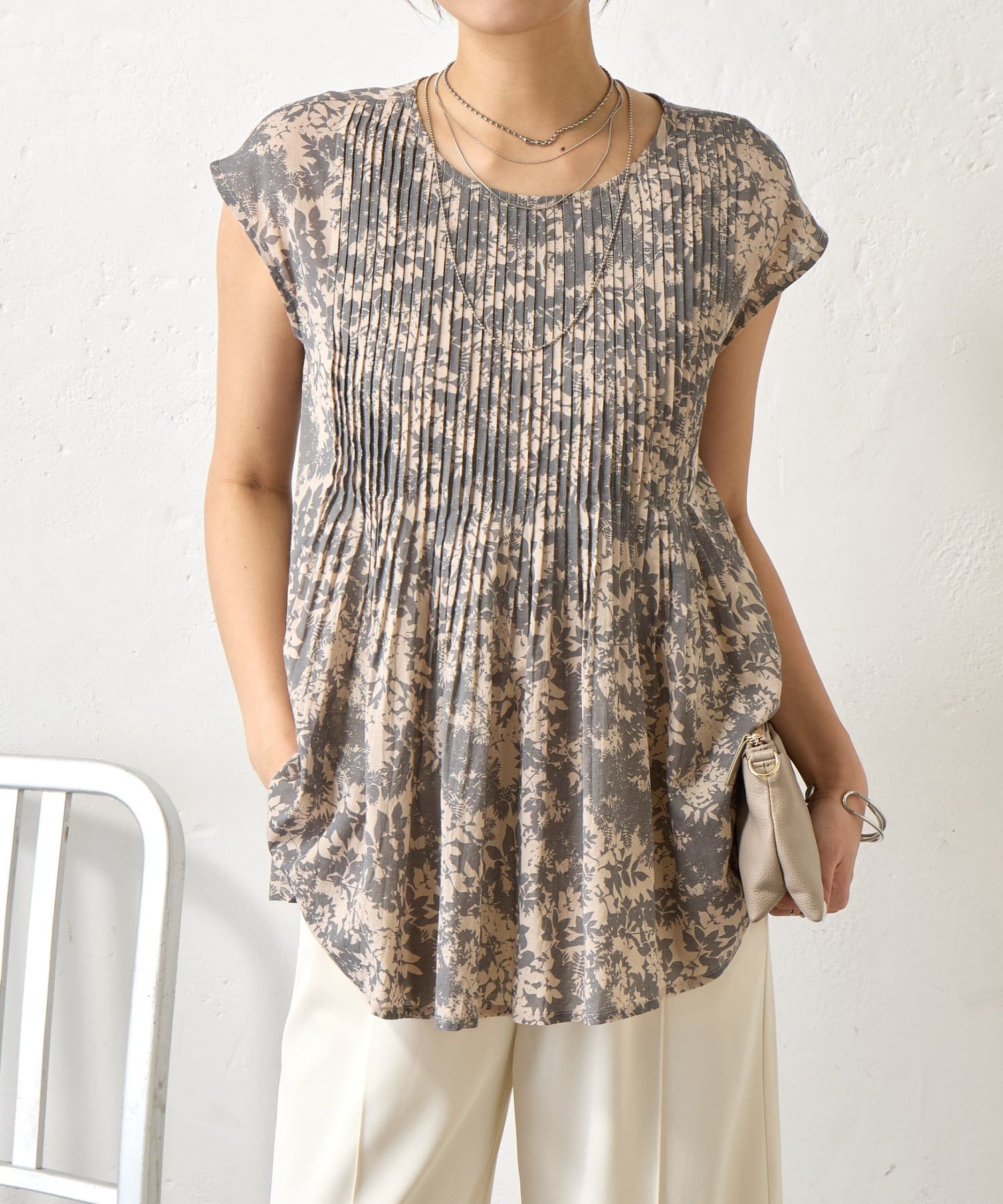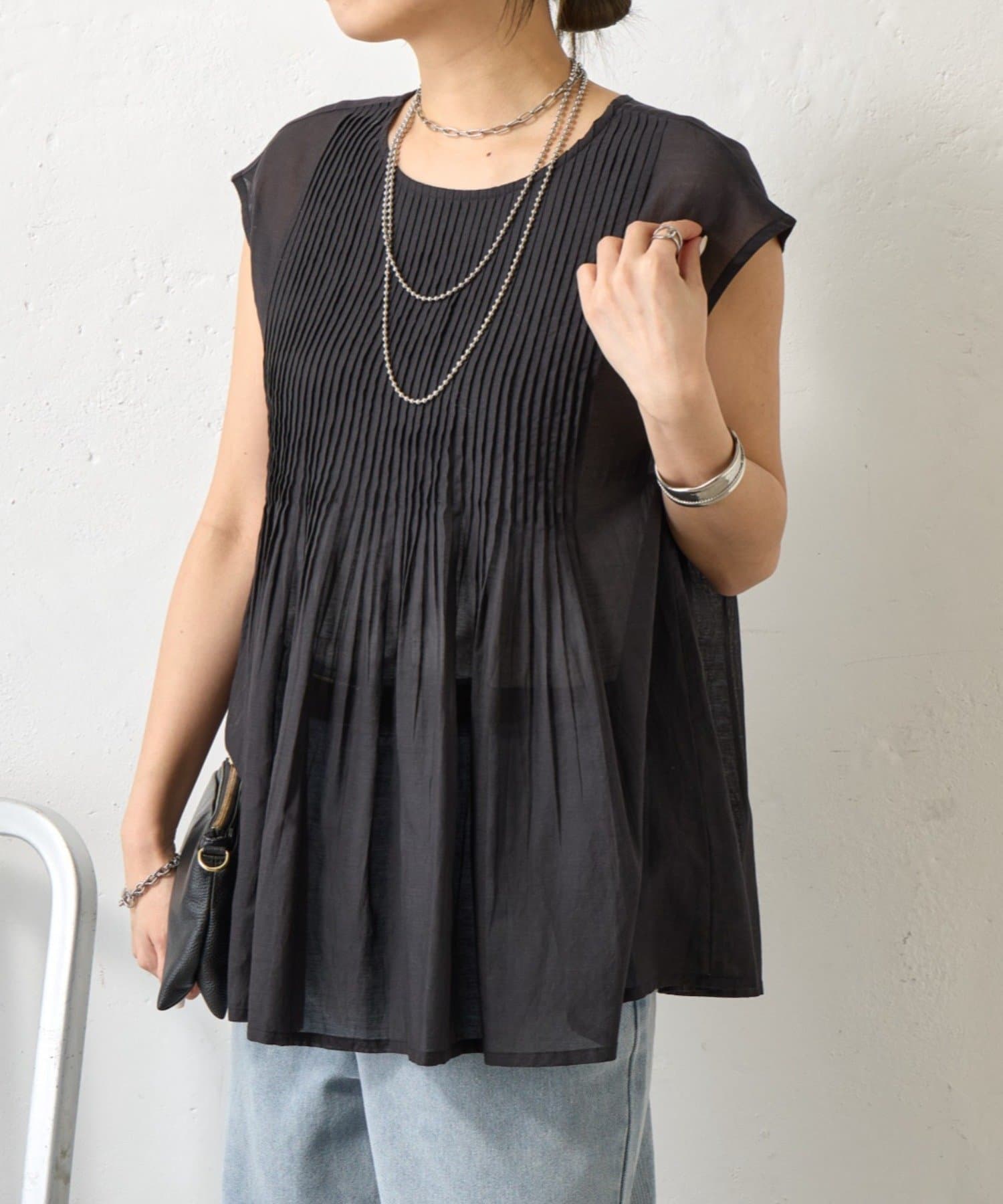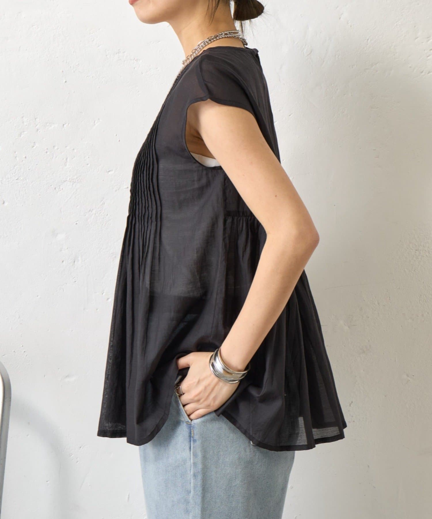 ピンタックノースリブラウス